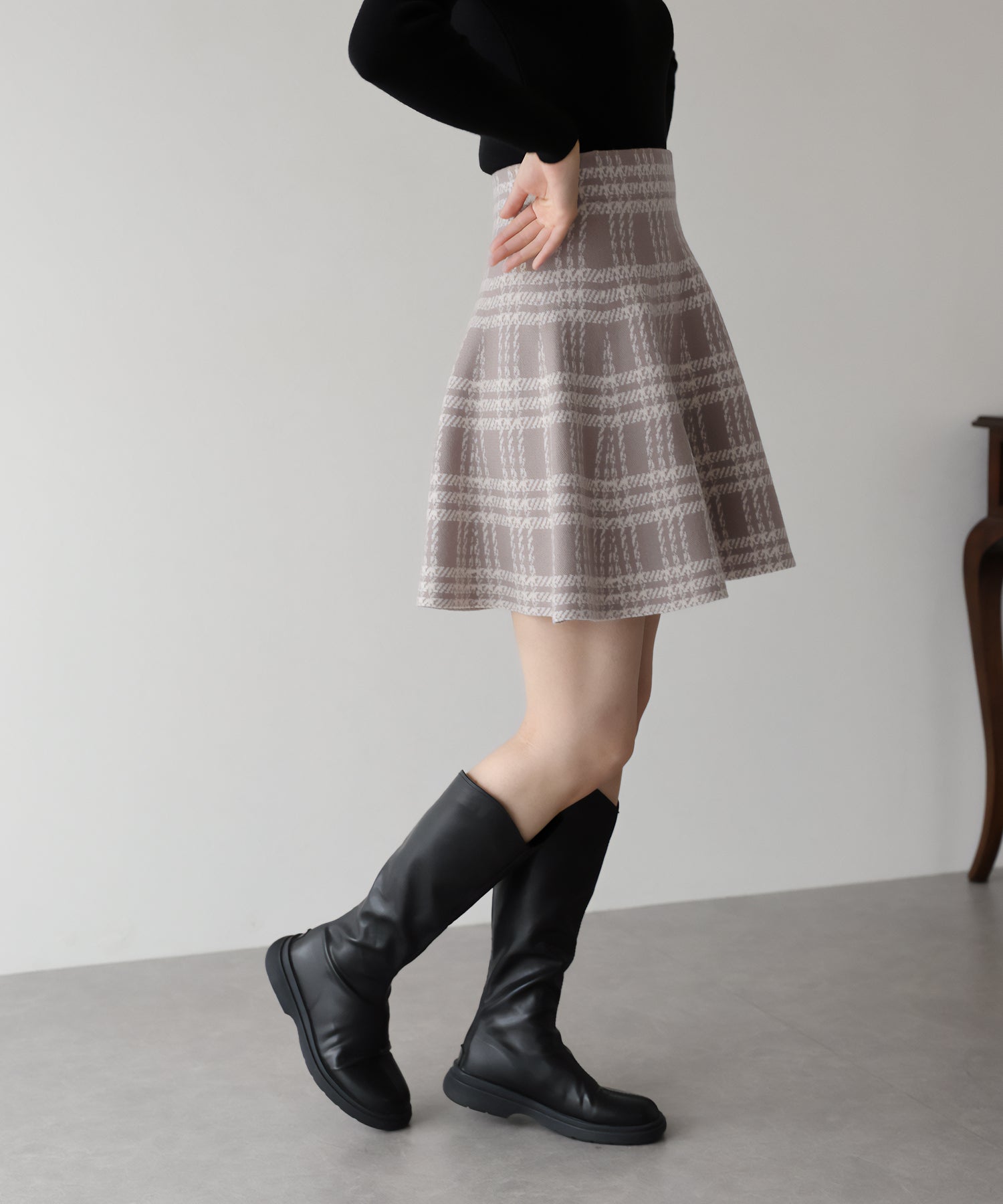 ?DETAIL ウエストゴム入り フレアシルエット チェック柄