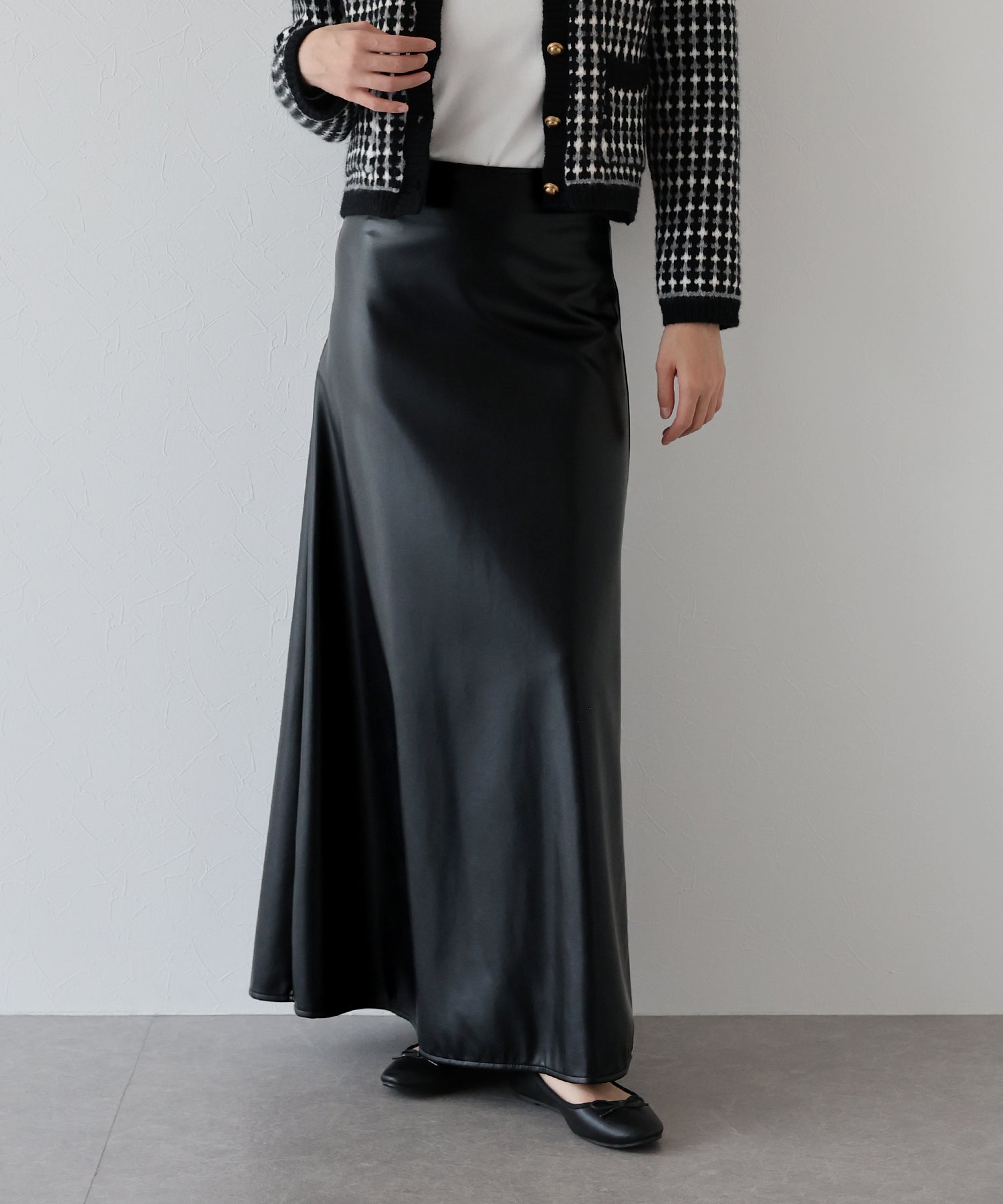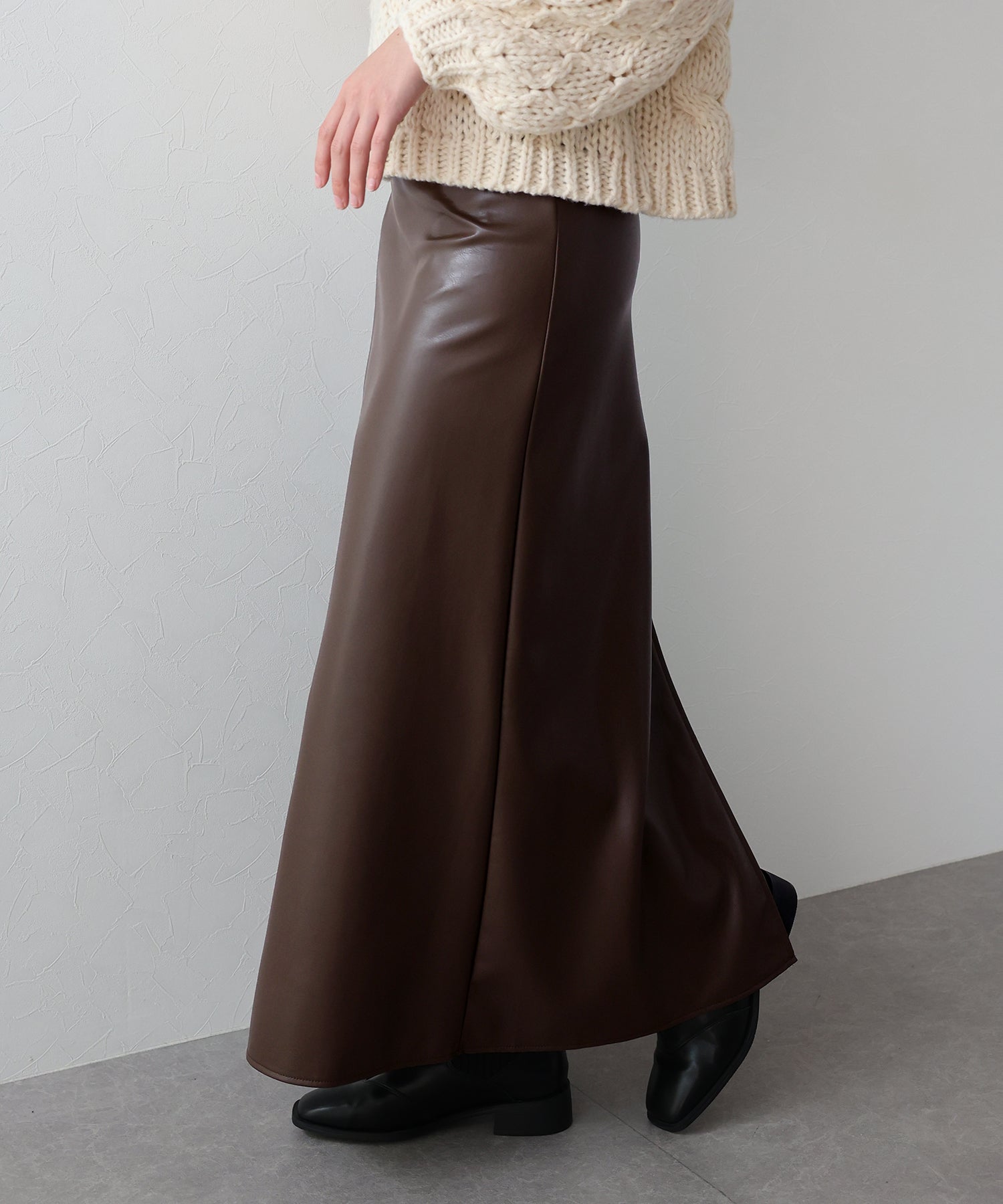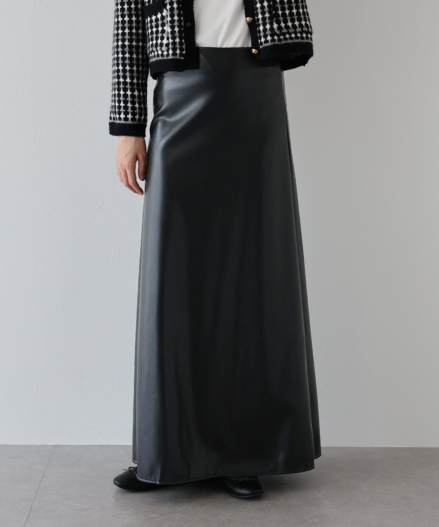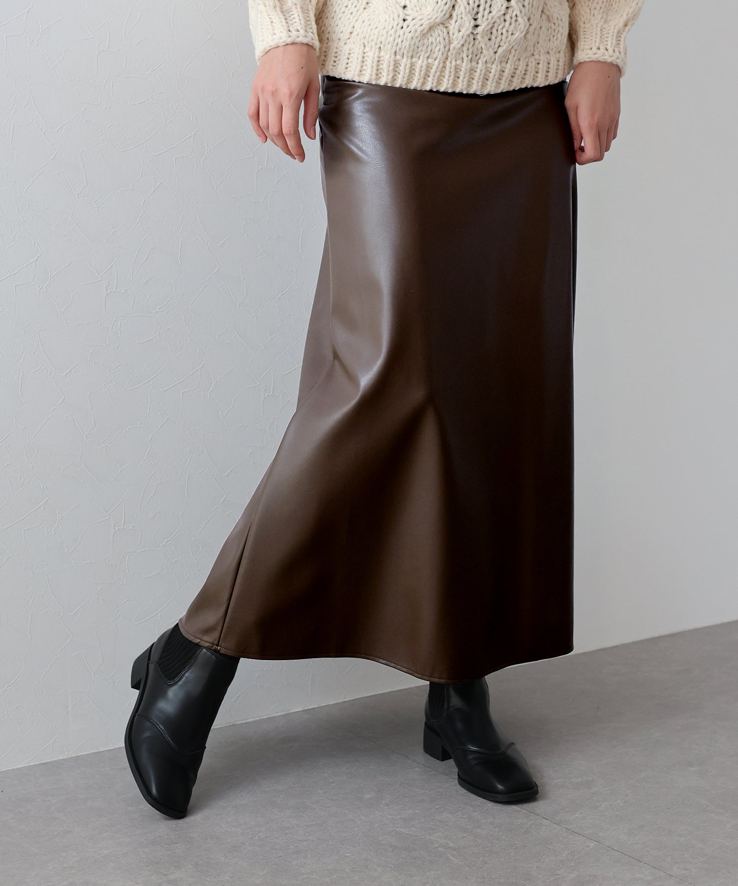 シーズンムードが高まるヴィンテージライクなレザースカート ?POINT 滑らかさとしっとりとした光沢のある質感を持ち合わせたレザー素材を使用したスカート。 裾に向かって少し広がるAラインシルエットとロング丈で 大人の女性にぴったりのバランスに仕上げました。 動くたびにスリットからちらっと脚が覗き、ヘルシー&抜け感のあるアクセントに。 きれいめにもカジュアルにも、様々なテイストのスタイリングが楽しめる 一着有れば重宝すること間違いなしのスカートです。