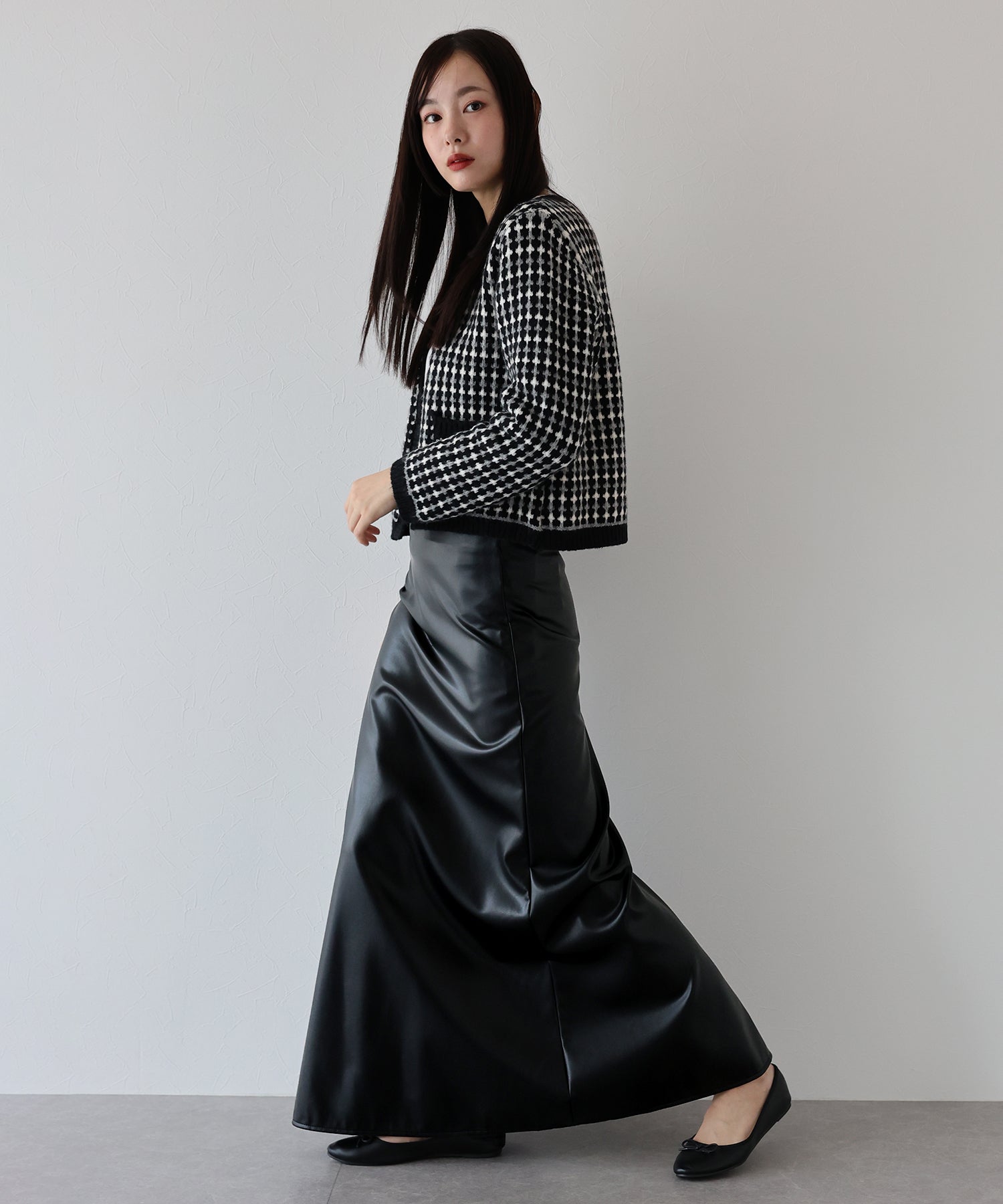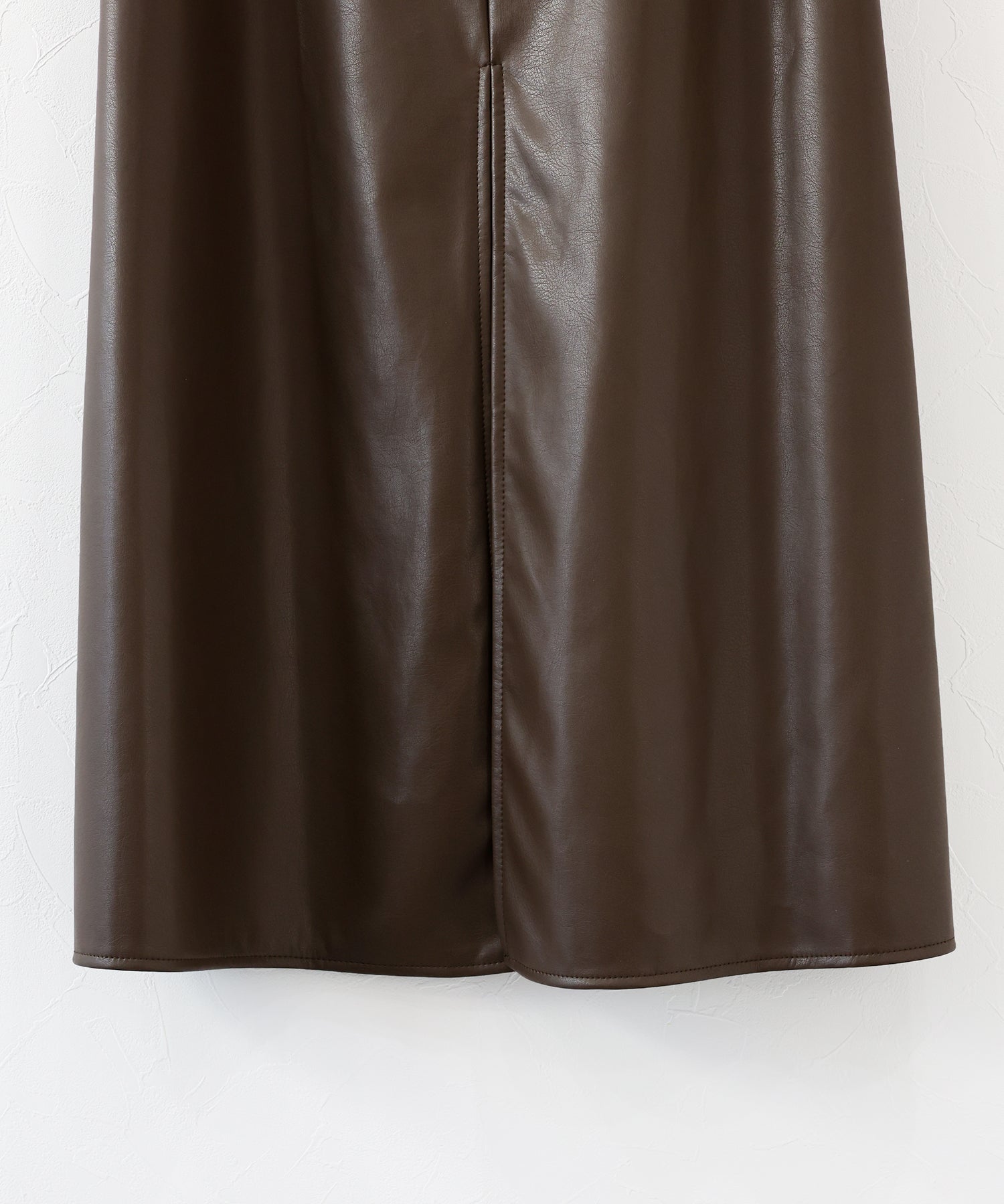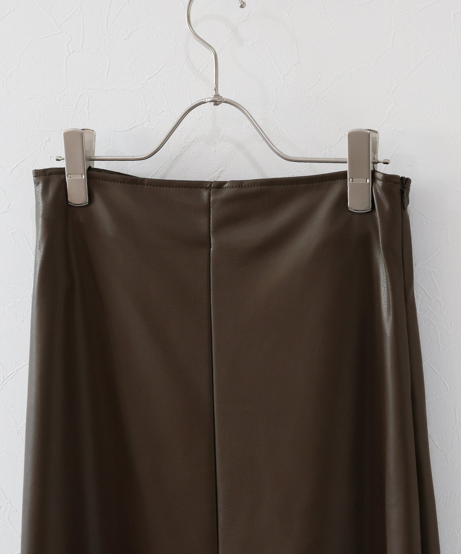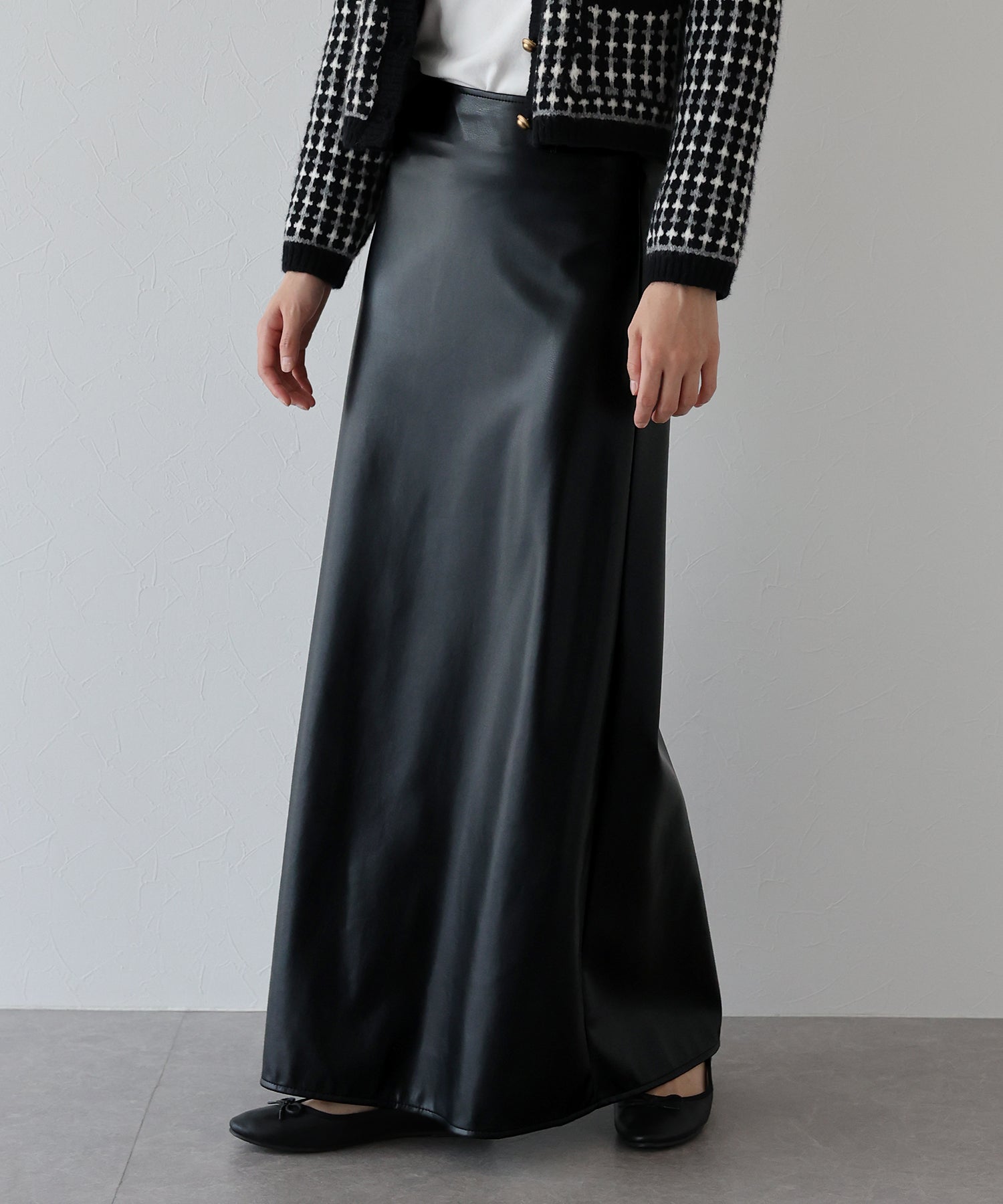 シーズンムードが高まるヴィンテージライクなレザースカート ?POINT 滑らかさとしっとりとした光沢のある質感を持ち合わせたレザー素材を使用したスカート。 裾に向かって少し広がるAラインシルエットとロング丈で 大人の女性にぴったりのバランスに仕上げました。 動くたびにスリットからちらっと脚が覗き、ヘルシー&抜け感のあるアクセントに。 きれいめにもカジュアルにも、様々なテイストのスタイリングが楽しめる 一着有れば重宝すること間違いなしのスカートです。