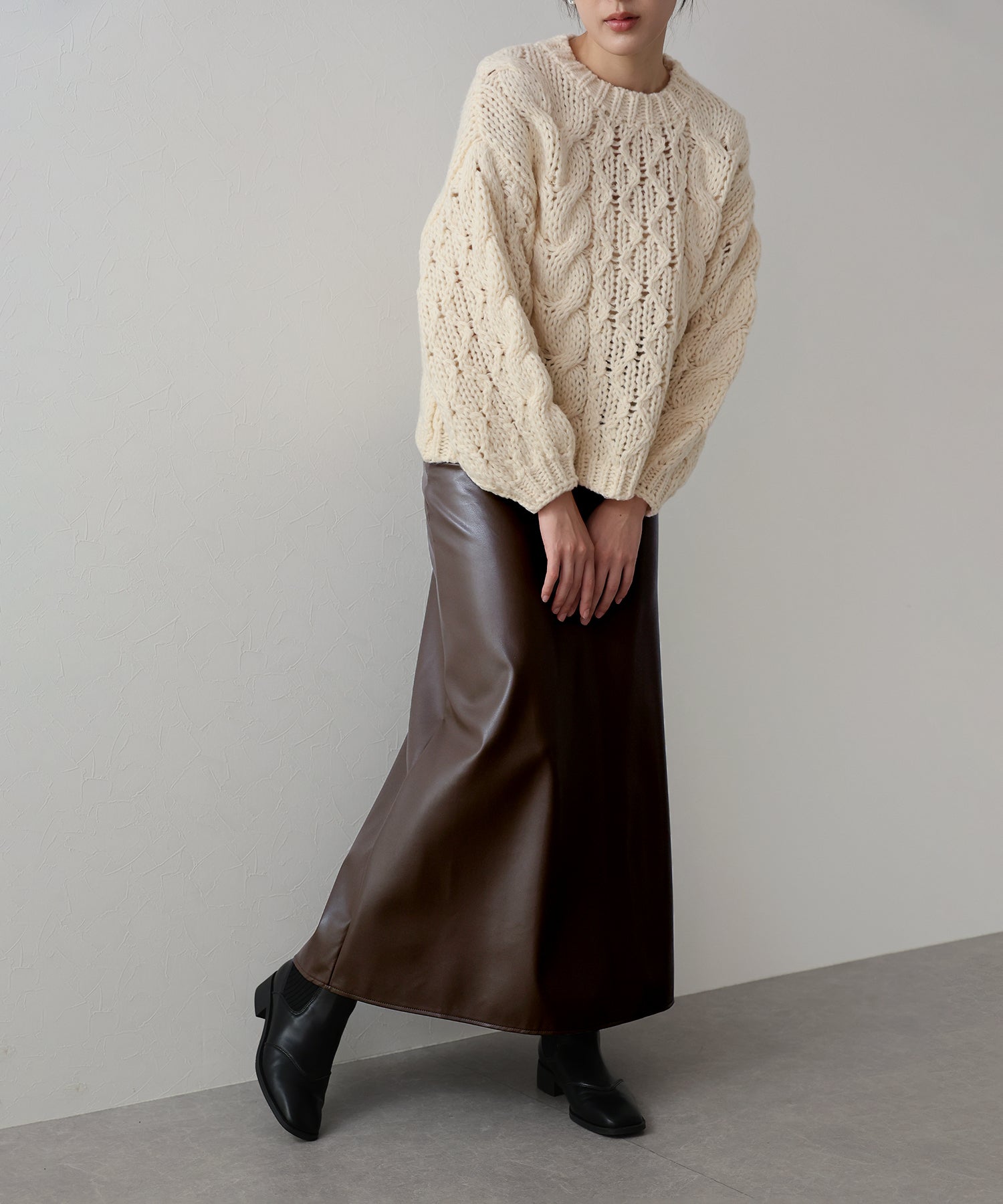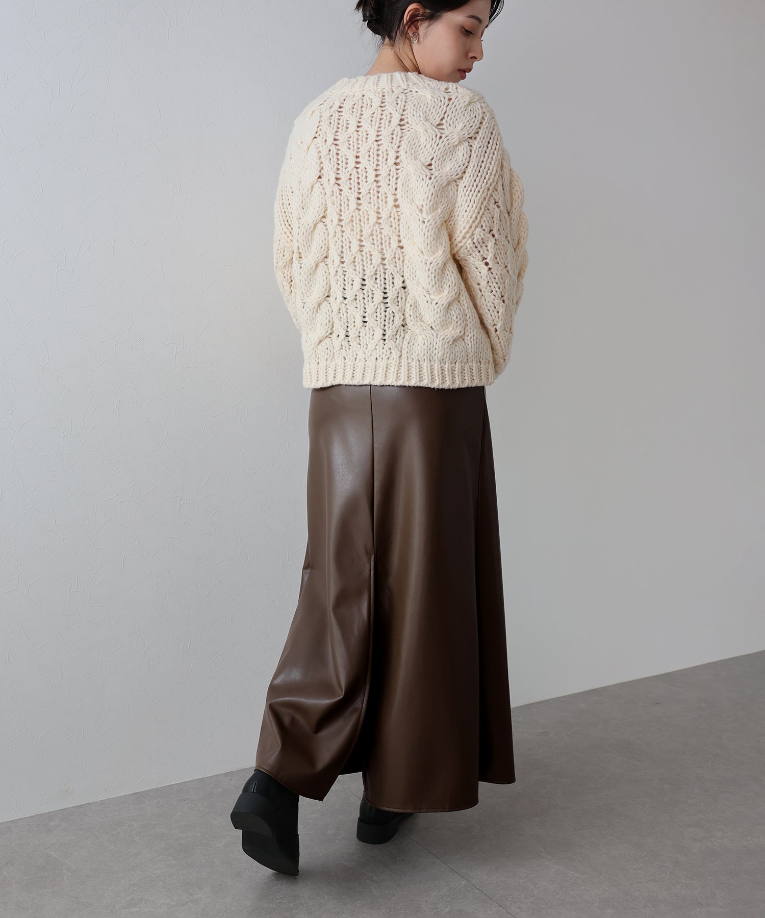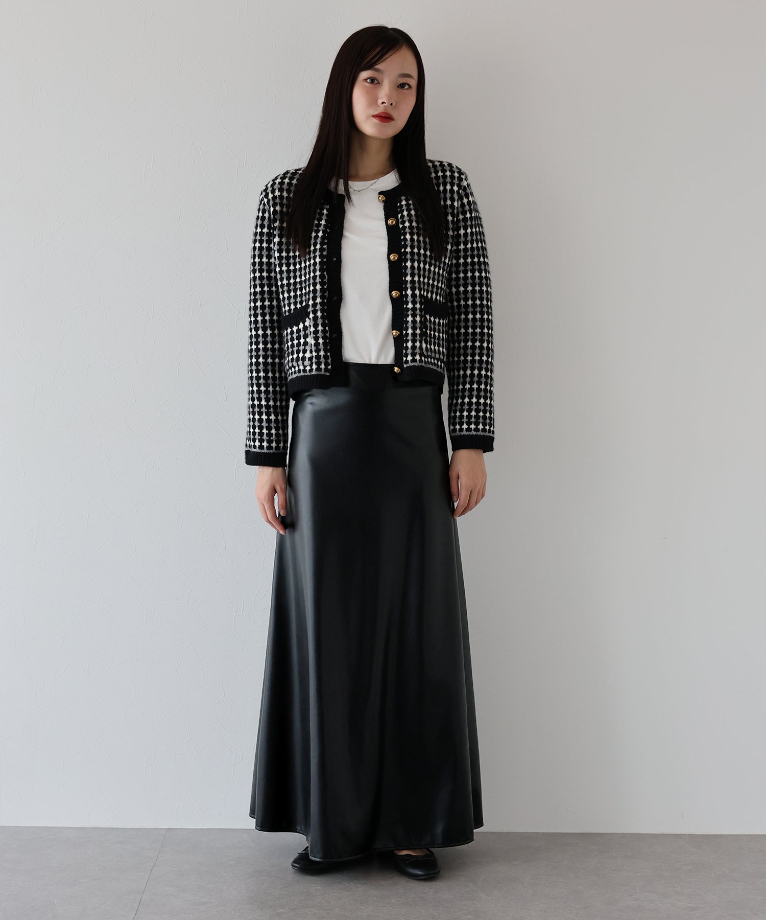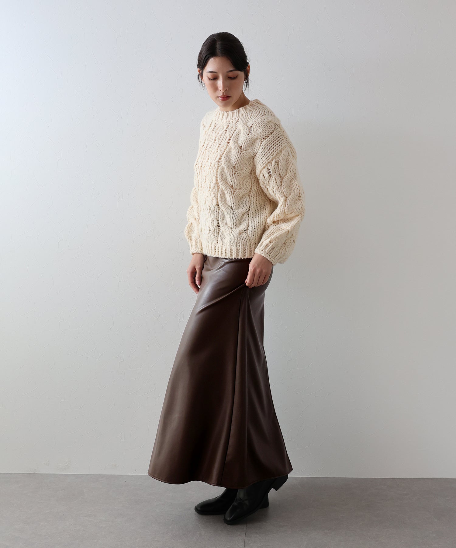 シーズンムードが高まるヴィンテージライクなレザースカート ?POINT 滑らかさとしっとりとした光沢のある質感を持ち合わせたレザー素材を使用したスカート。 裾に向かって少し広がるAラインシルエットとロング丈で 大人の女性にぴったりのバランスに仕上げました。 動くたびにスリットからちらっと脚が覗き、ヘルシー&抜け感のあるアクセントに。 きれいめにもカジュアルにも、様々なテイストのスタイリングが楽しめる 一着有れば重宝すること間違いなしのスカートです。