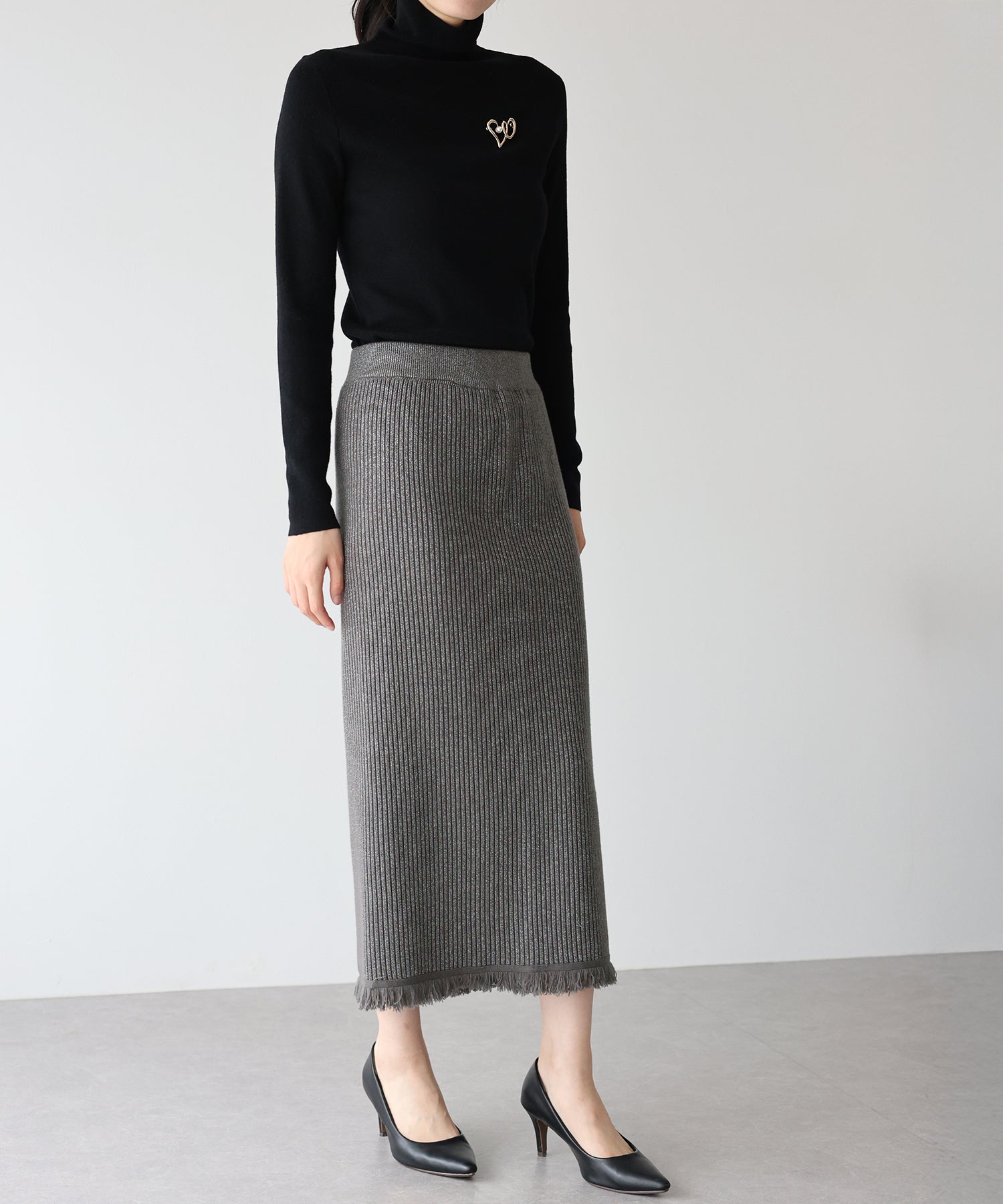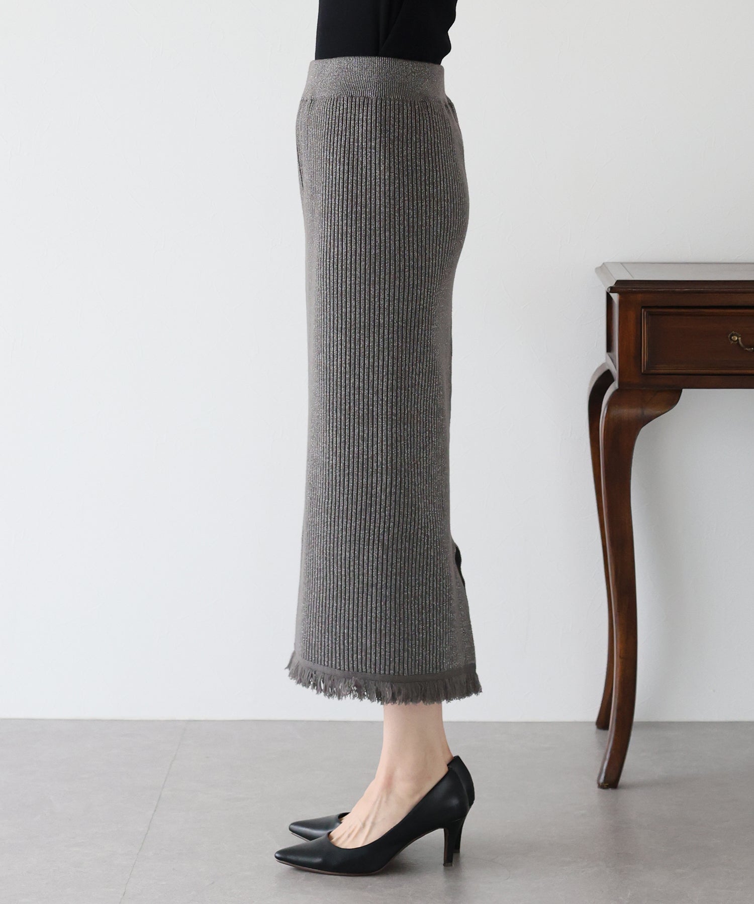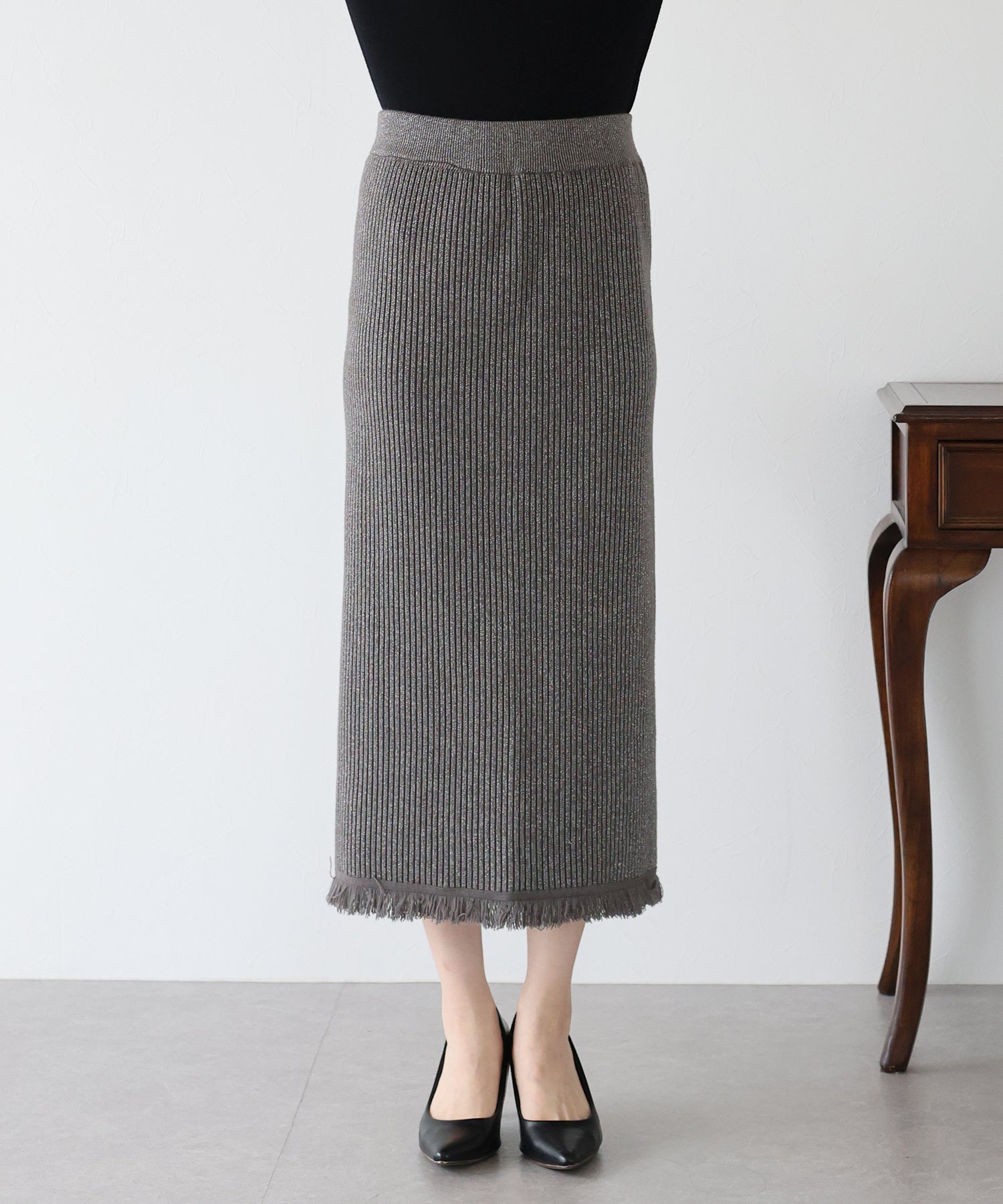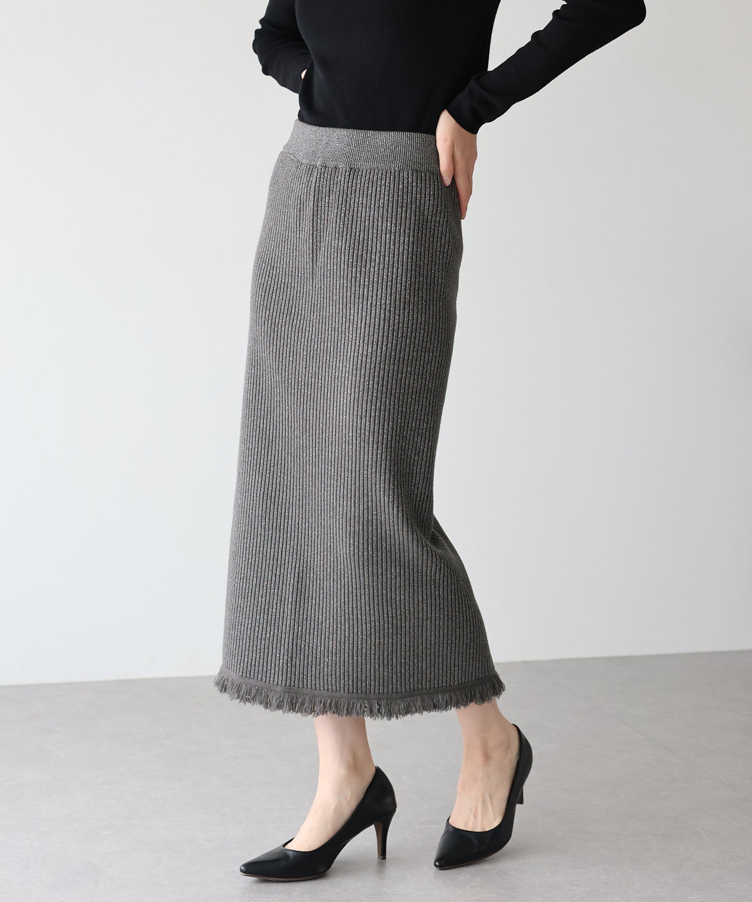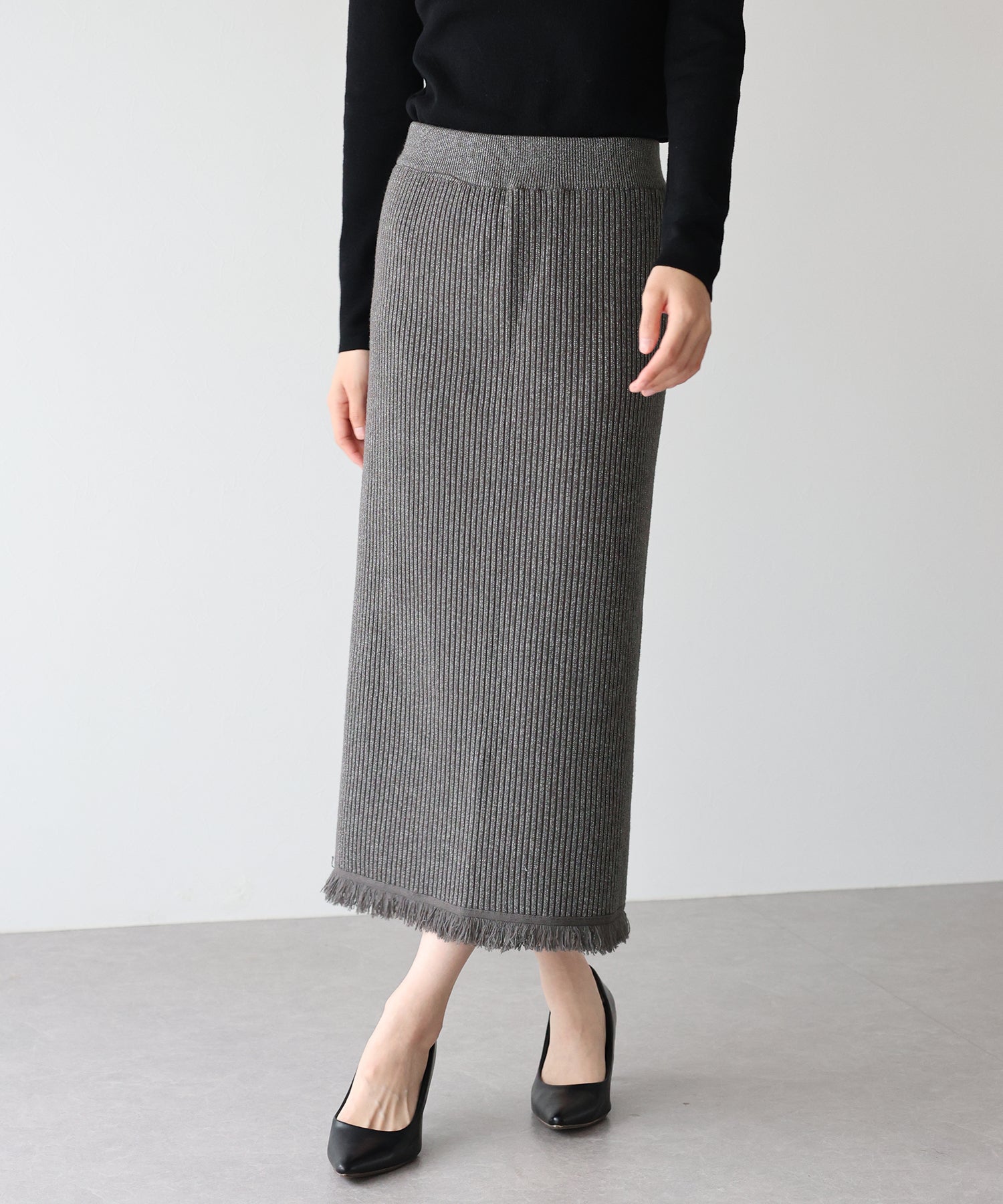 シーズンムード高まるラメニットペンシルスカート