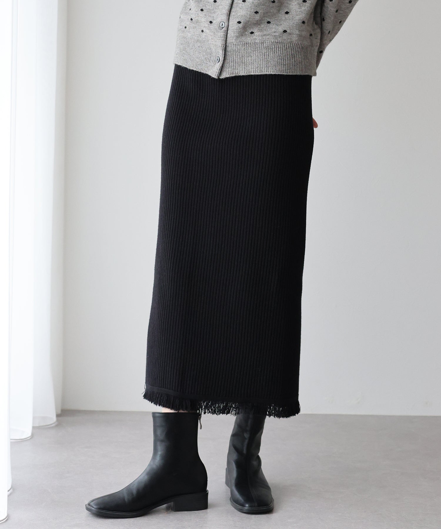 裾のフリンジでシンプル過ぎないポイントをプラス。