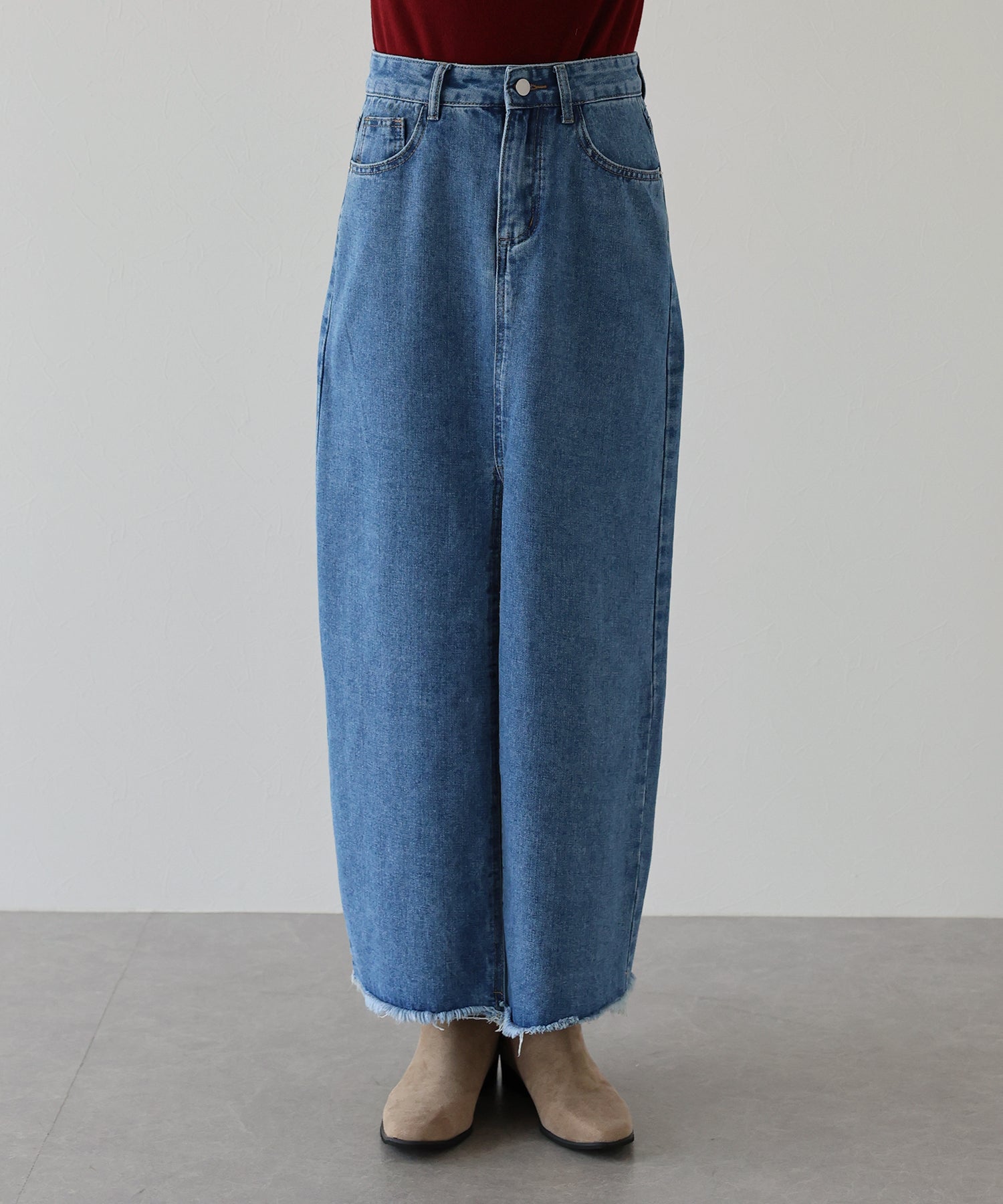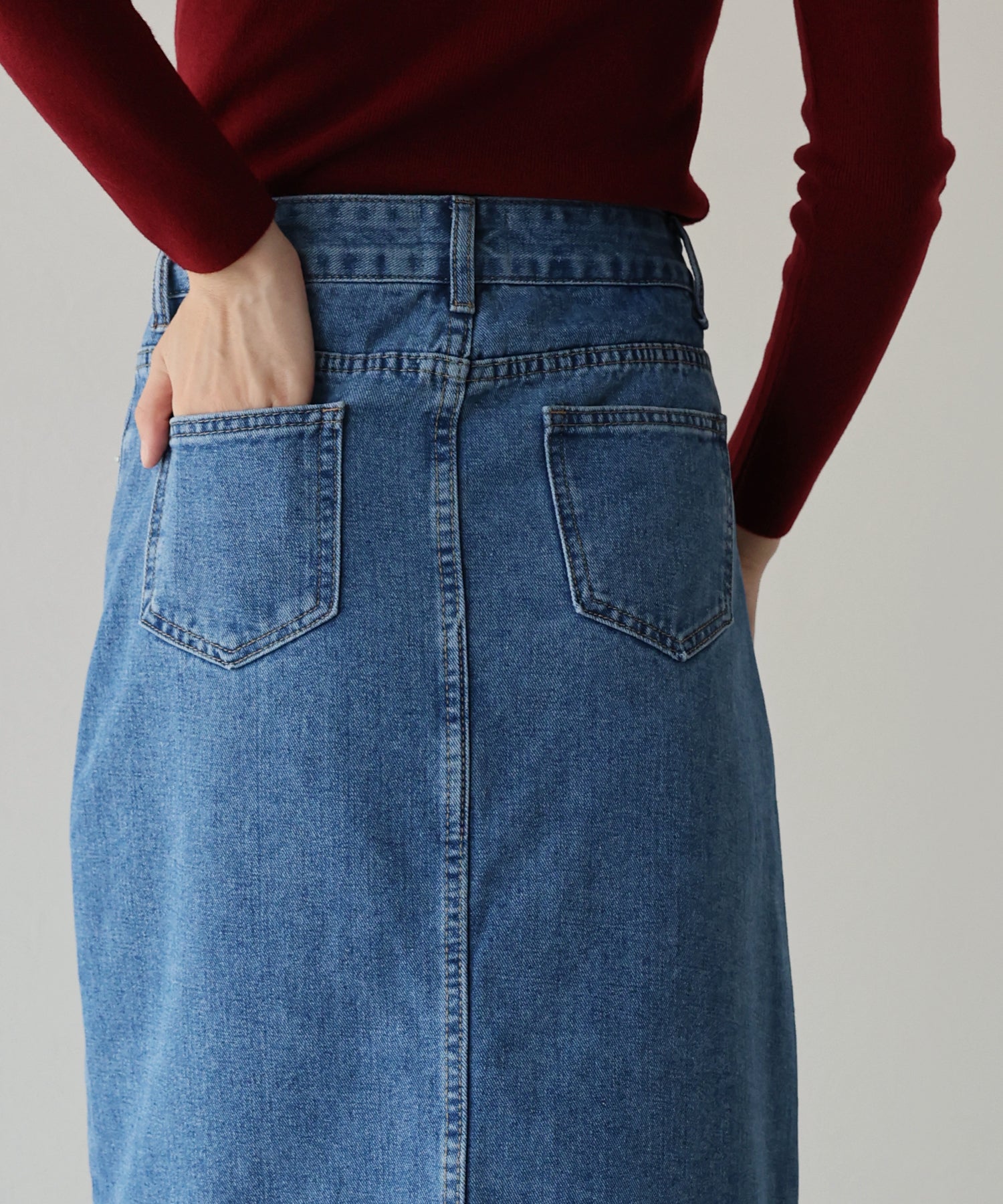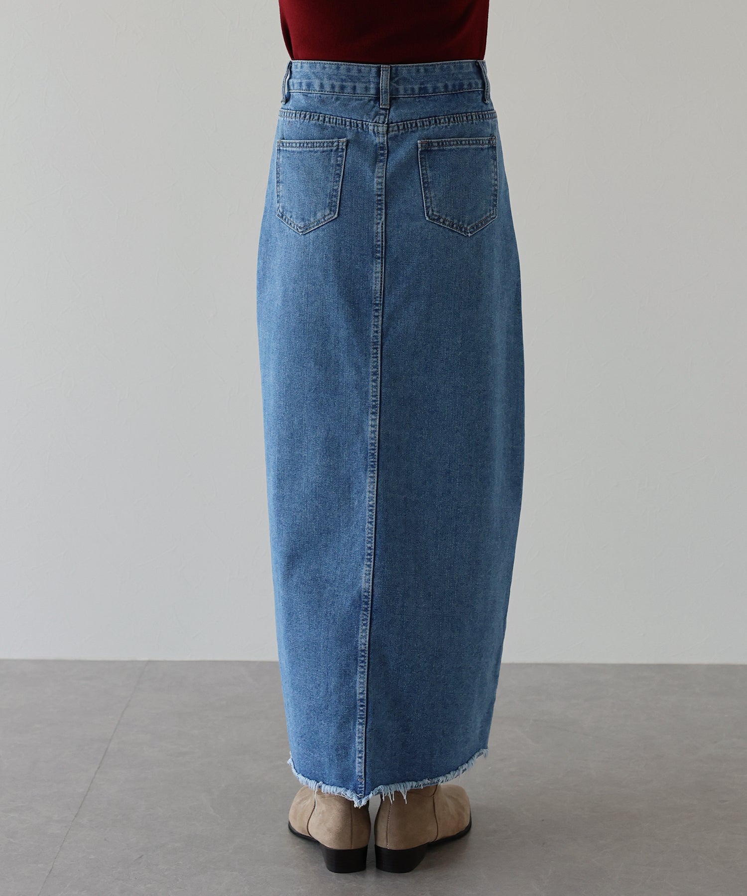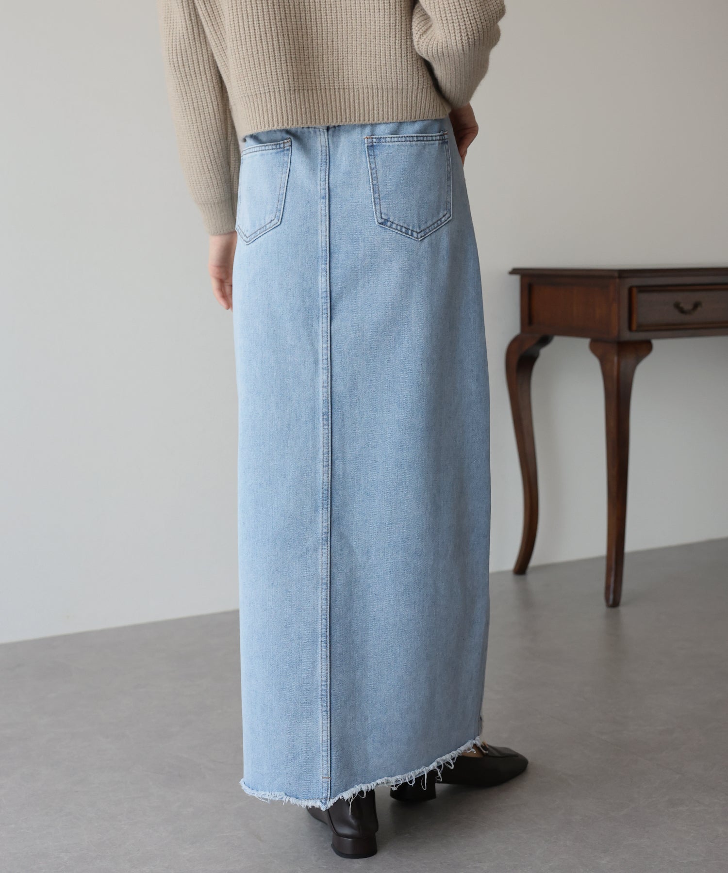 フロントスリットの入った、トレンド感を取り入れていただけるデニムスカート。
