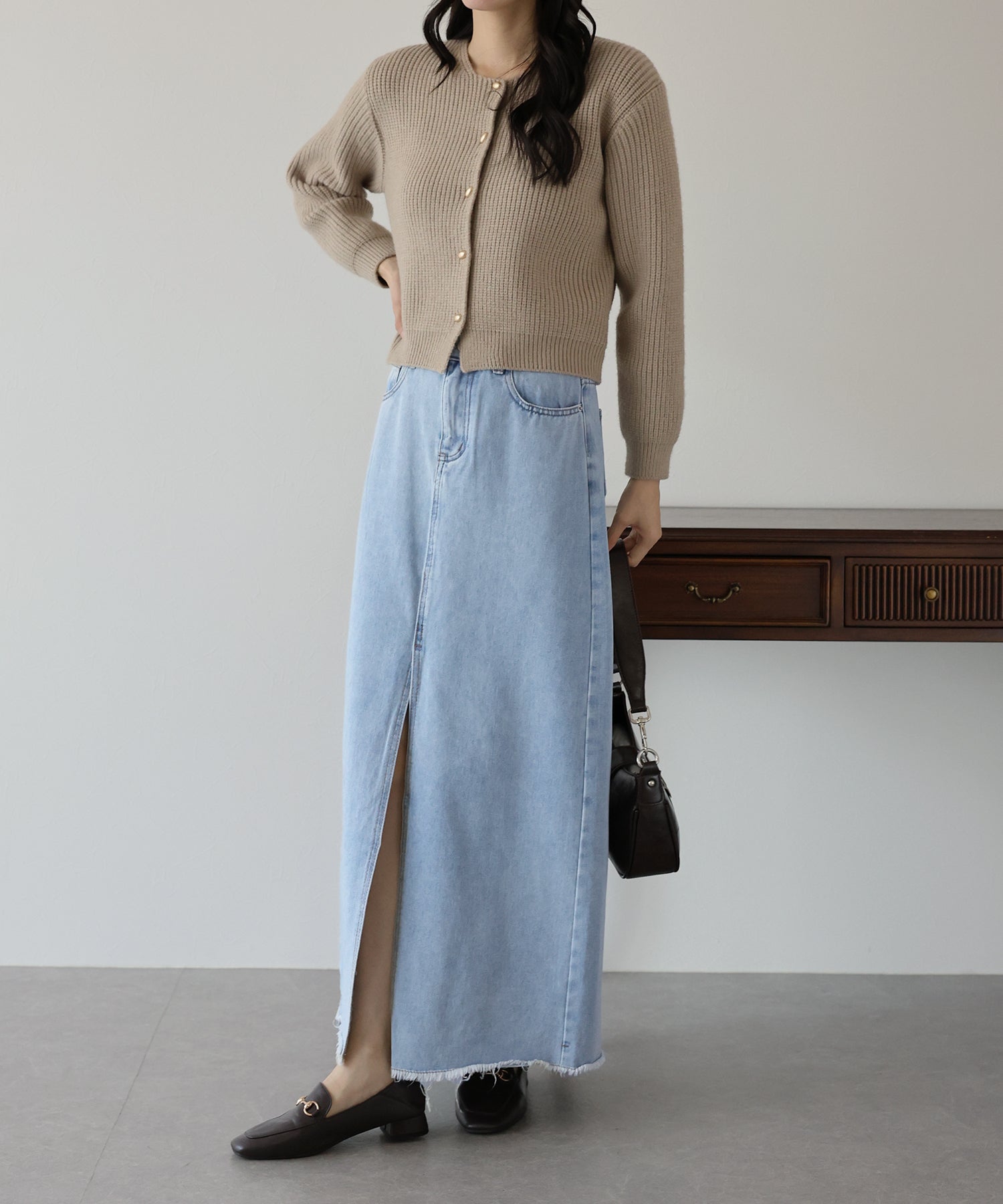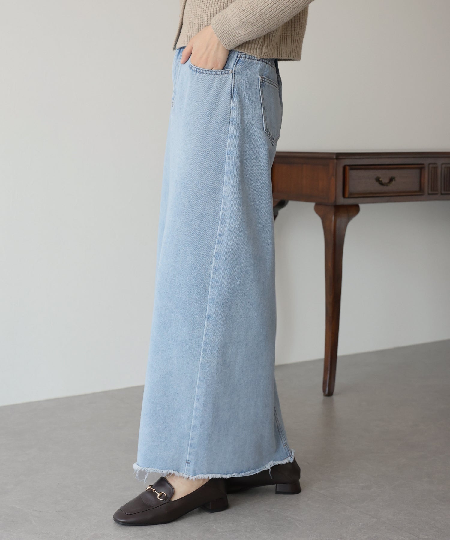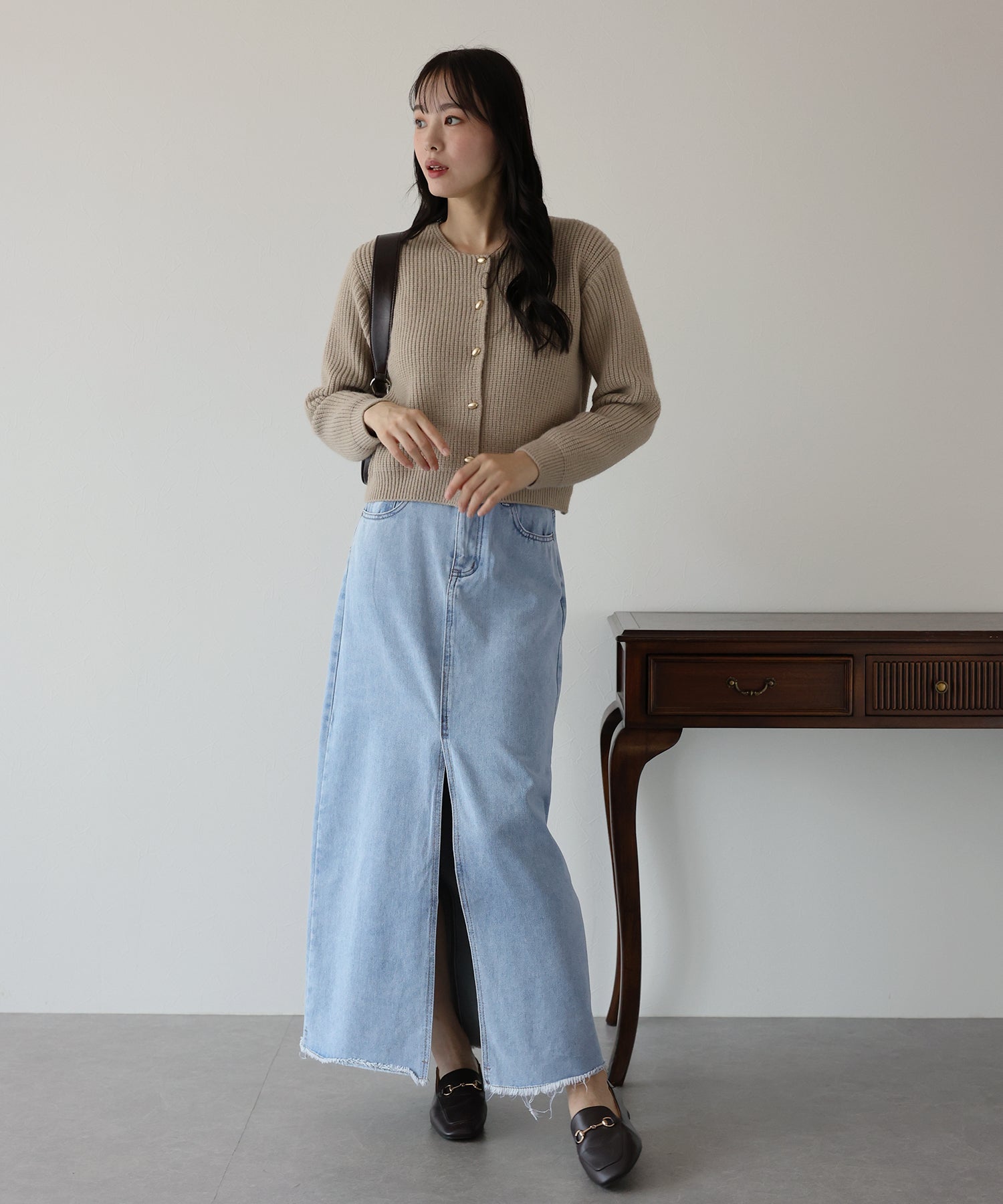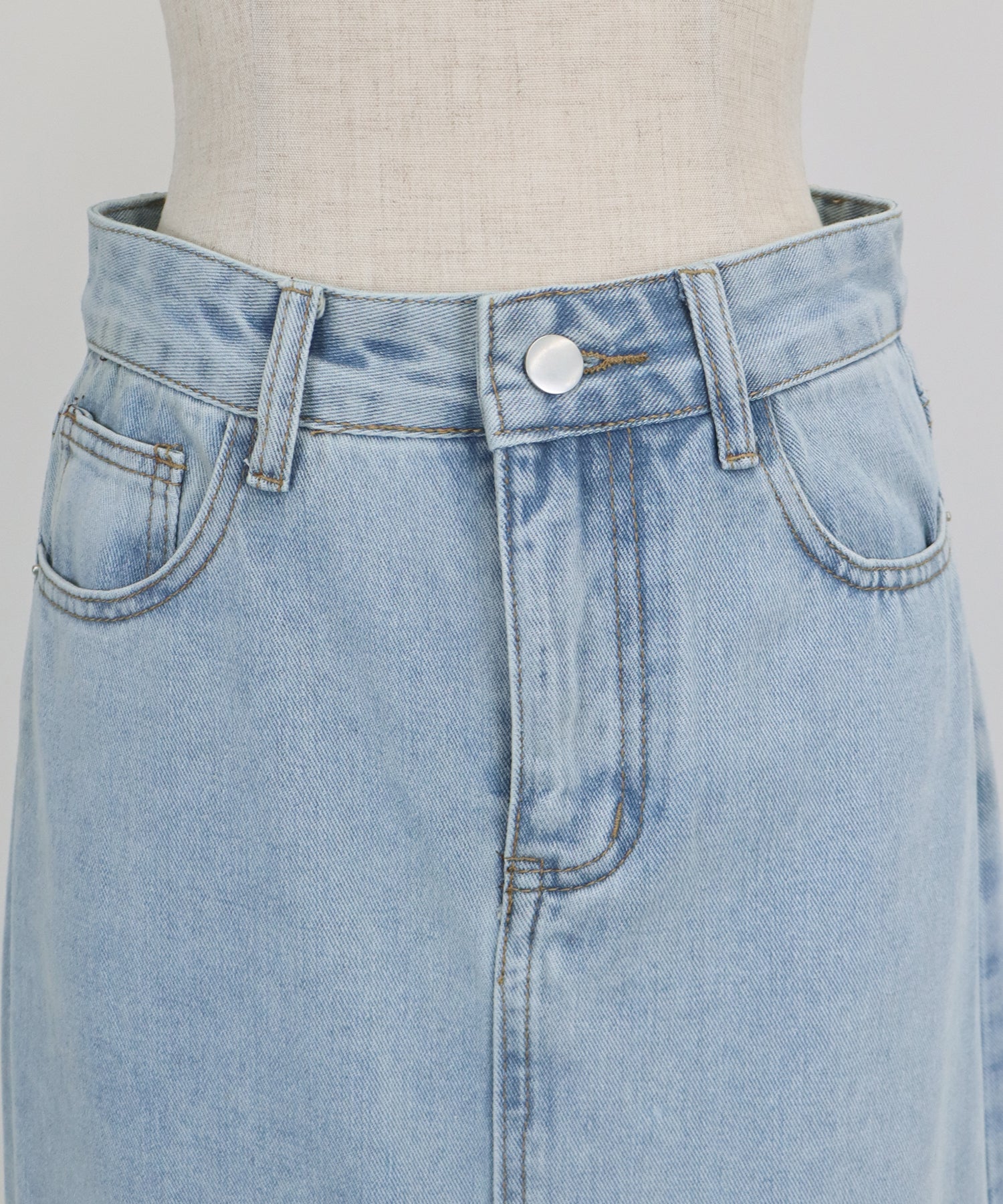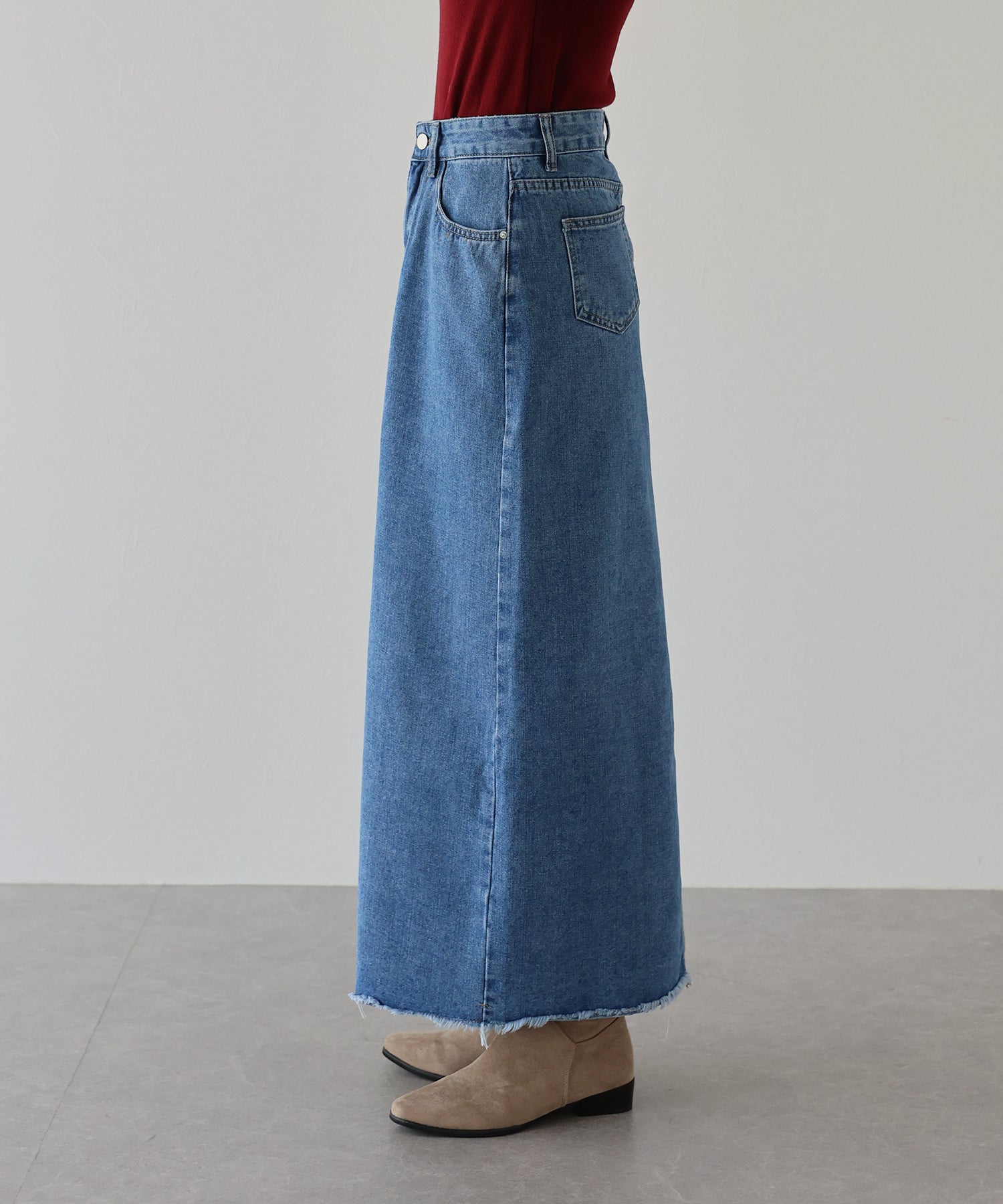 フロントスリットの入った、トレンド感を取り入れていただけるデニムスカート。