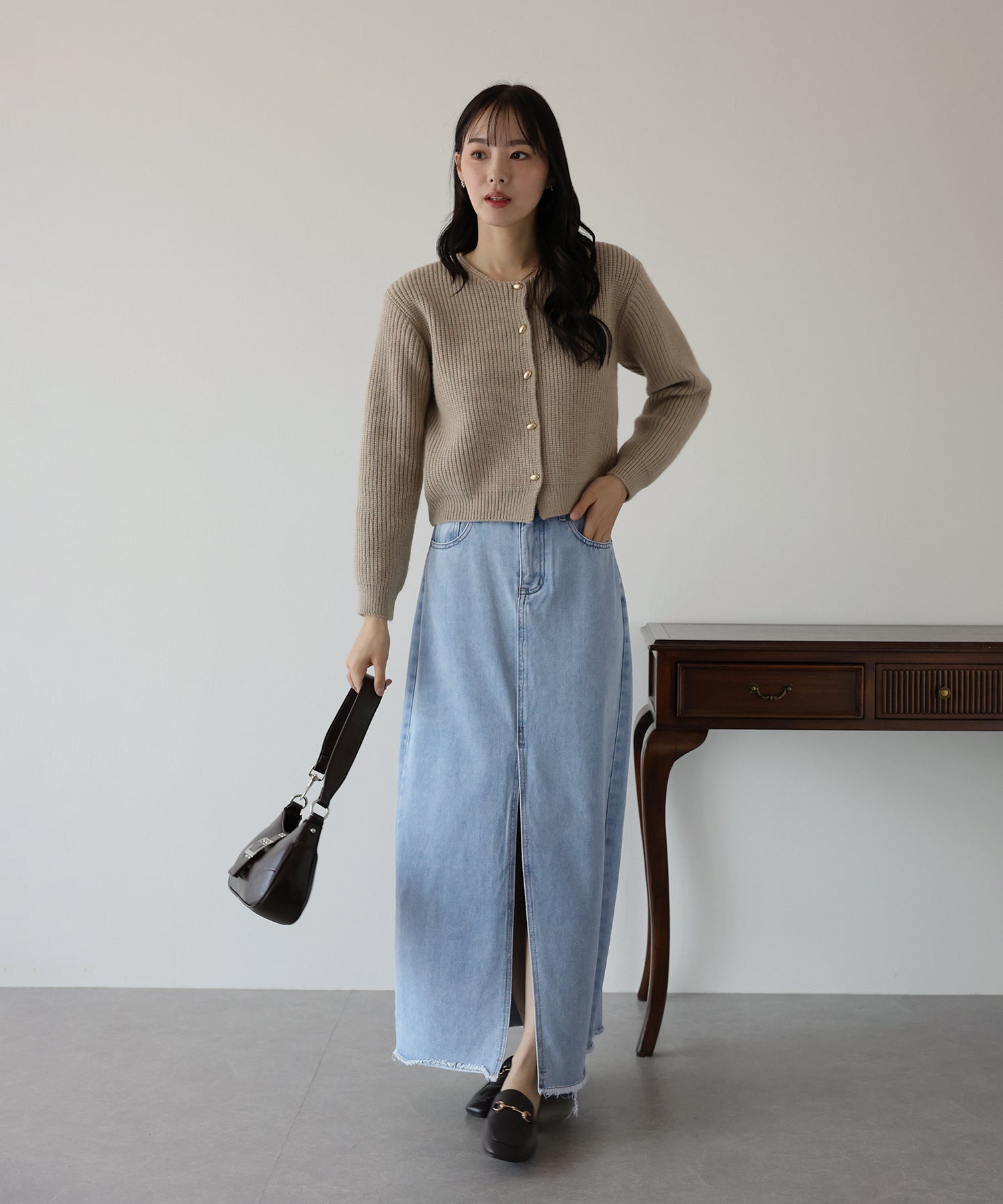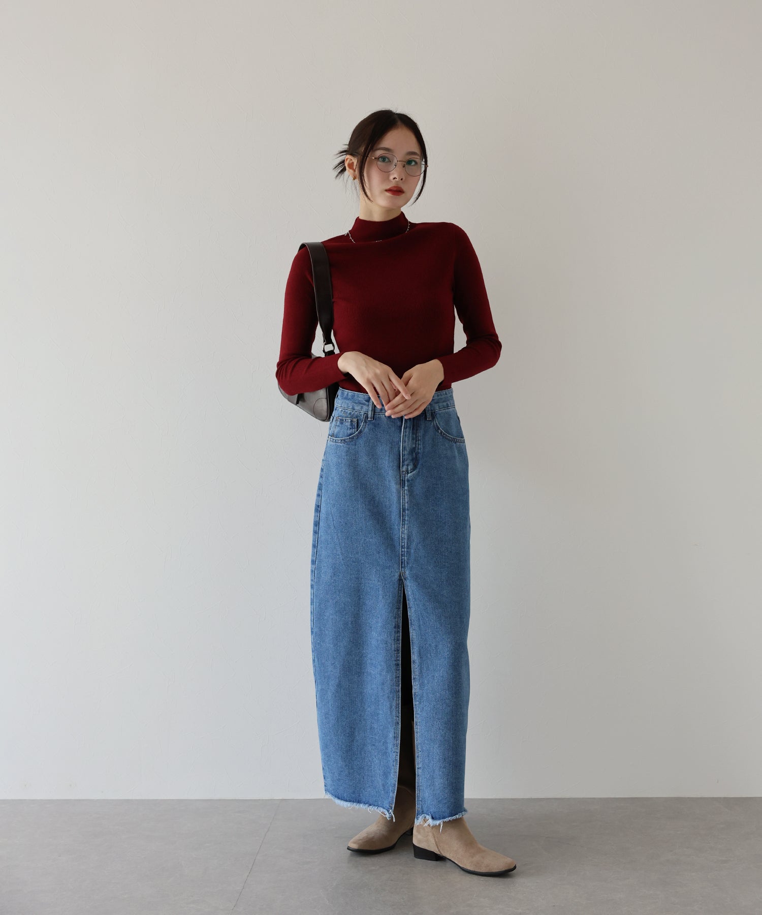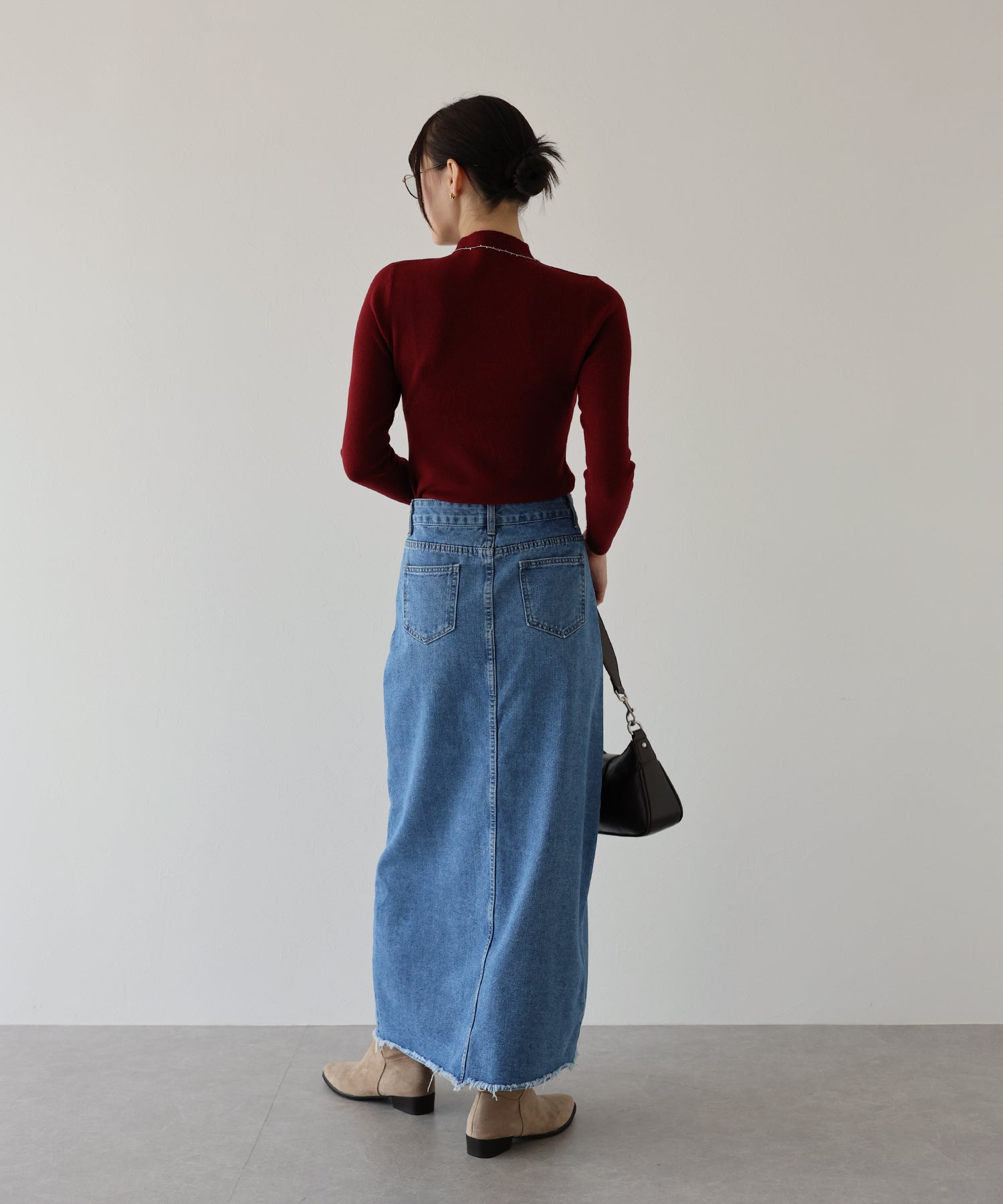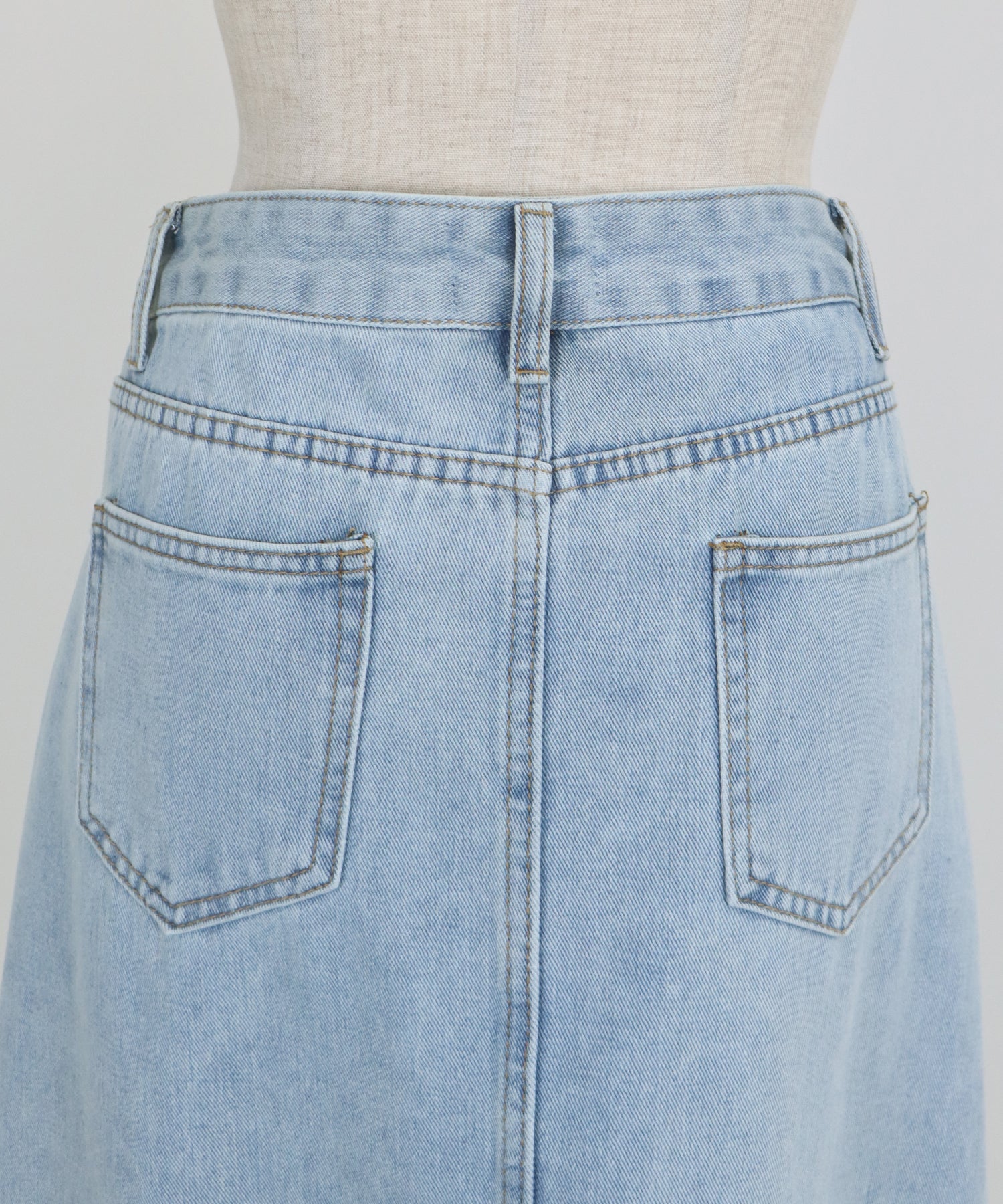 フロントスリットの入った、トレンド感を取り入れていただけるデニムスカート。