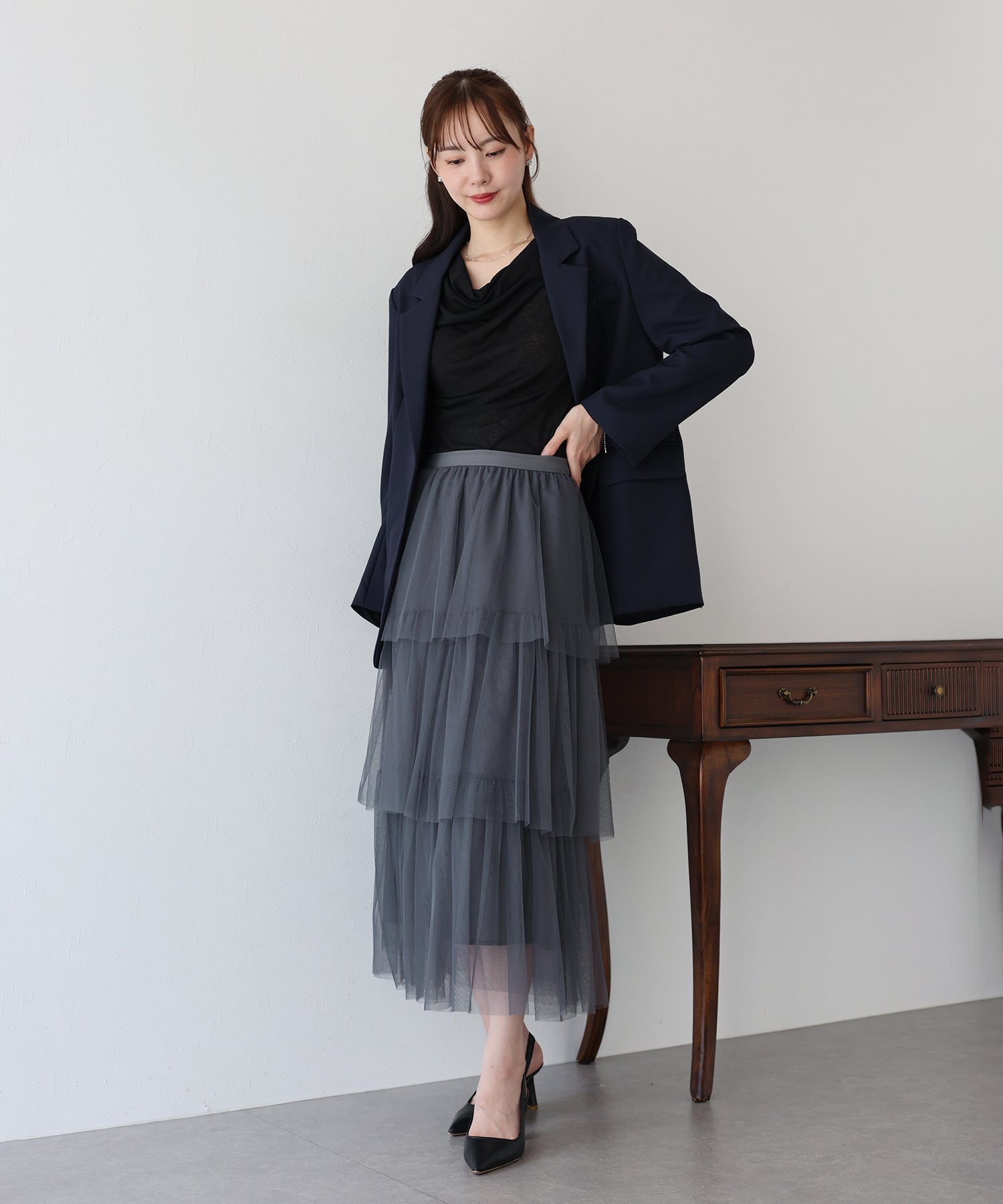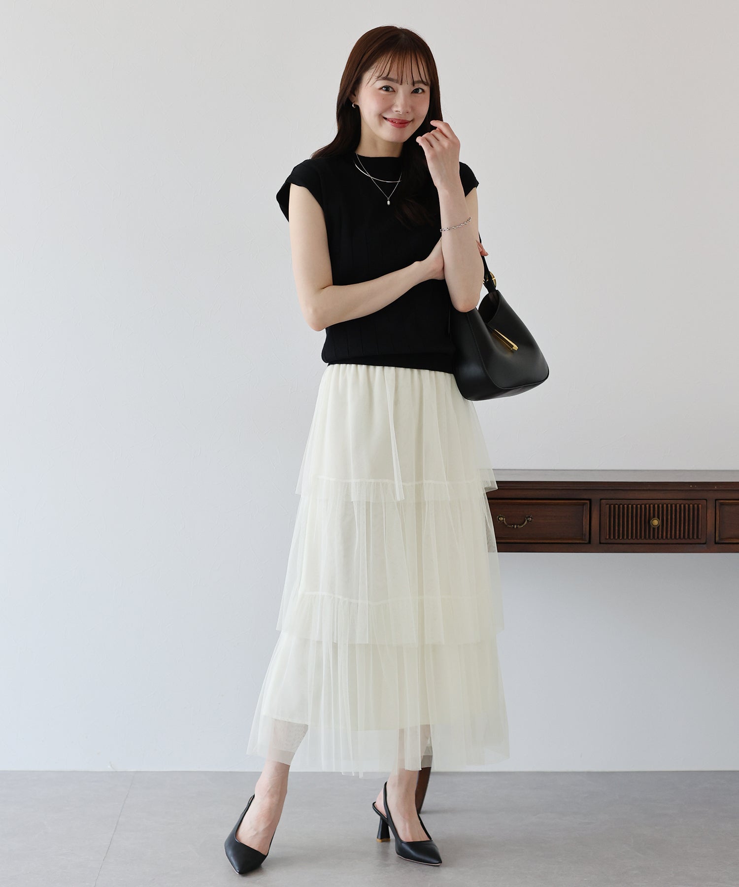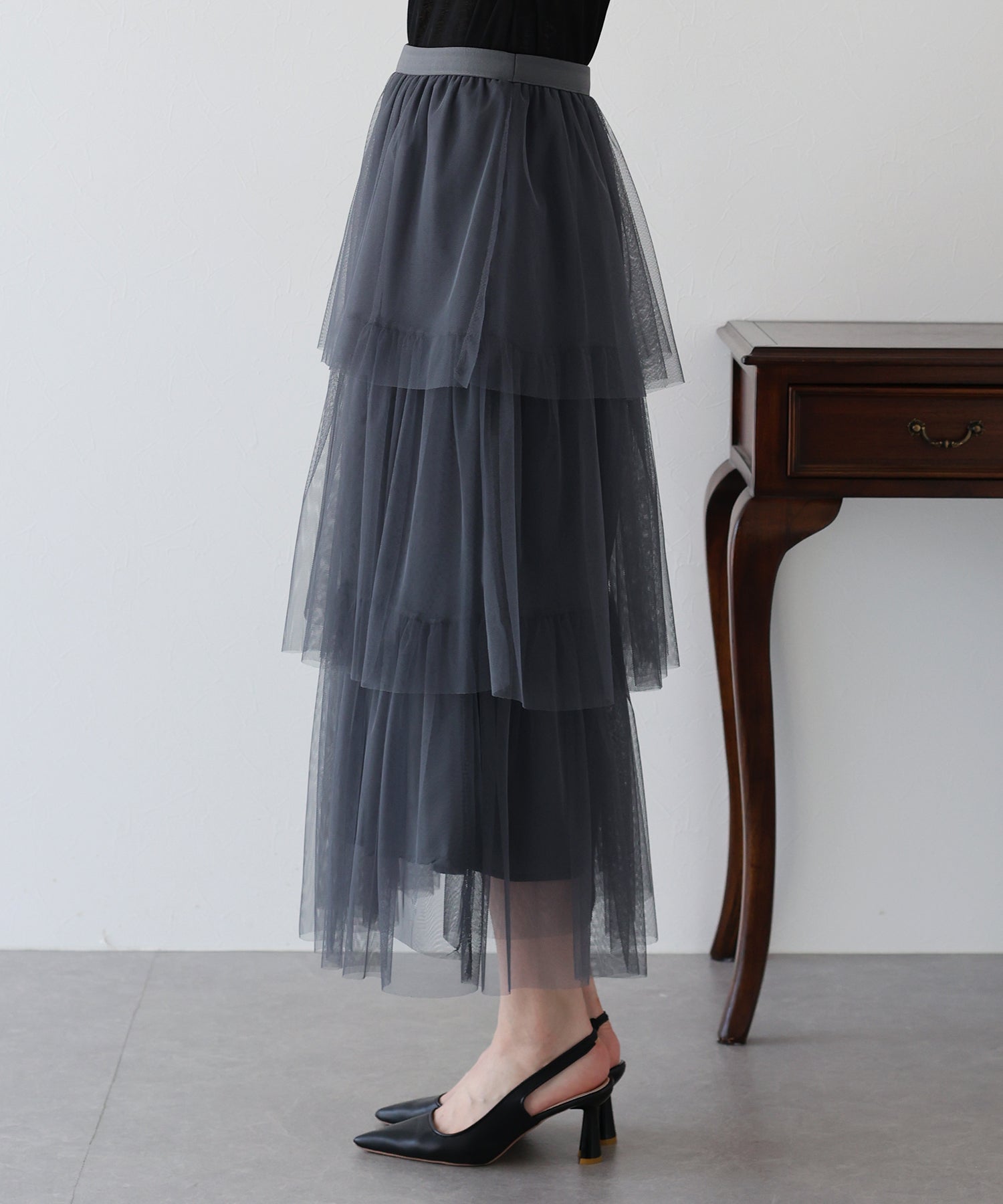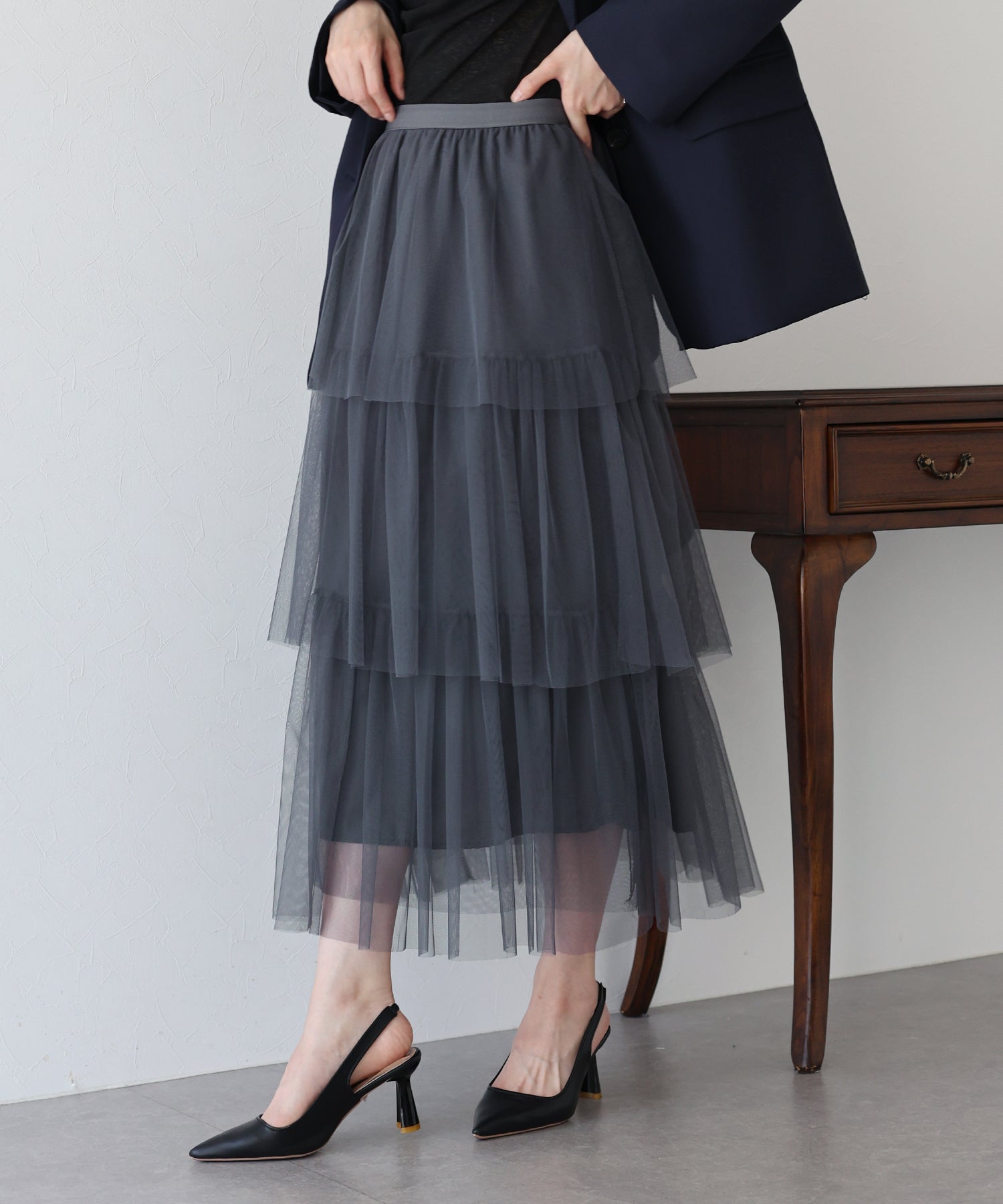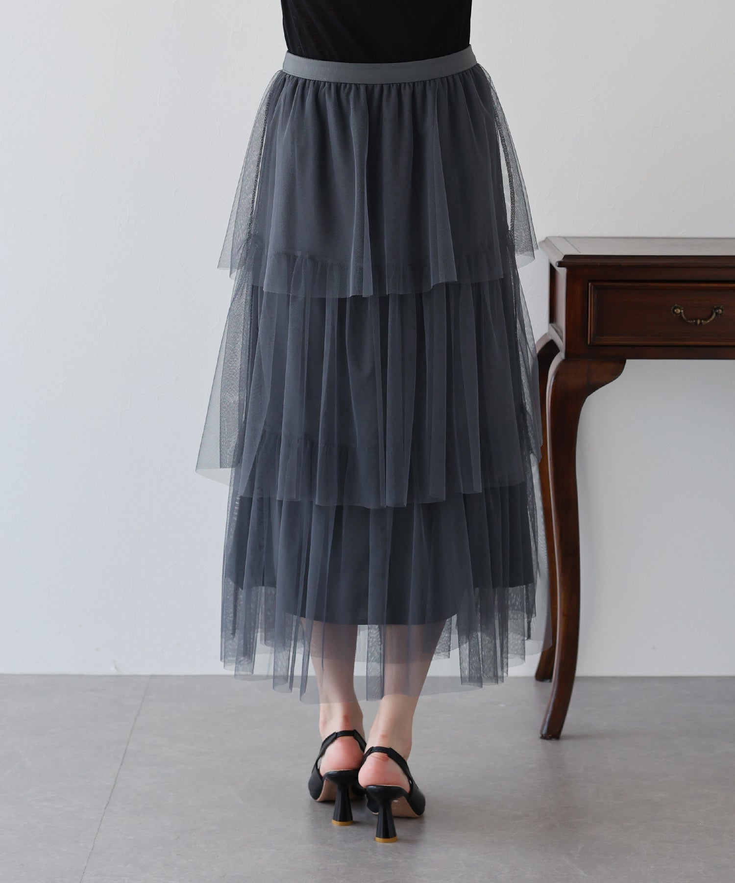 ?POINT 三段のティアードデザインとシアー感が華やかなチュールスカート。 歩くたびにふわっと揺れるティアードデザインで、女性らしい柔らかさとかわいらしさをプラス。 繊細なチュールを使用し、ボリュームを少し控えめにしたギャザーデザインで、 着ぶくれしずらく、広がりすぎないシルエットに仕上げました。 ウエスト部分はゴム仕様なのでストレスなく着用いただけます。 ガーリーなディテールを組み込みながらも、落ち着いた大人っぽさも演出する 大人かわいいコーデにぴったりのチュールスカートです。