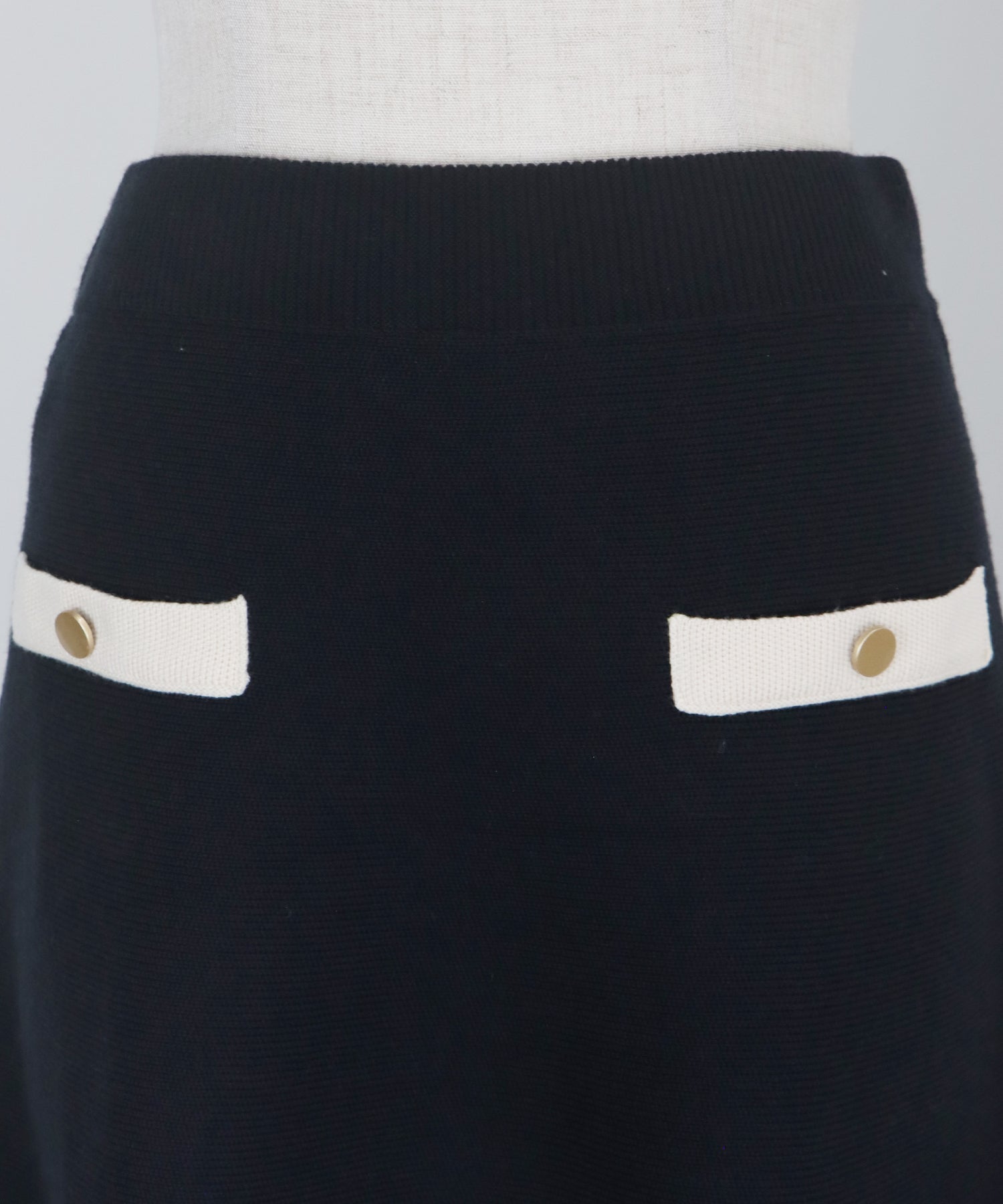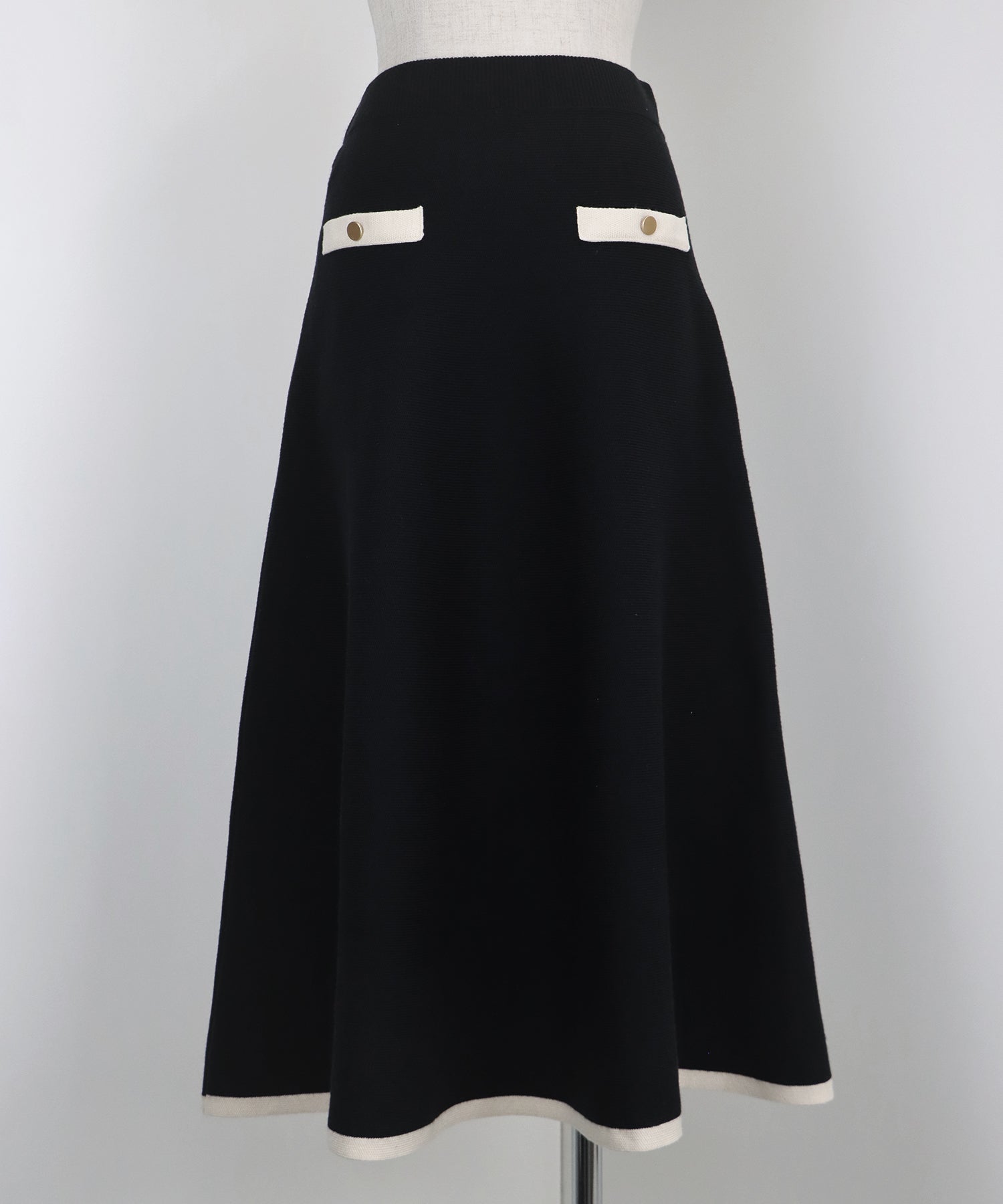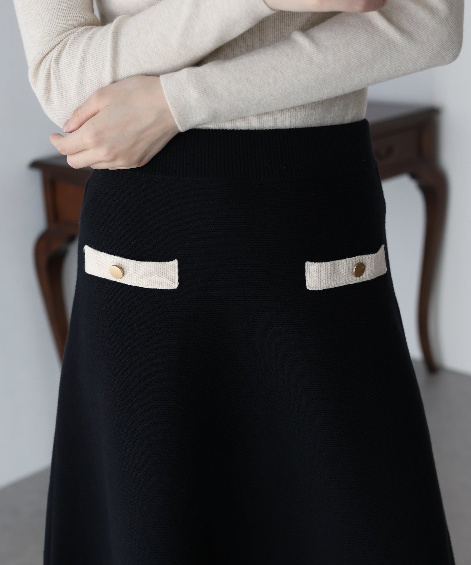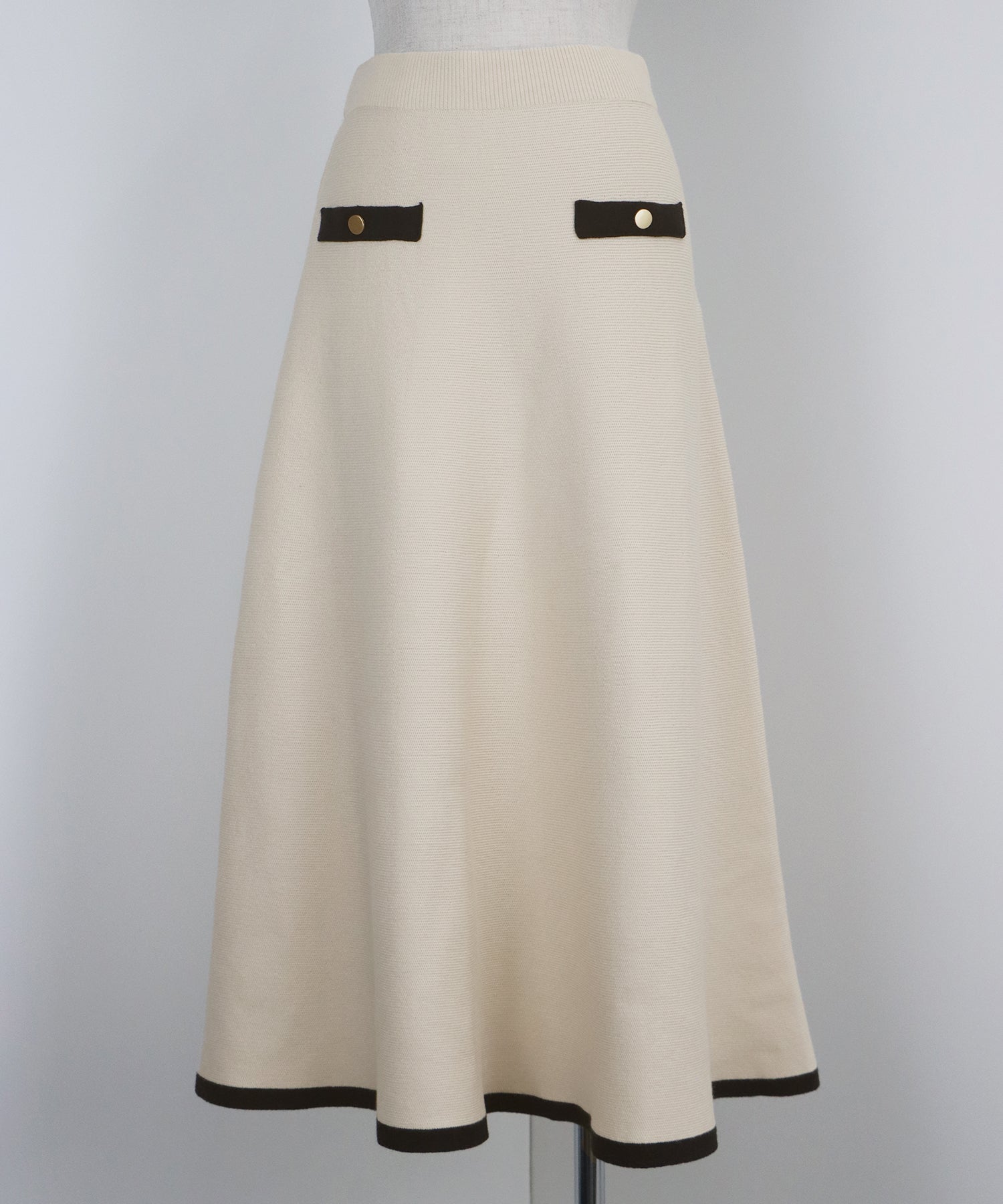 配色に金ボタンがアクセントになったニットスカート。