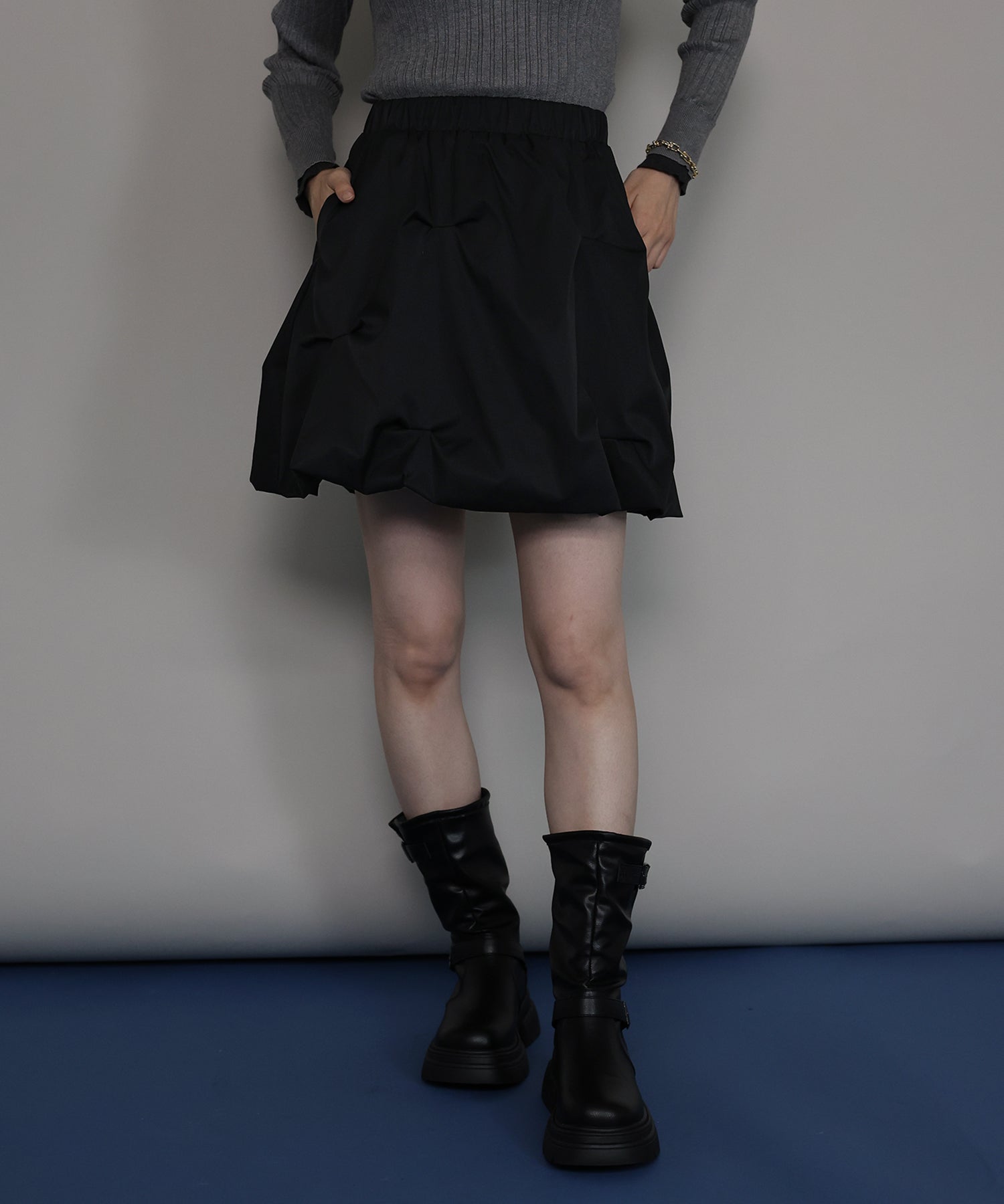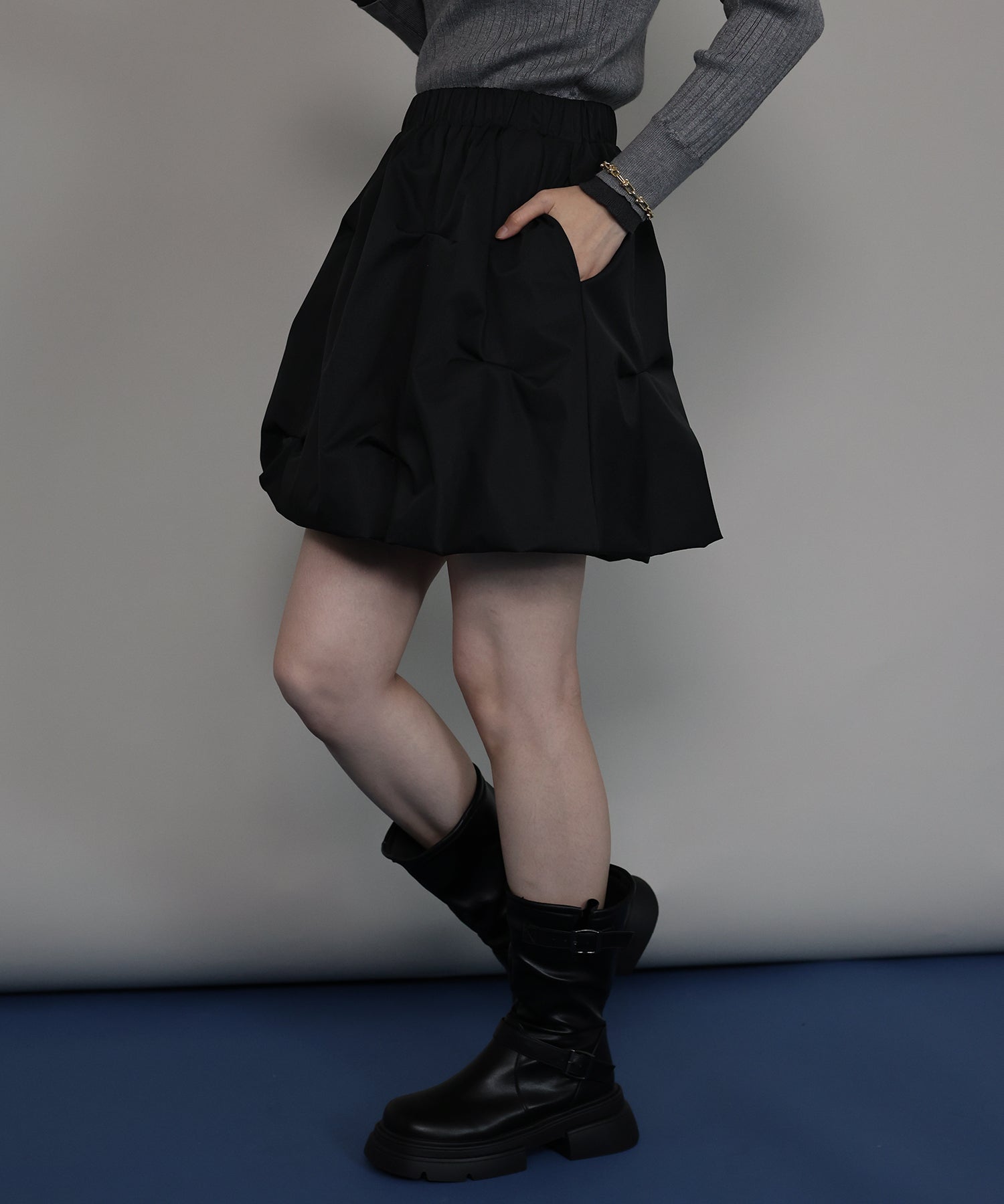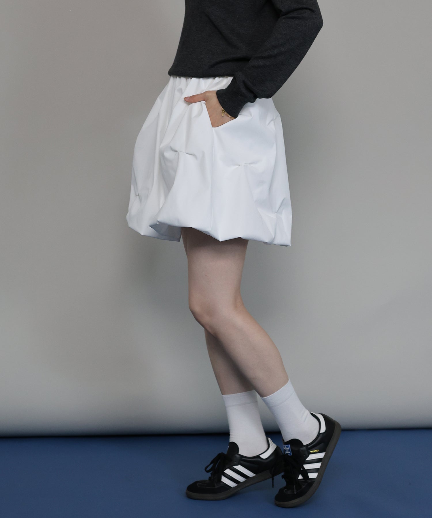 ?DETAIL ピンタック バルーンシルエット ウエストゴム ポケット有り インナーパンツ裏地付き