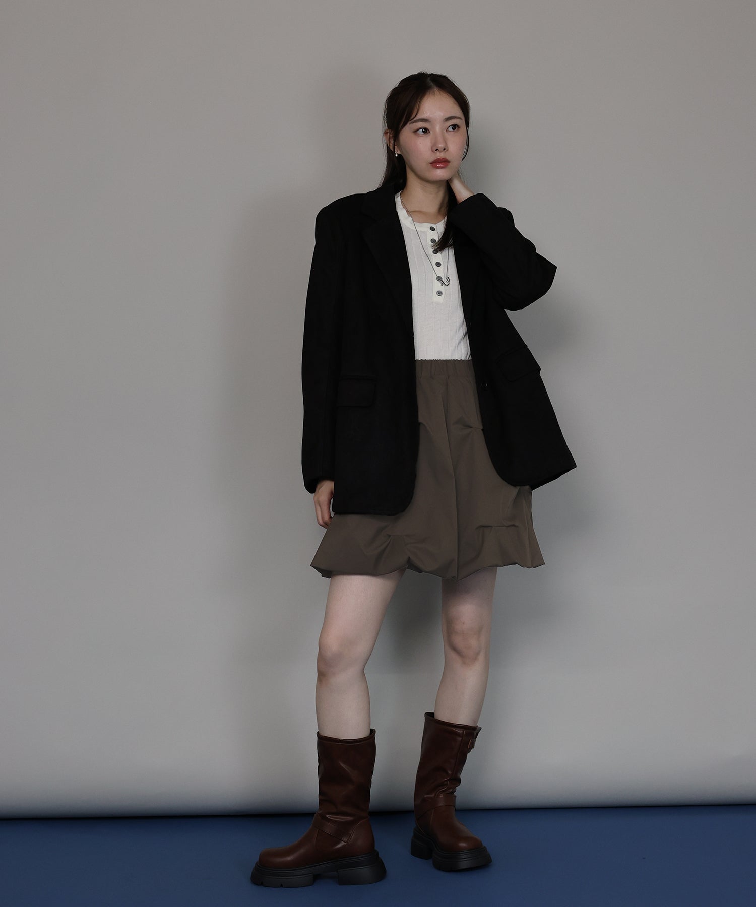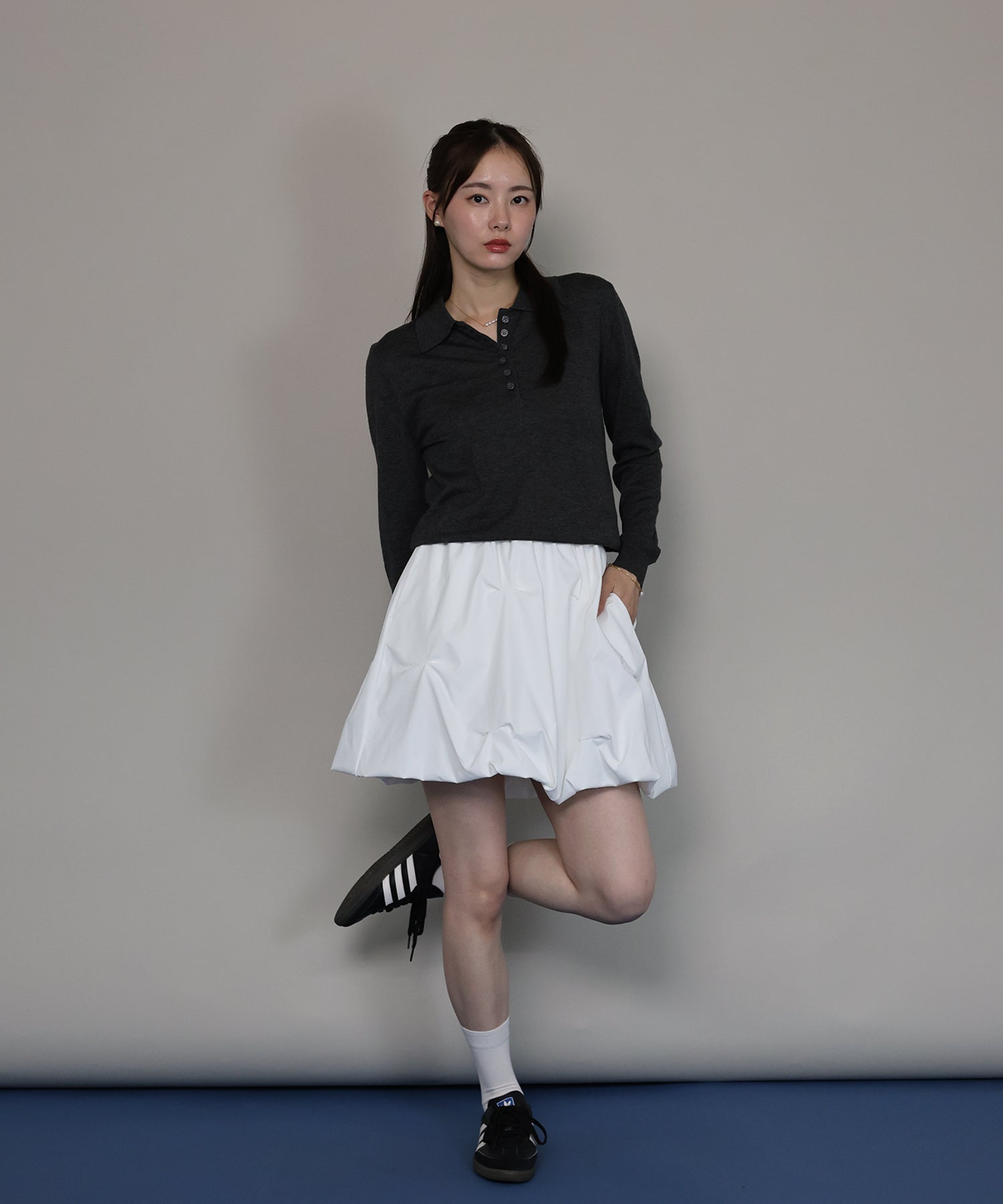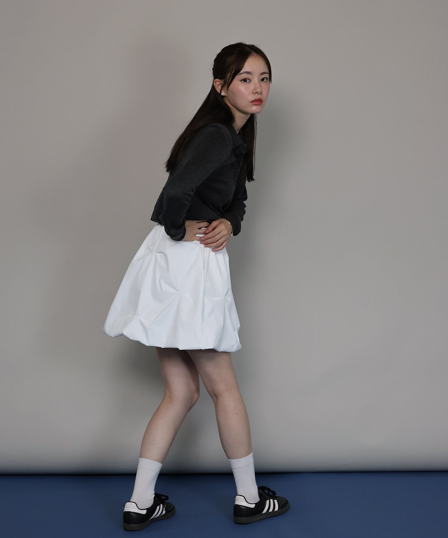 ?STYLING シャツやブラウス、ニットなど、どんなアイテムとも相性が良く オールシーズン、デイリーに着回していただけます。 ショート丈のトップスと合わせてバランスの良いコーデに、 あえてロング丈のトップスをタックアウトで着て抜け感のあるスタイルにも。 春秋はジャケット合わせがキレイめ&クラシックに着こなしたり、 冬はタートルネックやブーツ合わせもおすすめ◎