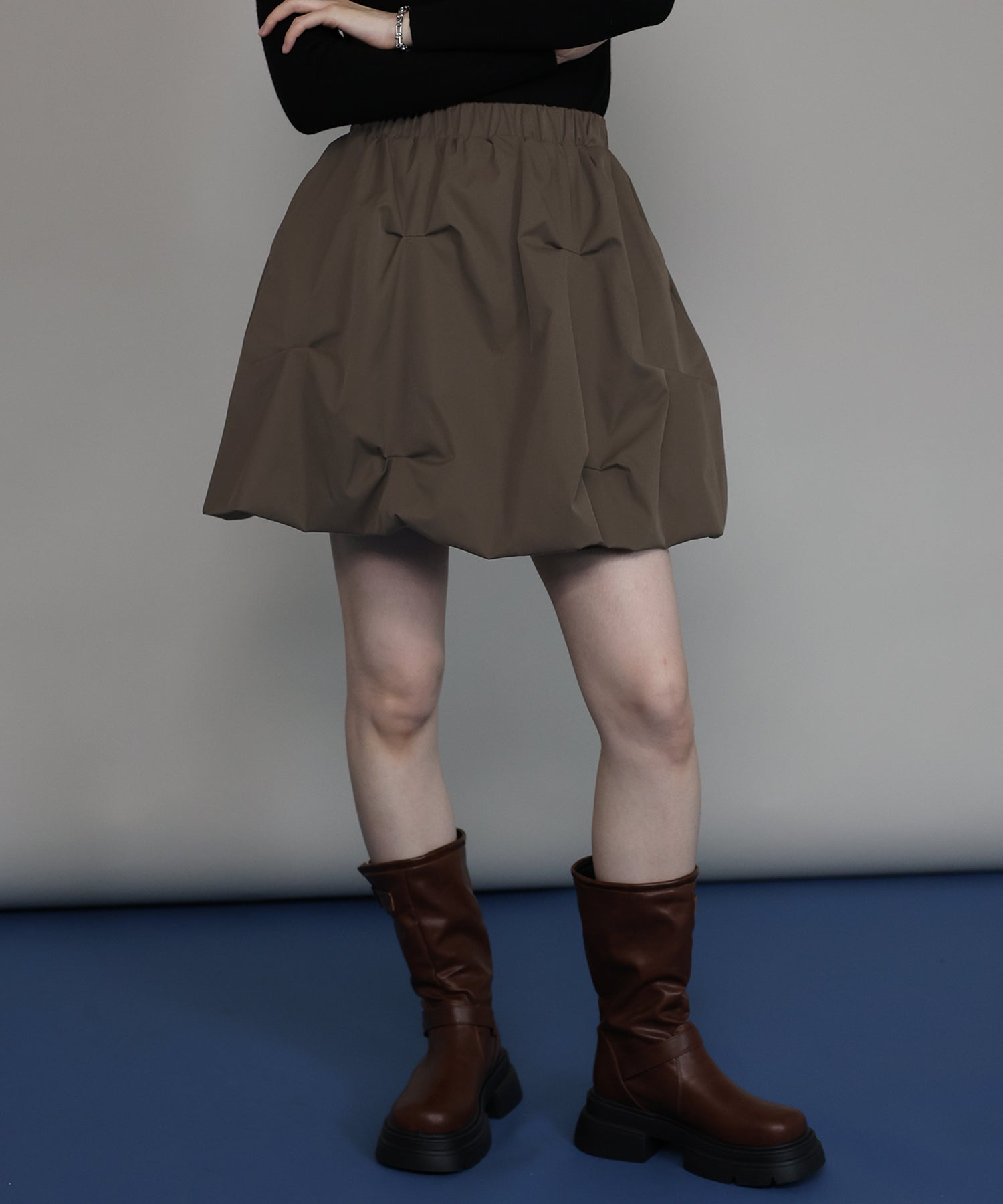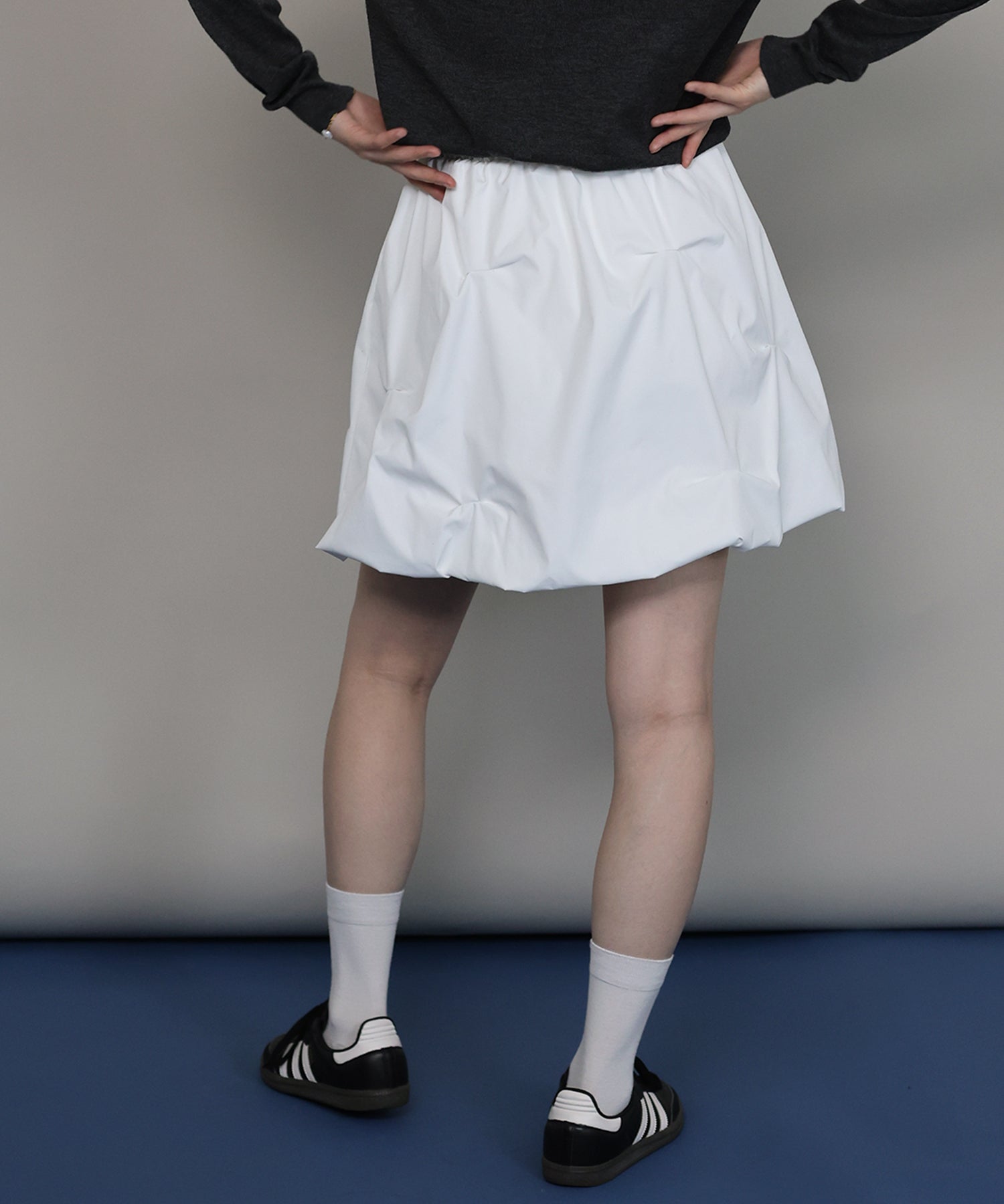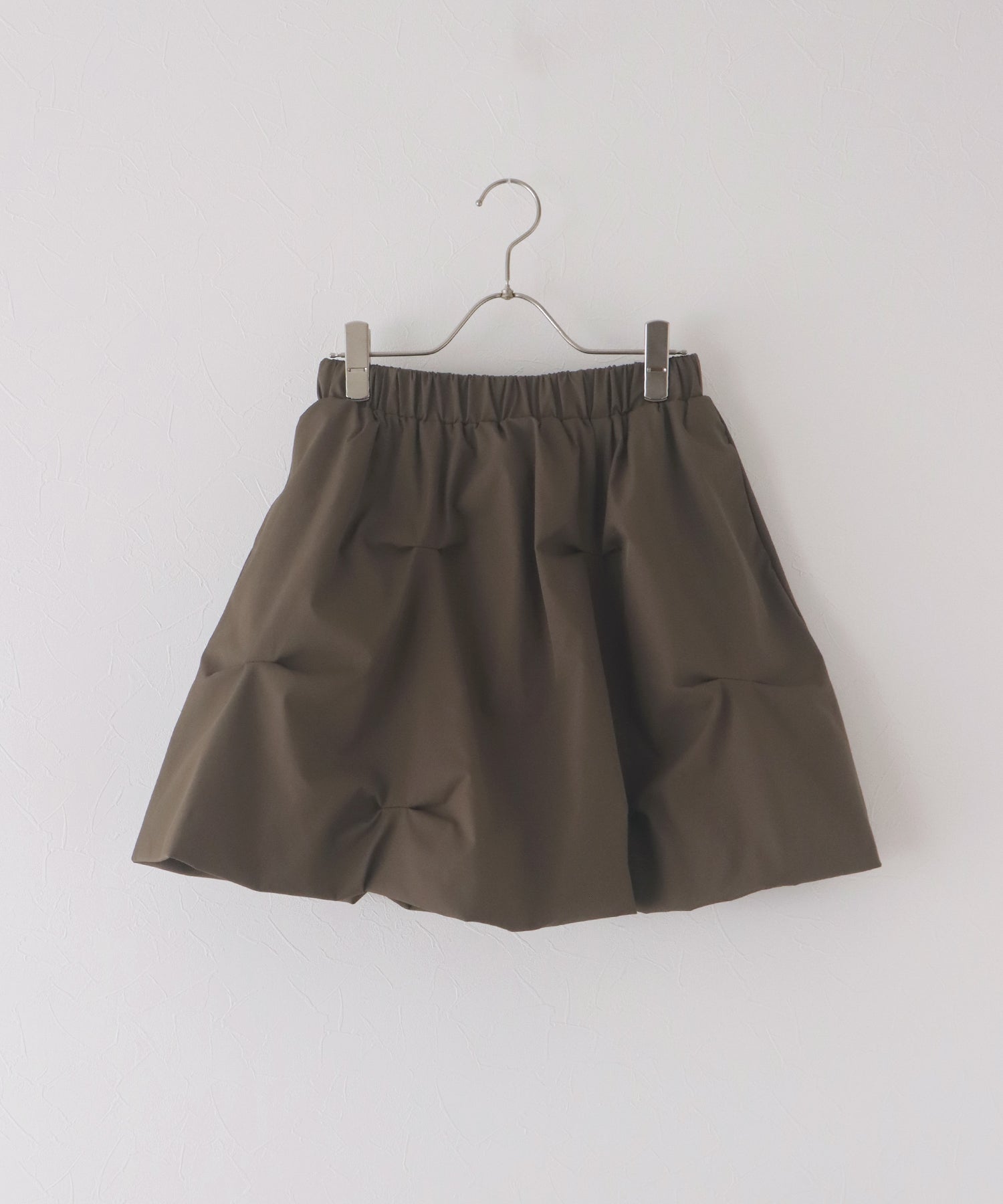 立体感のあるピンタックがお洒落なバルーンミニスカート ?POINT イレギュラーに入ったピンタックが目を引く存在感を発揮。 ふんわりと丸みを帯びたシルエットが女性らしい印象を演出します。 ミニ丈ながらも程よいボリューム感で、脚をすっきりと見せつつスタイルアップ効果も◎ ウエストはゴム仕様で、快適な履き心地と動きやすさを両立。 裏地にインナーパンツ付きなので、安心して着用できるのもうれしいポイントです。 シンプルながらもトレンド感のあるデザインで、デイリーにもお出かけにも活躍する1着です。