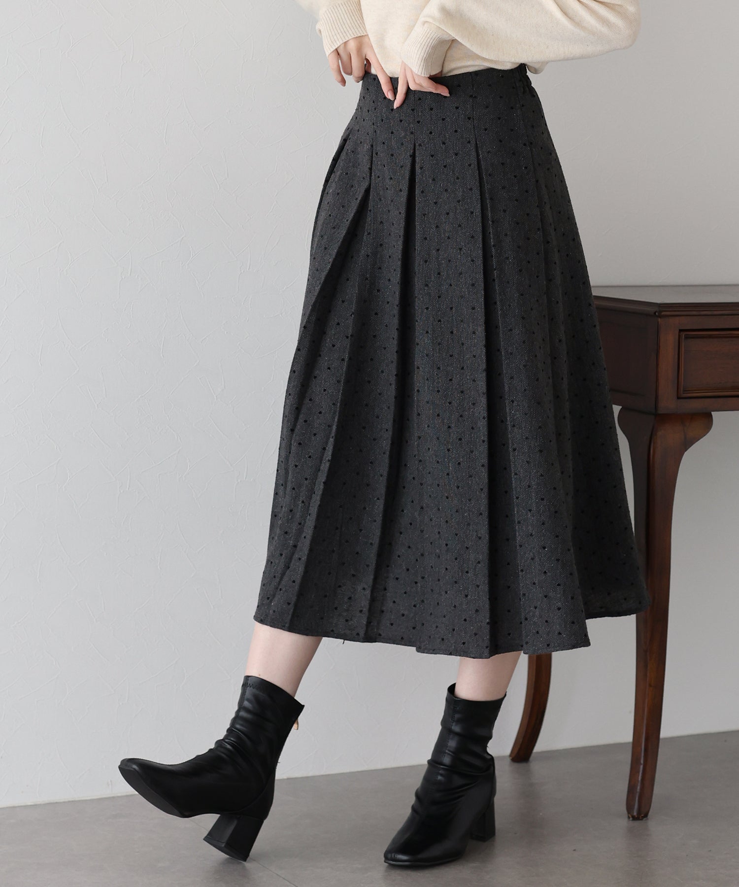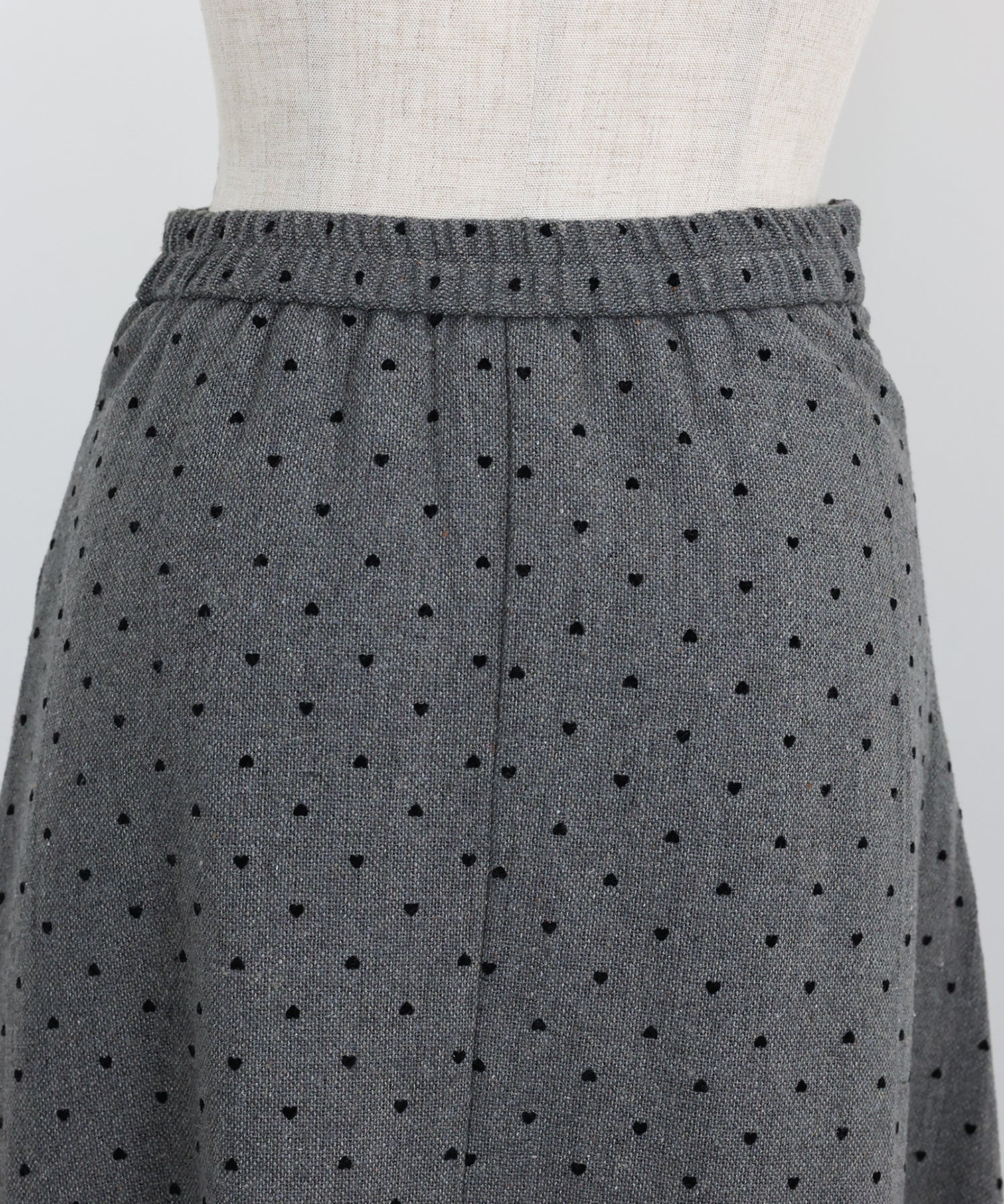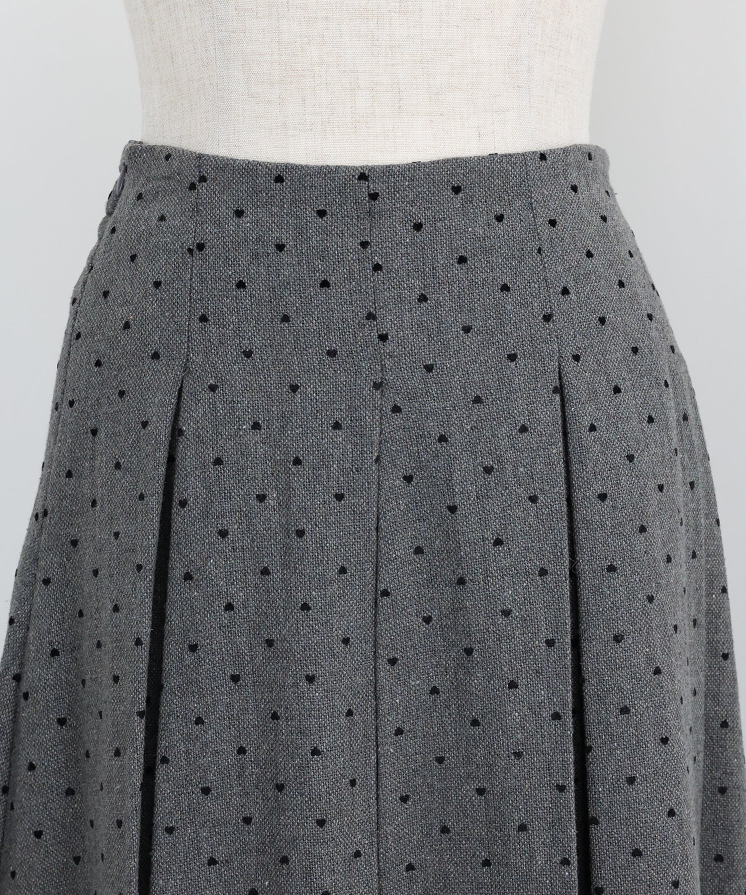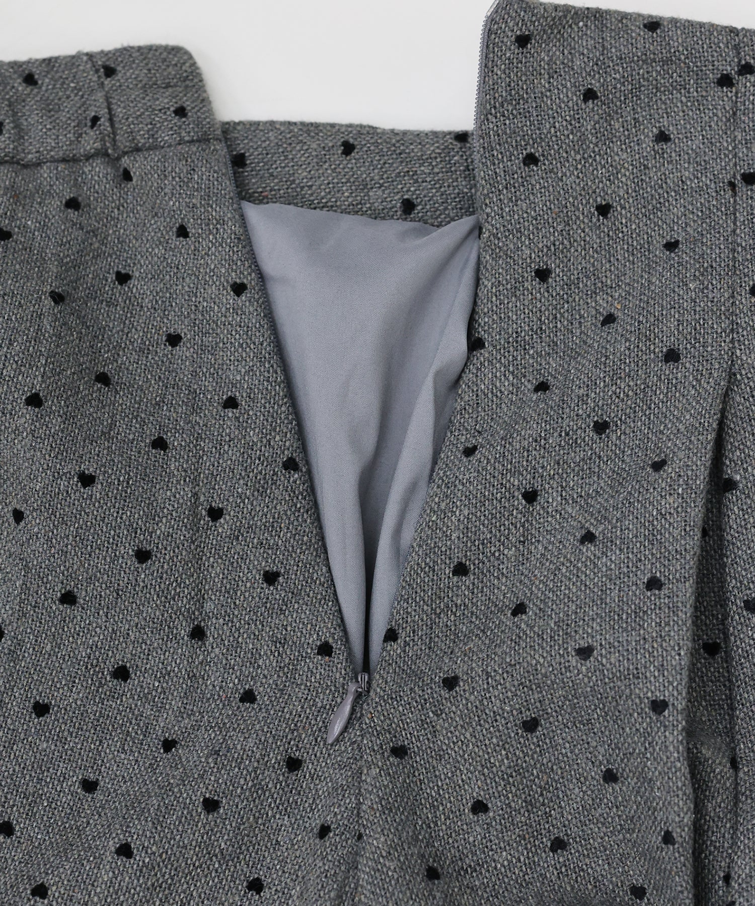 ツイード×ハート柄フロッキーが秋冬らしい魅力のプリーツスカート。