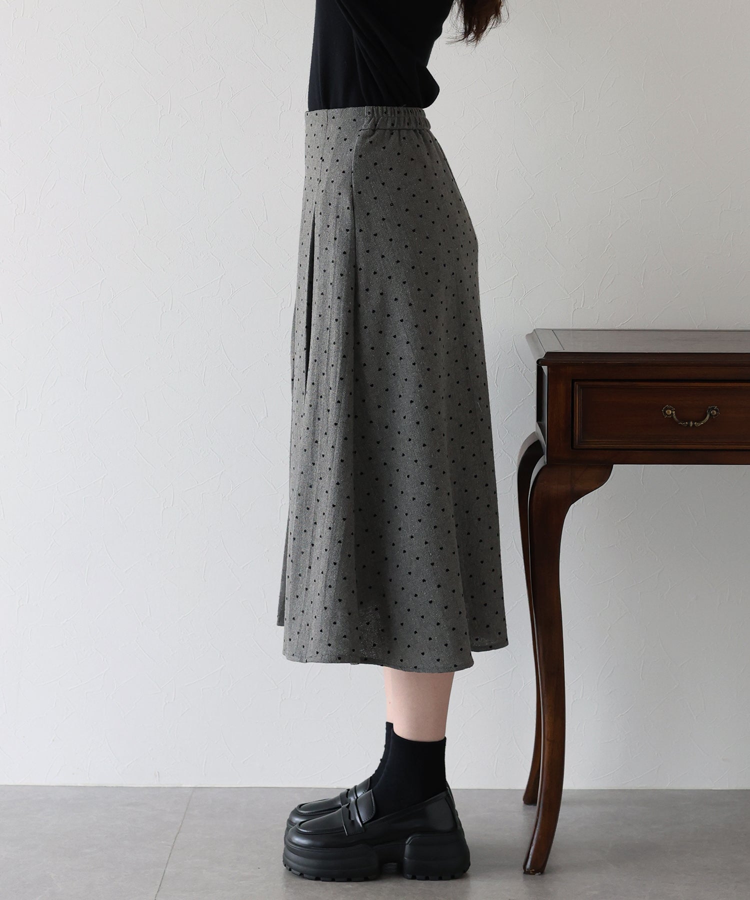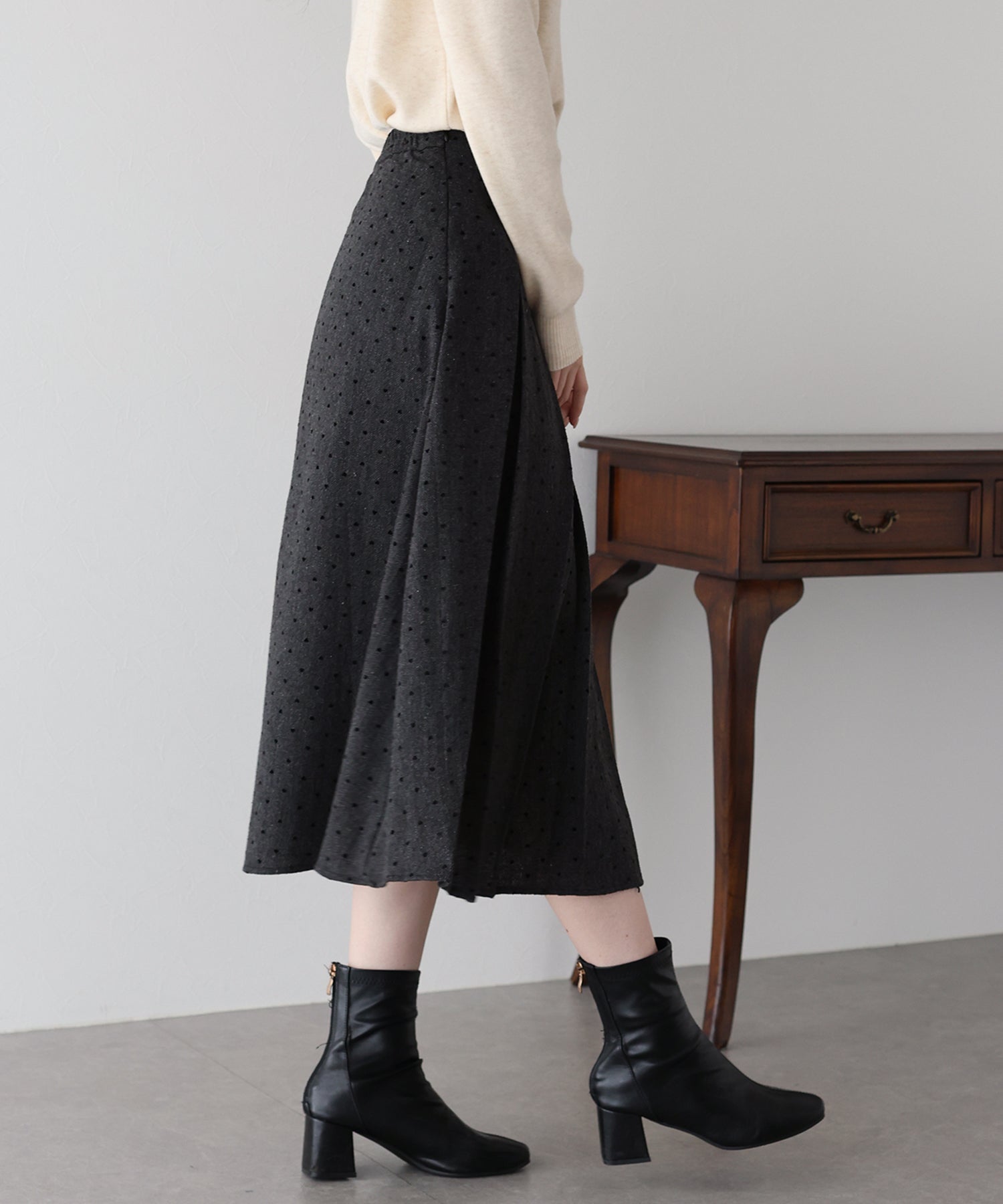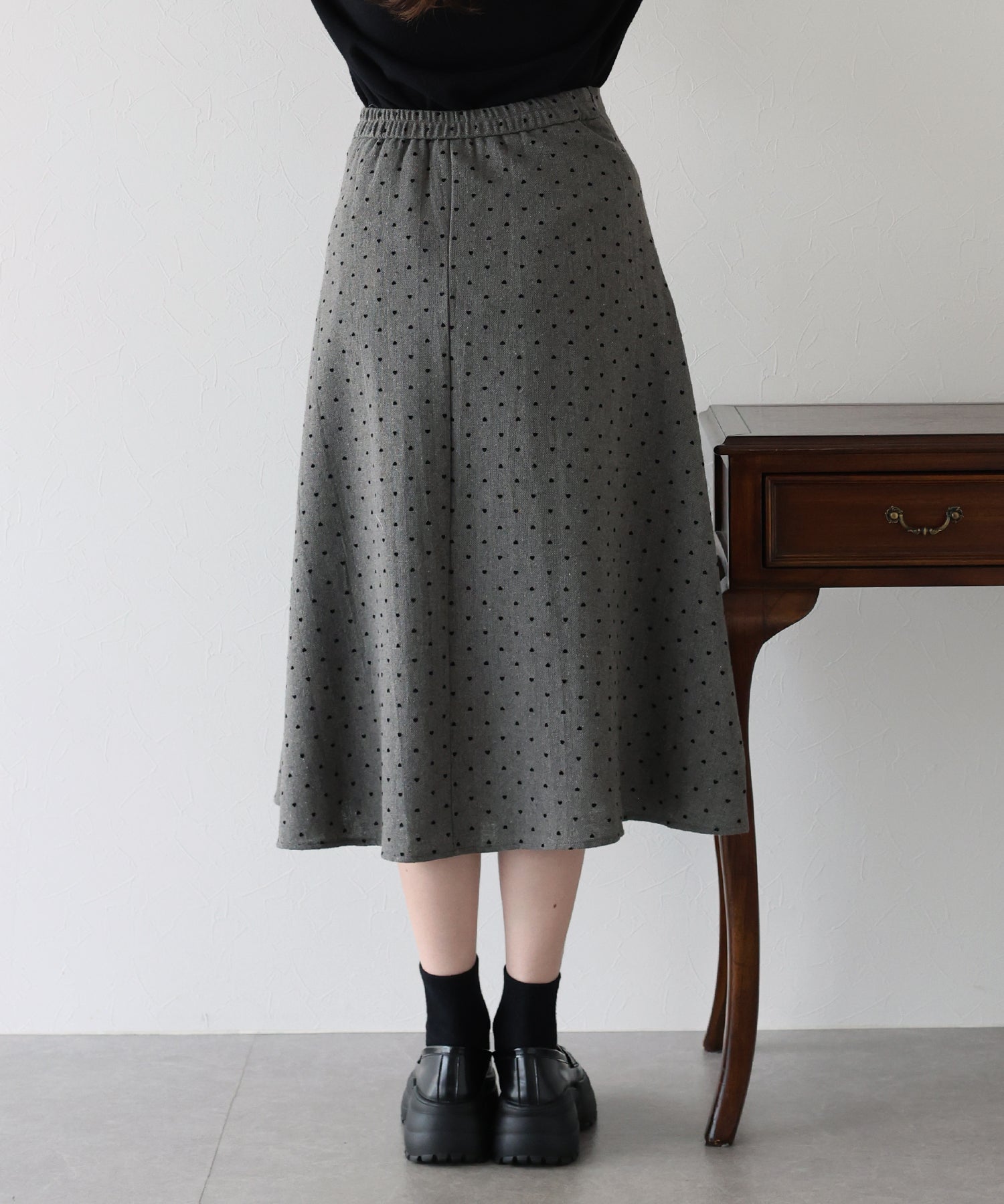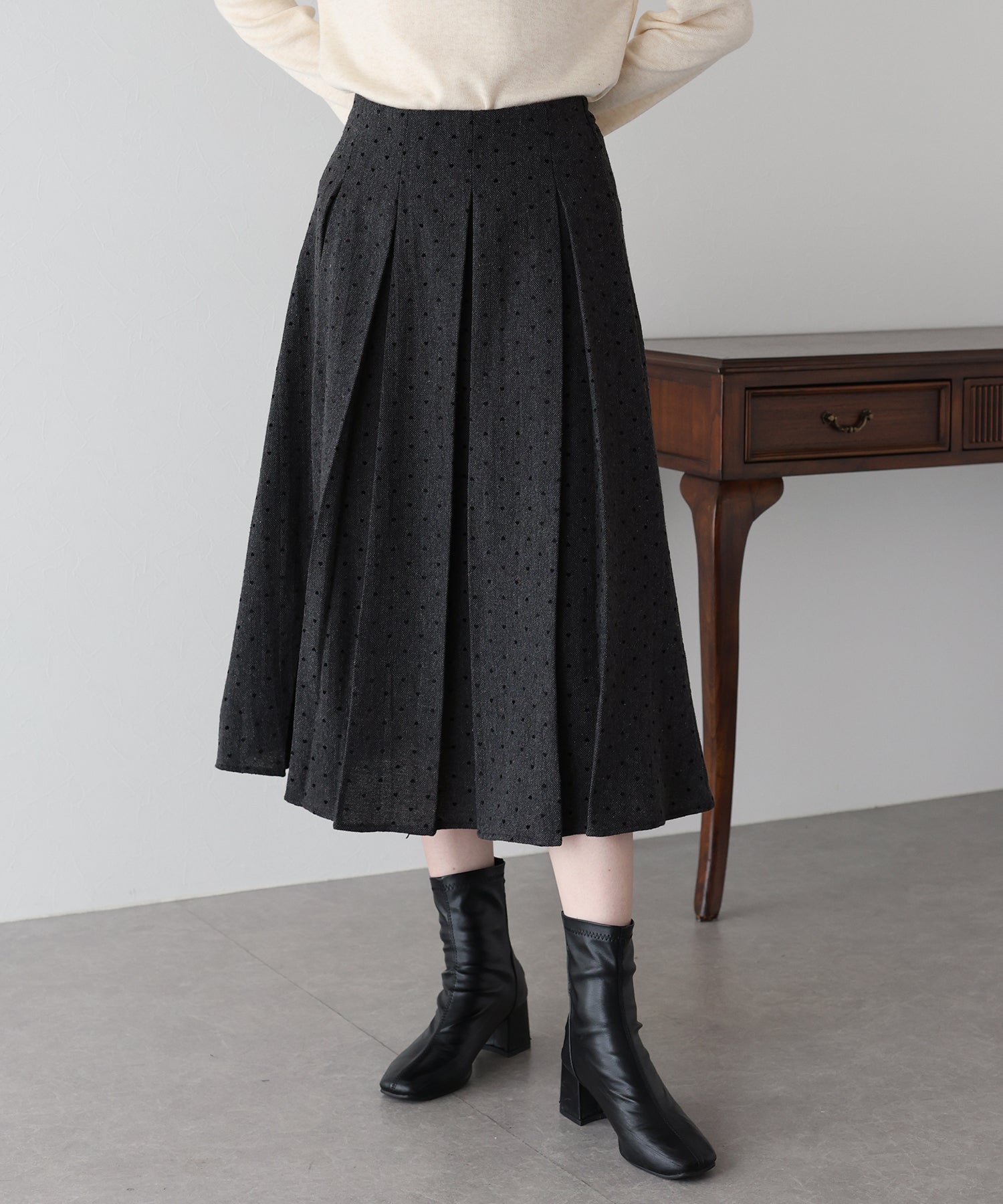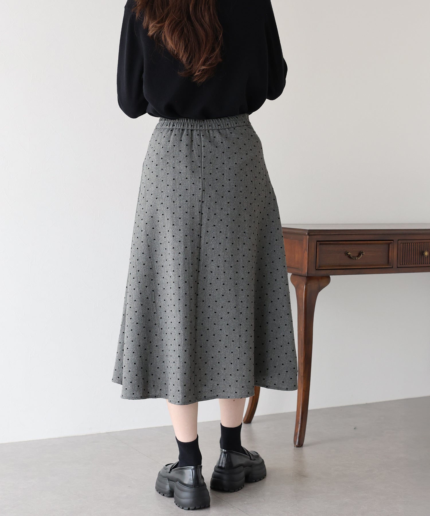 ツイード×ハート柄フロッキーが秋冬らしい魅力のプリーツスカート。