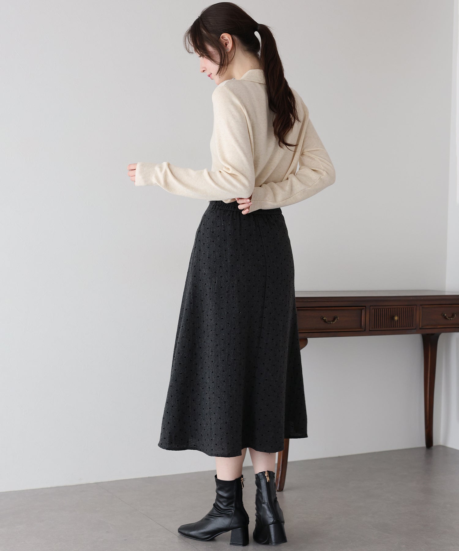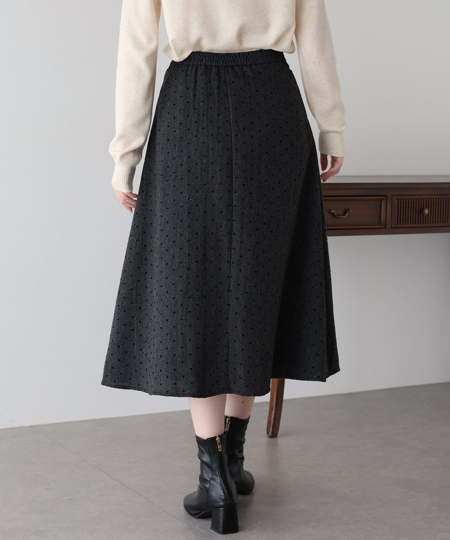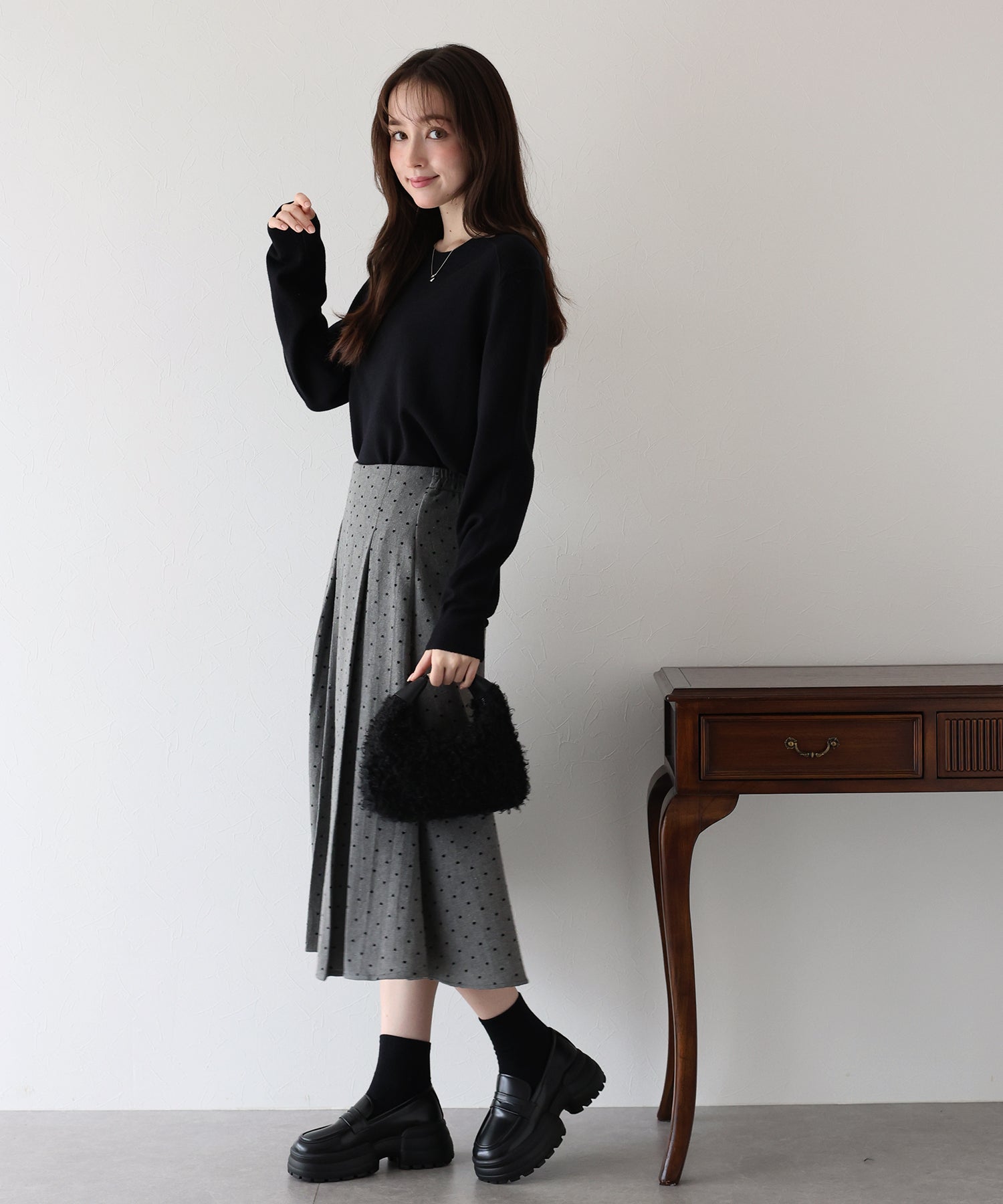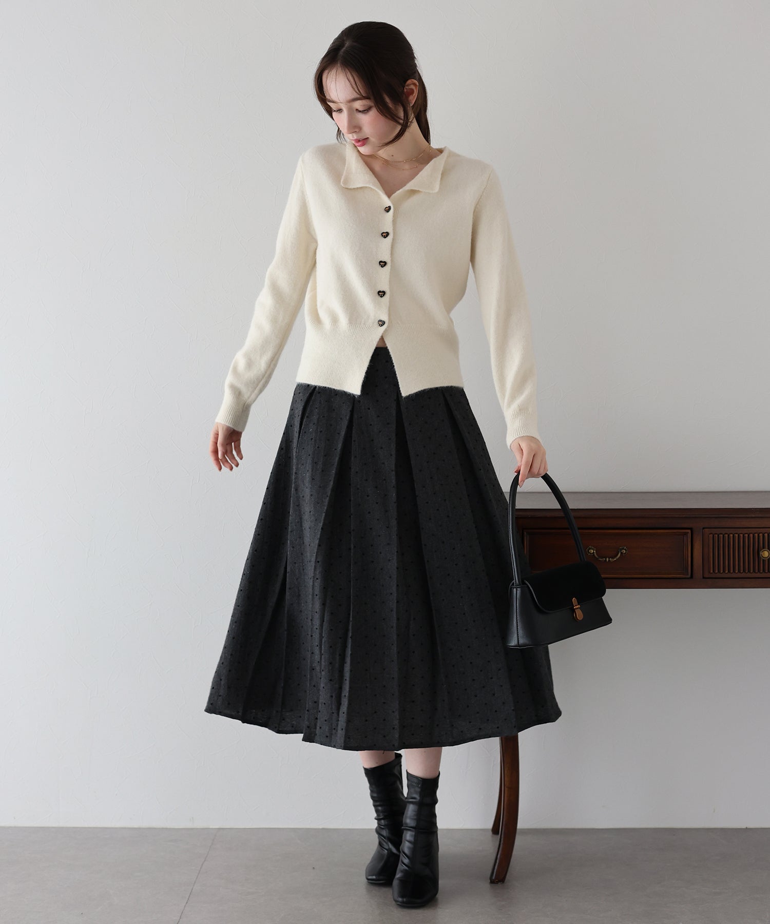 ツイード×ハート柄フロッキーが秋冬らしい魅力のプリーツスカート。