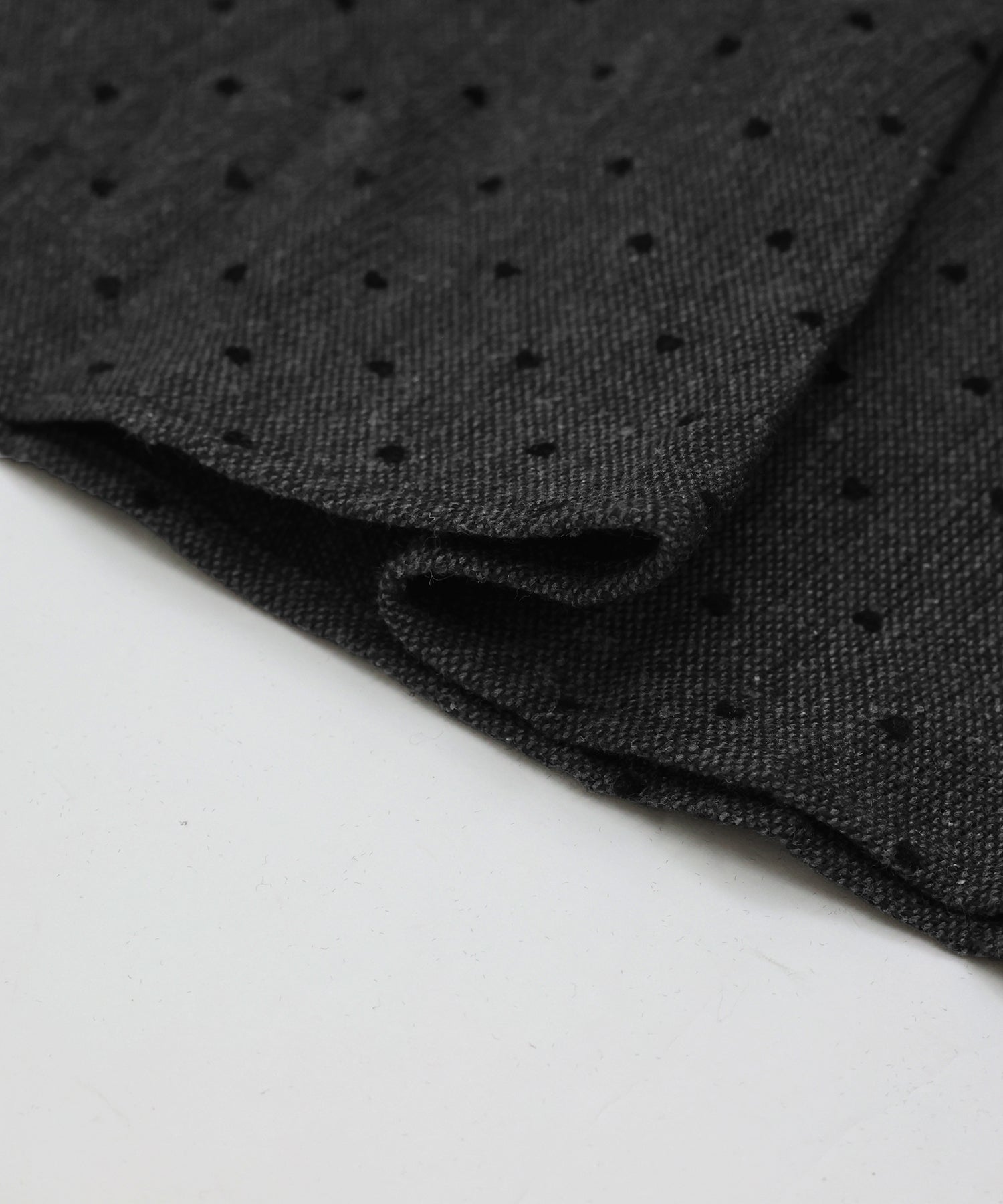 | 生地 | ハートドット柄のフロッキー加工を施したウール混のツイード素材