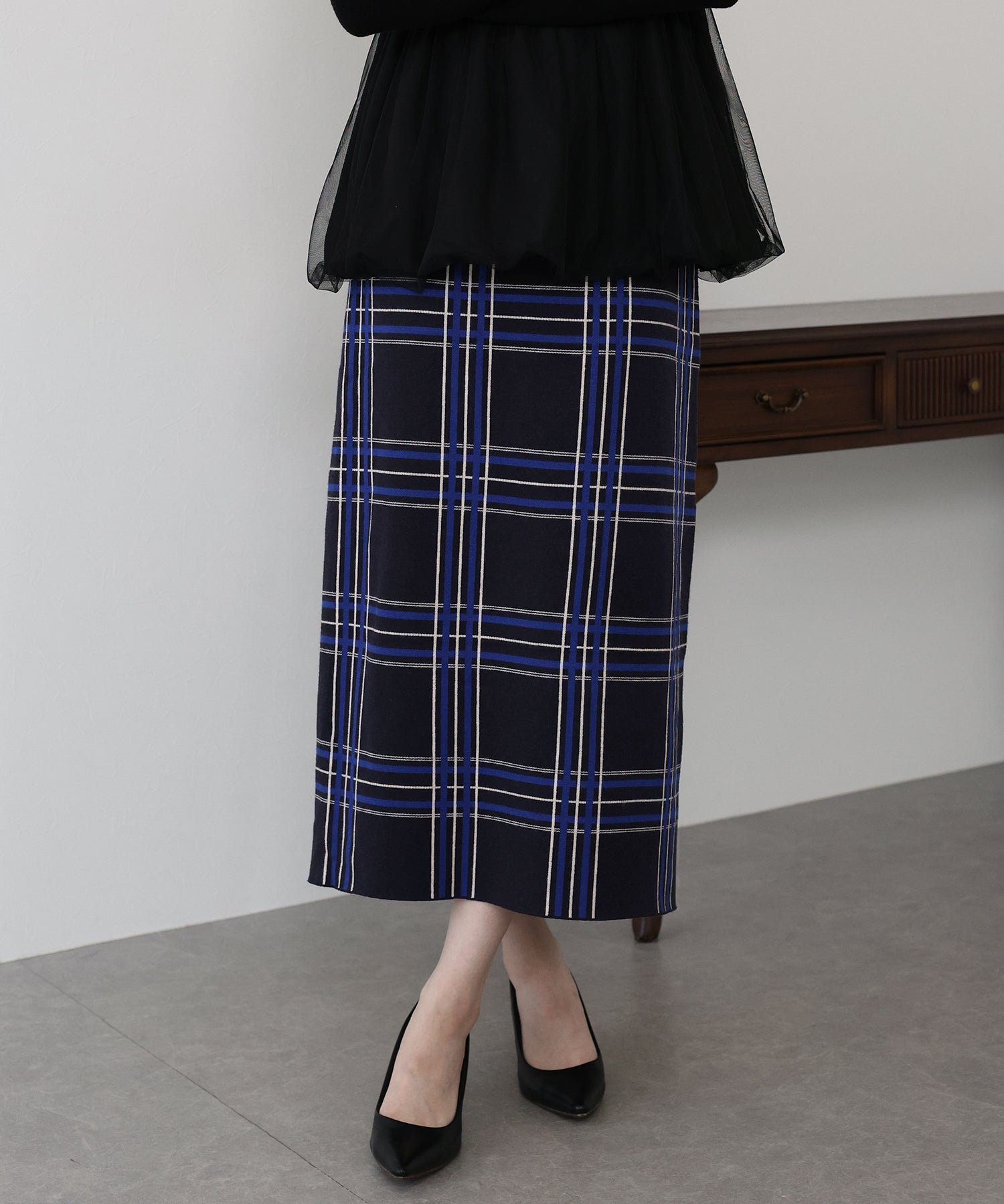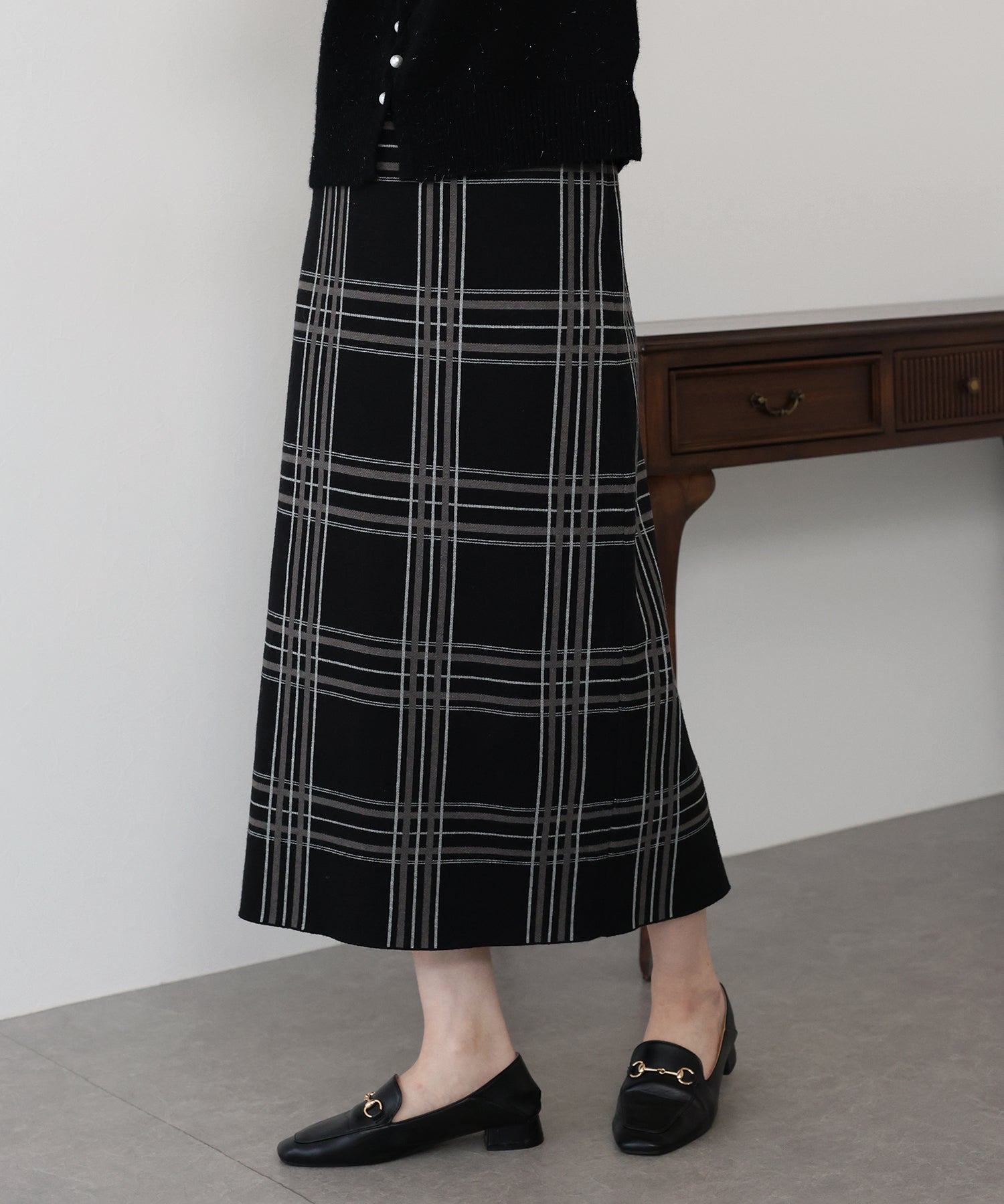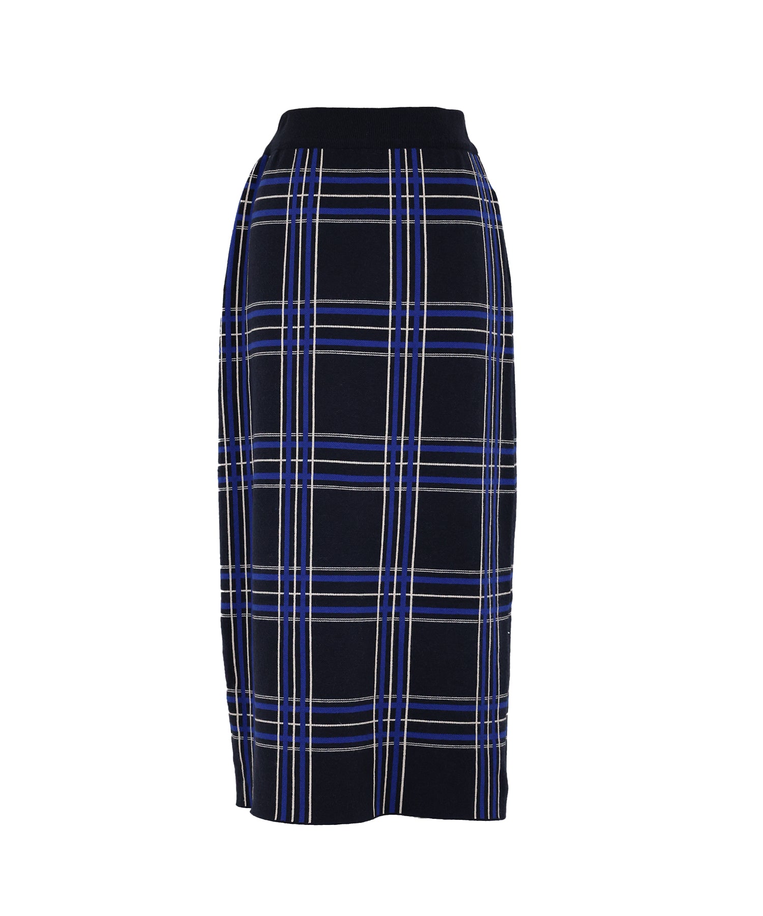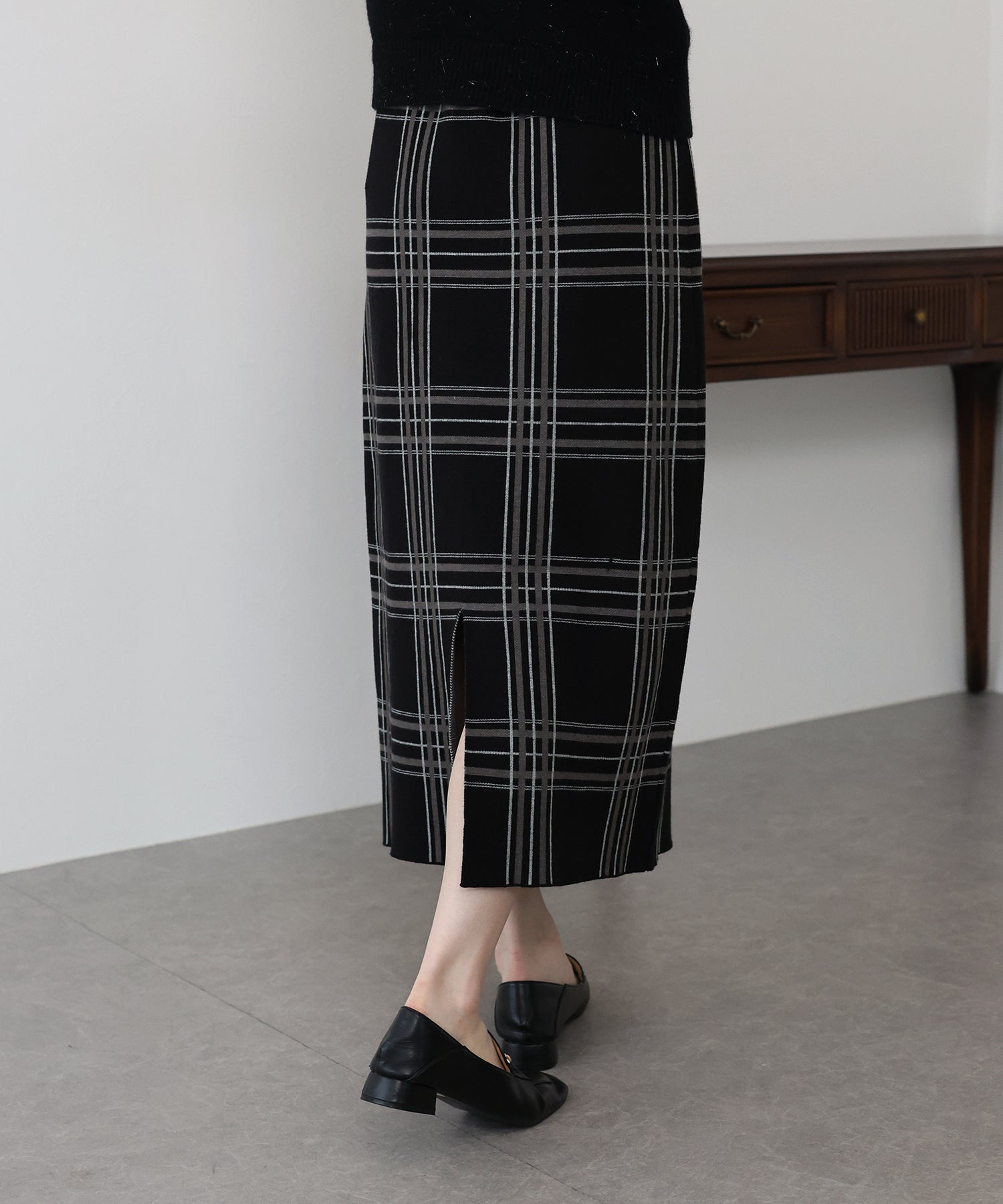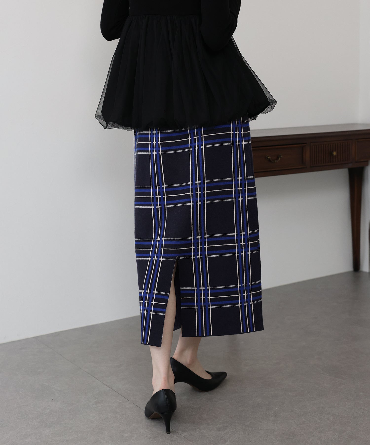 秋冬を先取りできるチェック柄が目を引くニットタイトスカート。