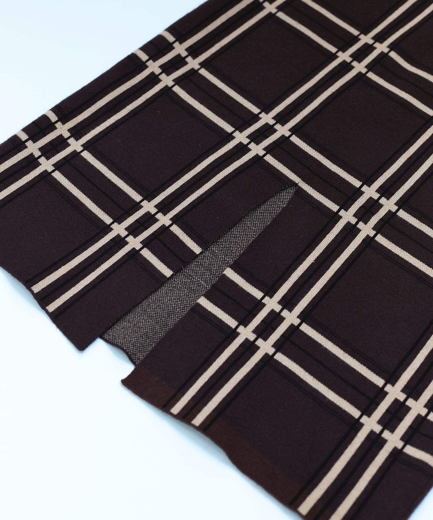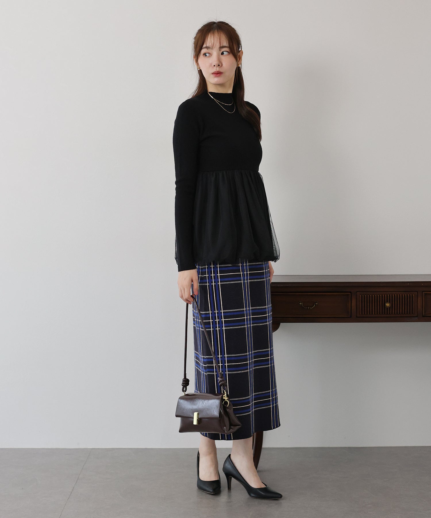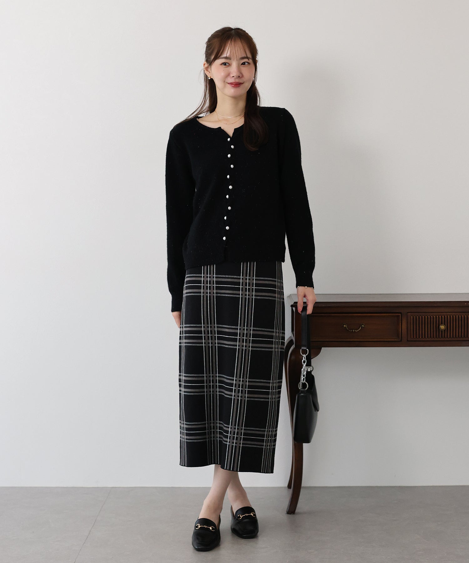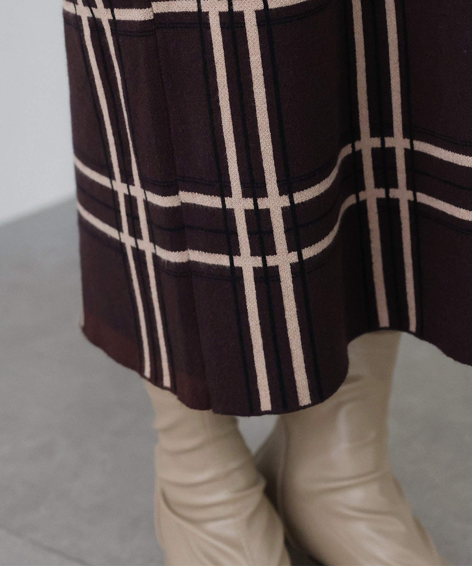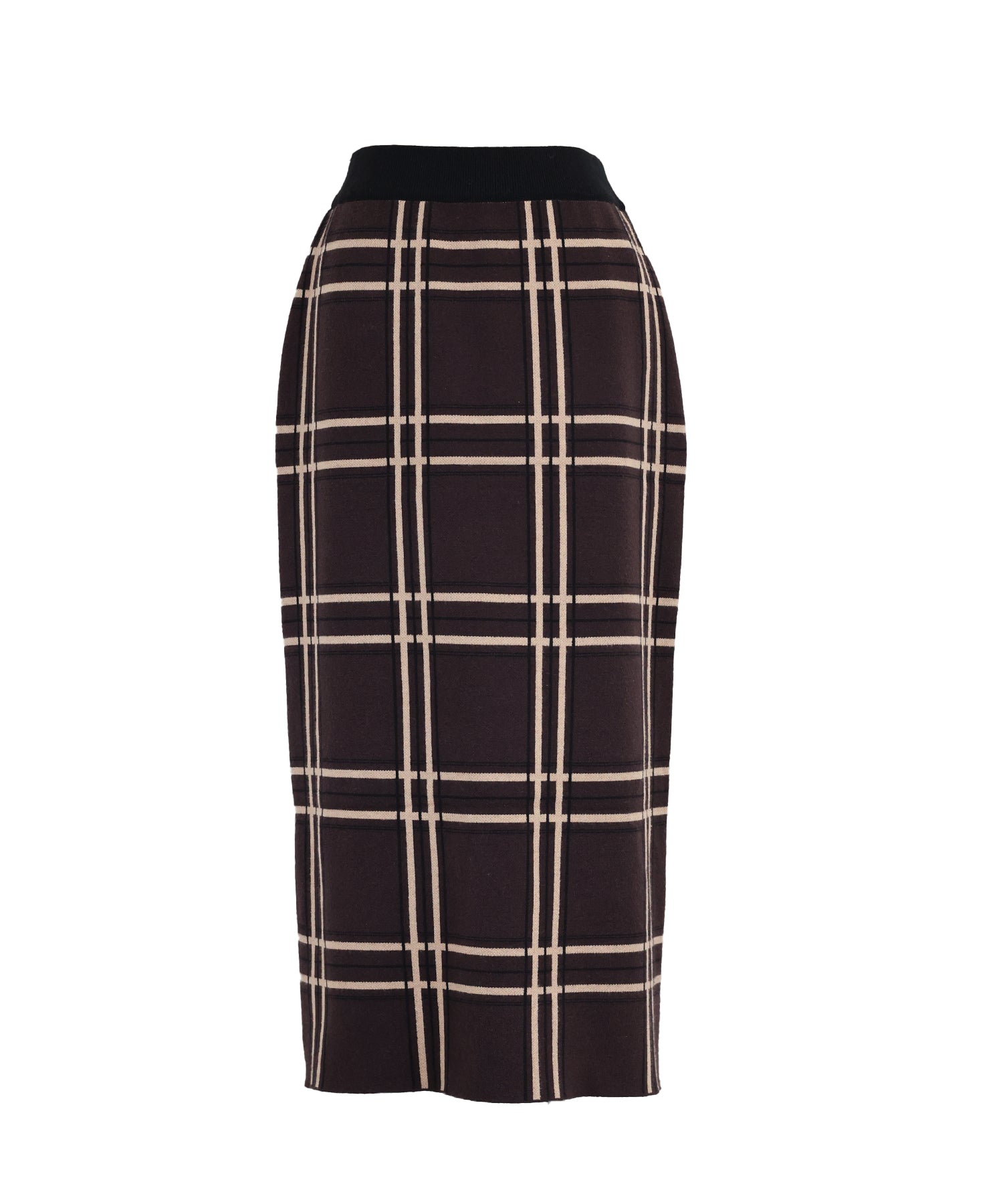 秋冬を先取りできるチェック柄が目を引くニットタイトスカート。