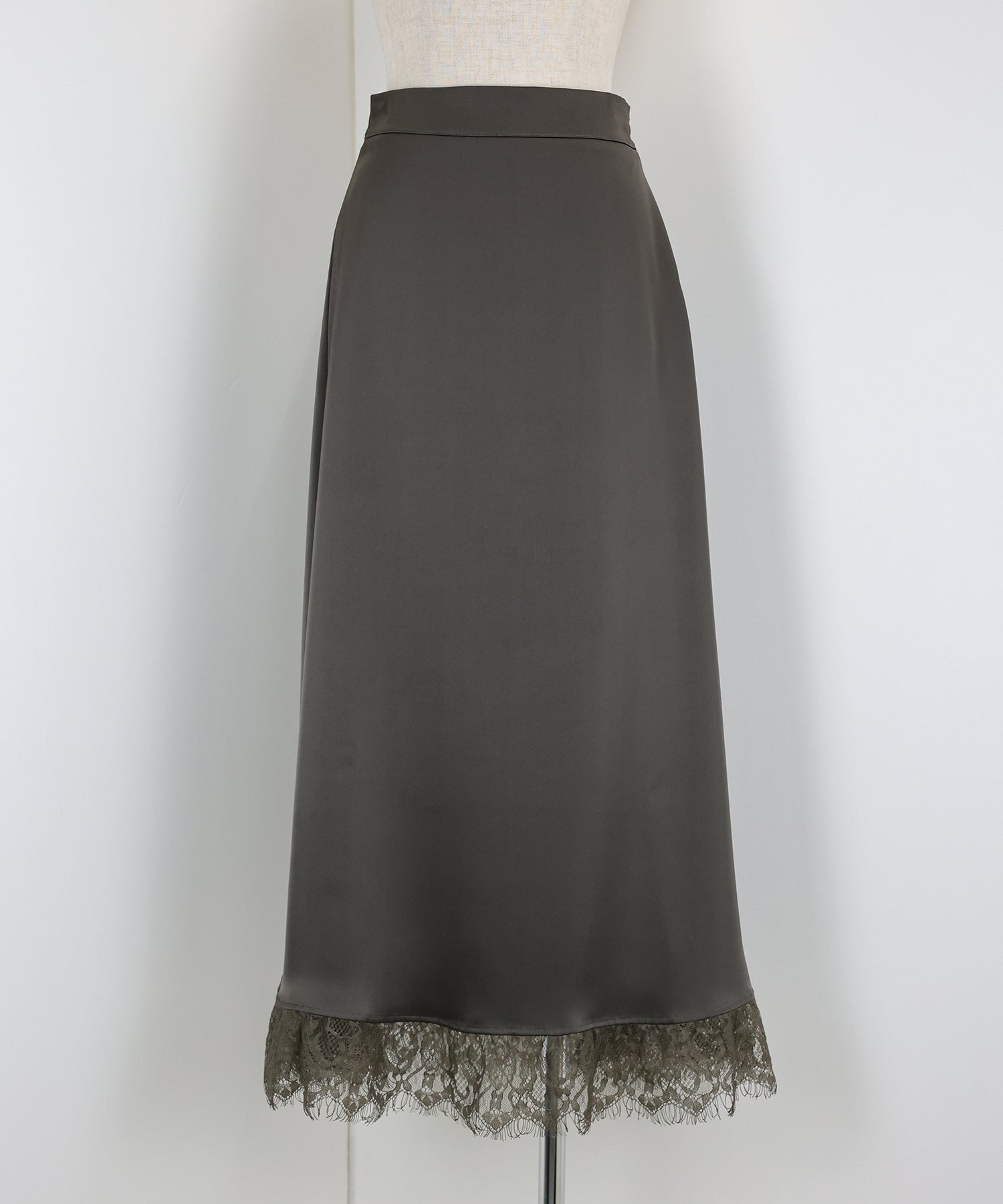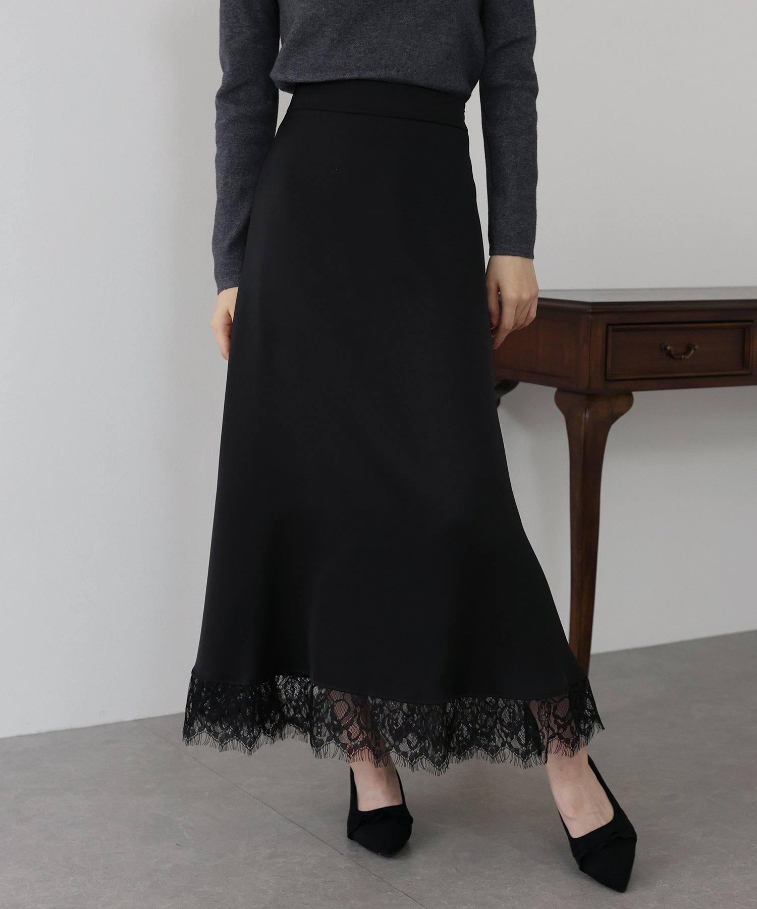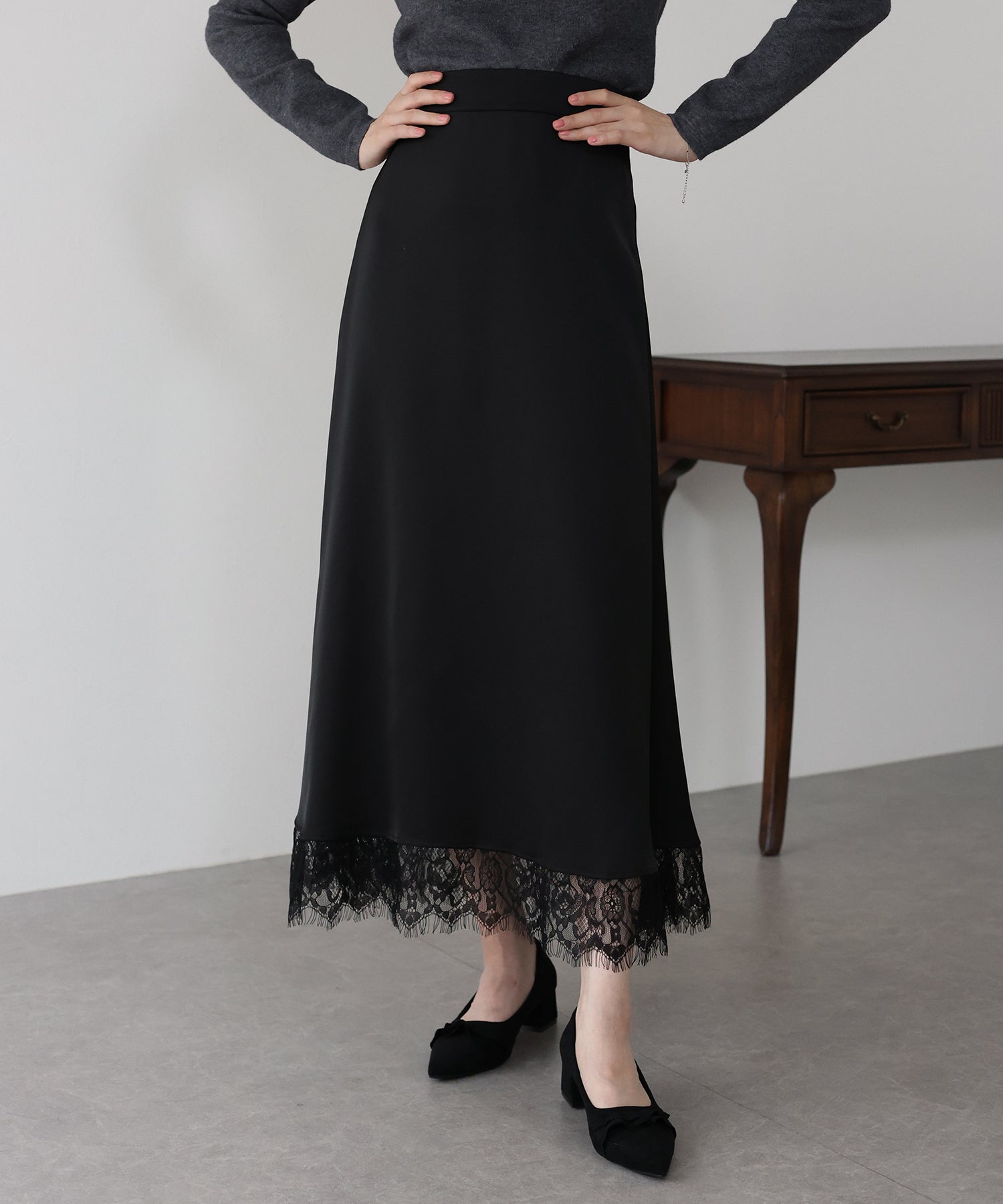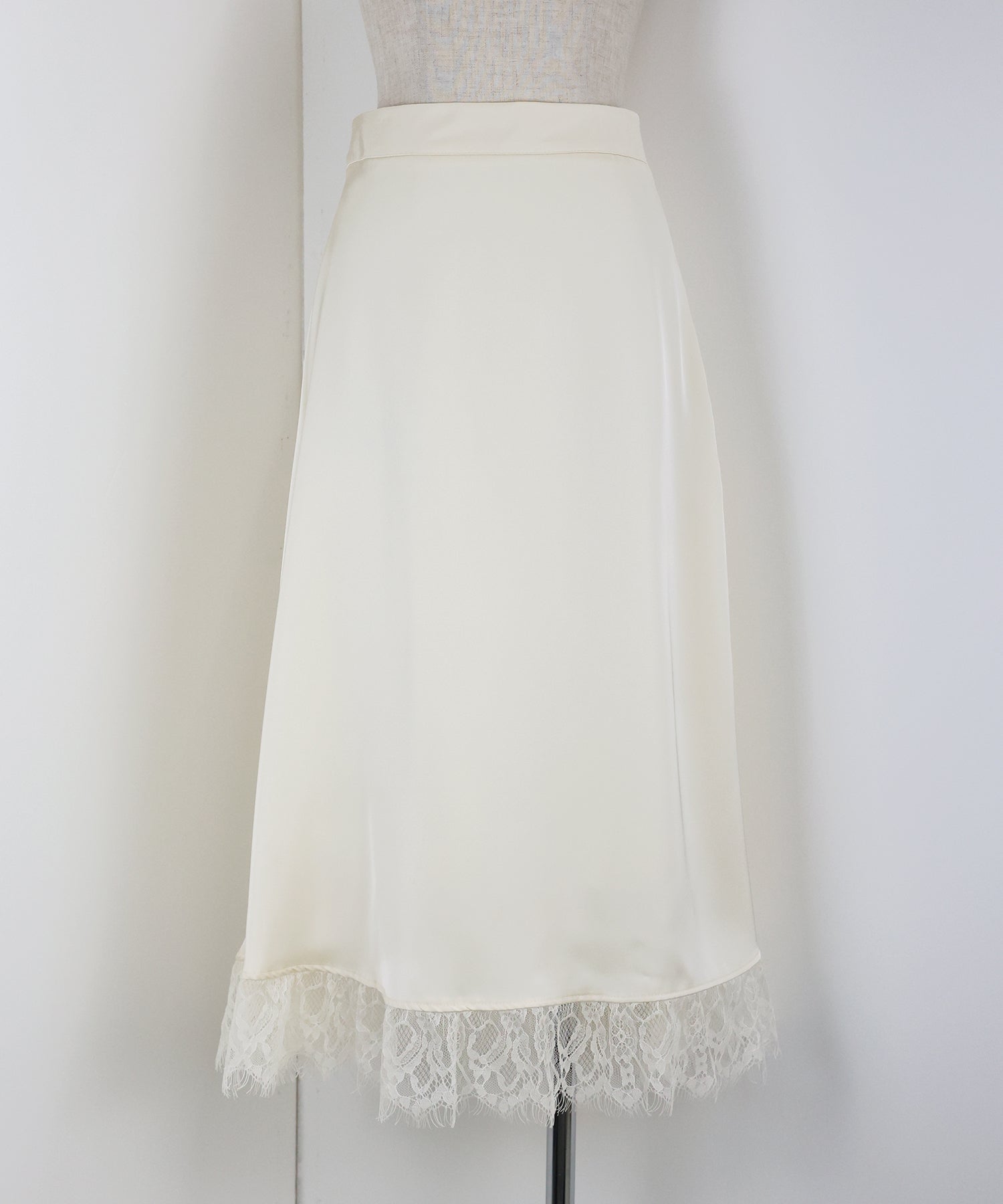 上品で華やかに仕上がる裾レース付きサテンスカート