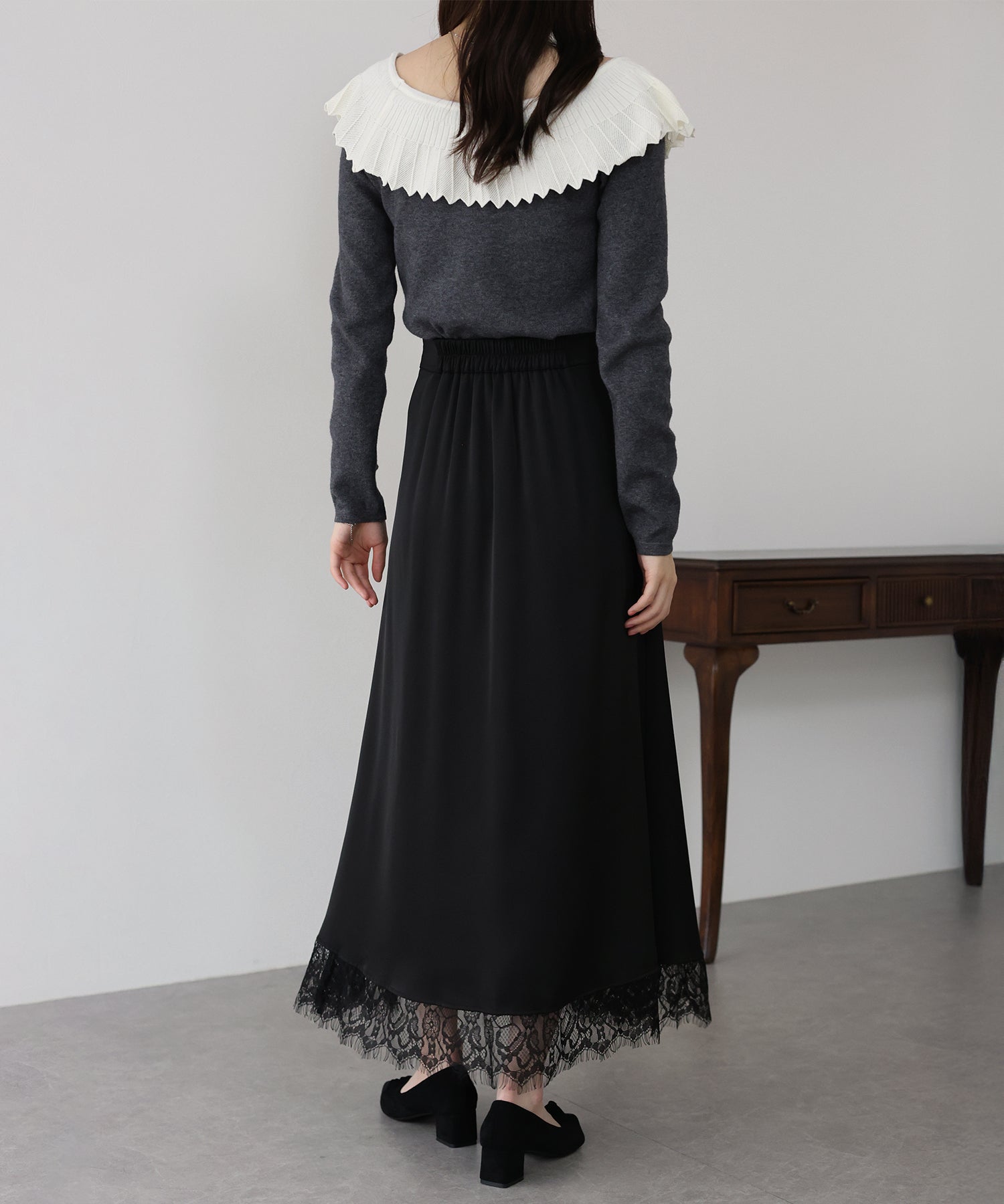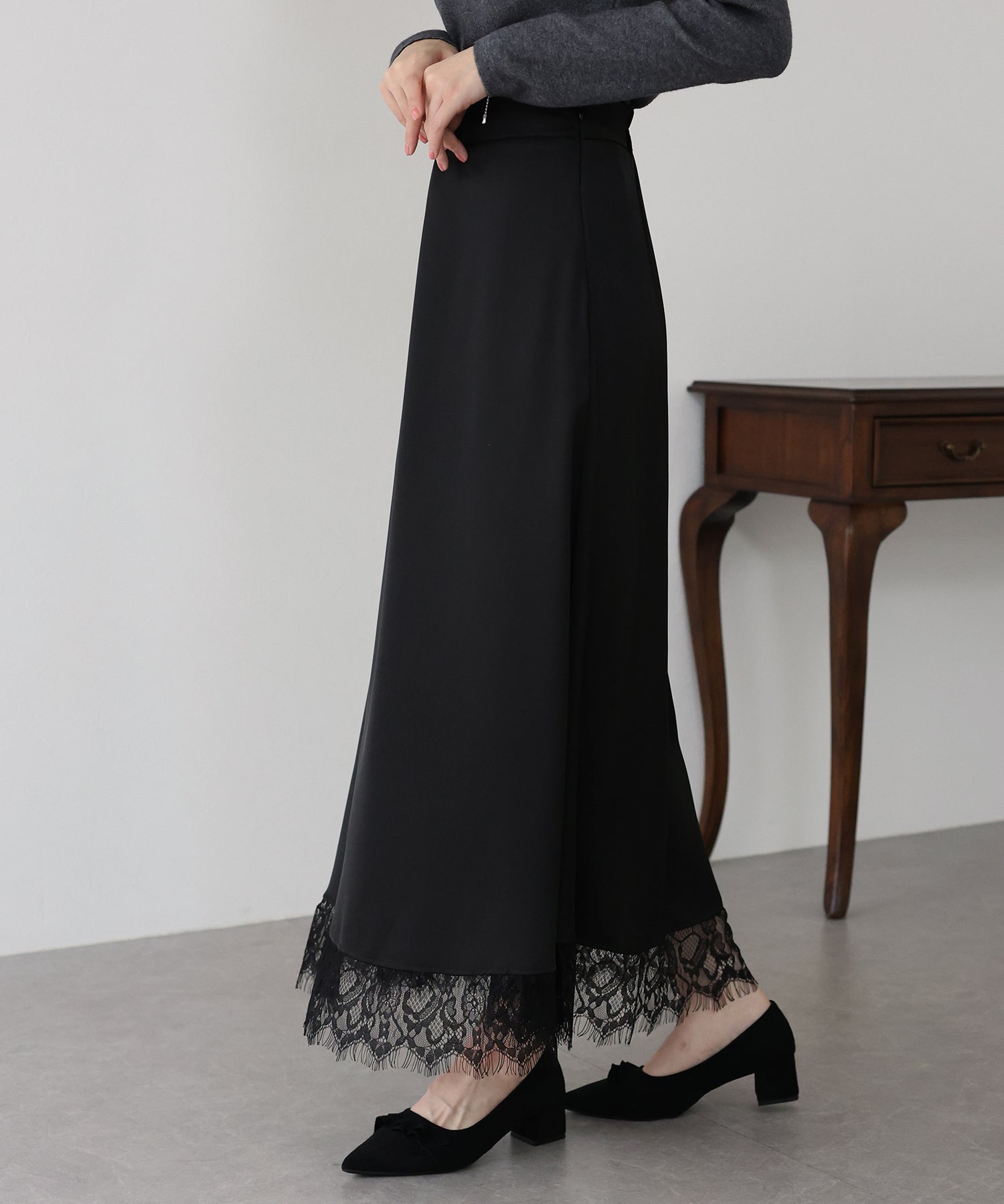 ?DETAIL ウエストバックゴム 裏地あり ファスナーあり 裾レースデザイン