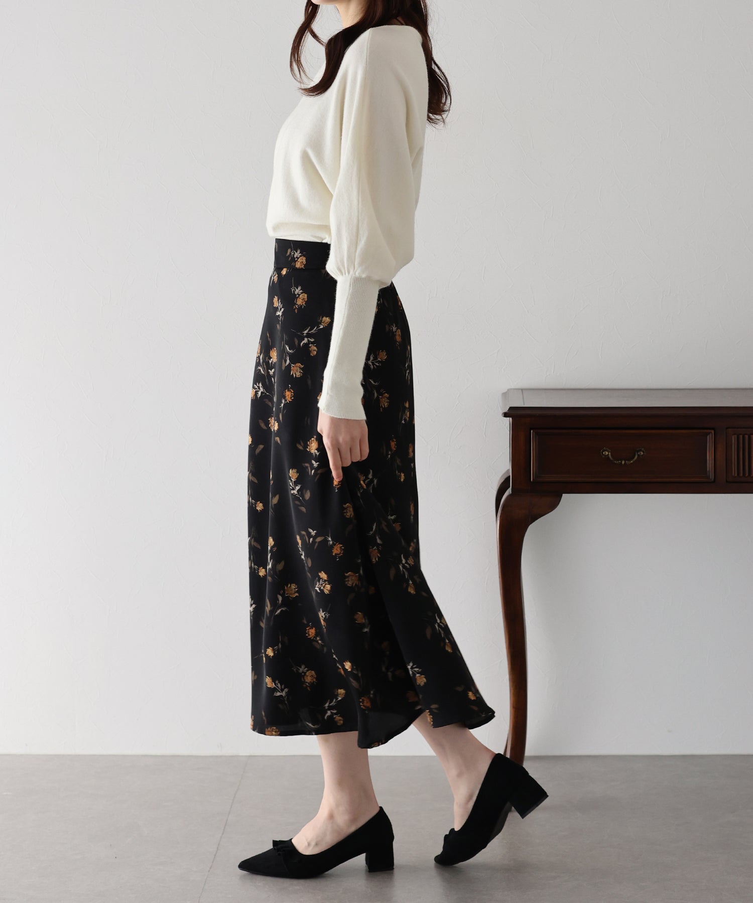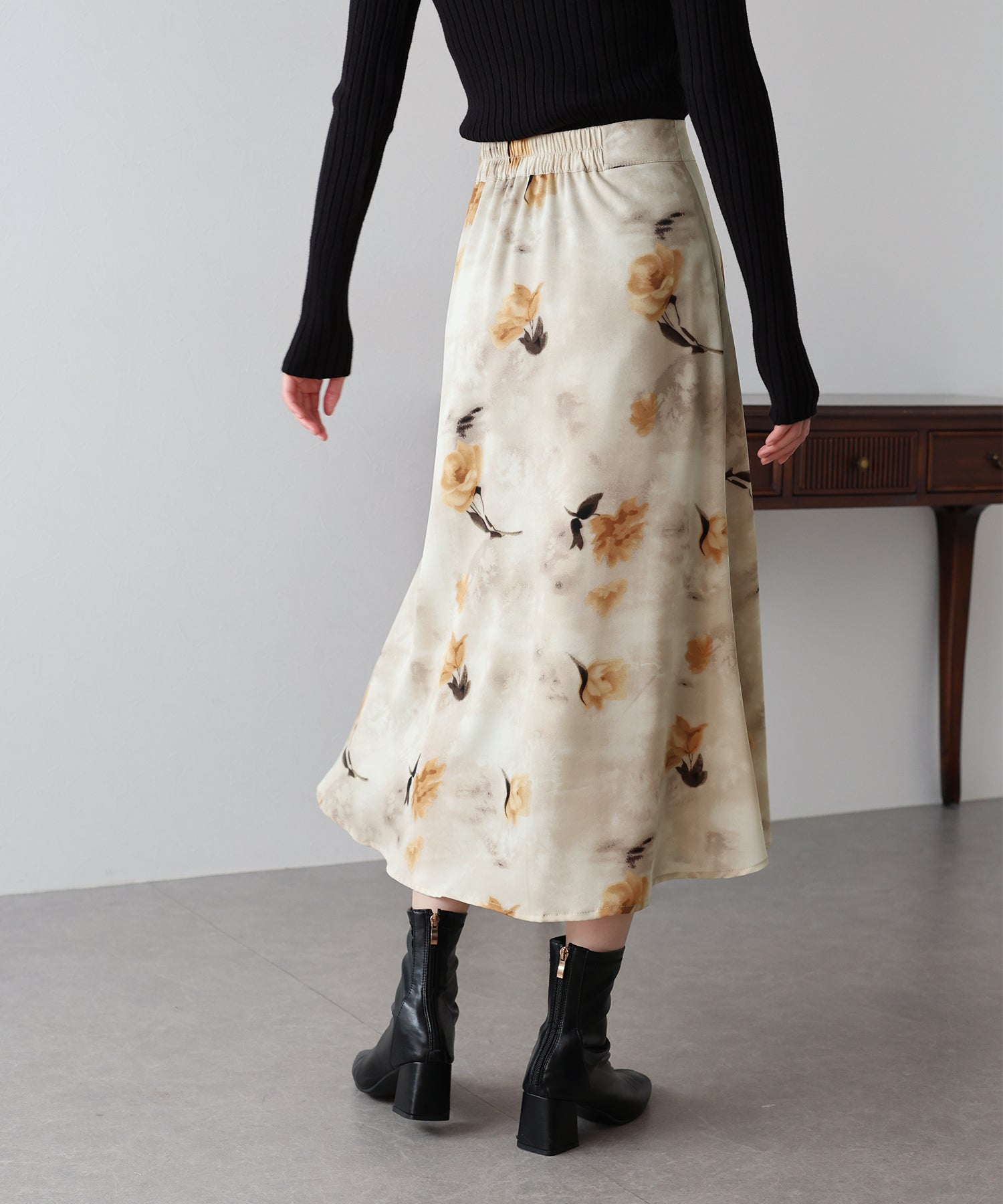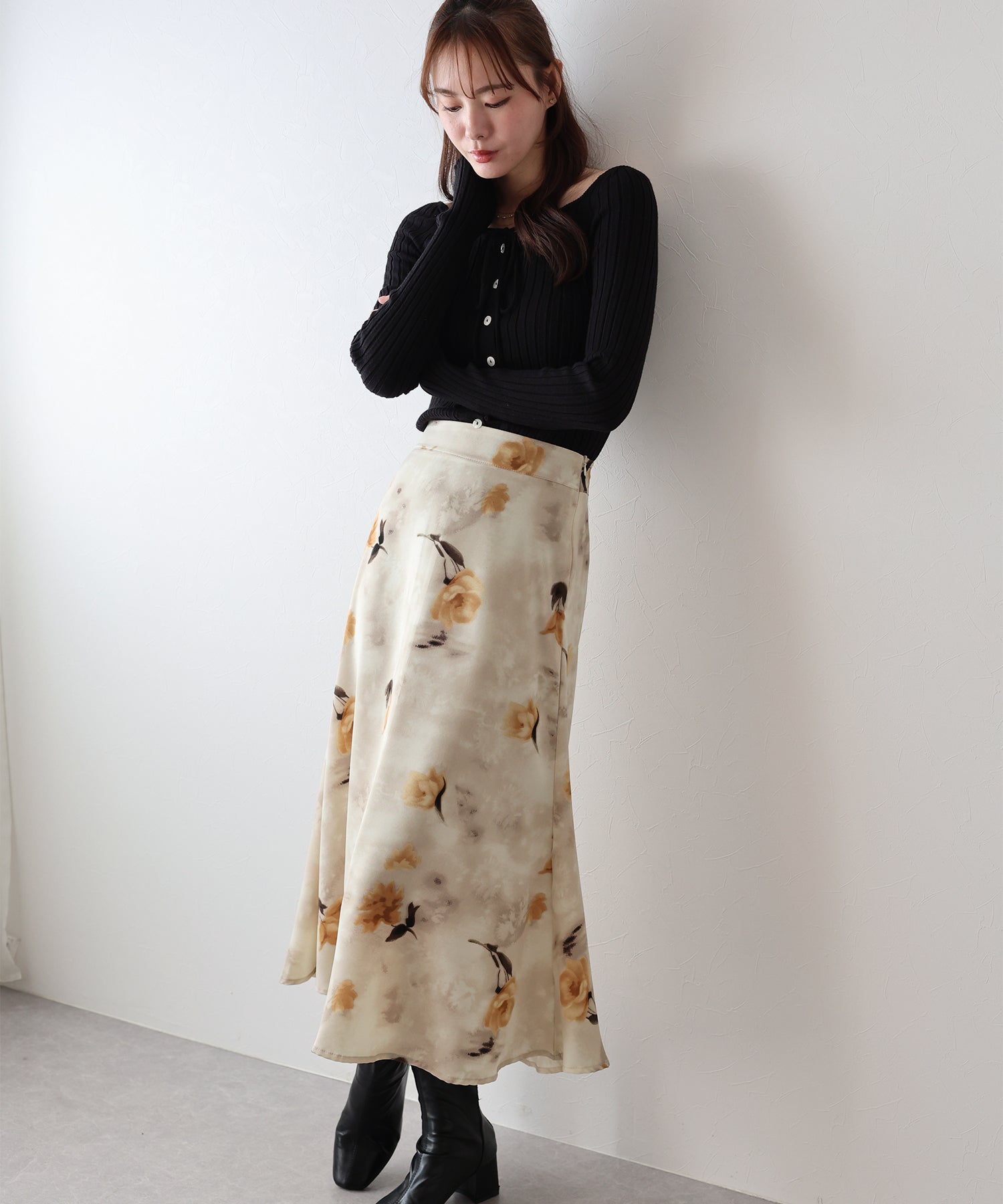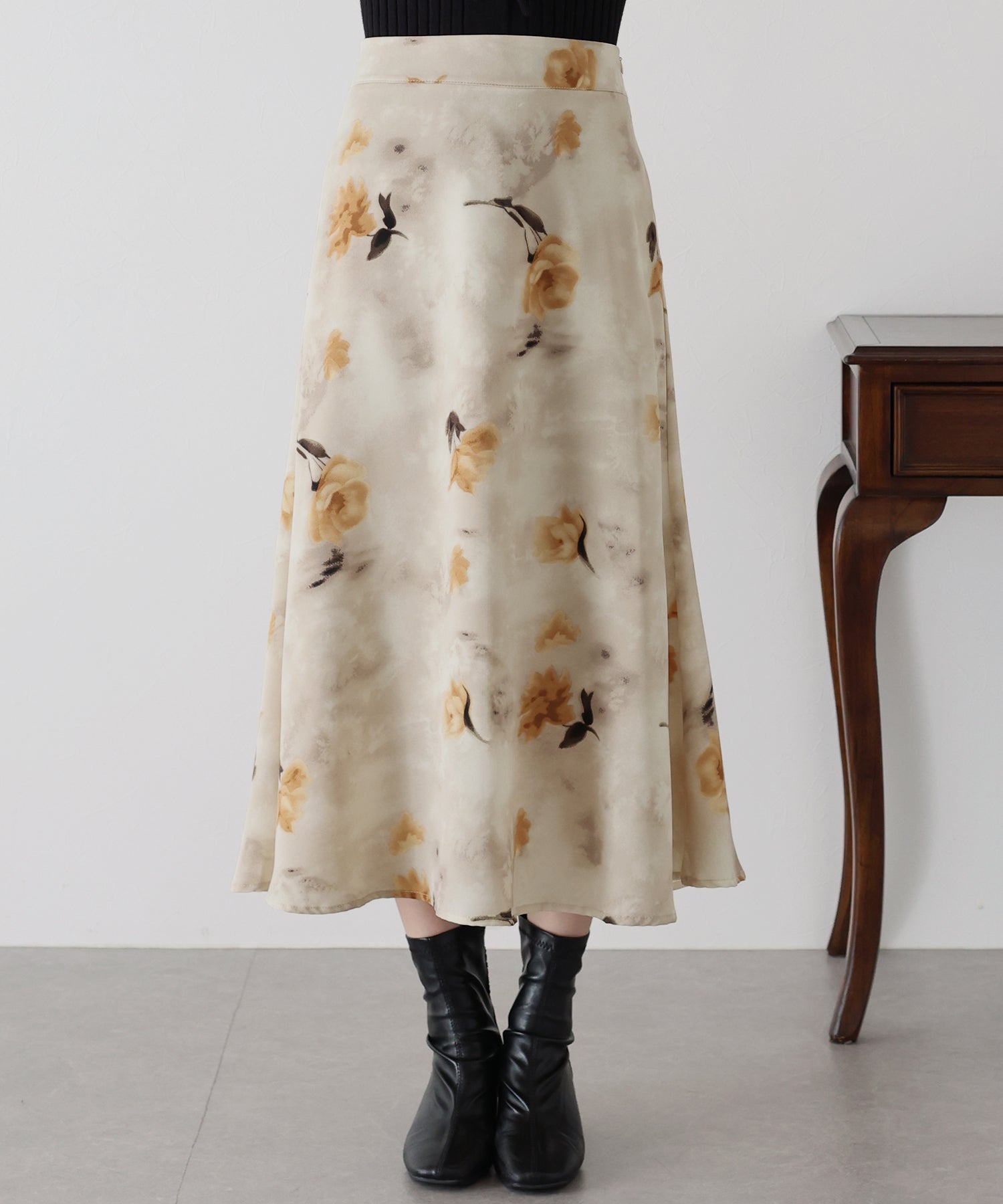 コーディネートを華やかに仕上げる花柄フレアーマーメイドスカート