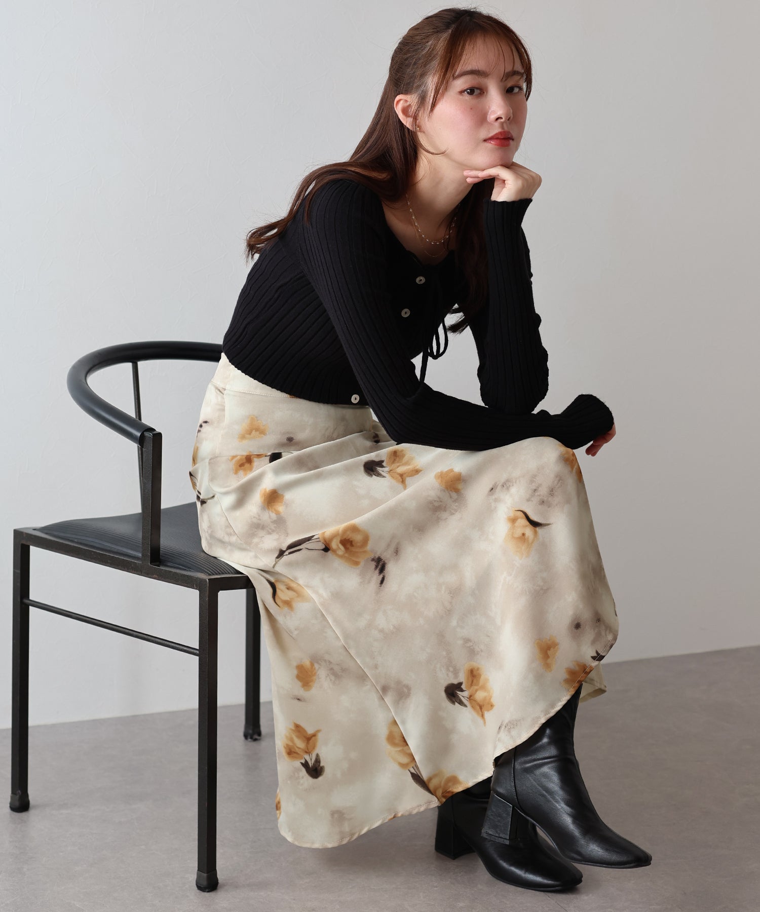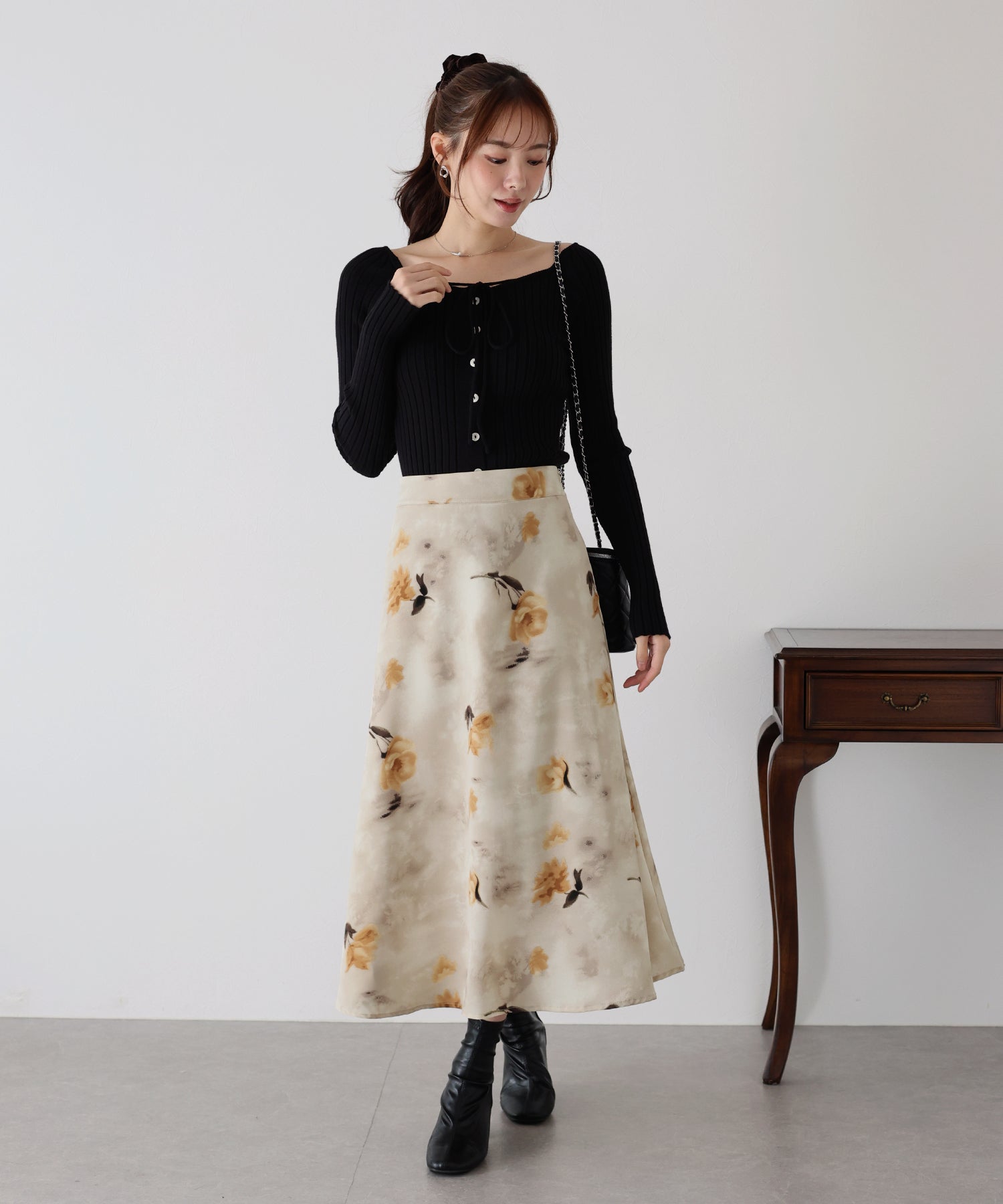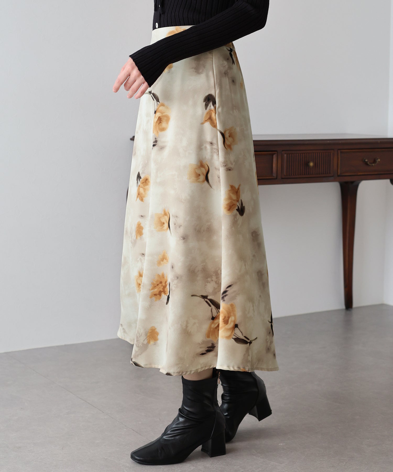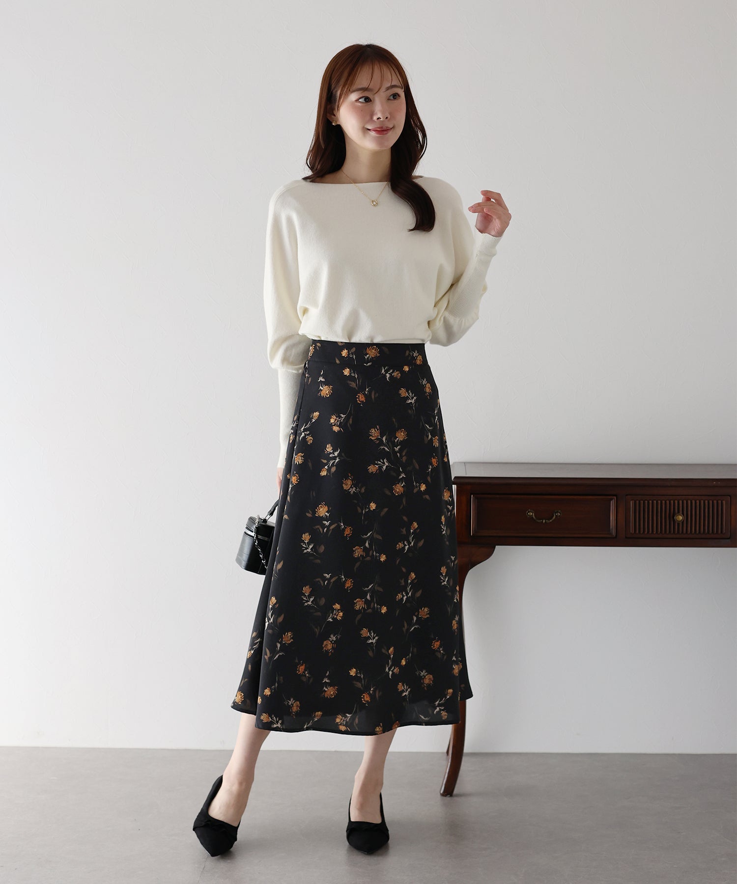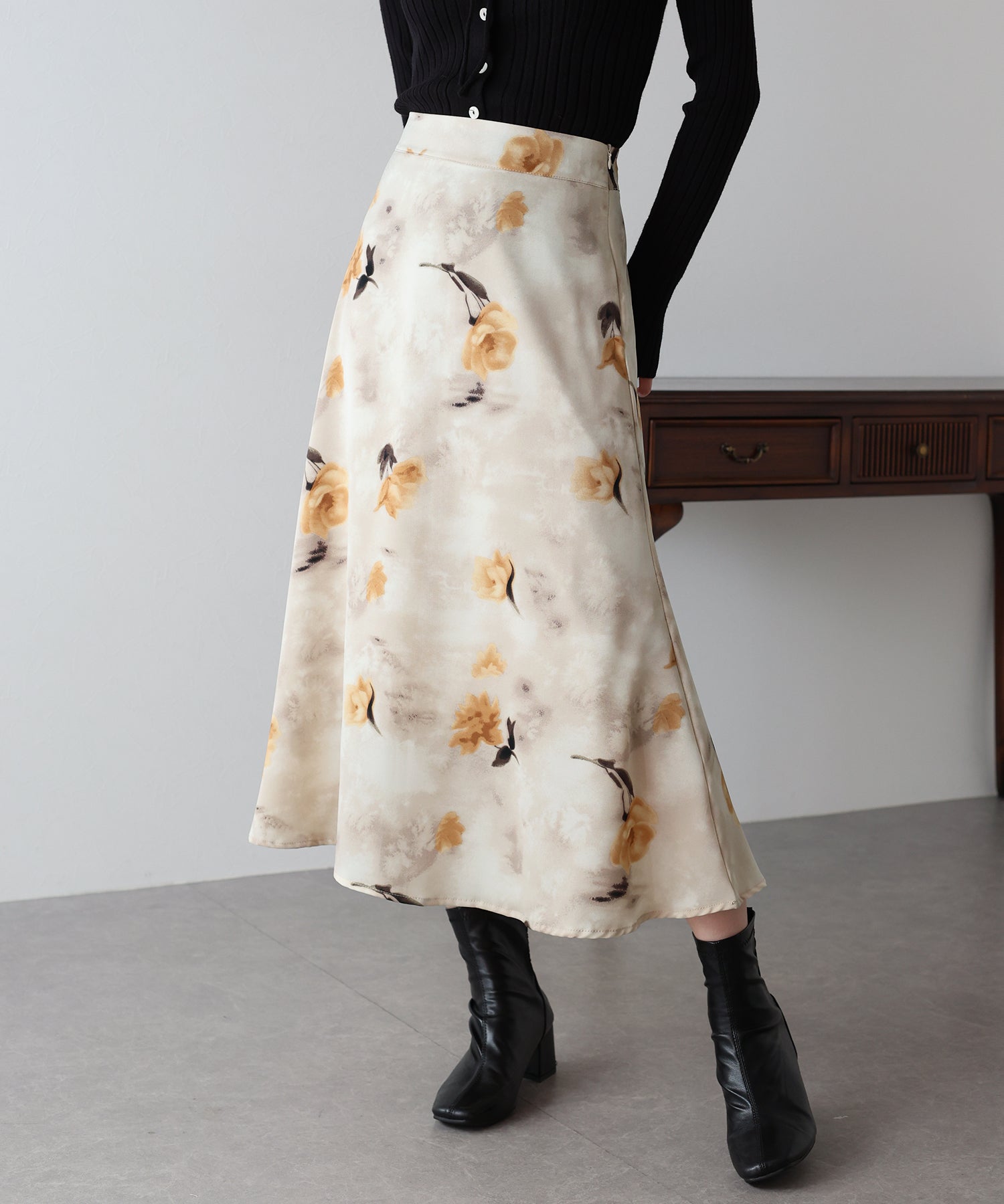 コーディネートを華やかに仕上げる花柄フレアーマーメイドスカート