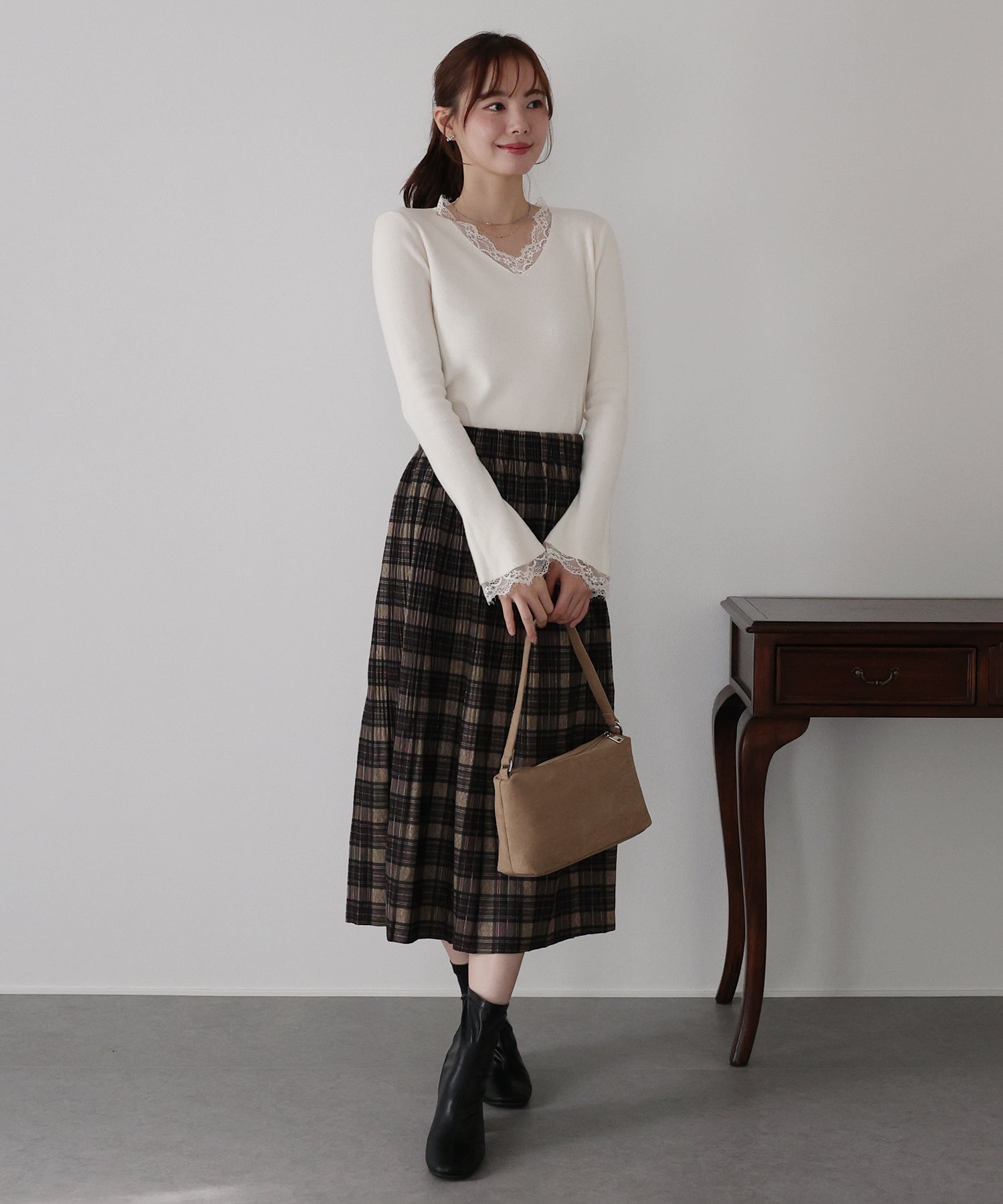 秋冬らしいチェック柄に、繊細な細プリーツを施したロングスカート。