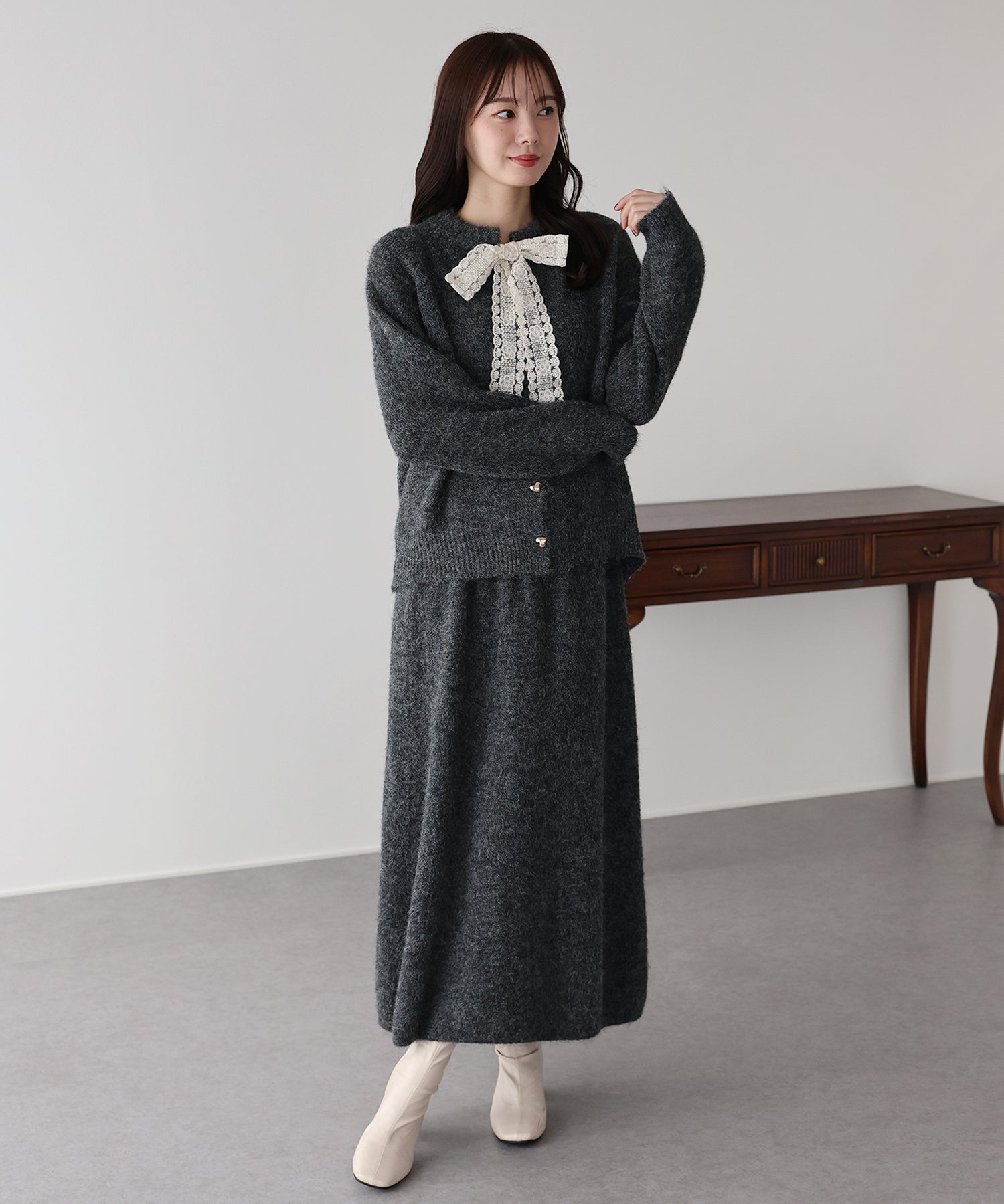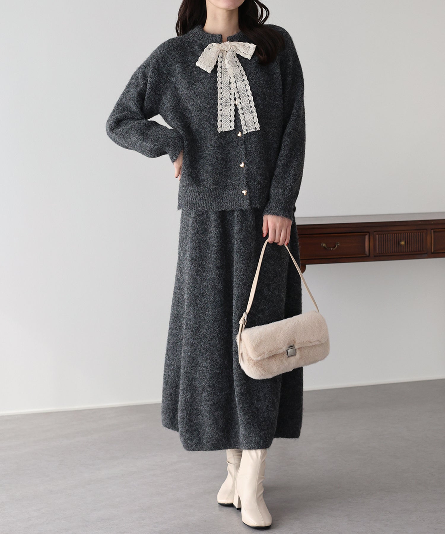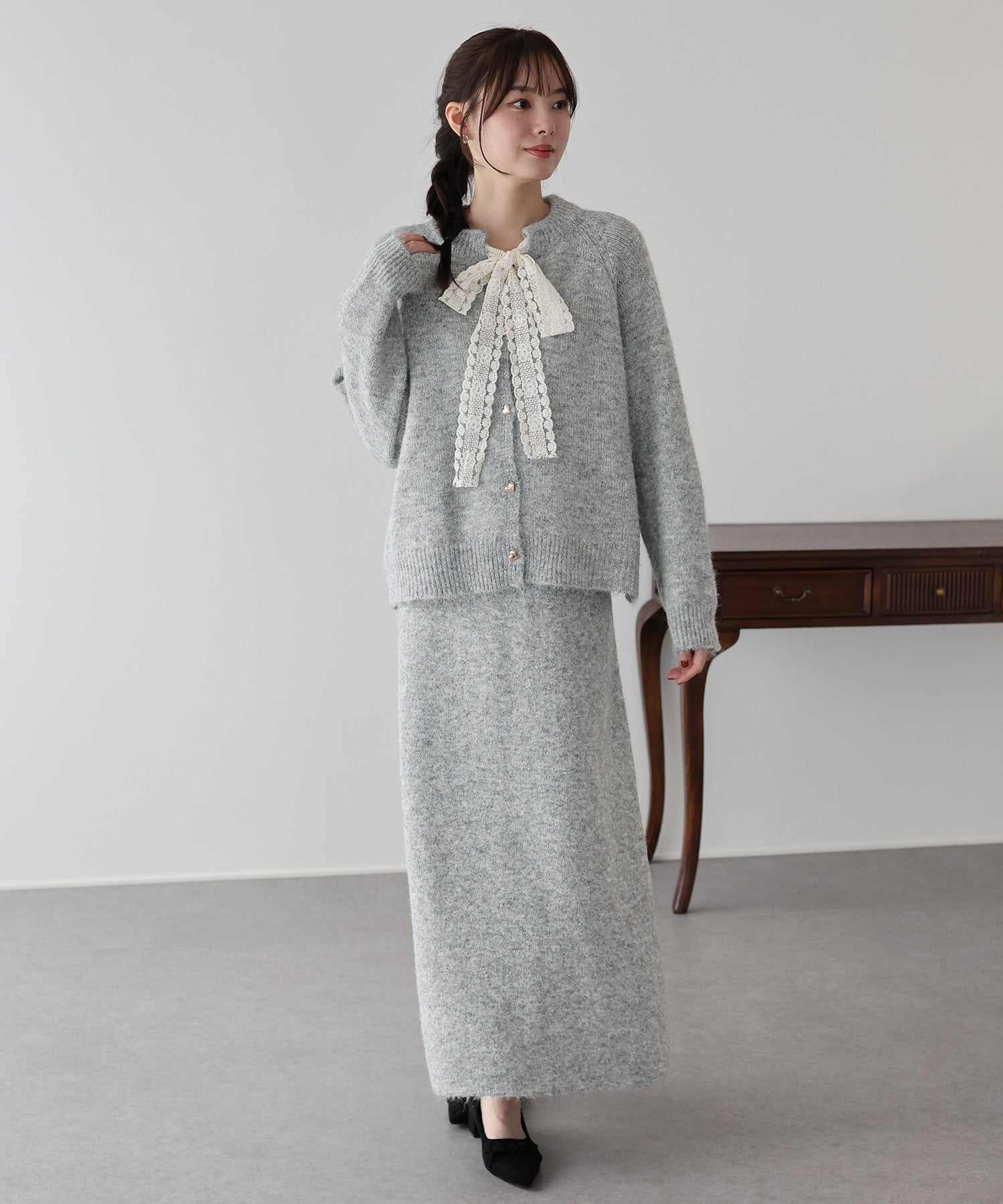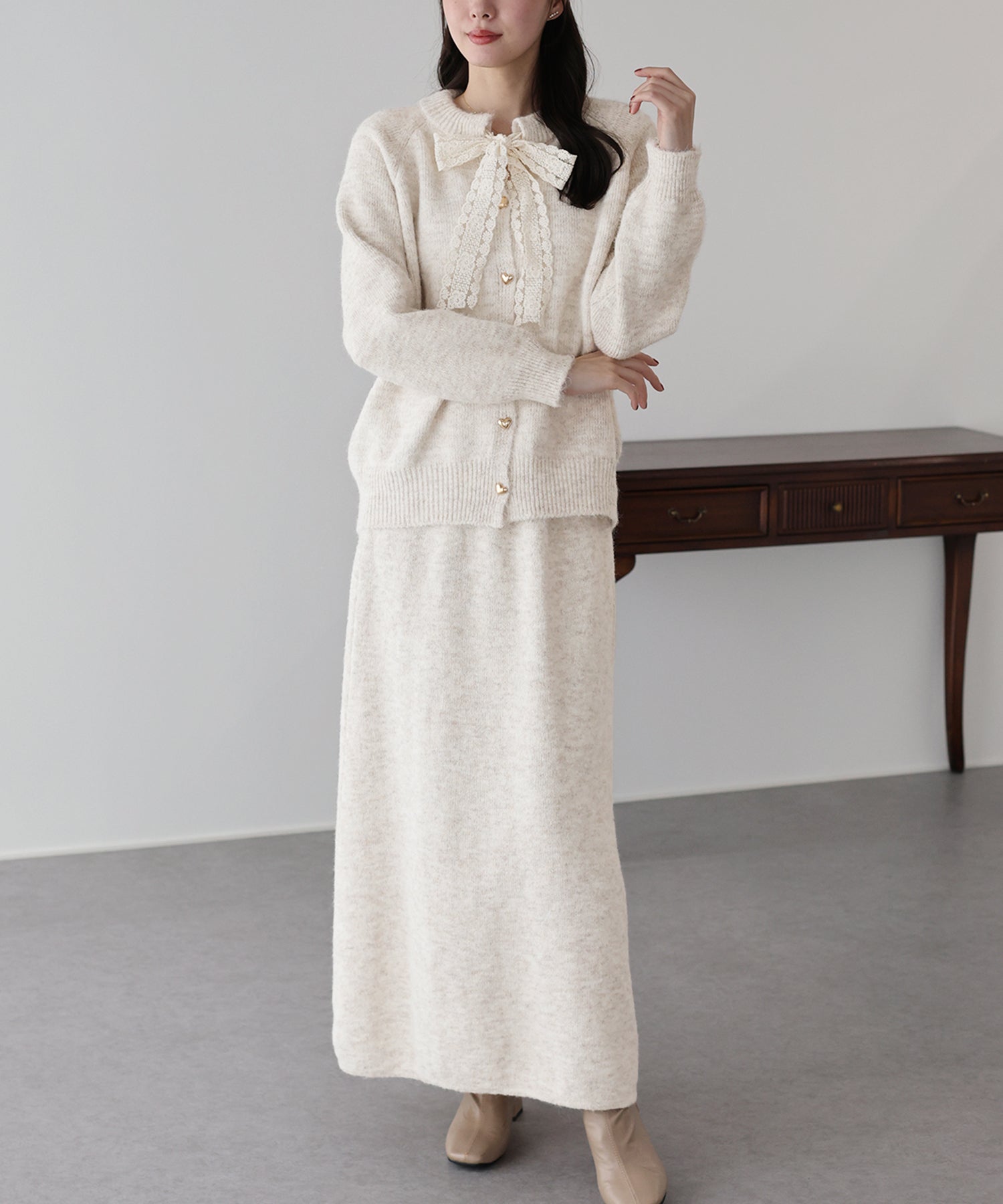 • リボンニット&スカート セットアップ