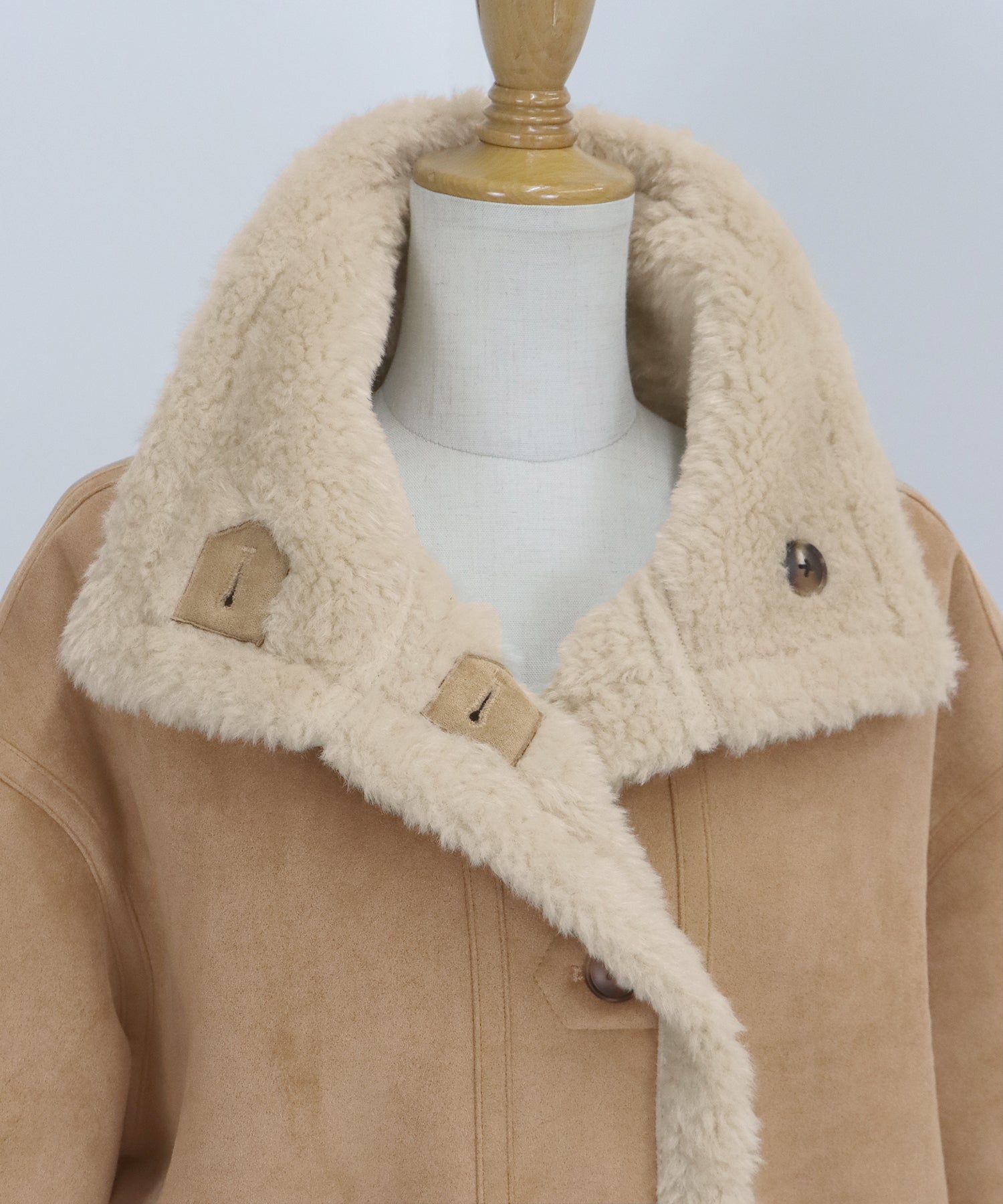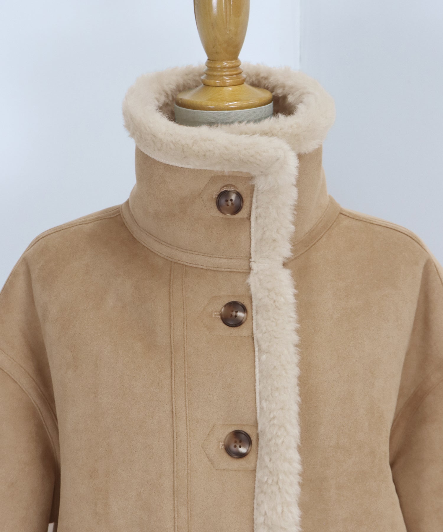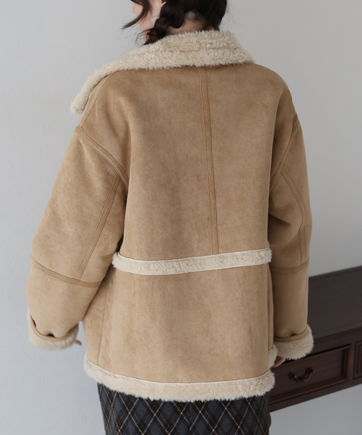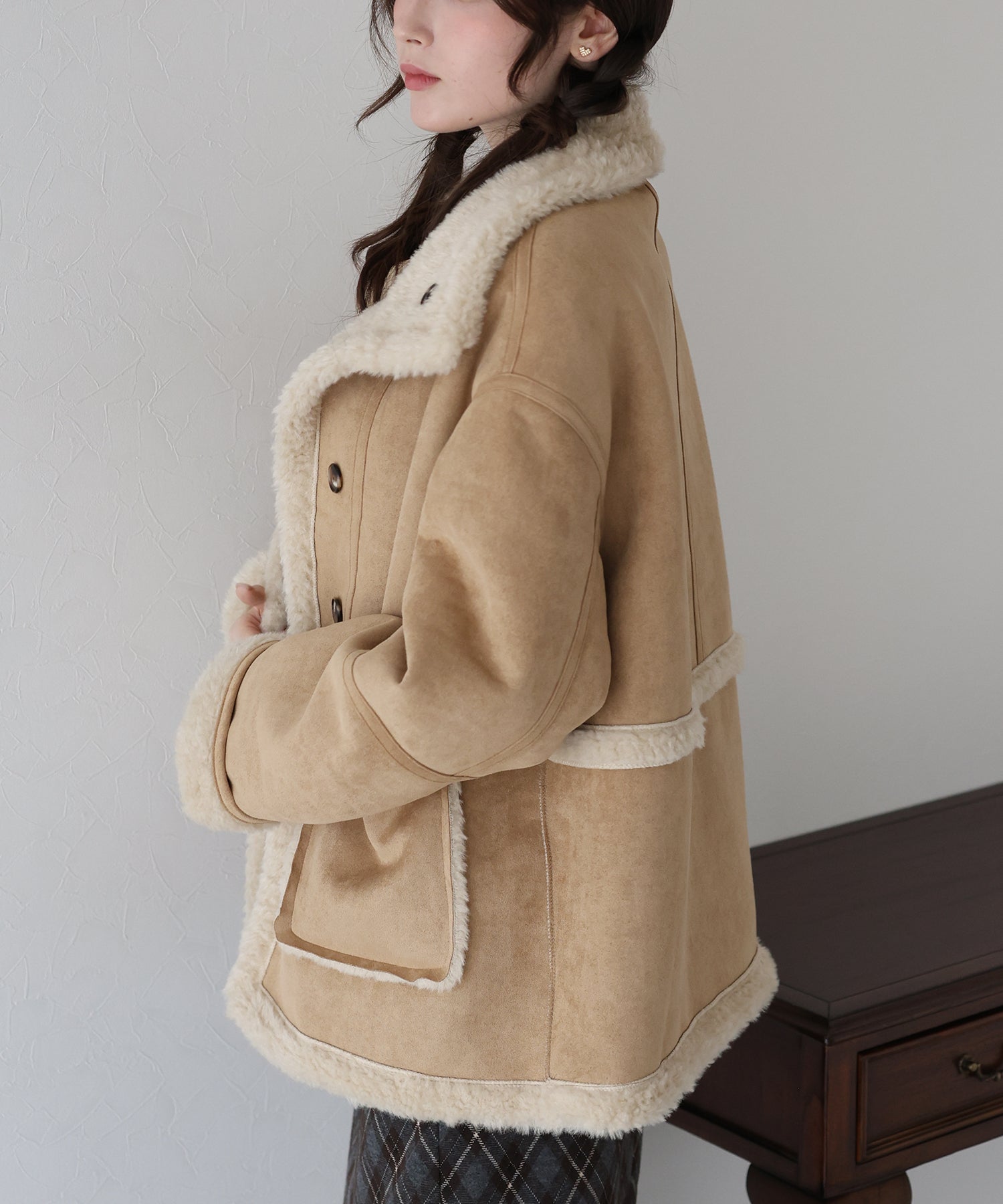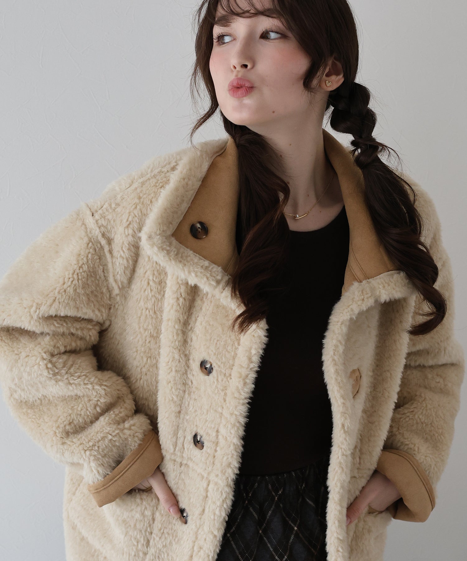 ヴィンテージライクなムード漂う、フェイクスエードとボアをボンディングしたリバーシブルコート。