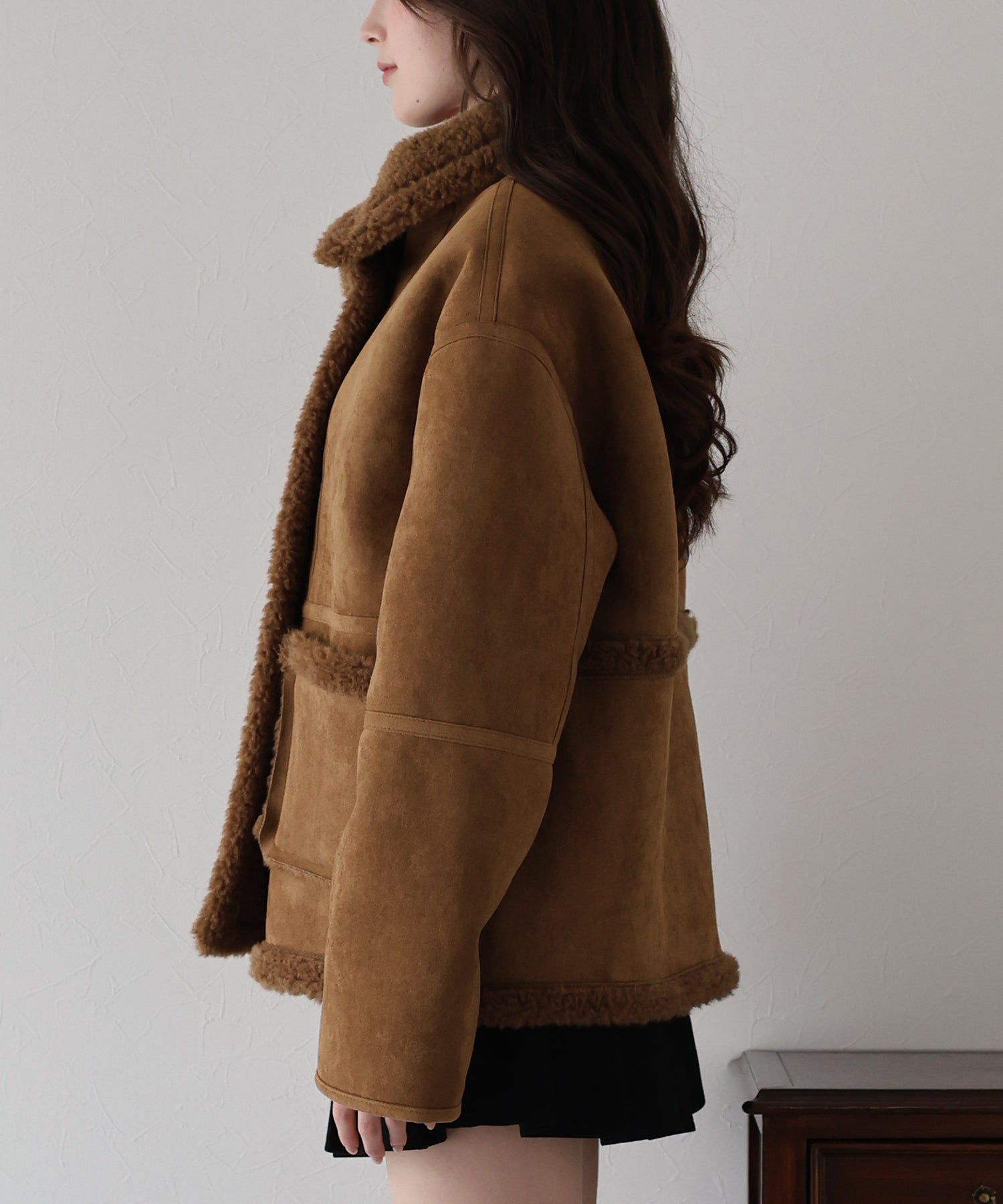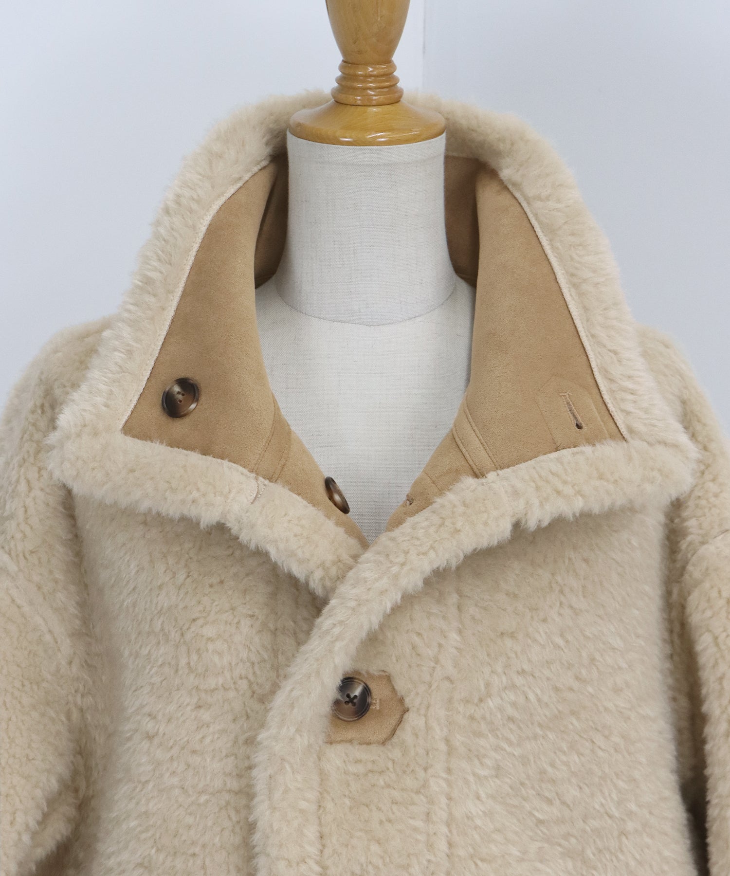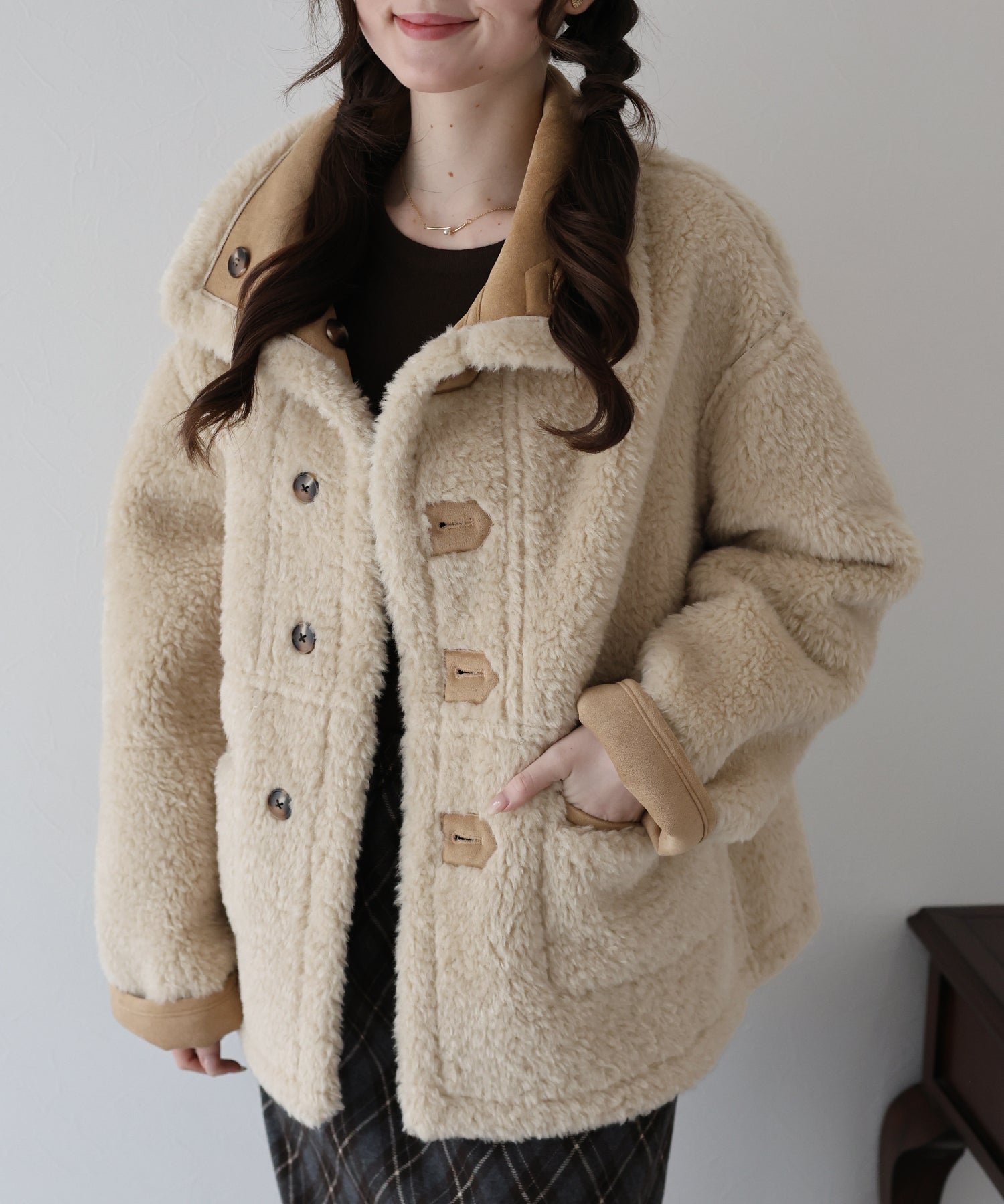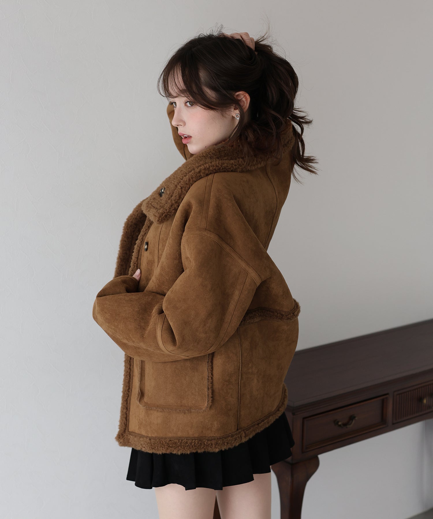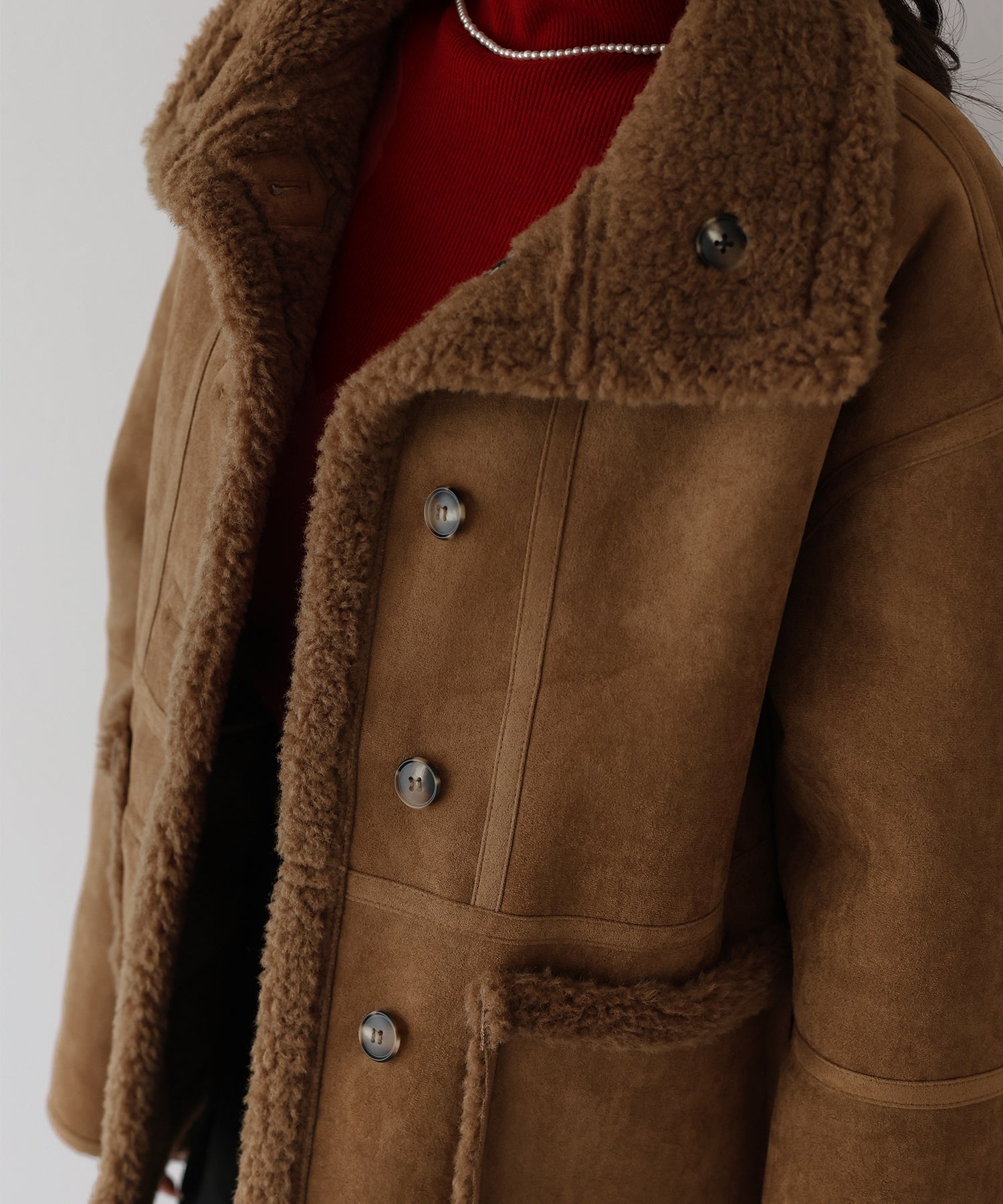 ヴィンテージライクなムード漂う、フェイクスエードとボアをボンディングしたリバーシブルコート。