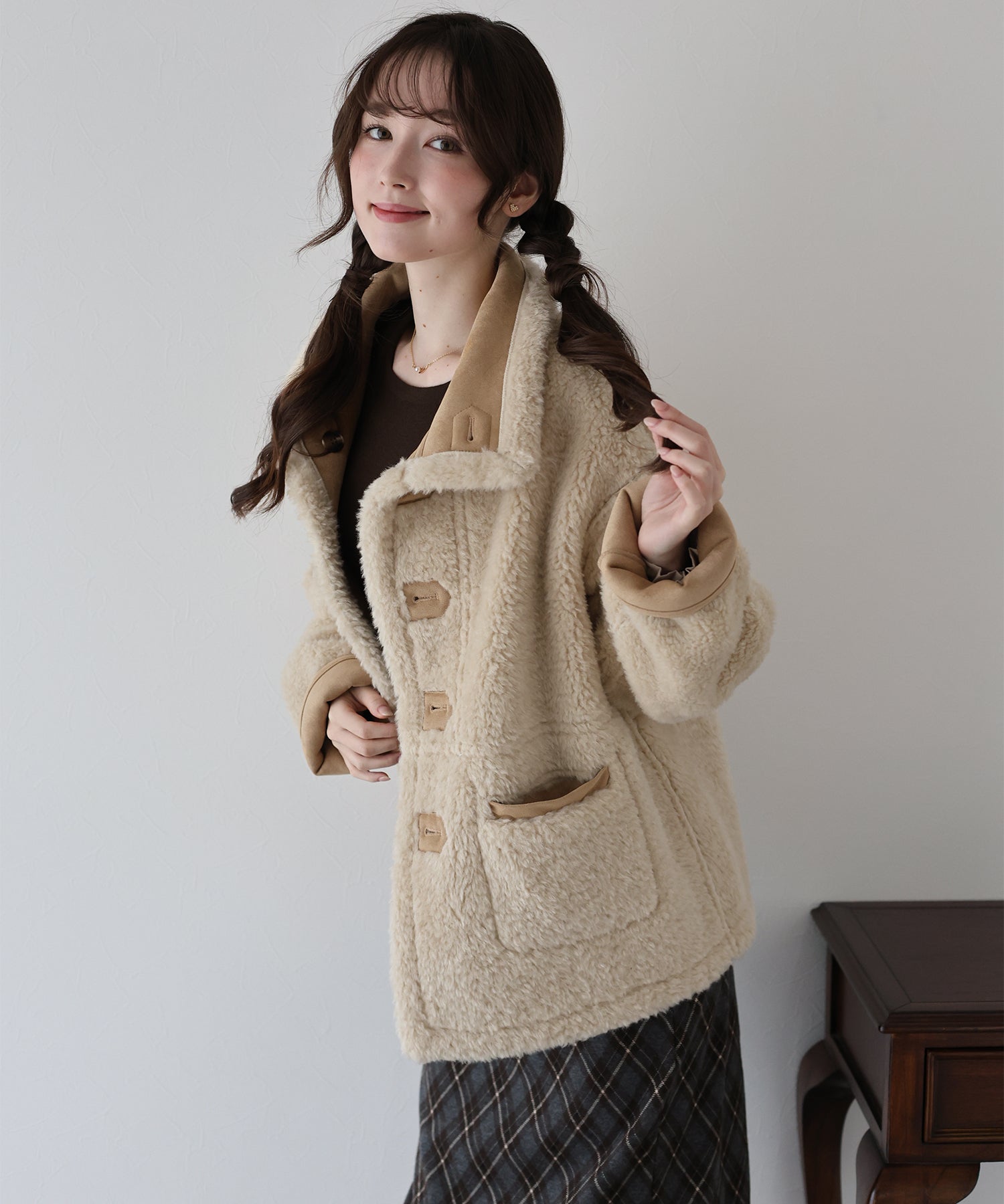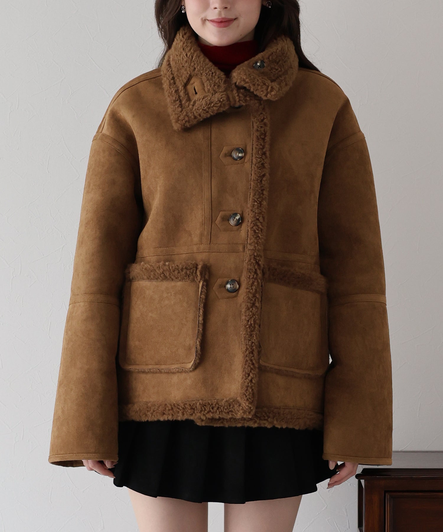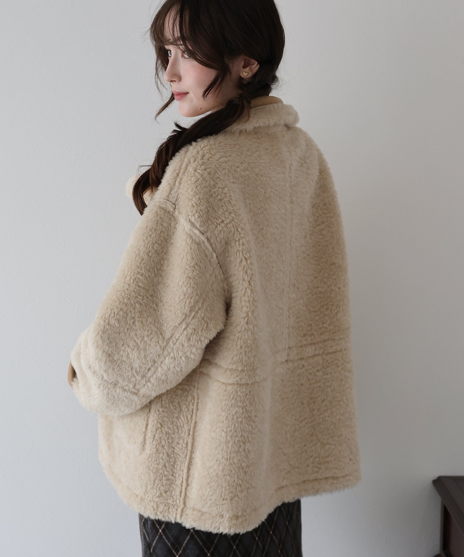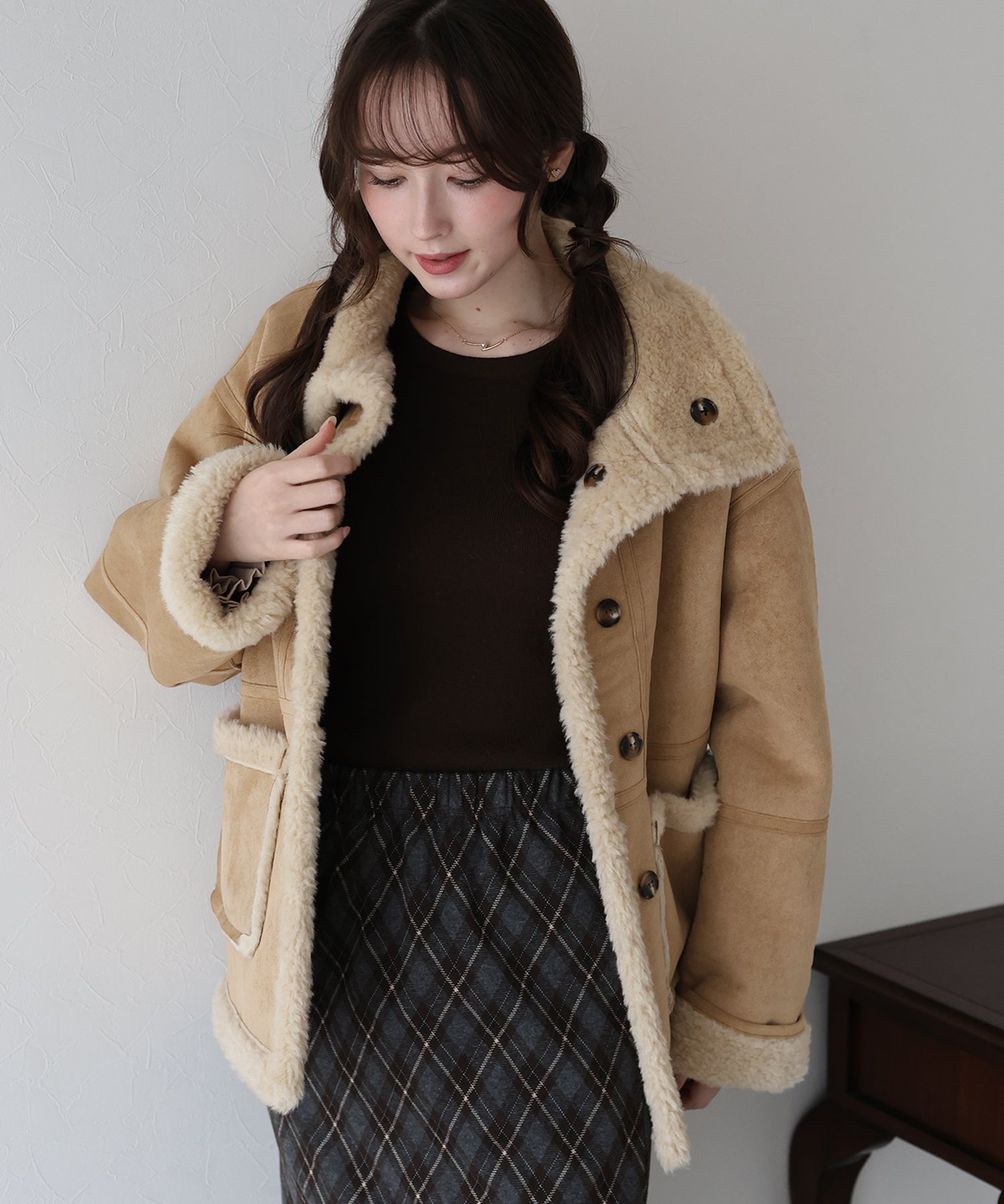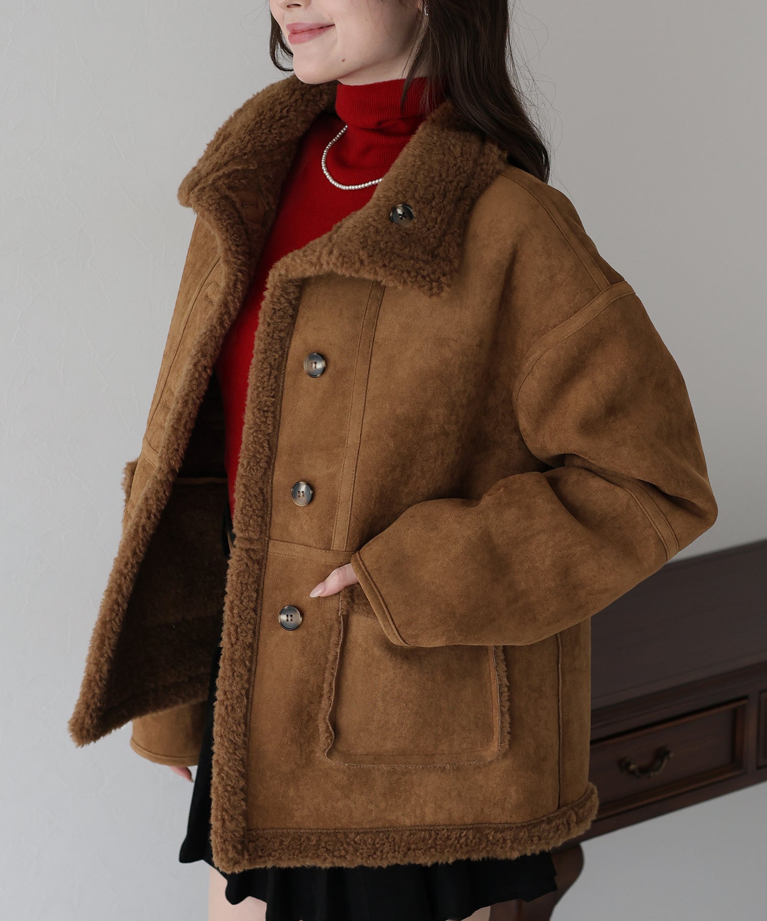 ヴィンテージライクなムード漂う、フェイクスエードとボアをボンディングしたリバーシブルコート。