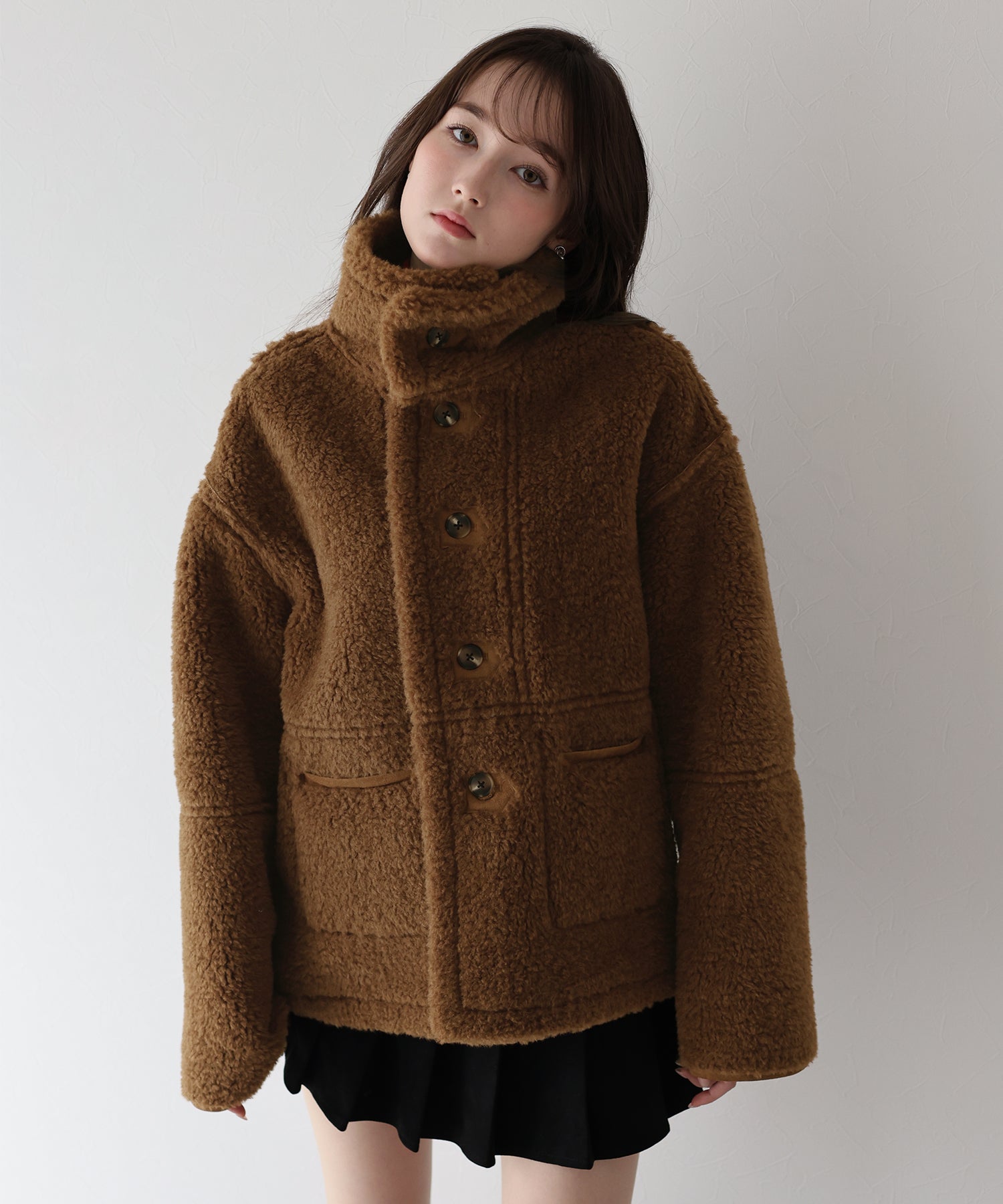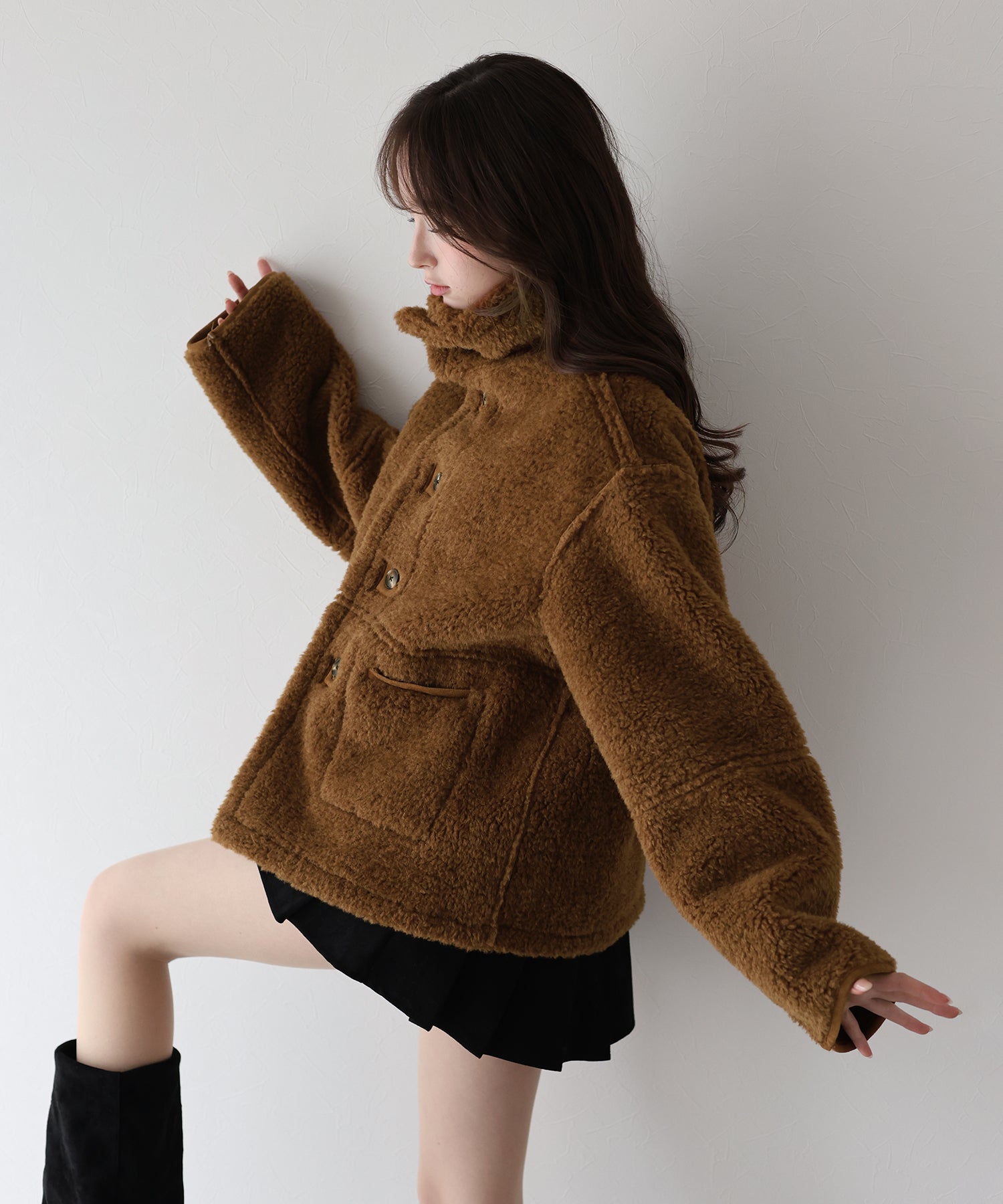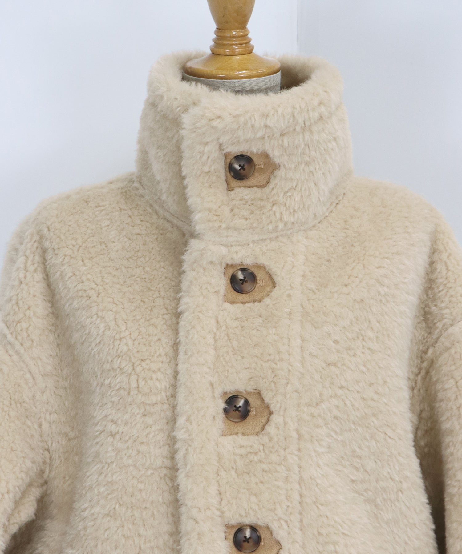 ボタンを上まで留めればスタンドカラーになり、ボアが首元まで包み込み、暖かさも抜群です。