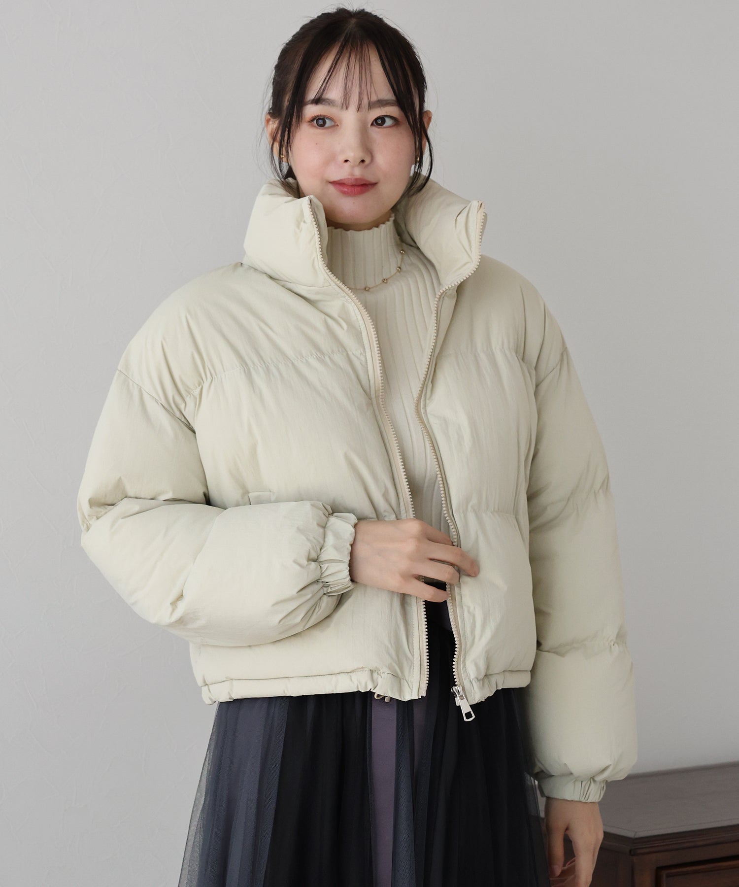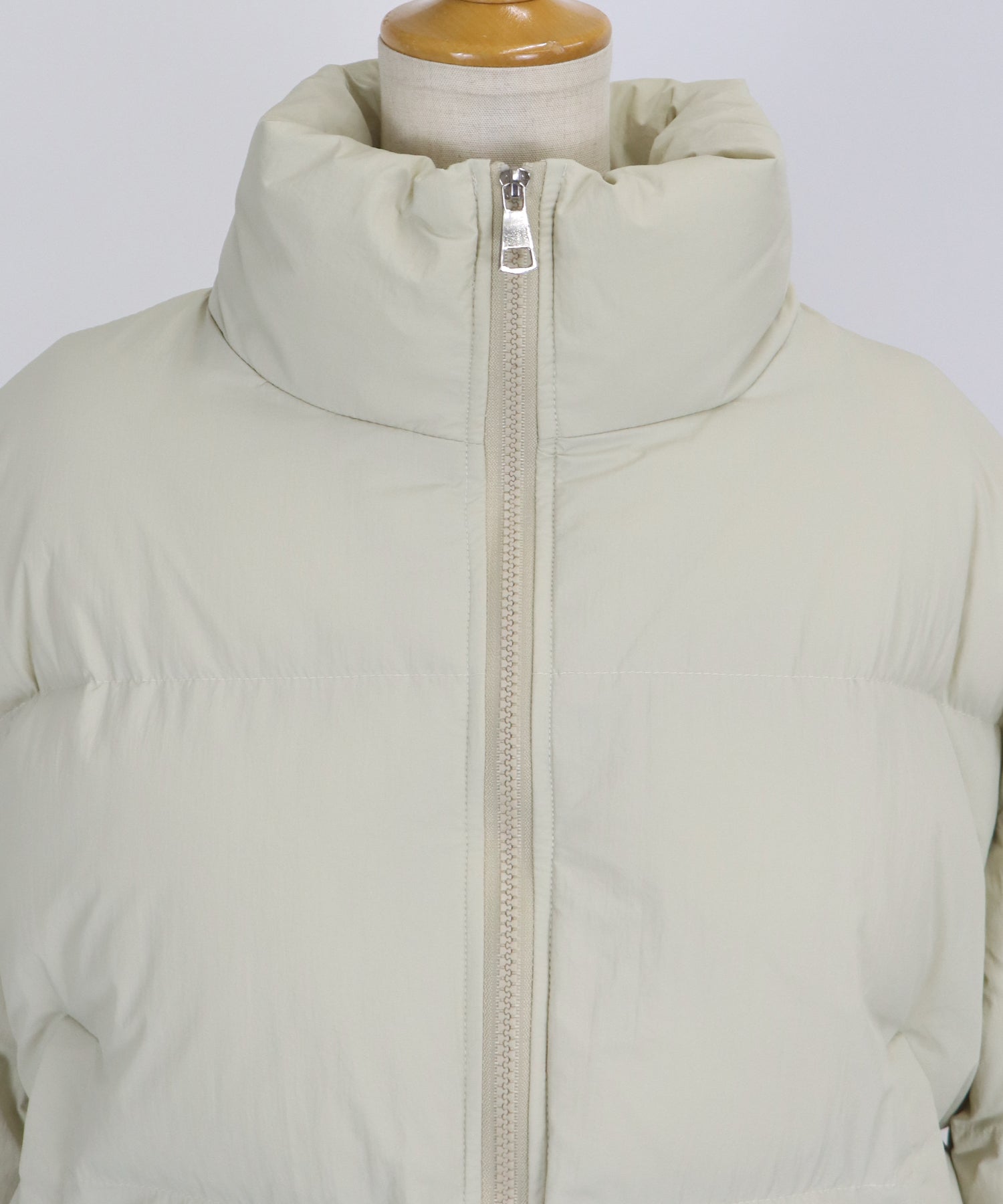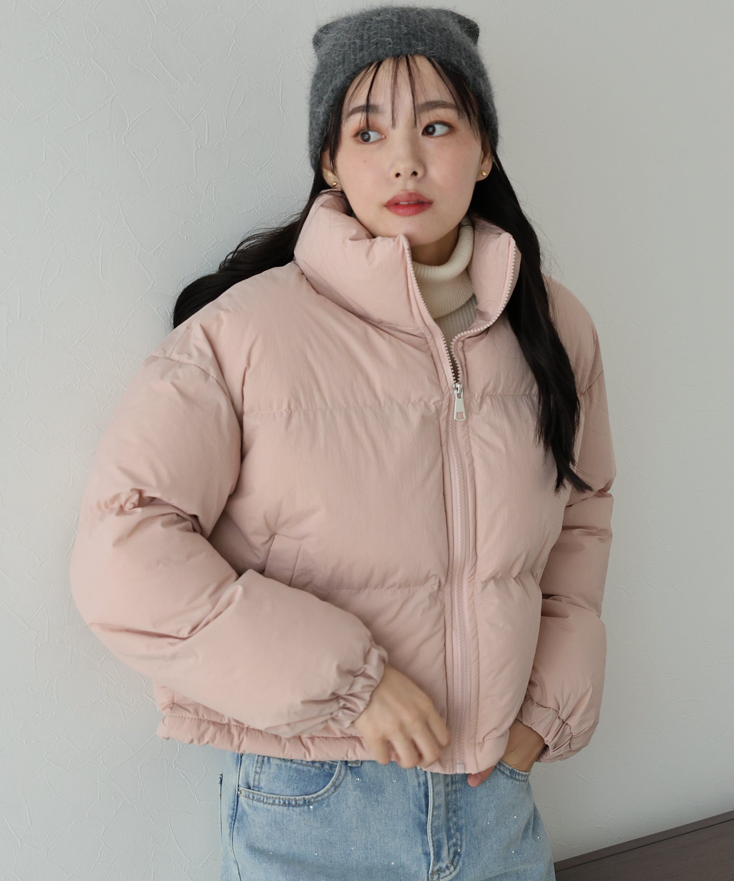 スタンドネックで温かく、マフラー要らずのダウンジャケット