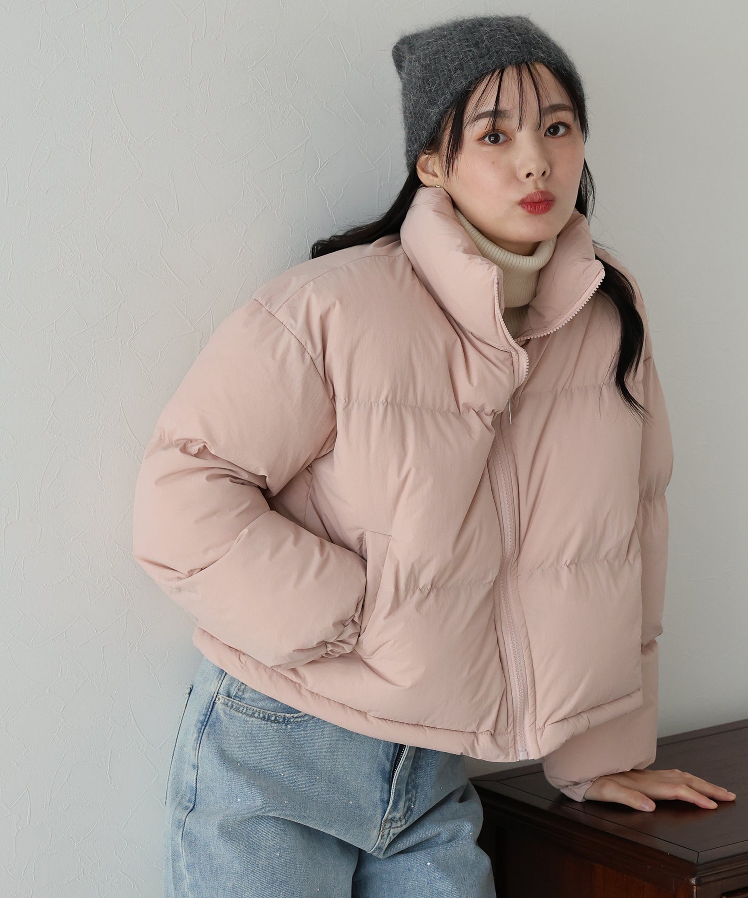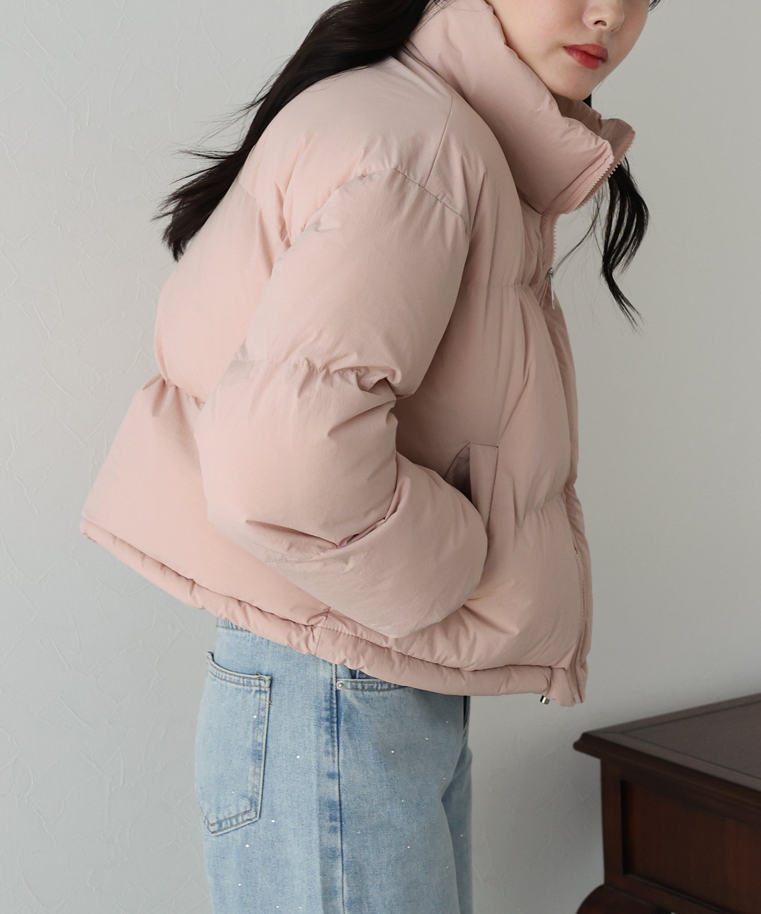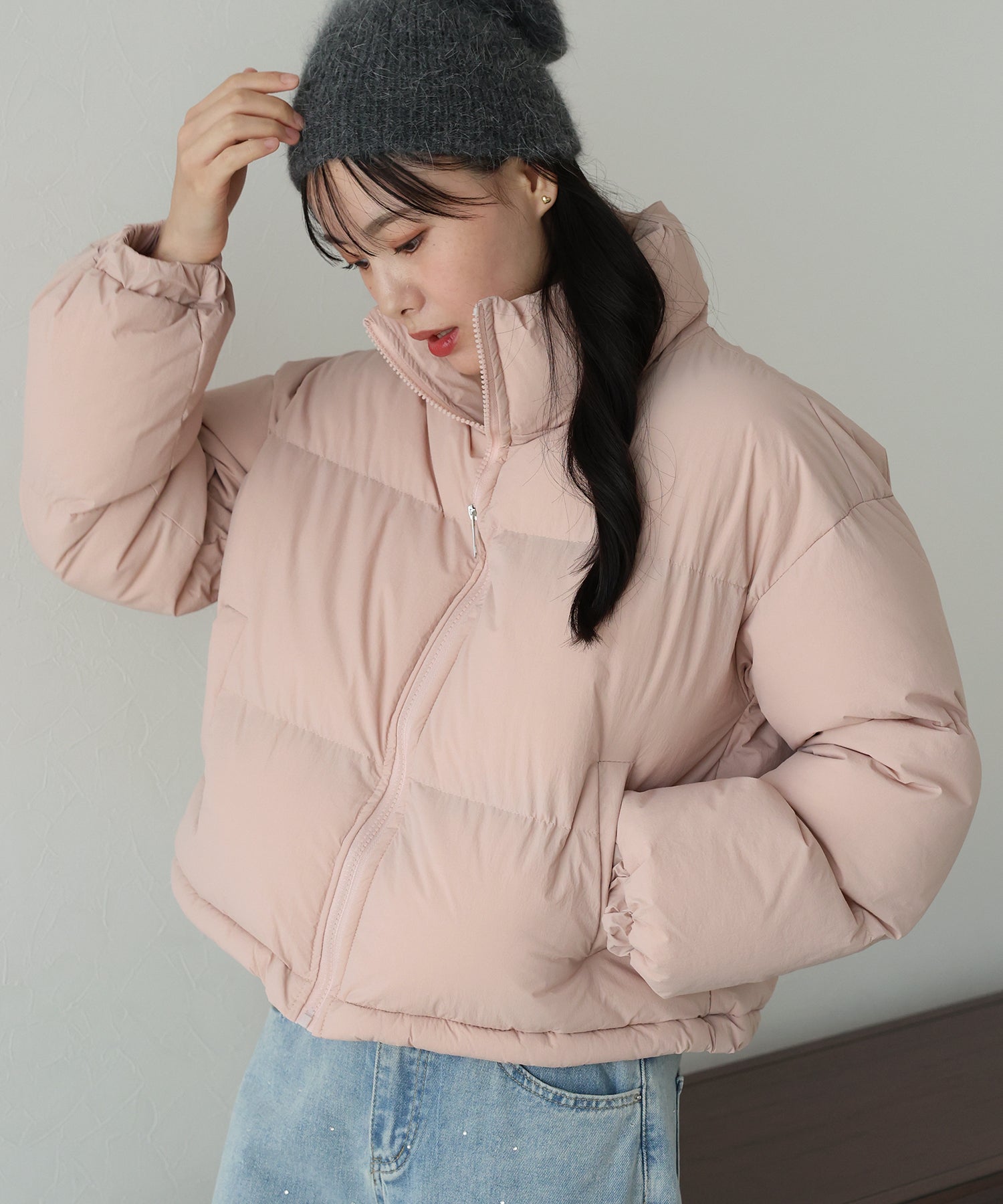 スタンドネックで温かく、マフラー要らずのダウンジャケット