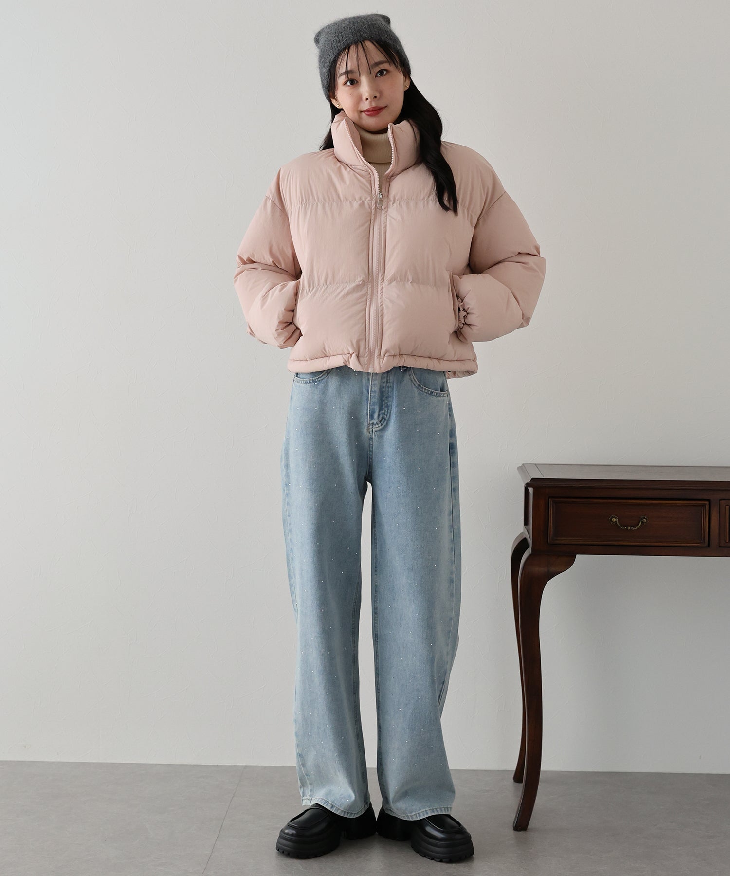 ボリューミーなサイズ感なので、厚手のニットとの合わせも楽々◎