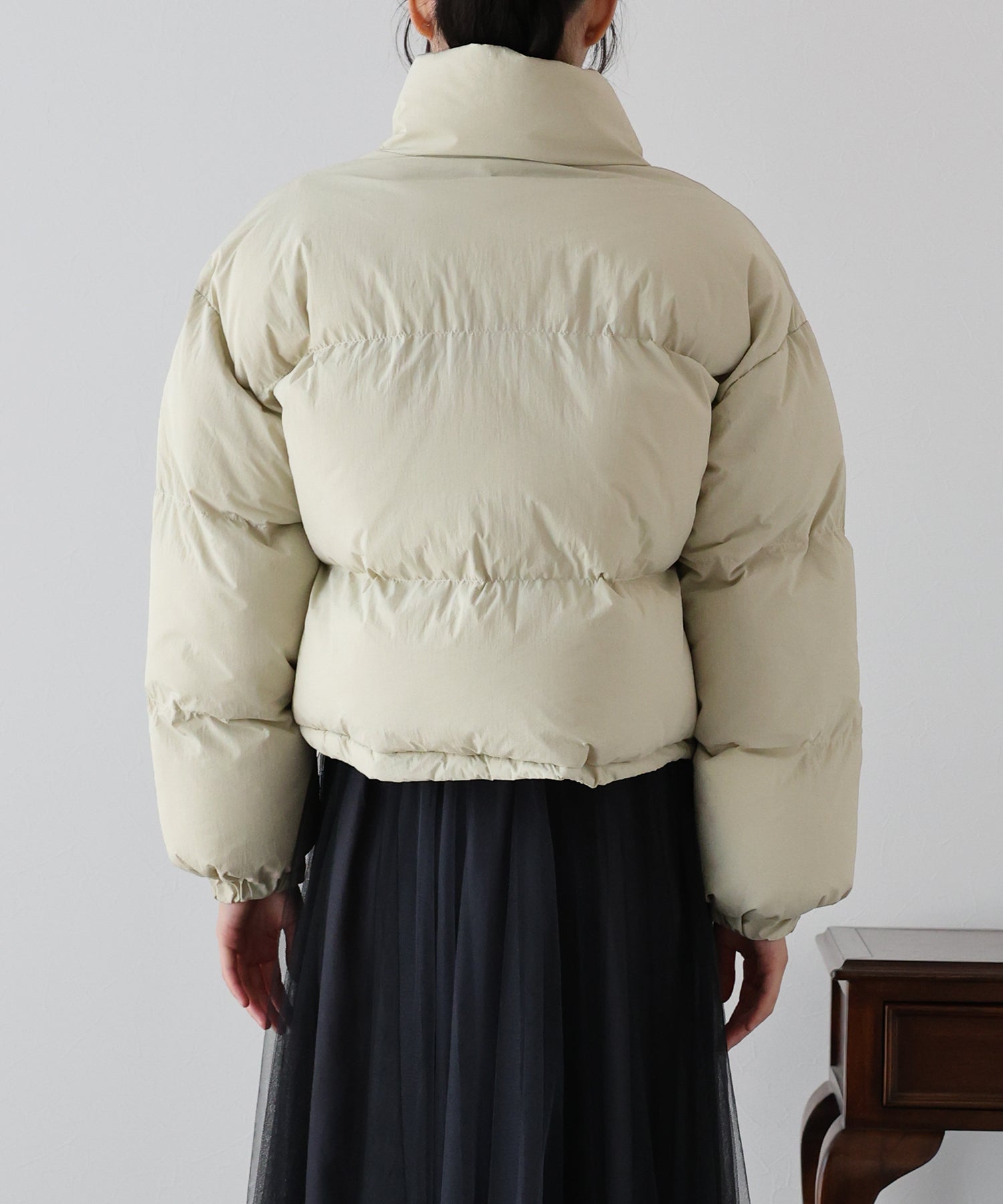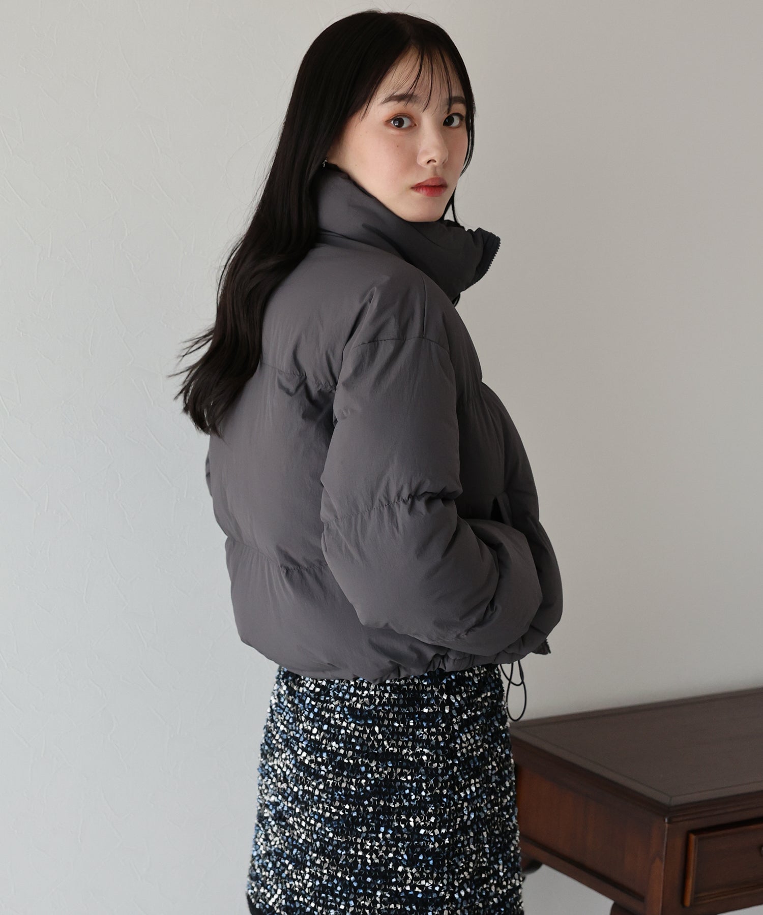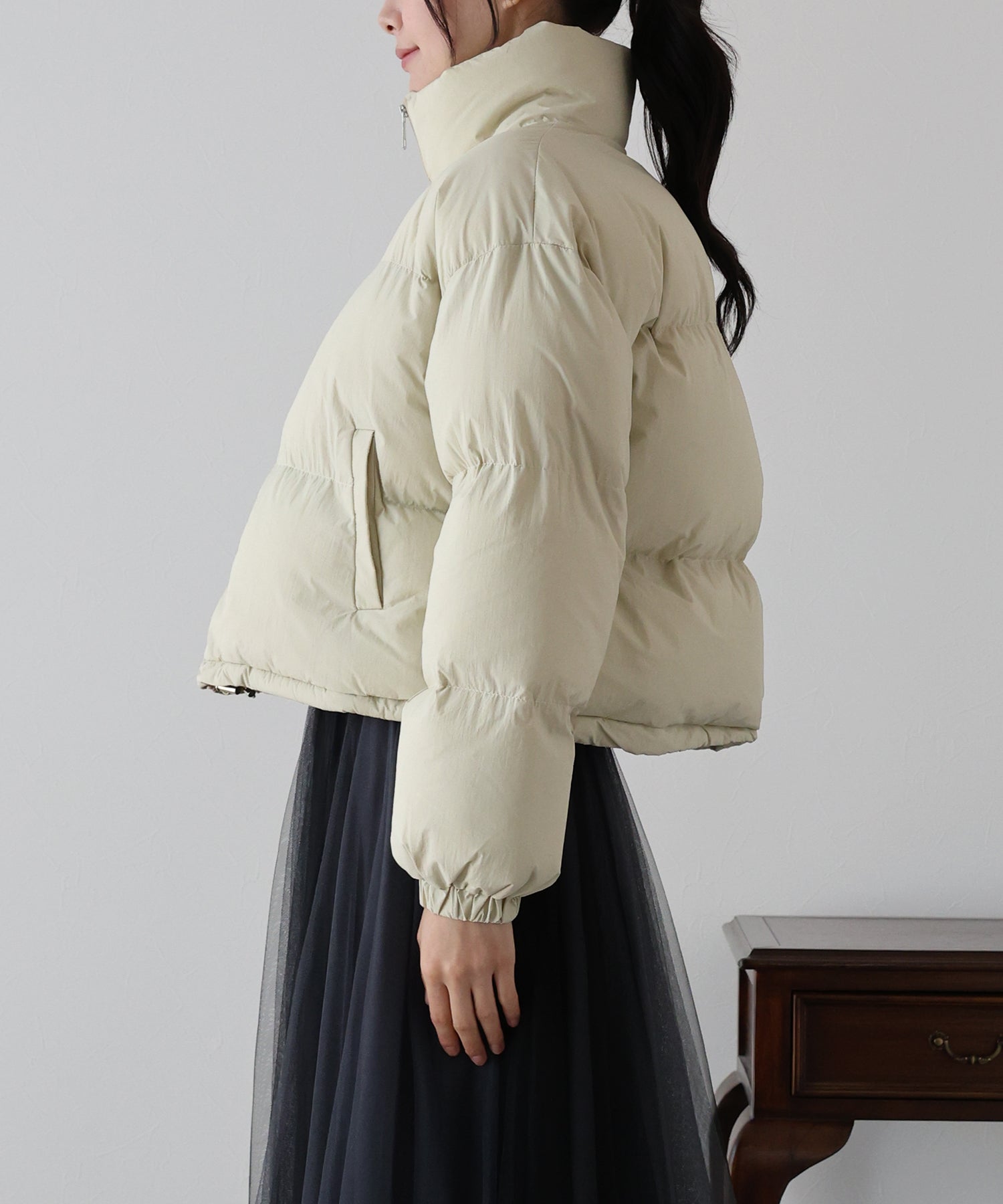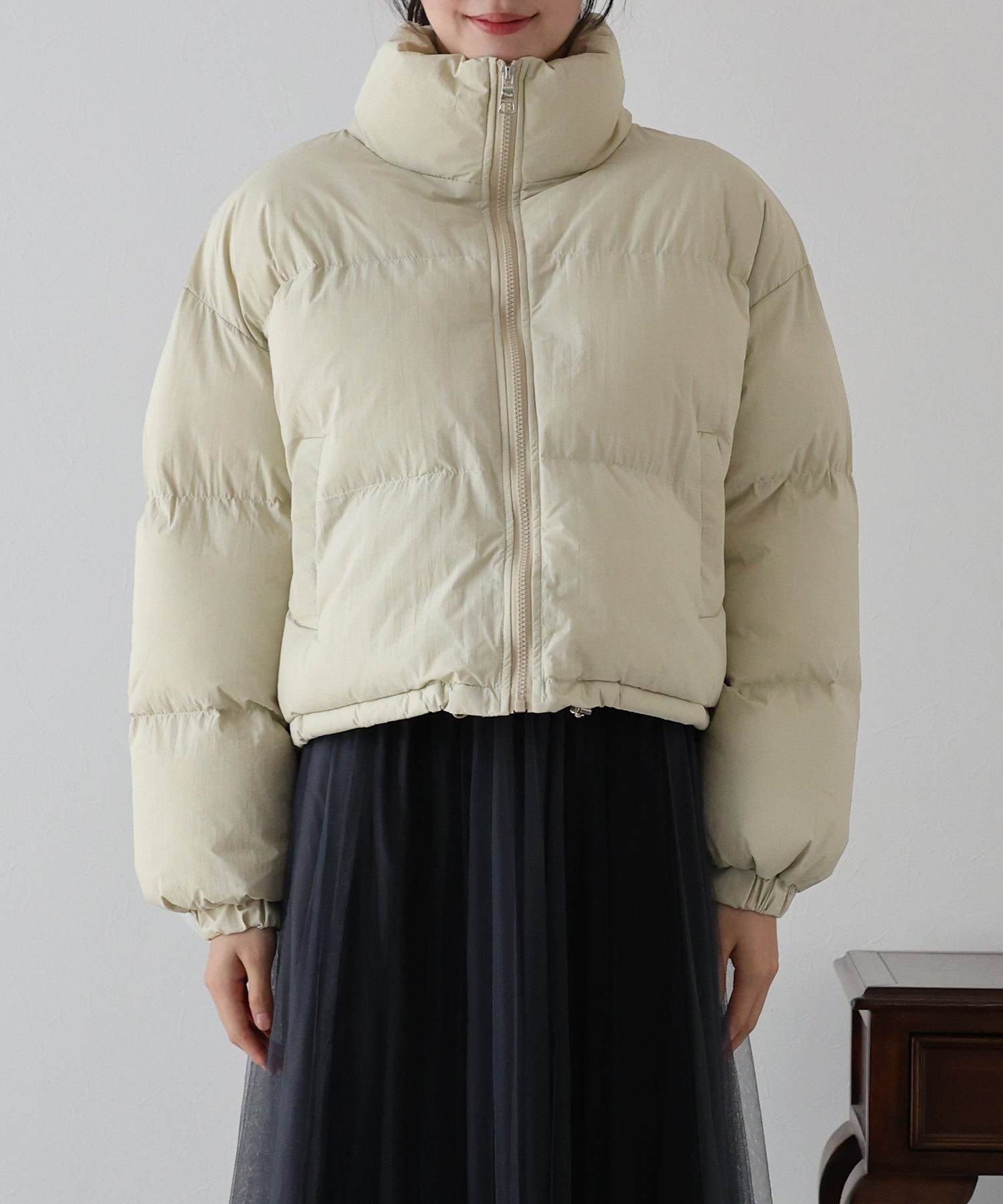 絞ることで冷気が入ることを抑え、シルエットの変化も楽しめる仕様となっております。