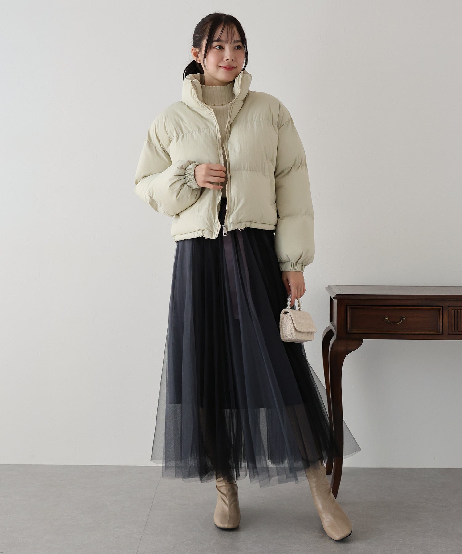フェミニンにもカジュアルにも合わせやすいのでスタイリングを選ばず着ていただけます。