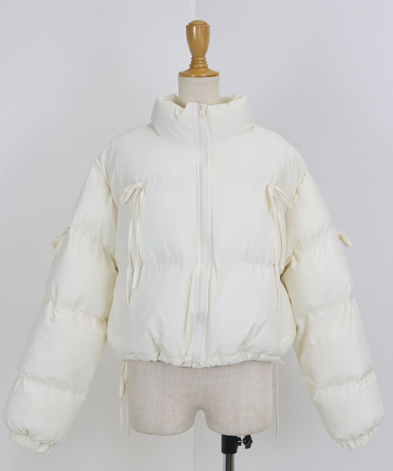 トレンドライクなリボンが可愛い中綿ダウンジャケット