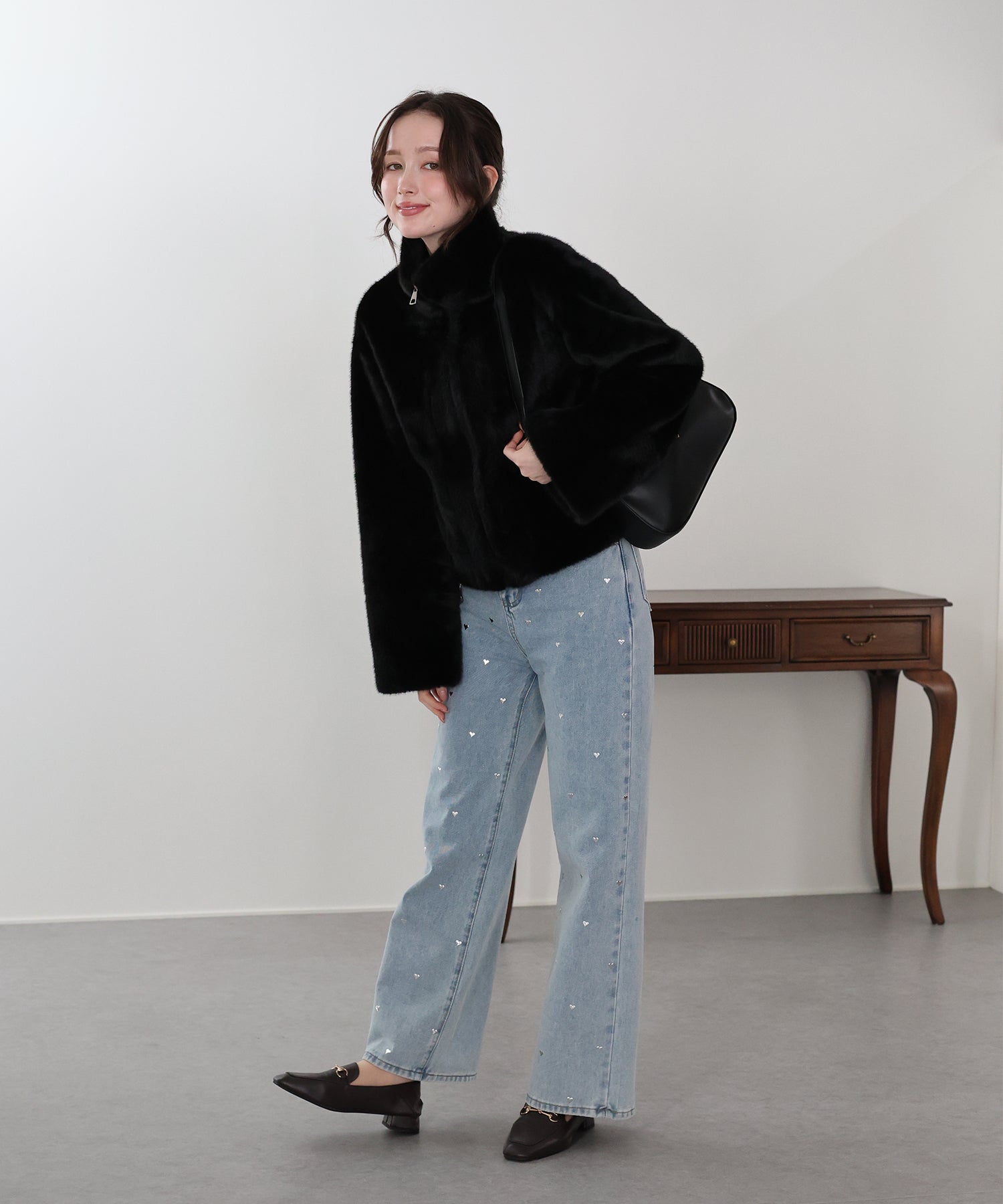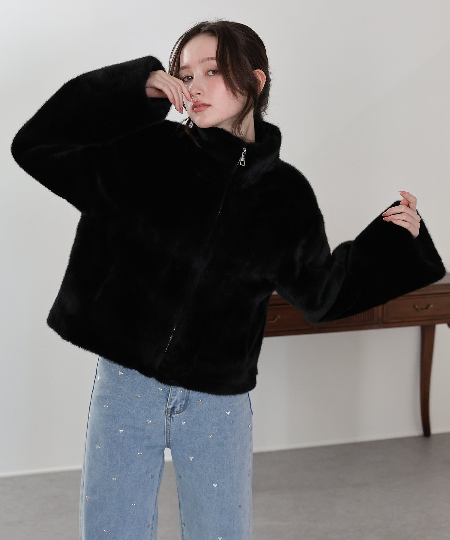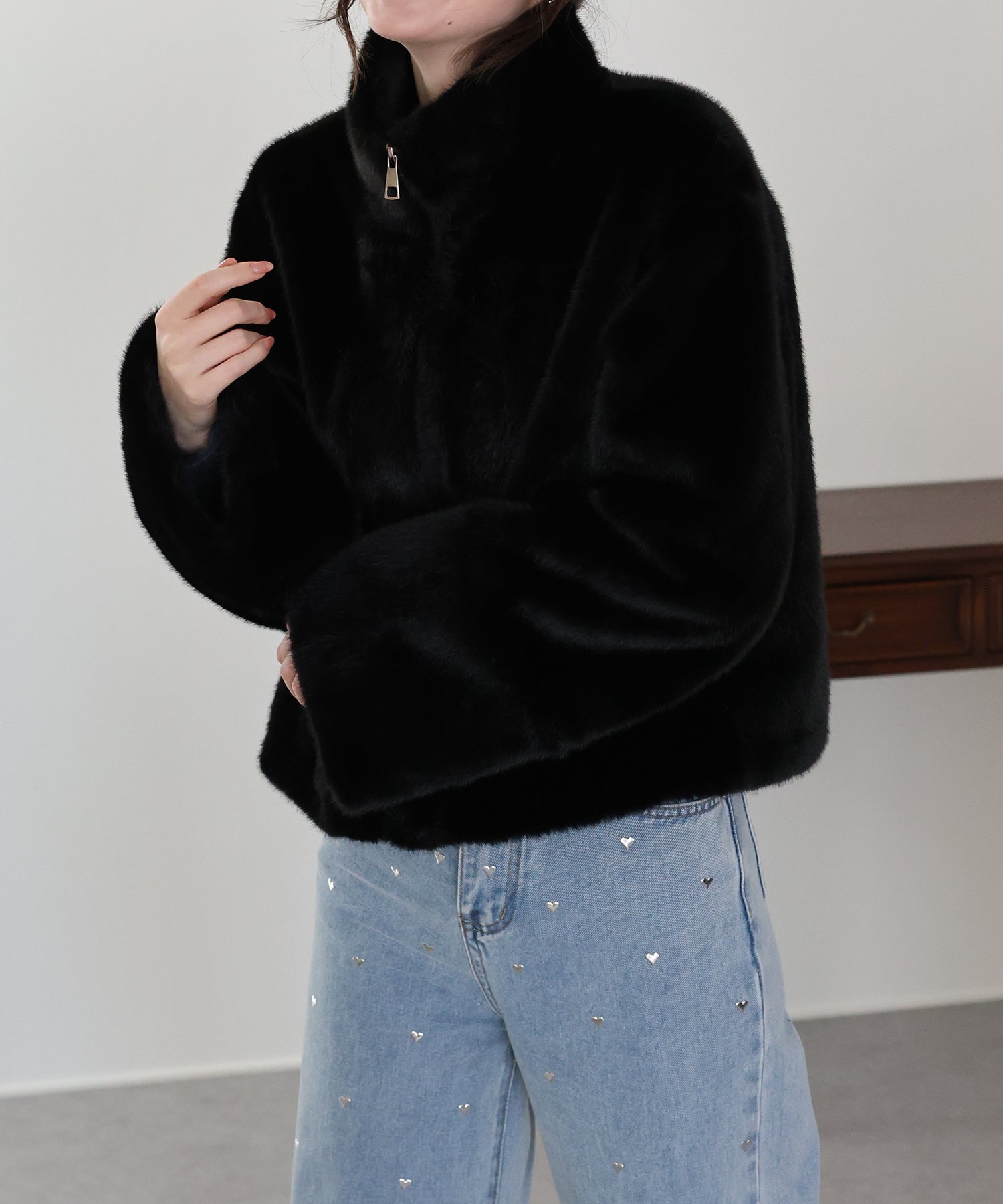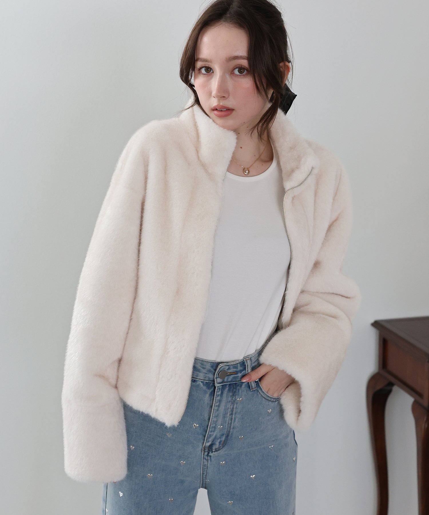 ?STYLING ファー素材を取り入れるだけでいつものコーデが秋冬らしいスタイリングに! いつものカジュアルなデニムに羽織るだけでおしゃれさと季節感ががぐっと上がります。 ワンピースやスカートと合わせたフェミニンなスタイルもおすすめ。