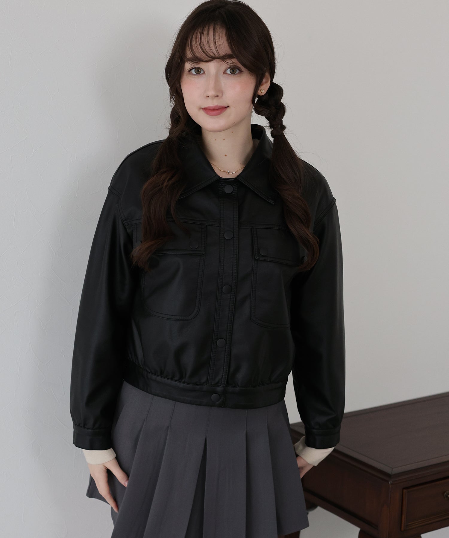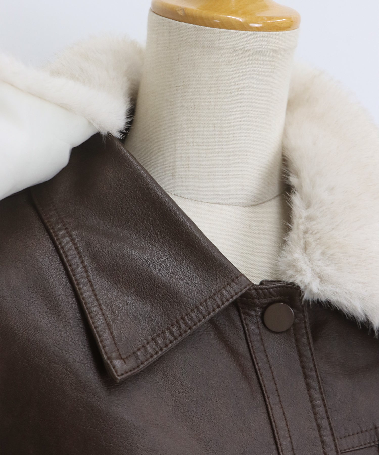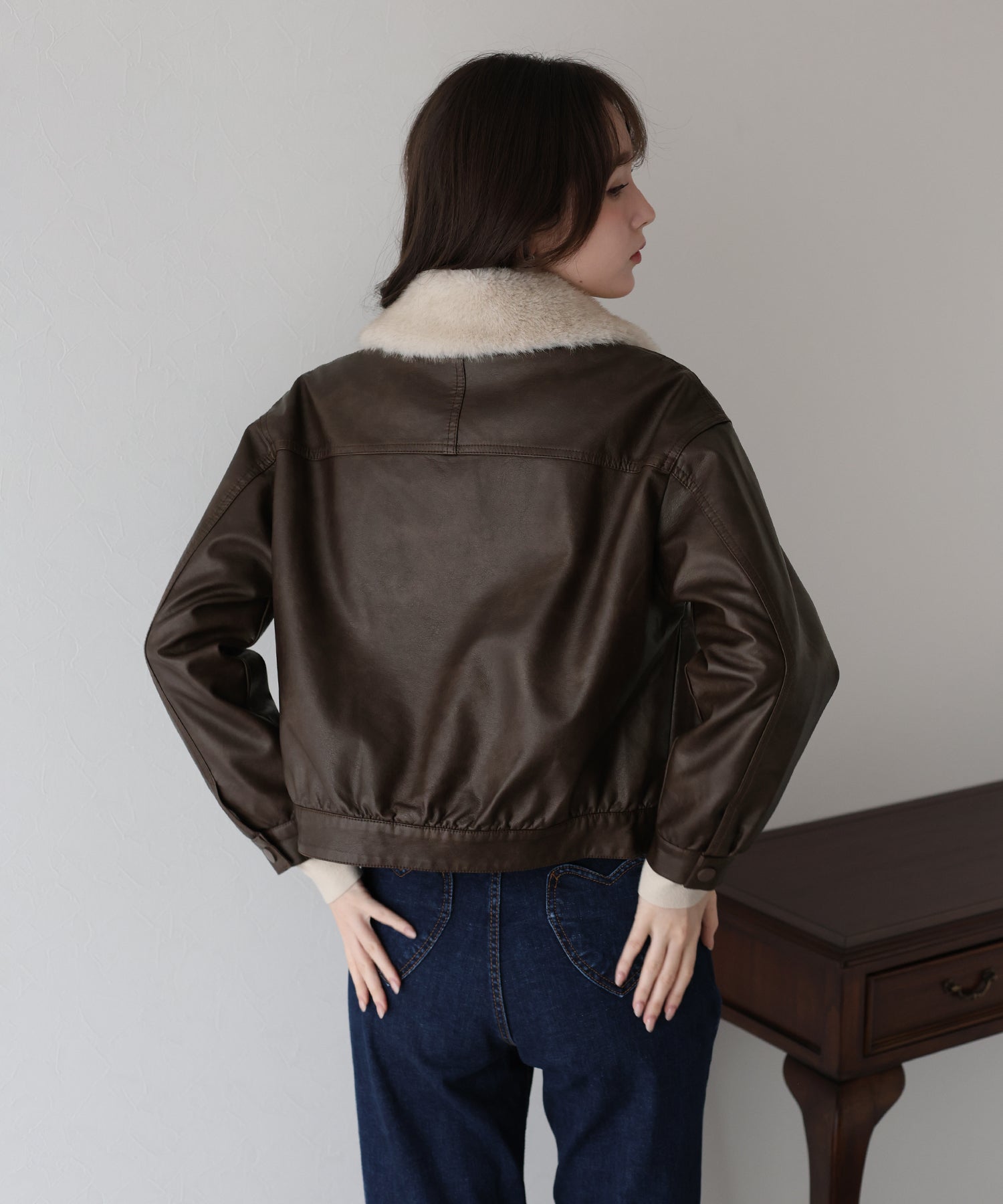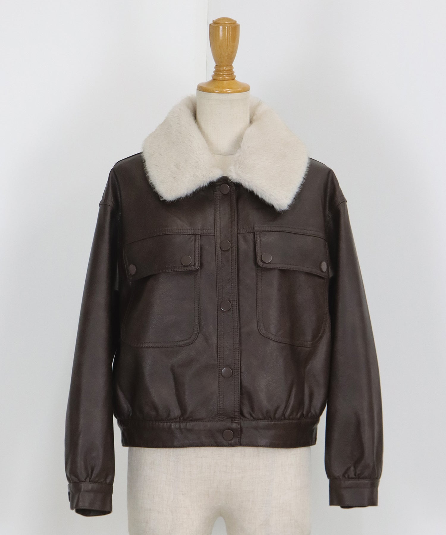 襟元のふわふわファーがシーズンムード高まる2WAYレザージャケット ?POINT 甘めにもカジュアルにも着回せる、ショート丈レザーブルゾン。 ファー襟がフェミニンなポイントをプラスします。 ティペットは取り外し可能なので気分やコーデに合わせられる2WAY仕様! 裏地はファー、袖裏は中綿キルティングになっているので風を通しにくく保温性もあり コンパクトな見た目よりも暖かく着用できます◎ 一枚羽織るだけで暖かく、寒い季節に重宝するアウターです。