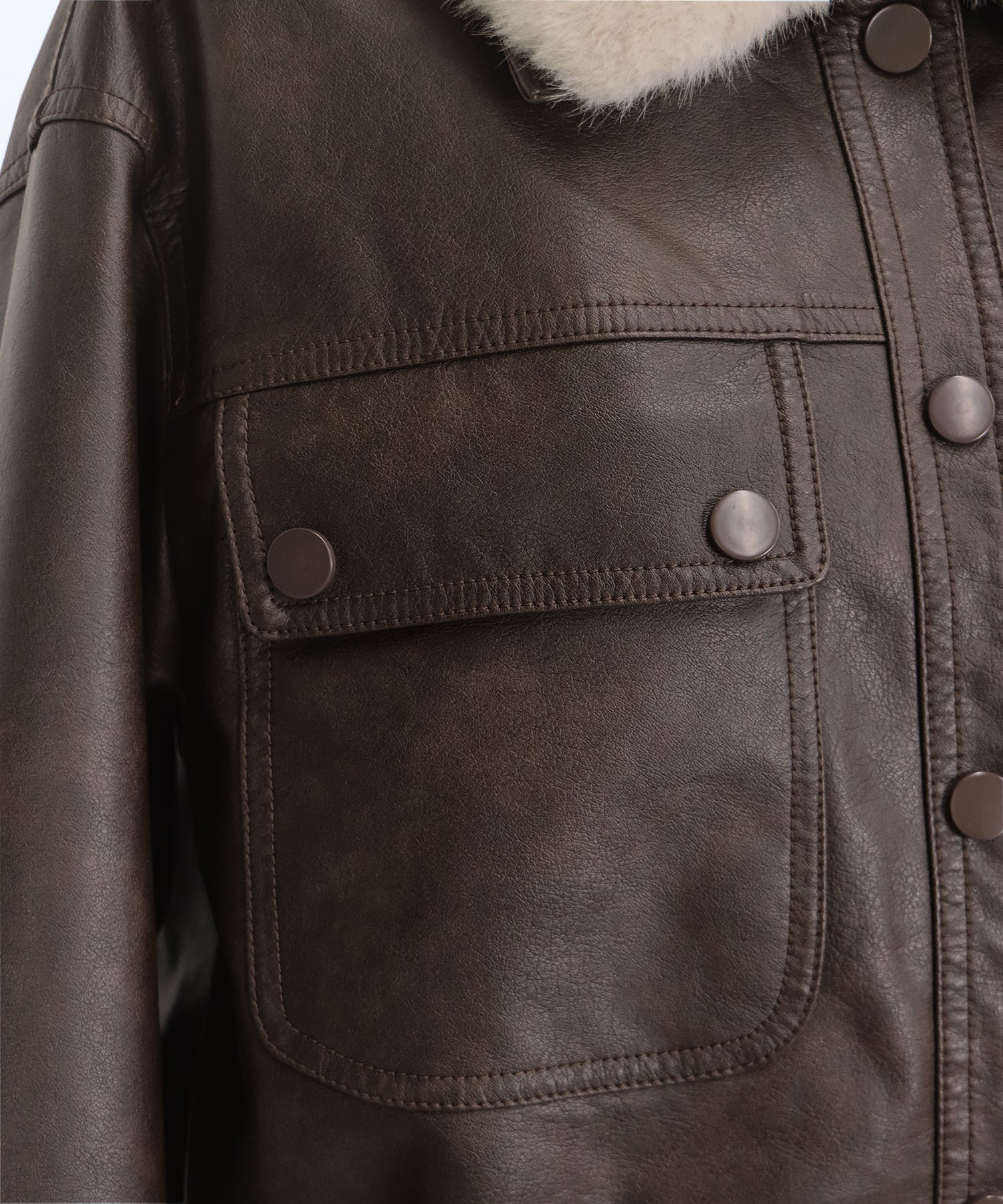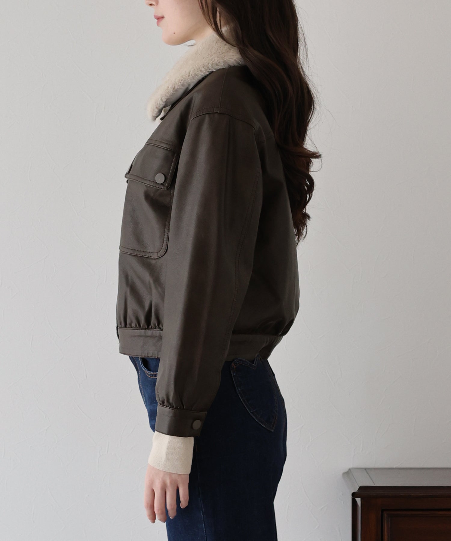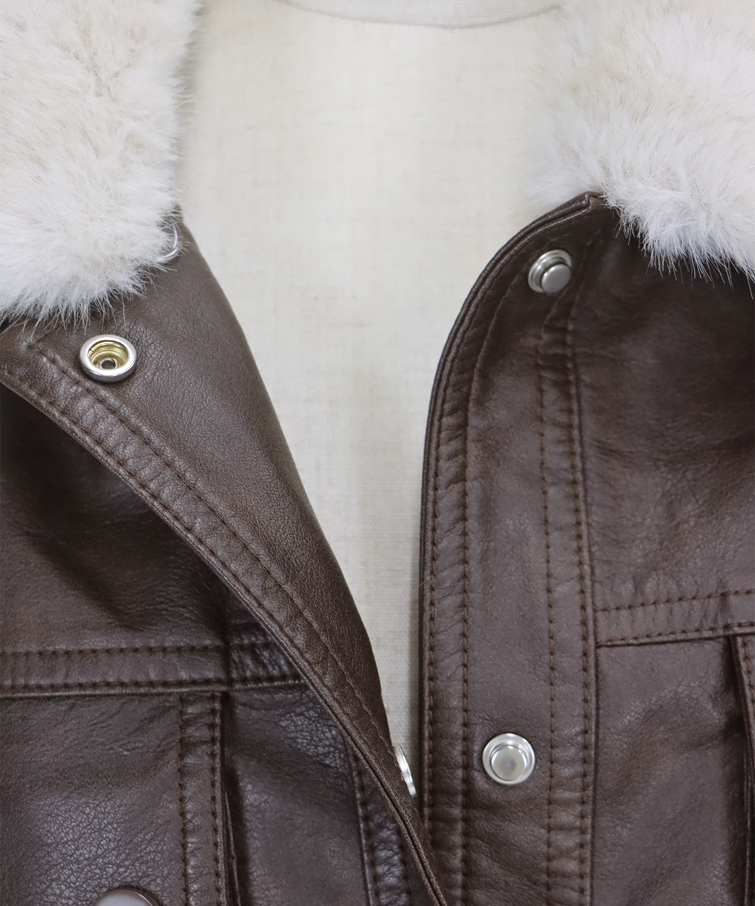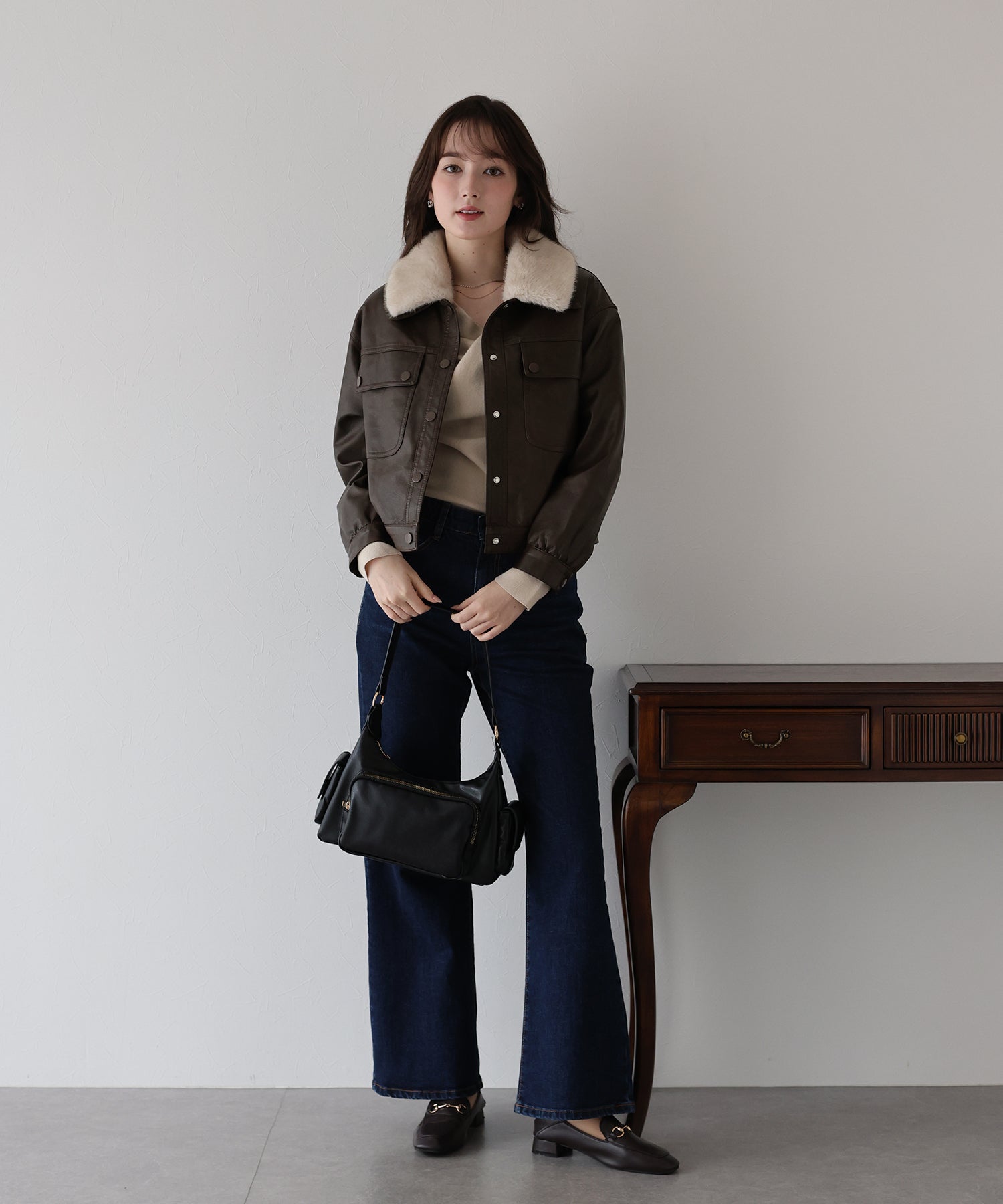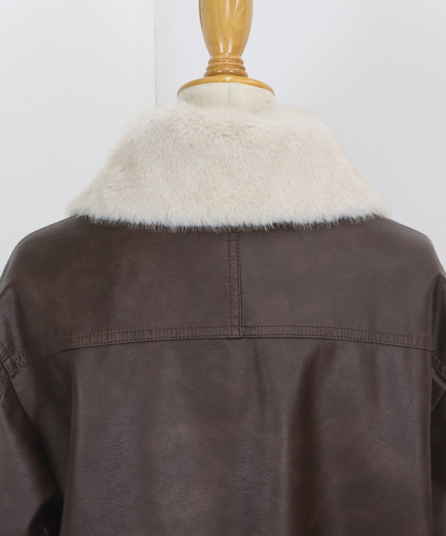 襟元のふわふわファーがシーズンムード高まる2WAYレザージャケット ?POINT 甘めにもカジュアルにも着回せる、ショート丈レザーブルゾン。 ファー襟がフェミニンなポイントをプラスします。 ティペットは取り外し可能なので気分やコーデに合わせられる2WAY仕様! 裏地はファー、袖裏は中綿キルティングになっているので風を通しにくく保温性もあり コンパクトな見た目よりも暖かく着用できます◎ 一枚羽織るだけで暖かく、寒い季節に重宝するアウターです。