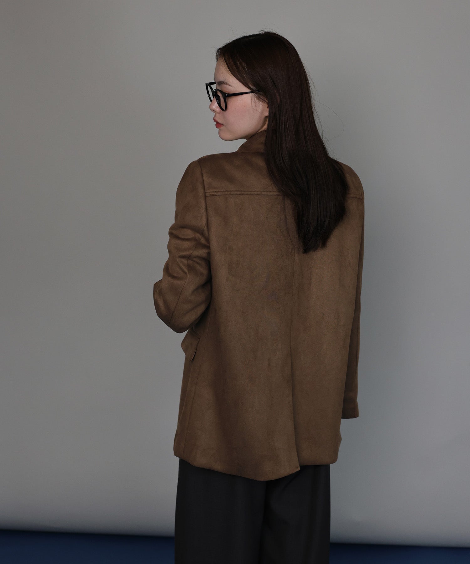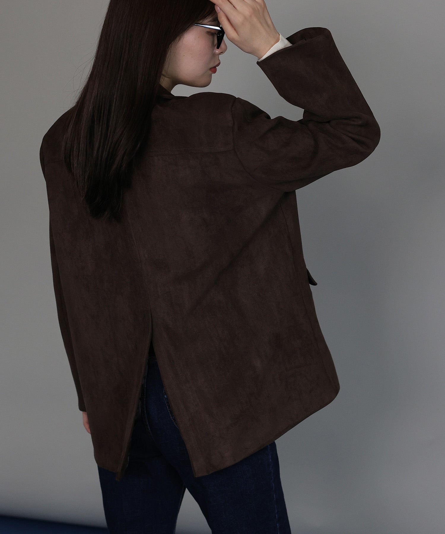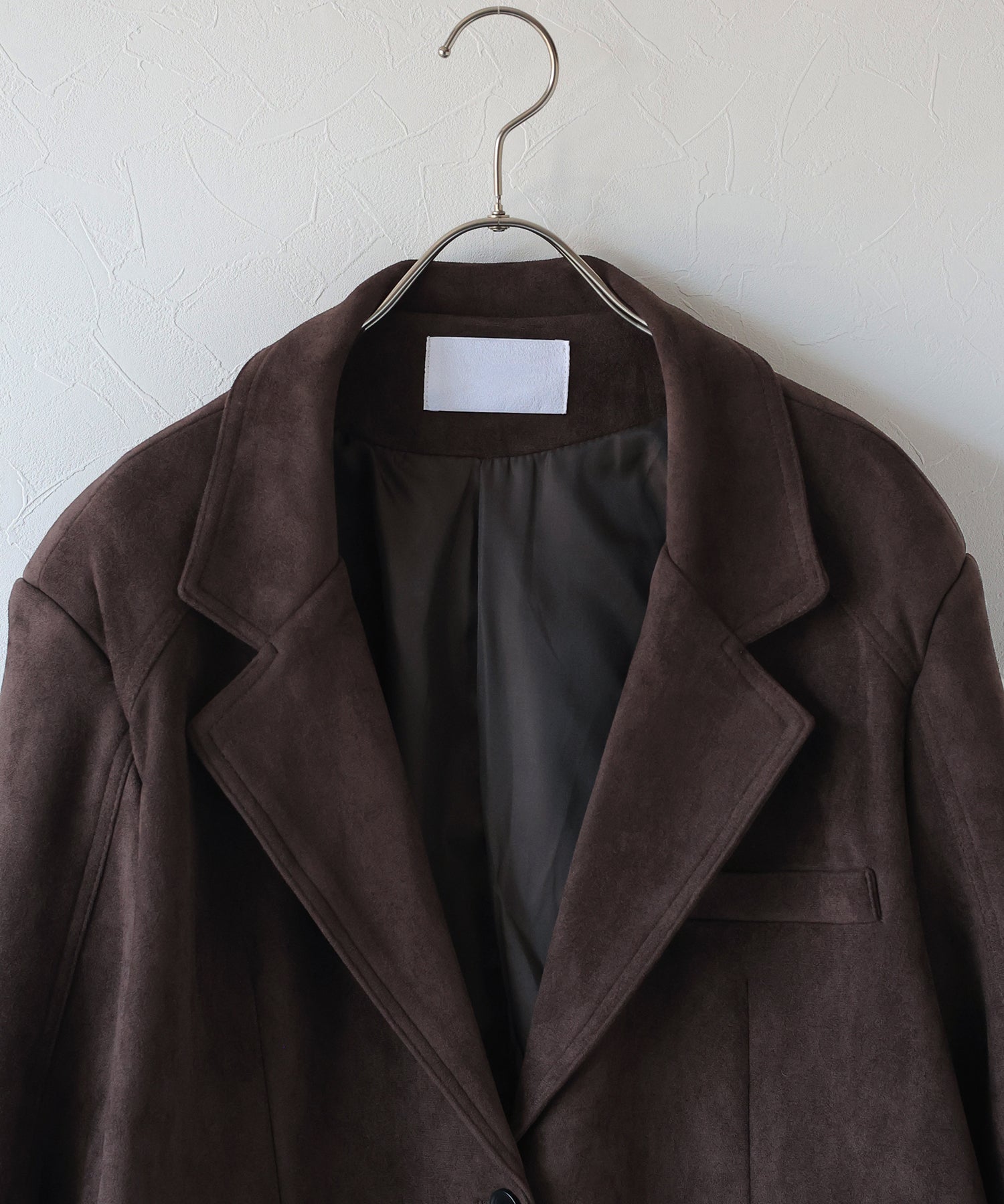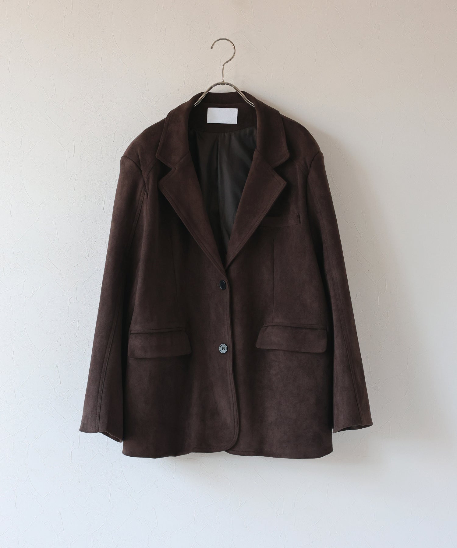 厚みとハリのあるスウェード生地が上品な存在感を放つテーラードジャケット。