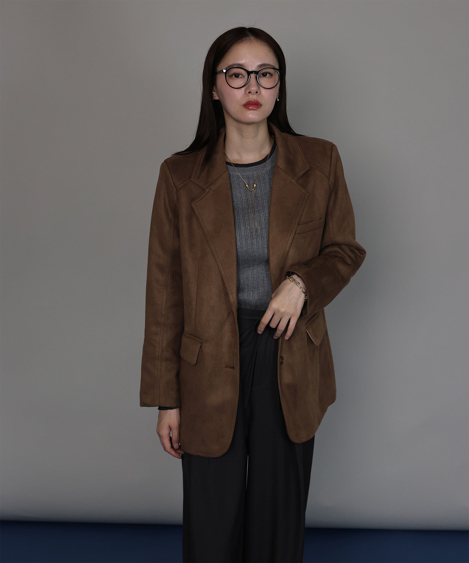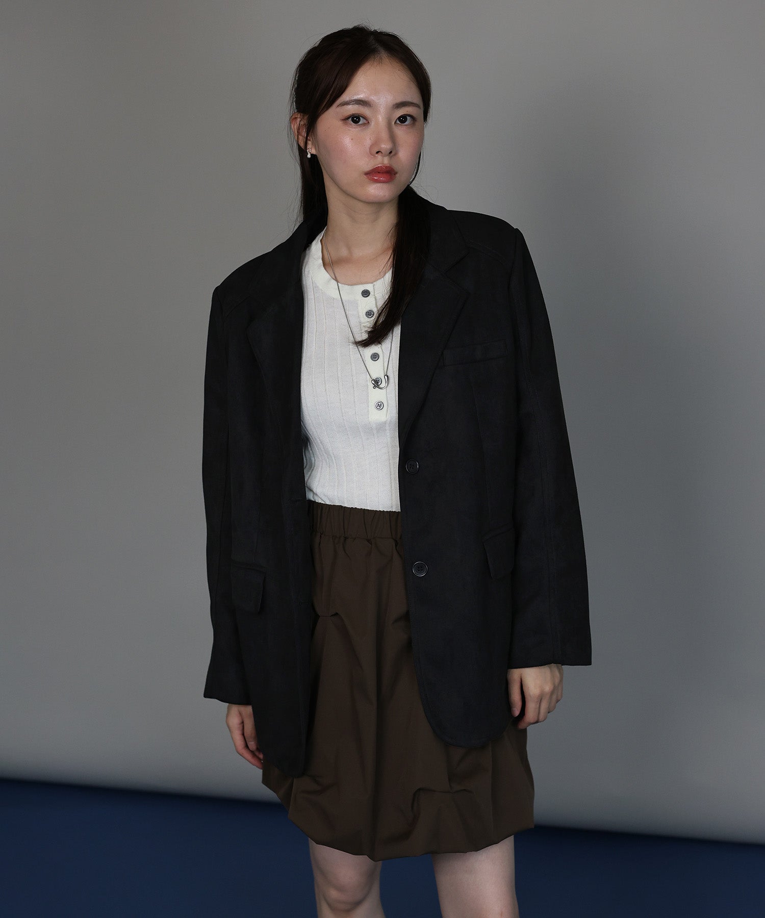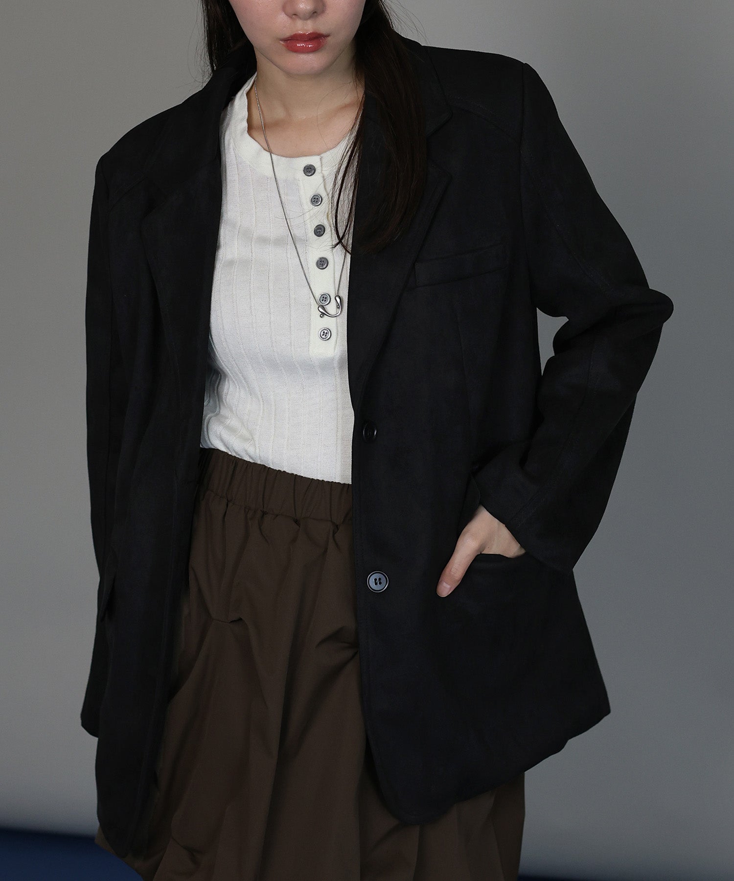 柔らかなスウェード調素材が、高見えしながらも大人の余裕を感じさせます。