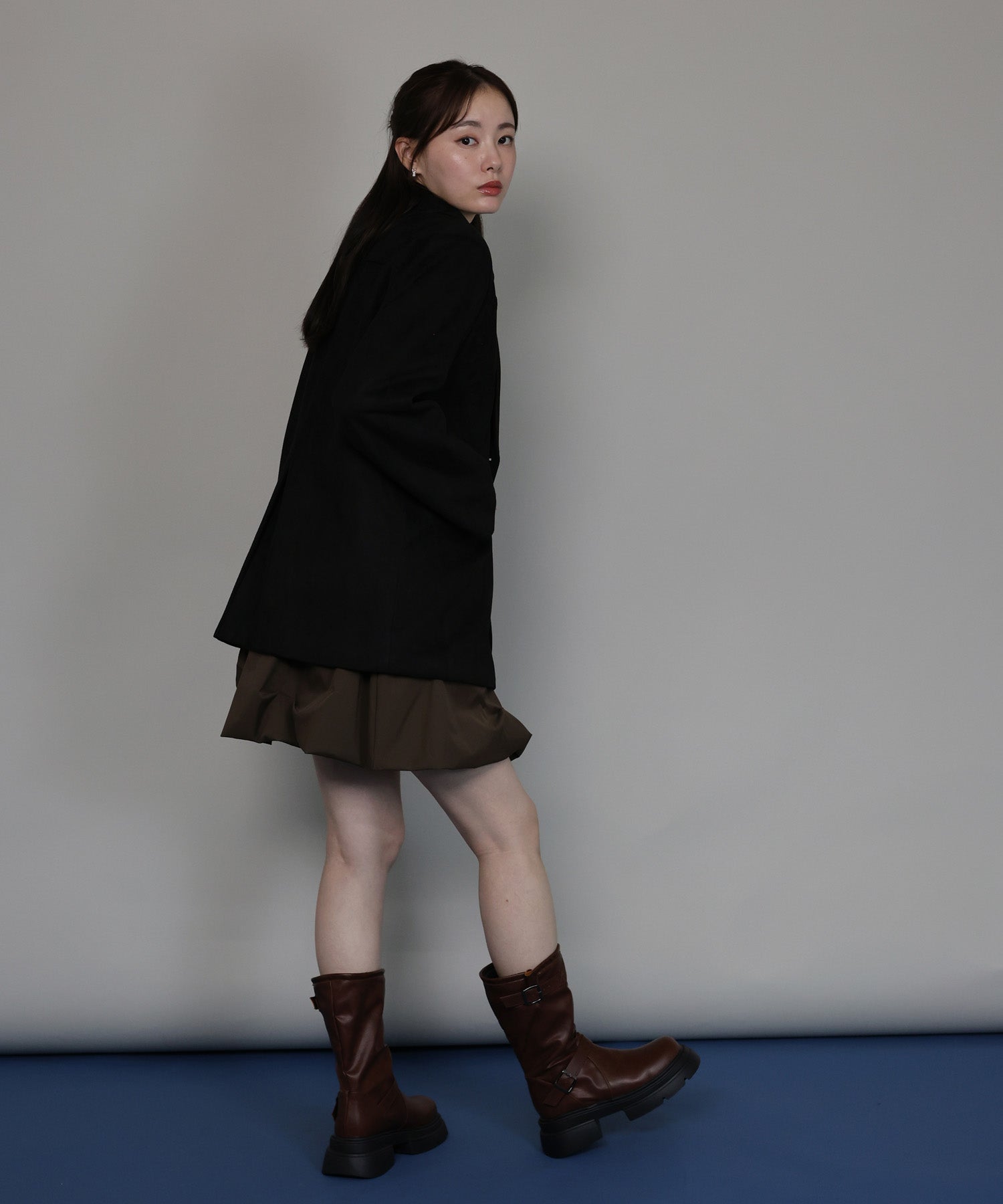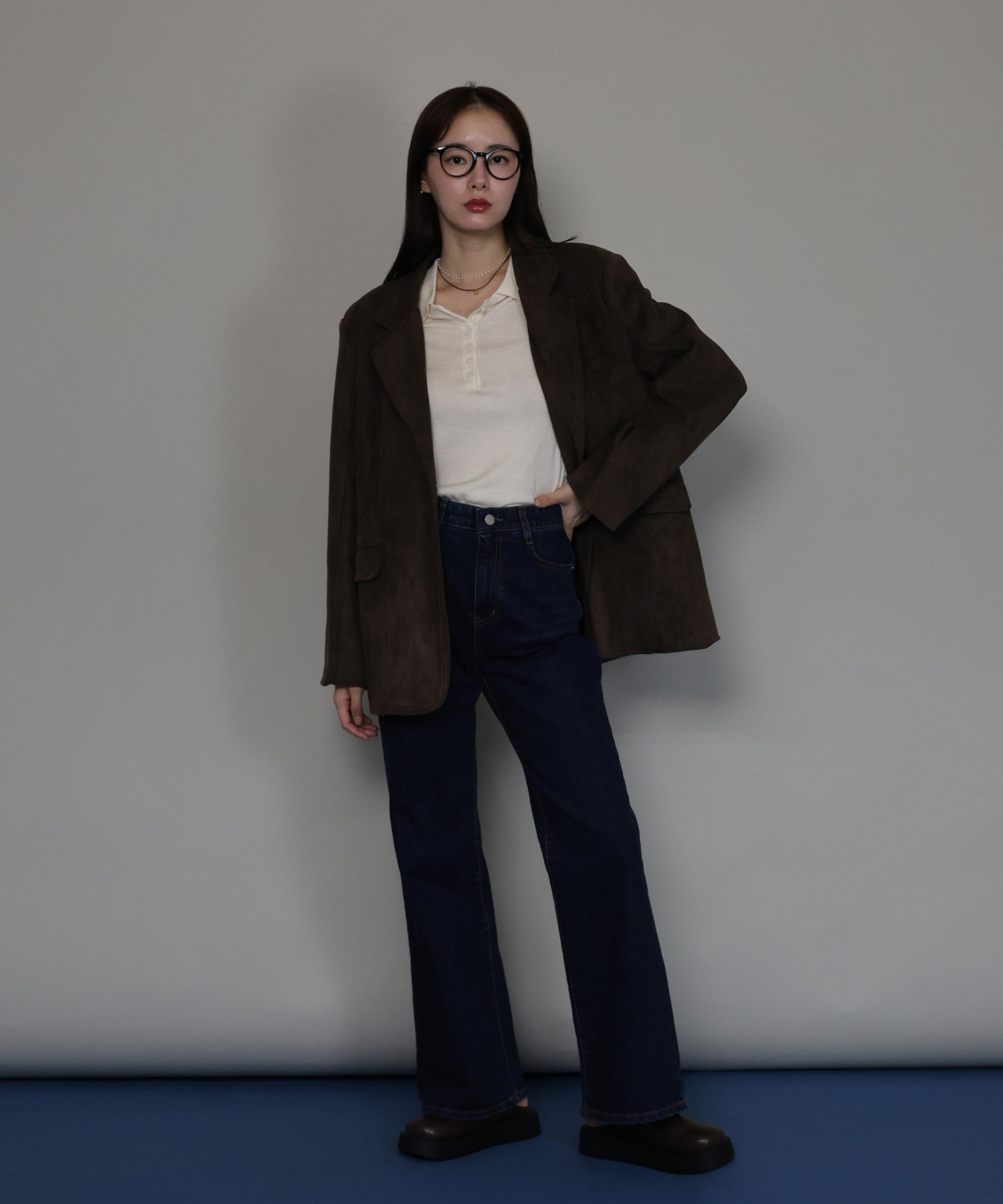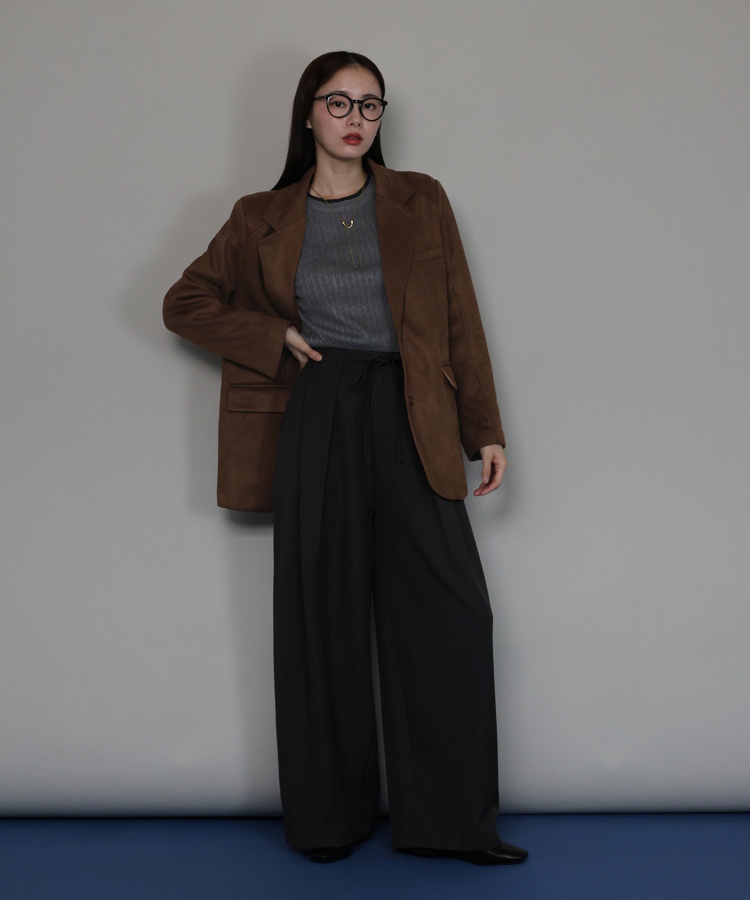 柔らかなスウェード調素材が、高見えしながらも大人の余裕を感じさせます。