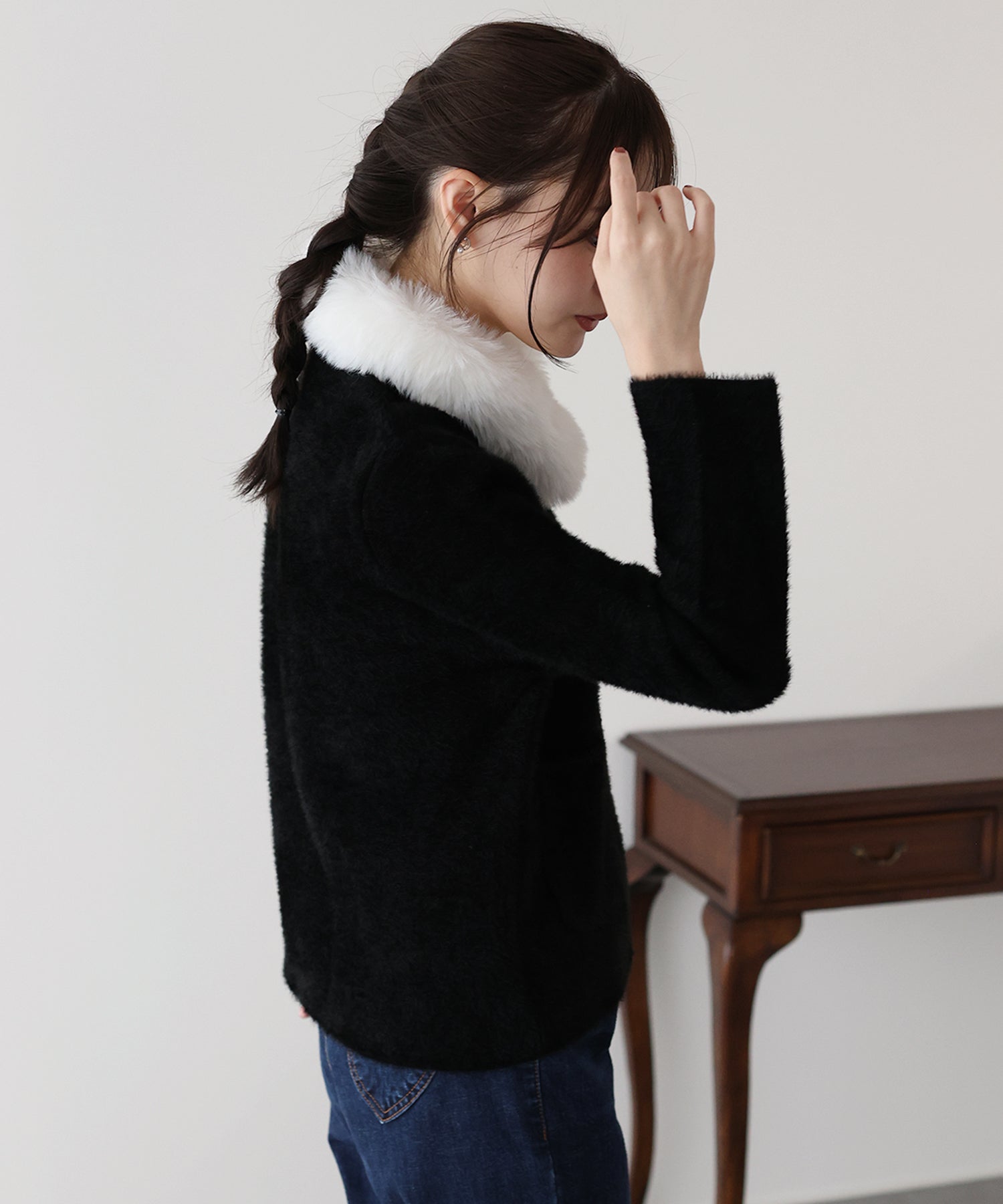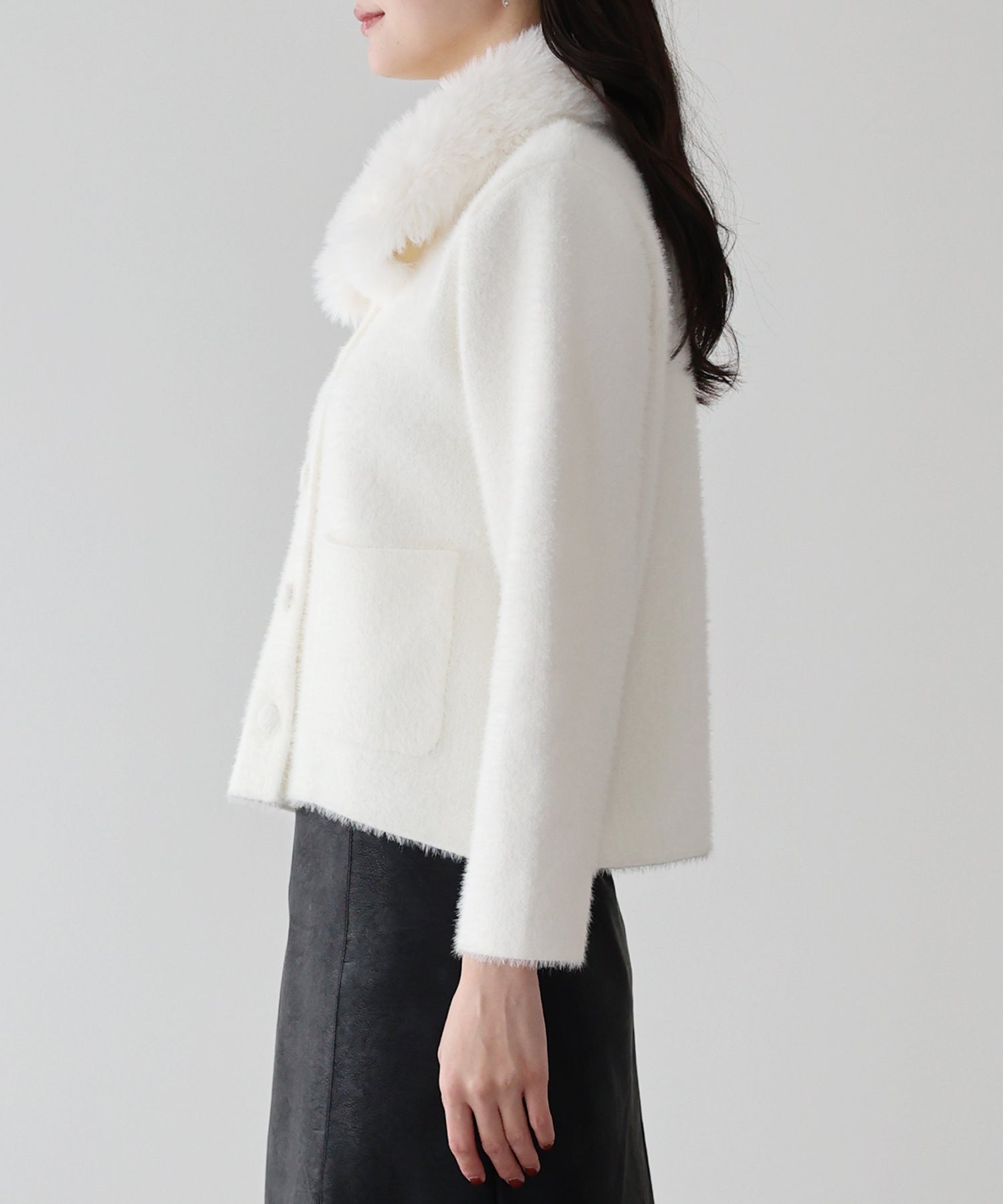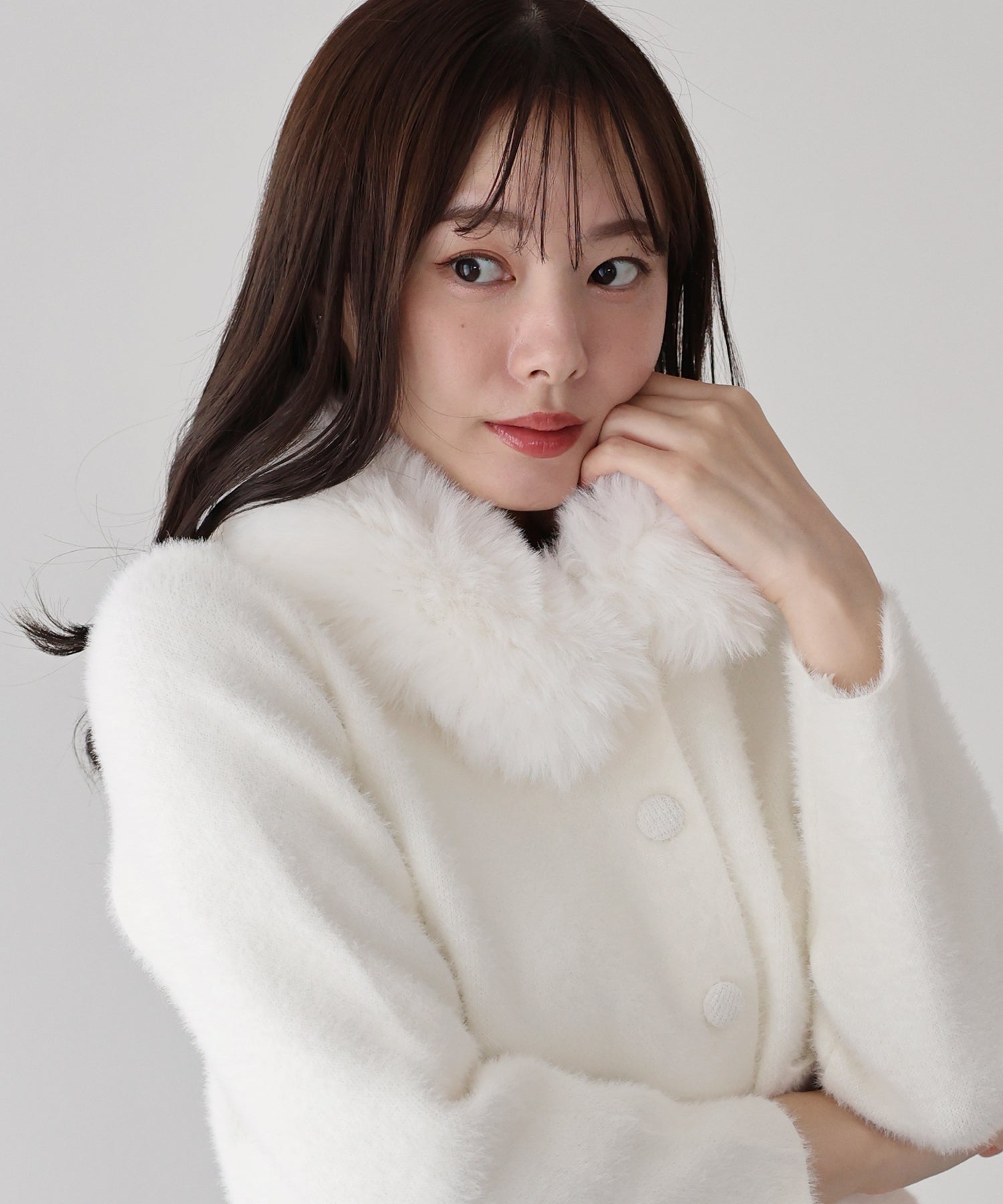 ボリューミーなファー襟が小顔効果抜群のシャギーニットジャケット