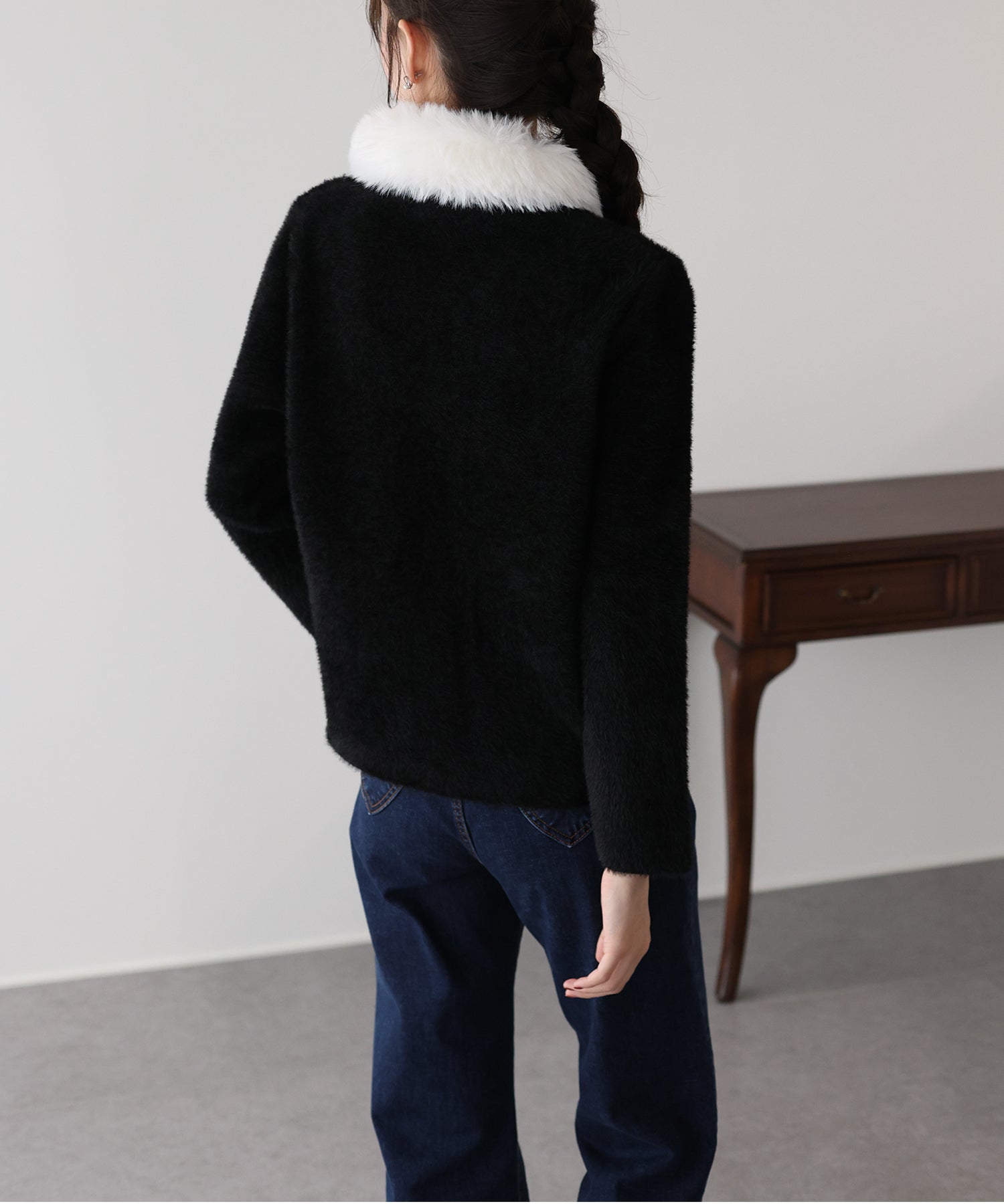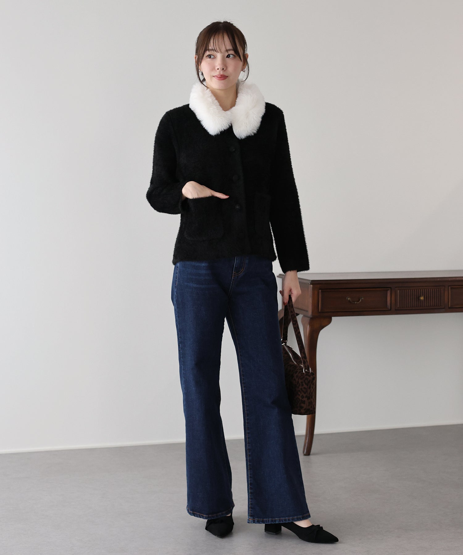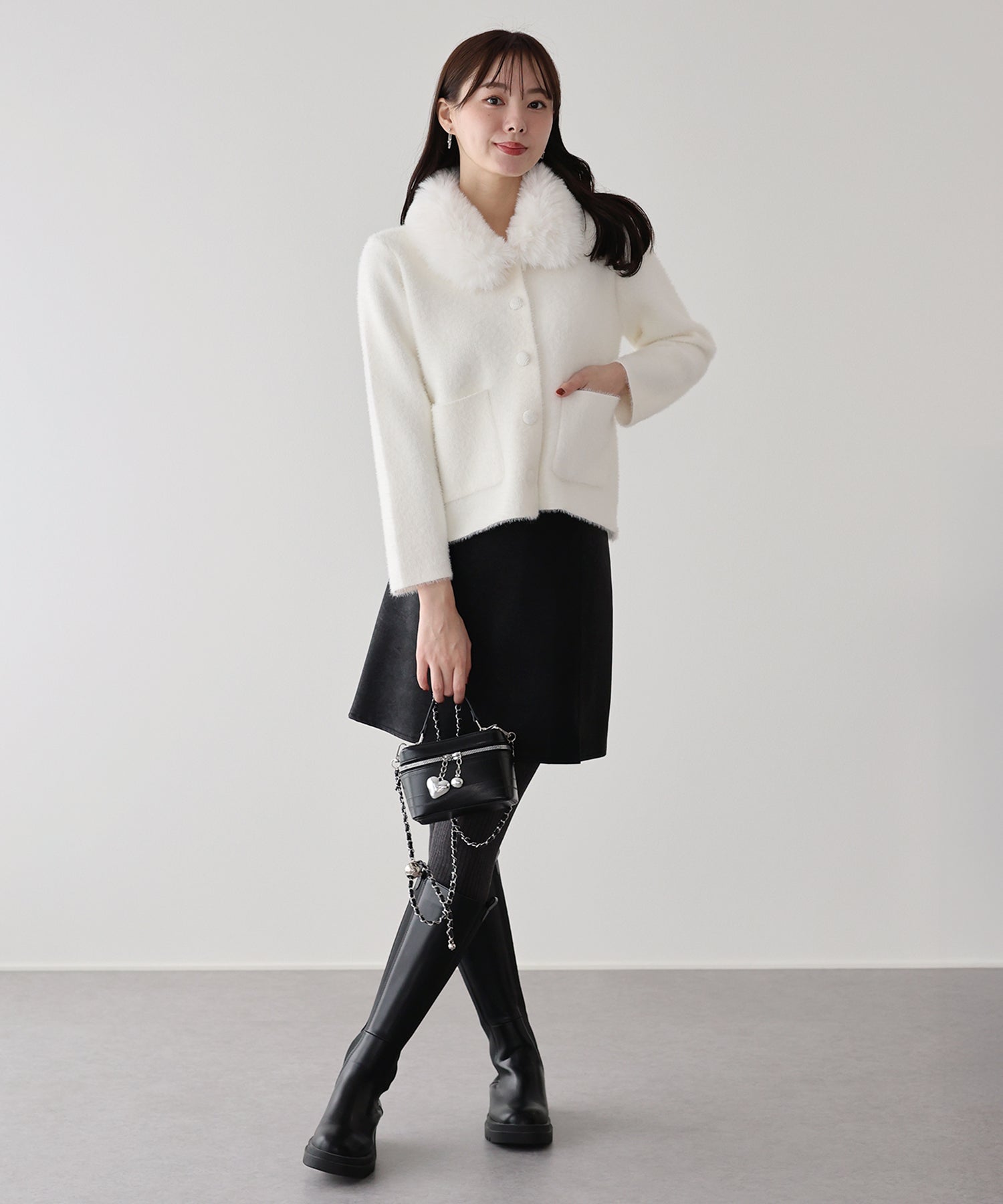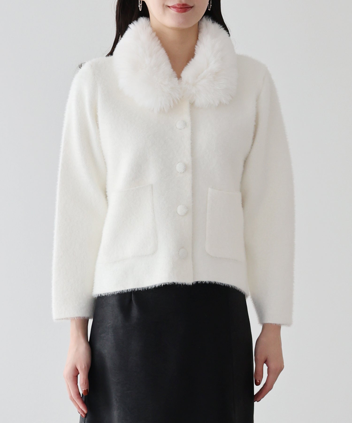 ボリューミーなファー襟が小顔効果抜群のシャギーニットジャケット