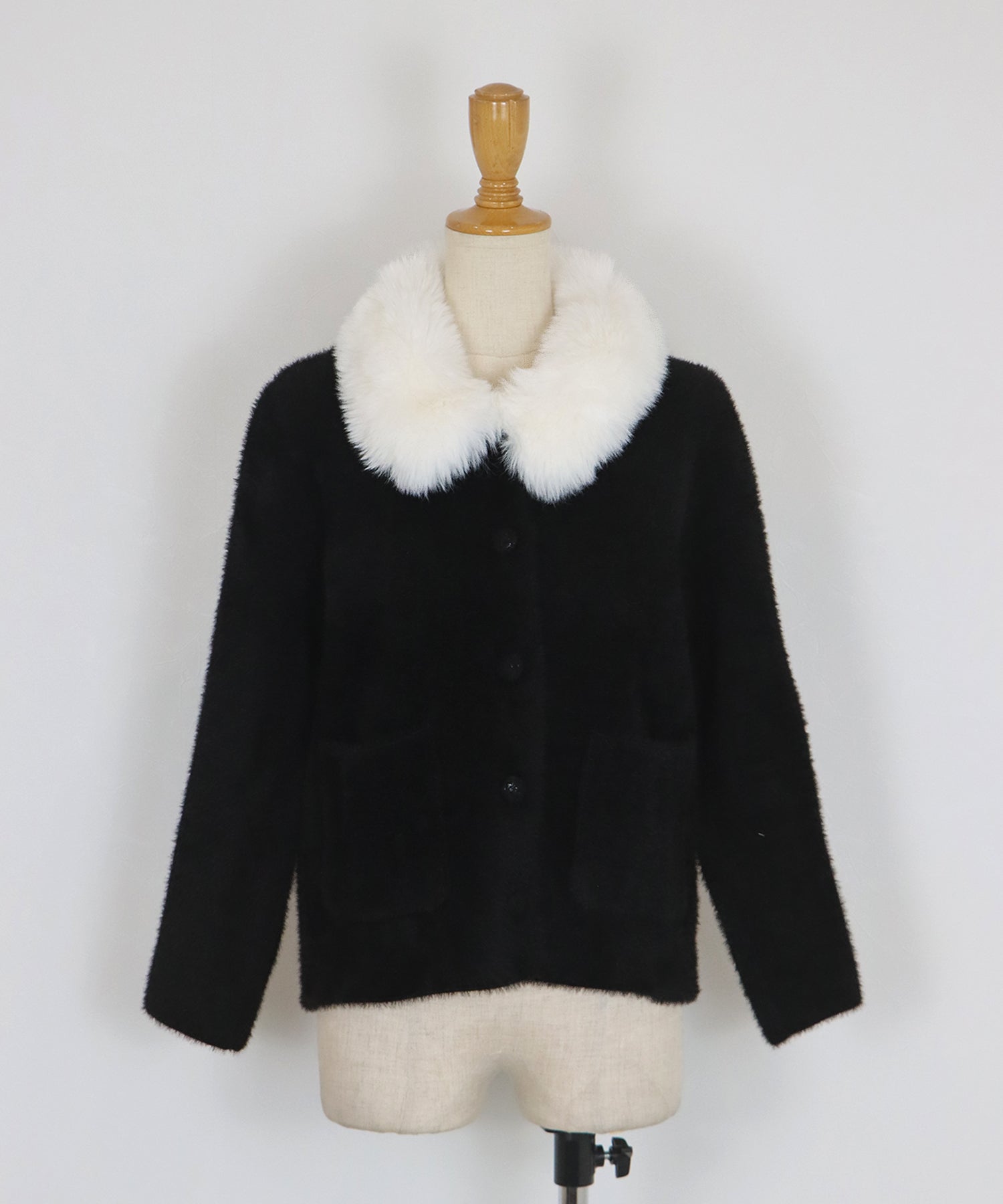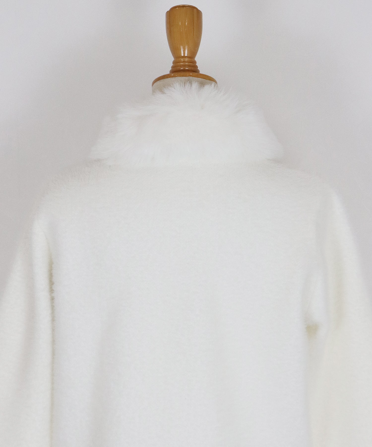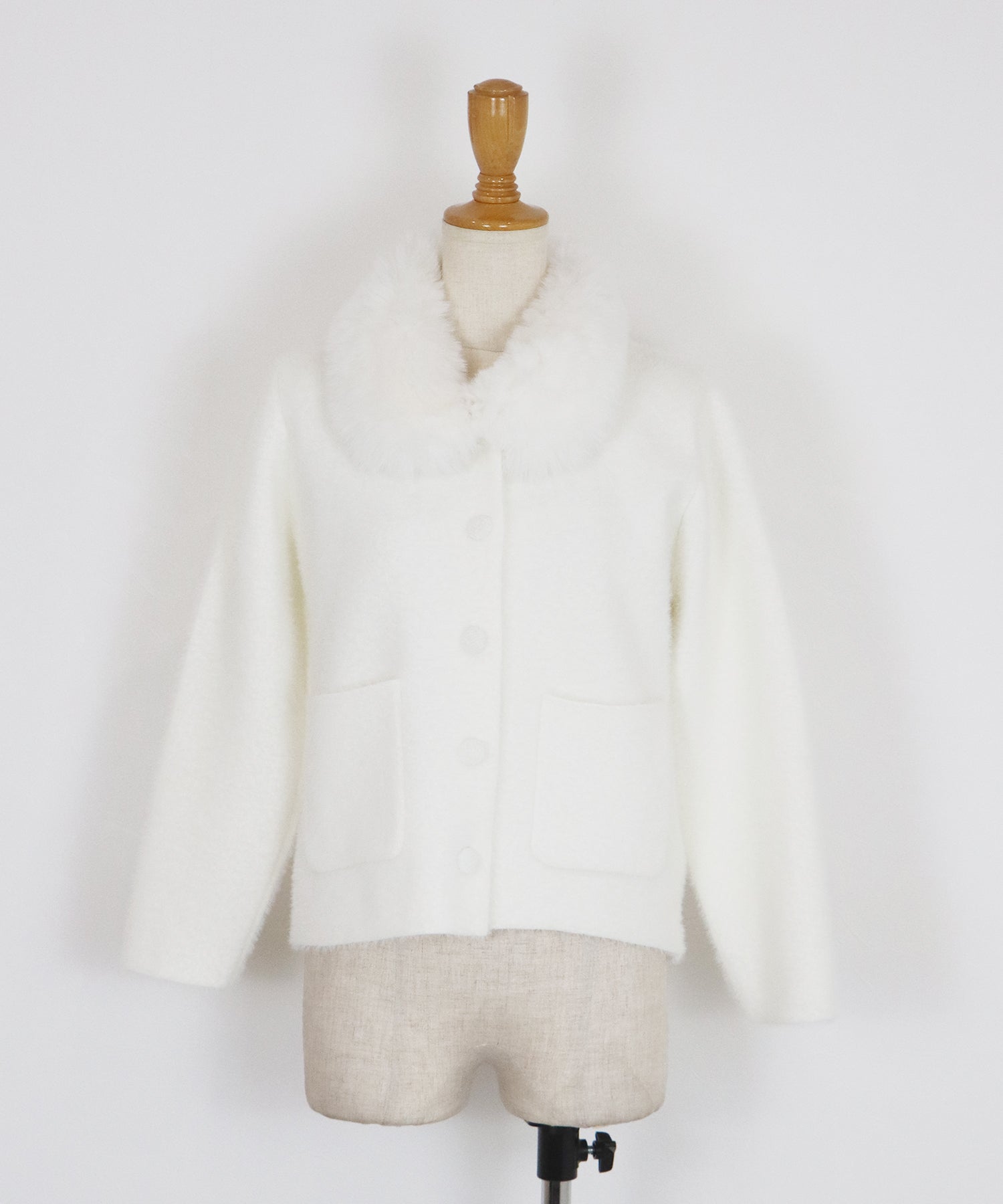 ファーがかわいらしく暖かみのあるニットジャケット。