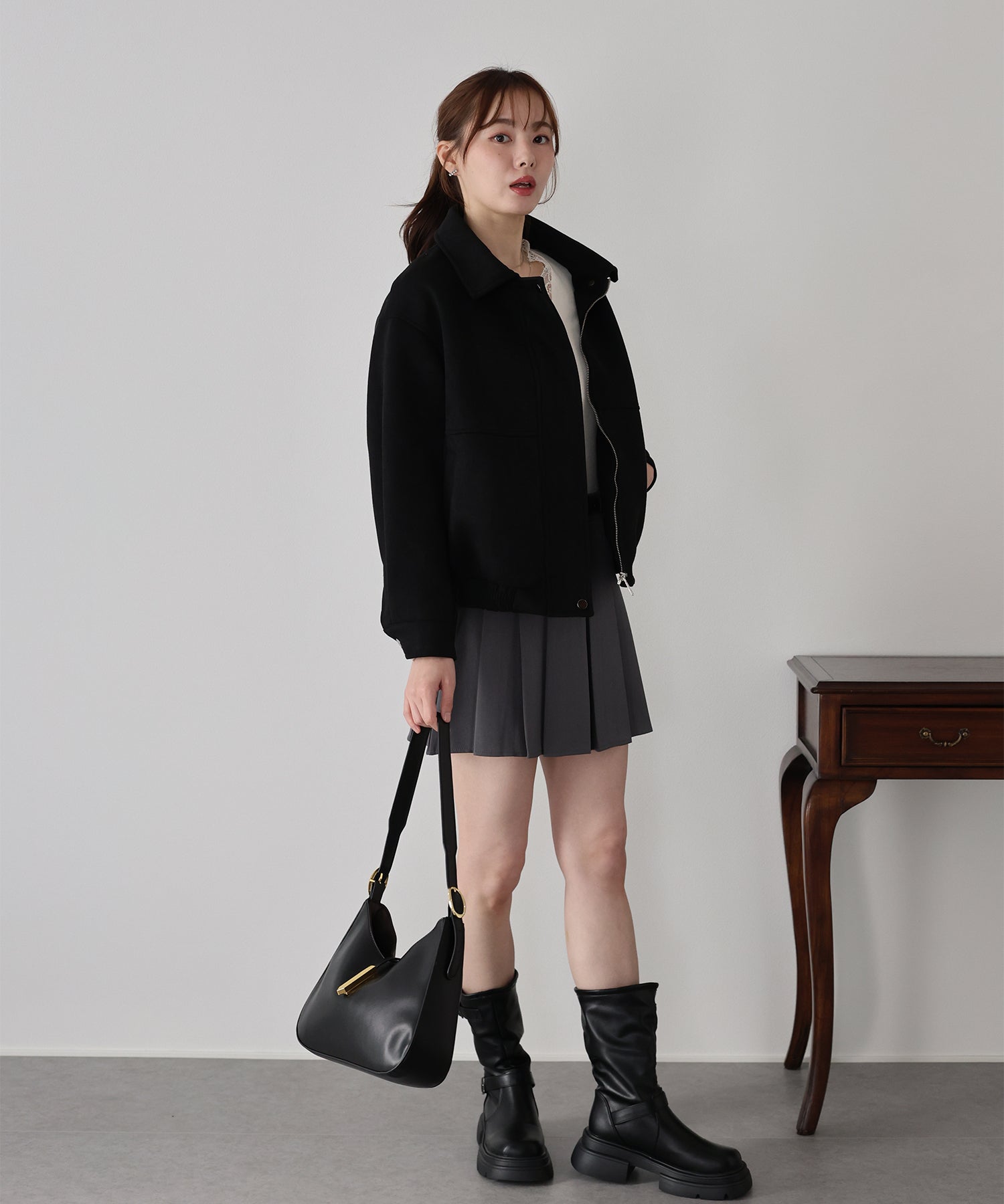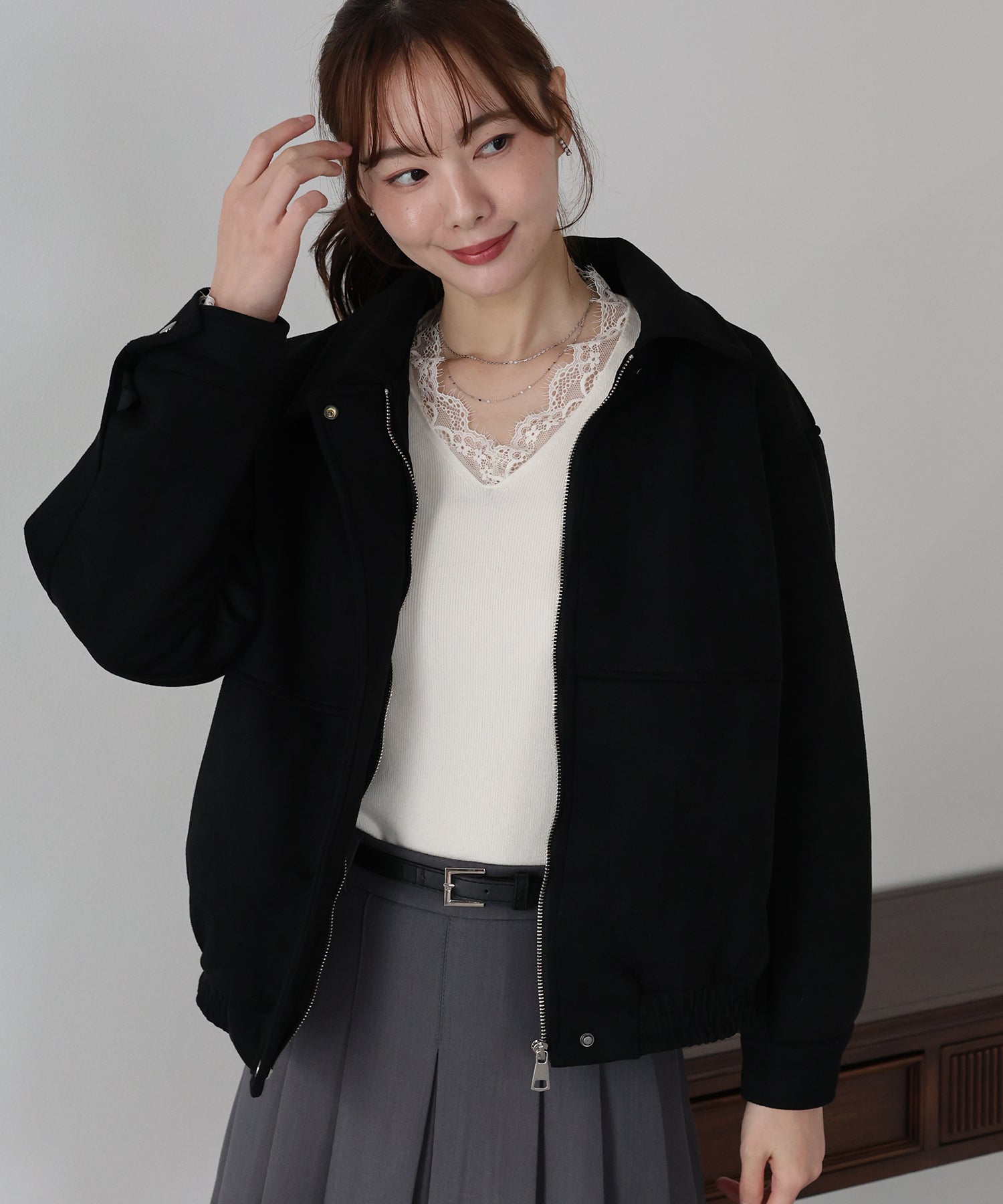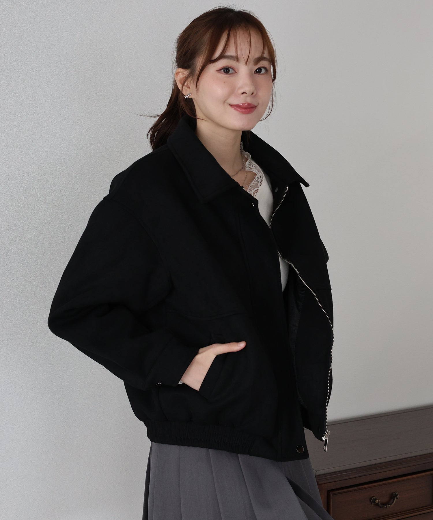 ?STYLING デニムやワイドパンツと合わせた大人カジュアルスタイルはもちろん、ワンピースに羽織っても抜け感のある着こなしに。 程よい厚みで季節の変わり目に重宝し、ジップとボタンの開閉で印象を変えられるのも魅力です。 首元まで留めればきちんと感があり、前を開ければラフで軽やかな印象に。