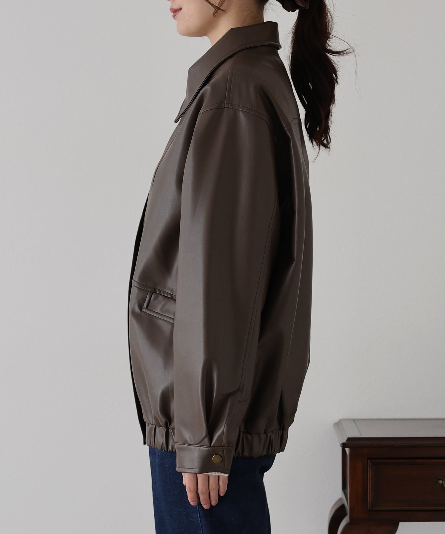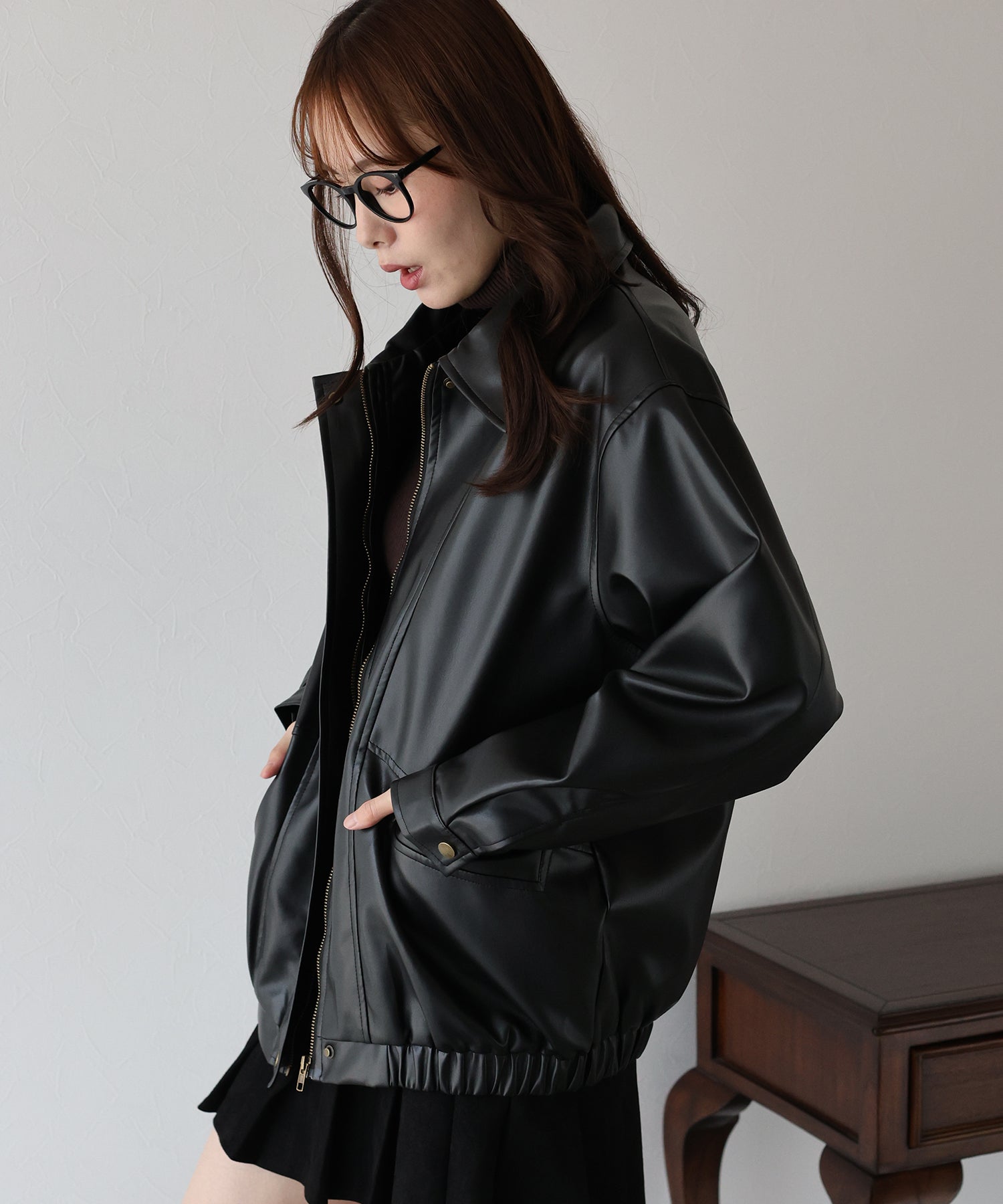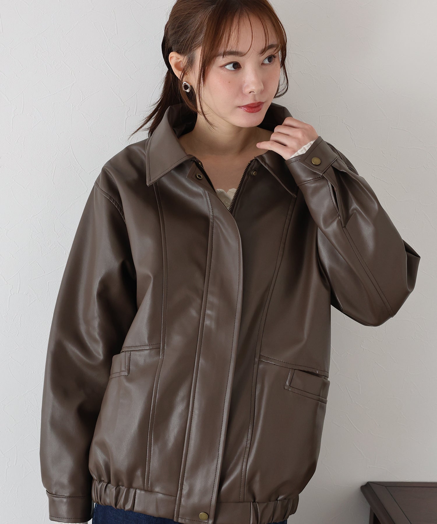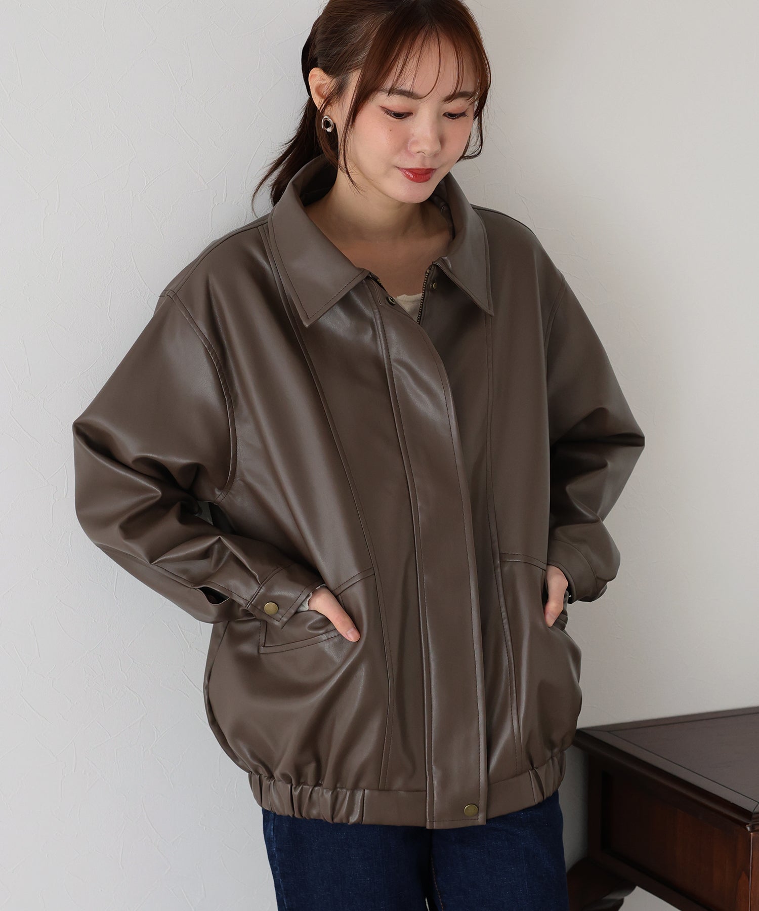 ゆるっとしたシルエットが大人かわいいフェイクレザーブルゾン