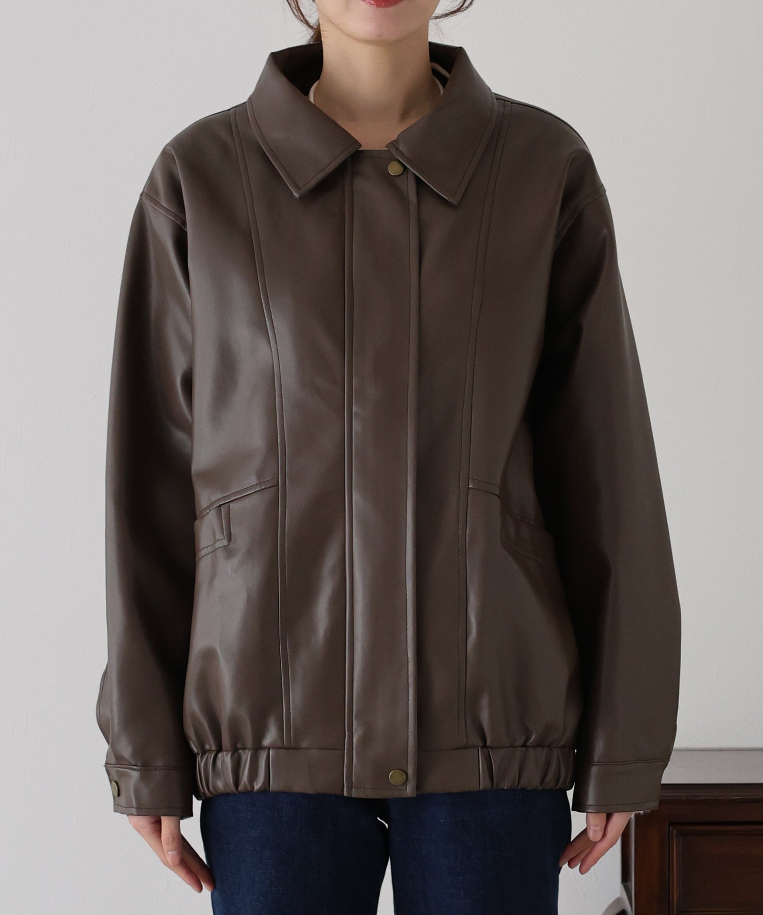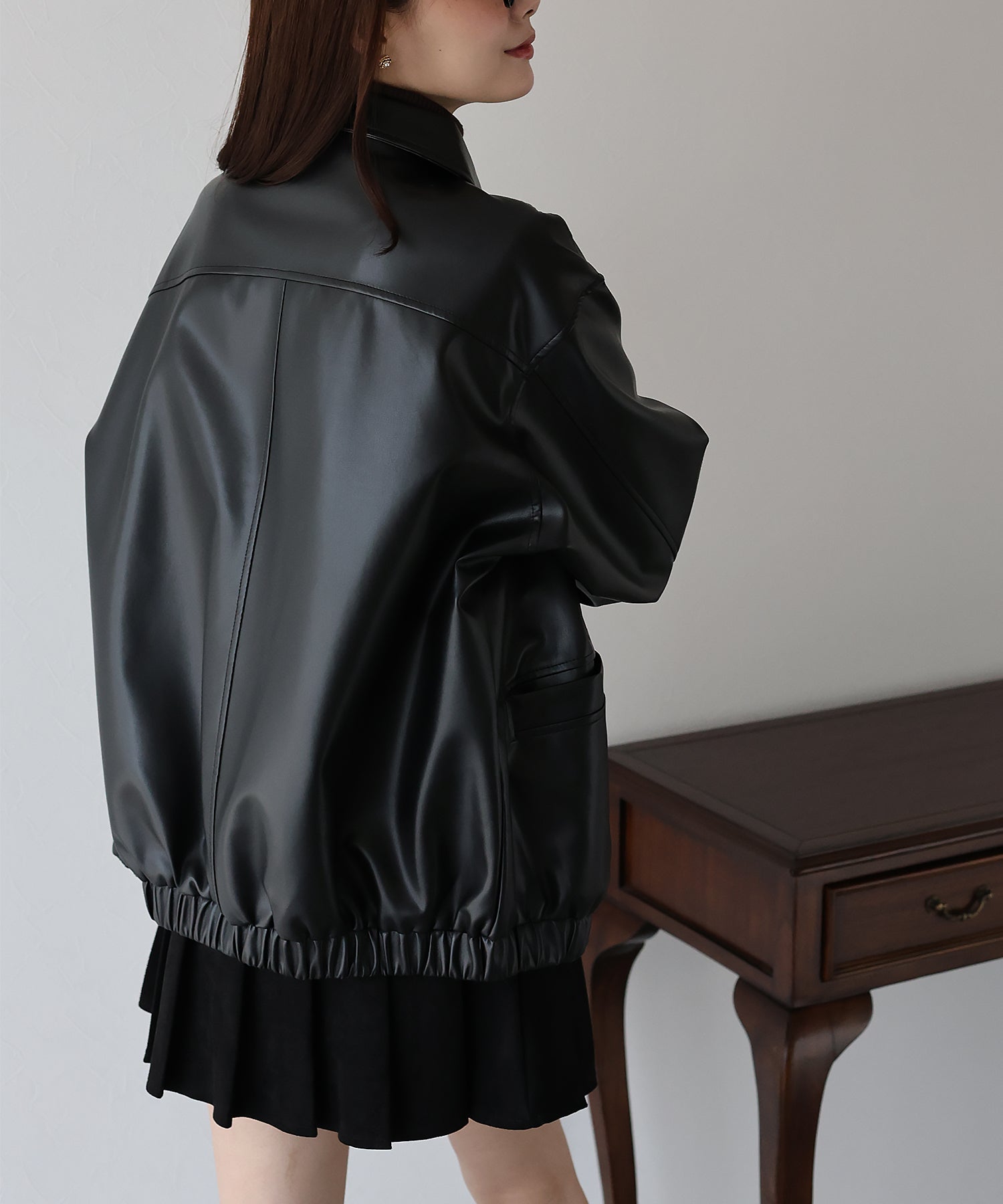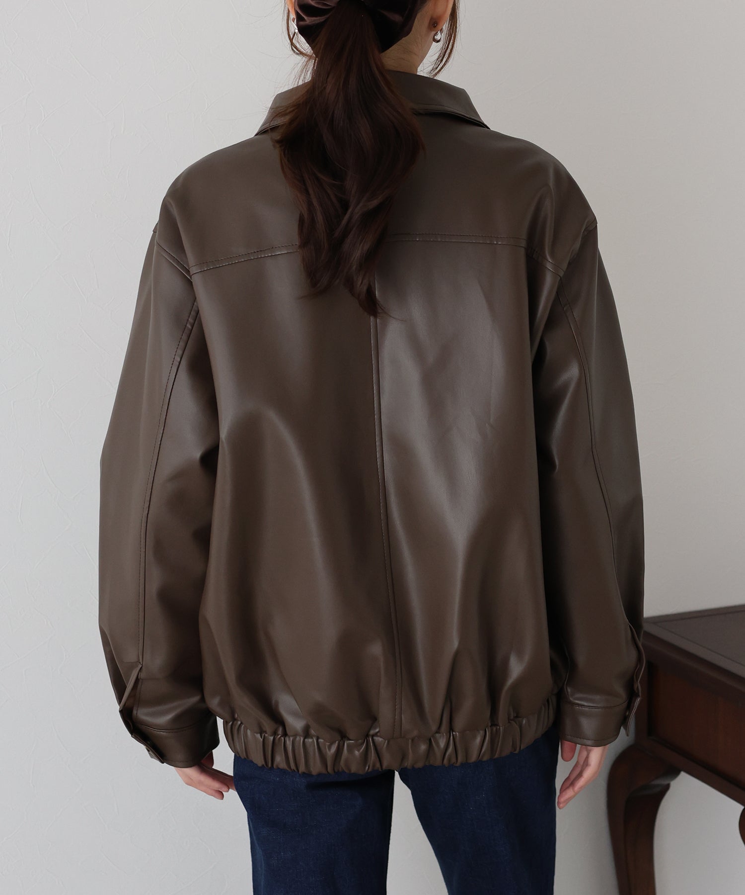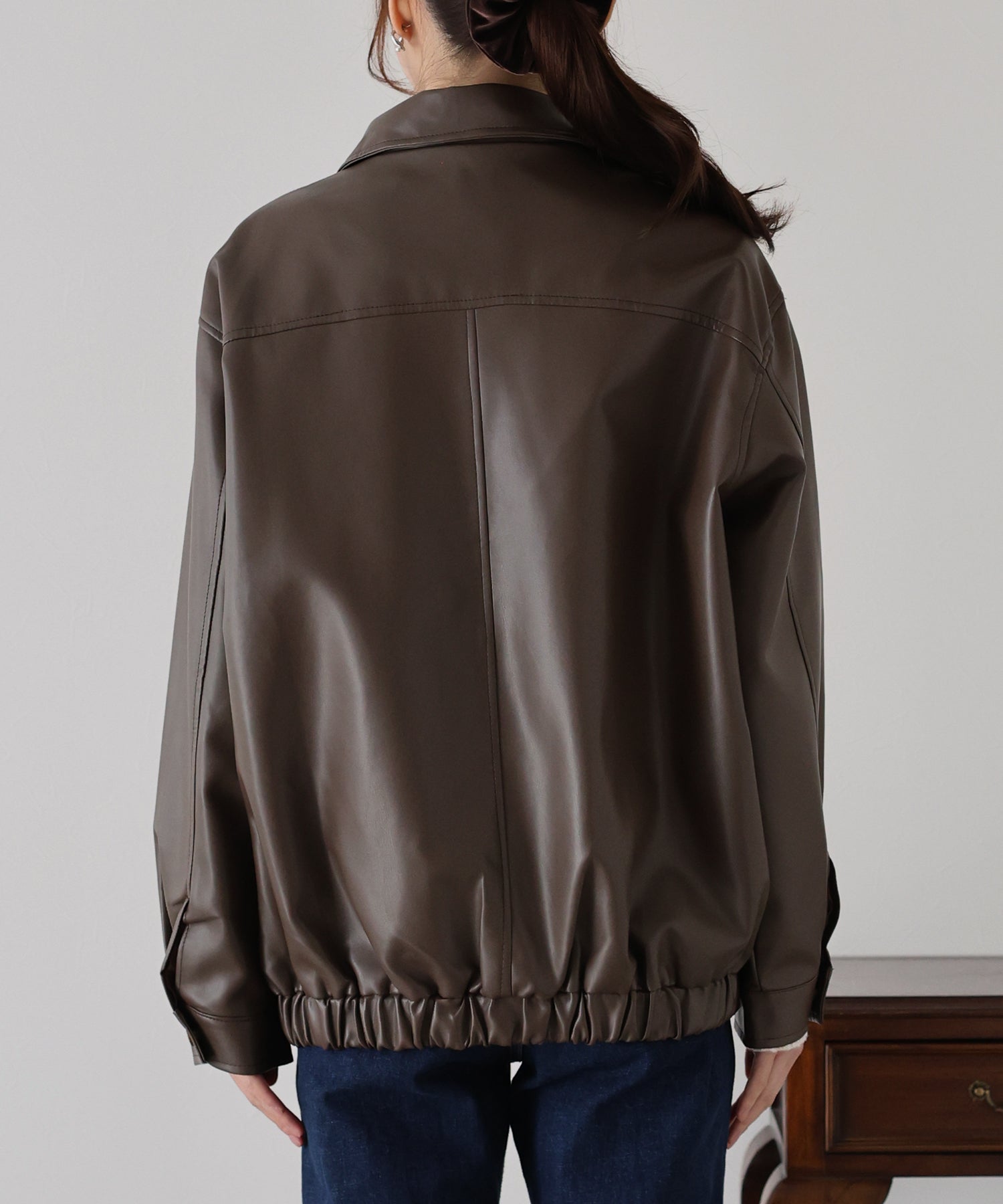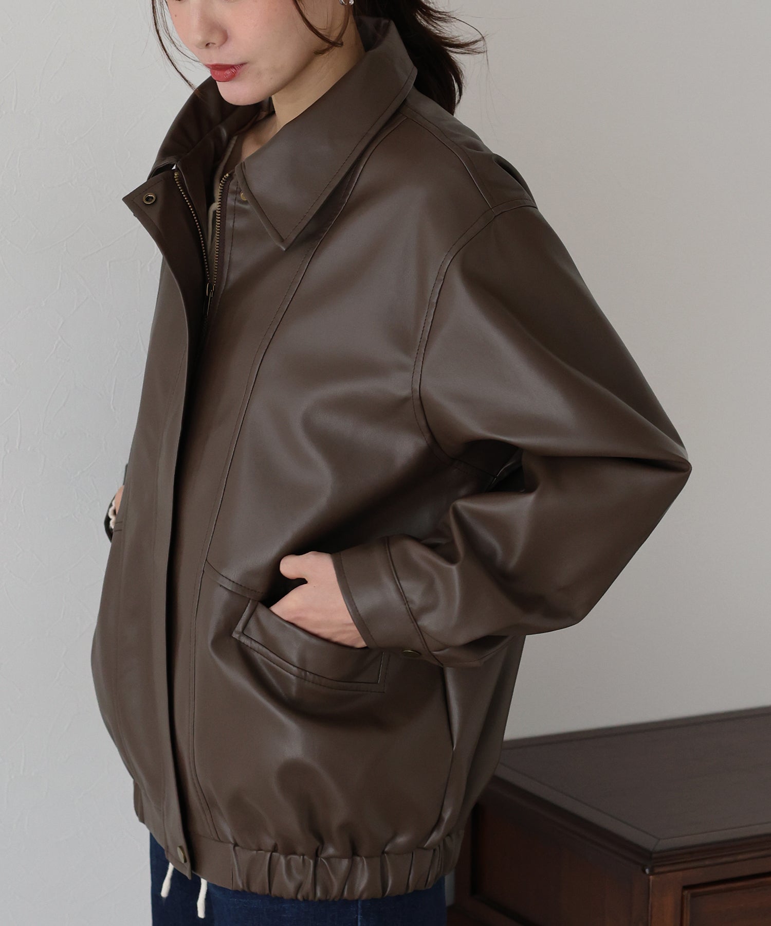 ゆるっとしたシルエットが大人かわいいフェイクレザーブルゾン