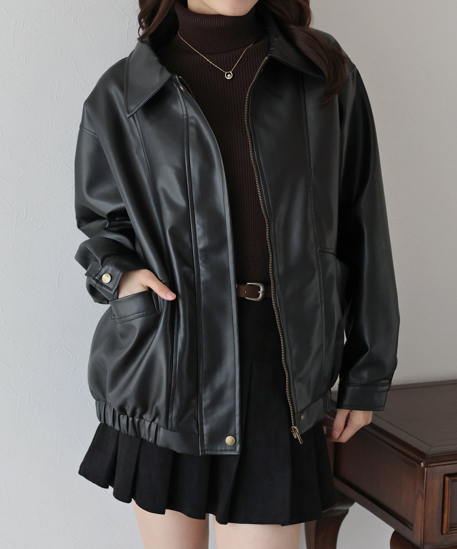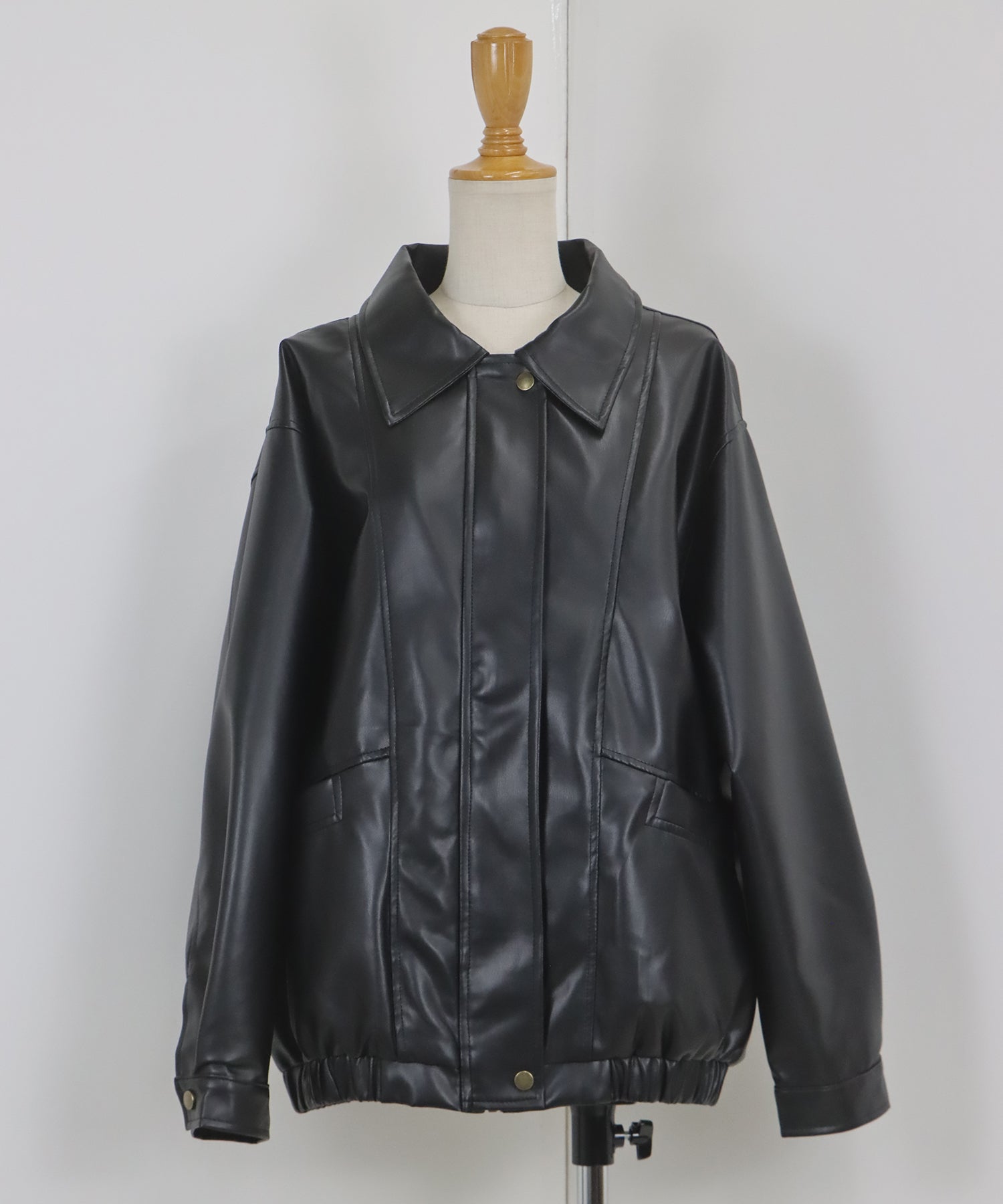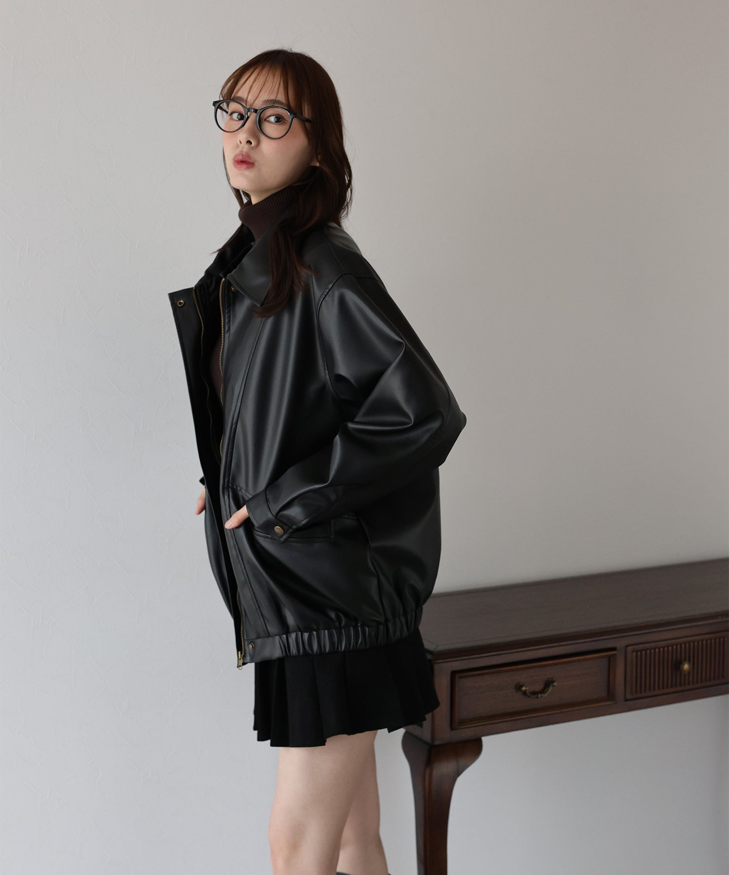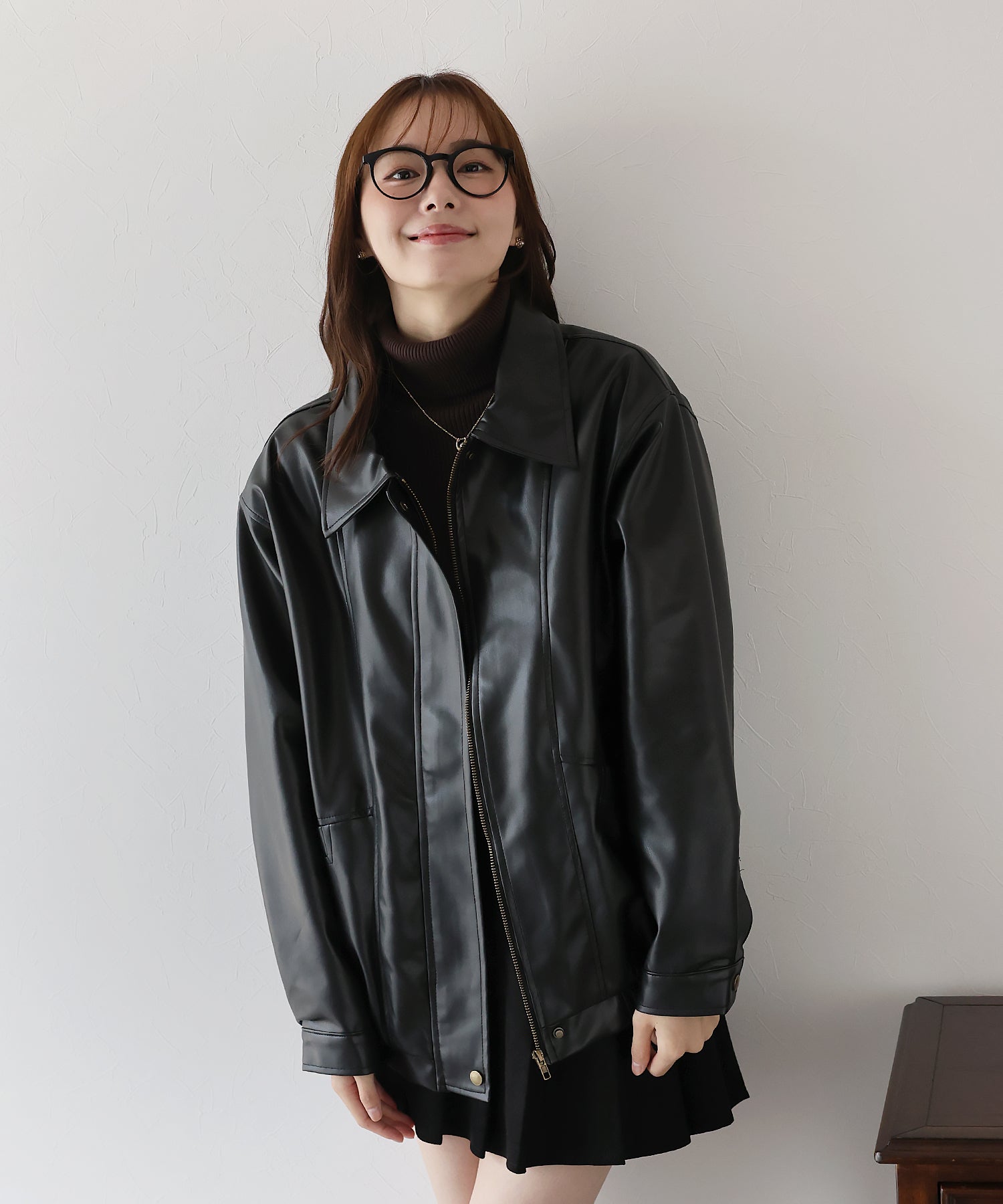 ゆるっとしたシルエットが大人かわいいフェイクレザーブルゾン
