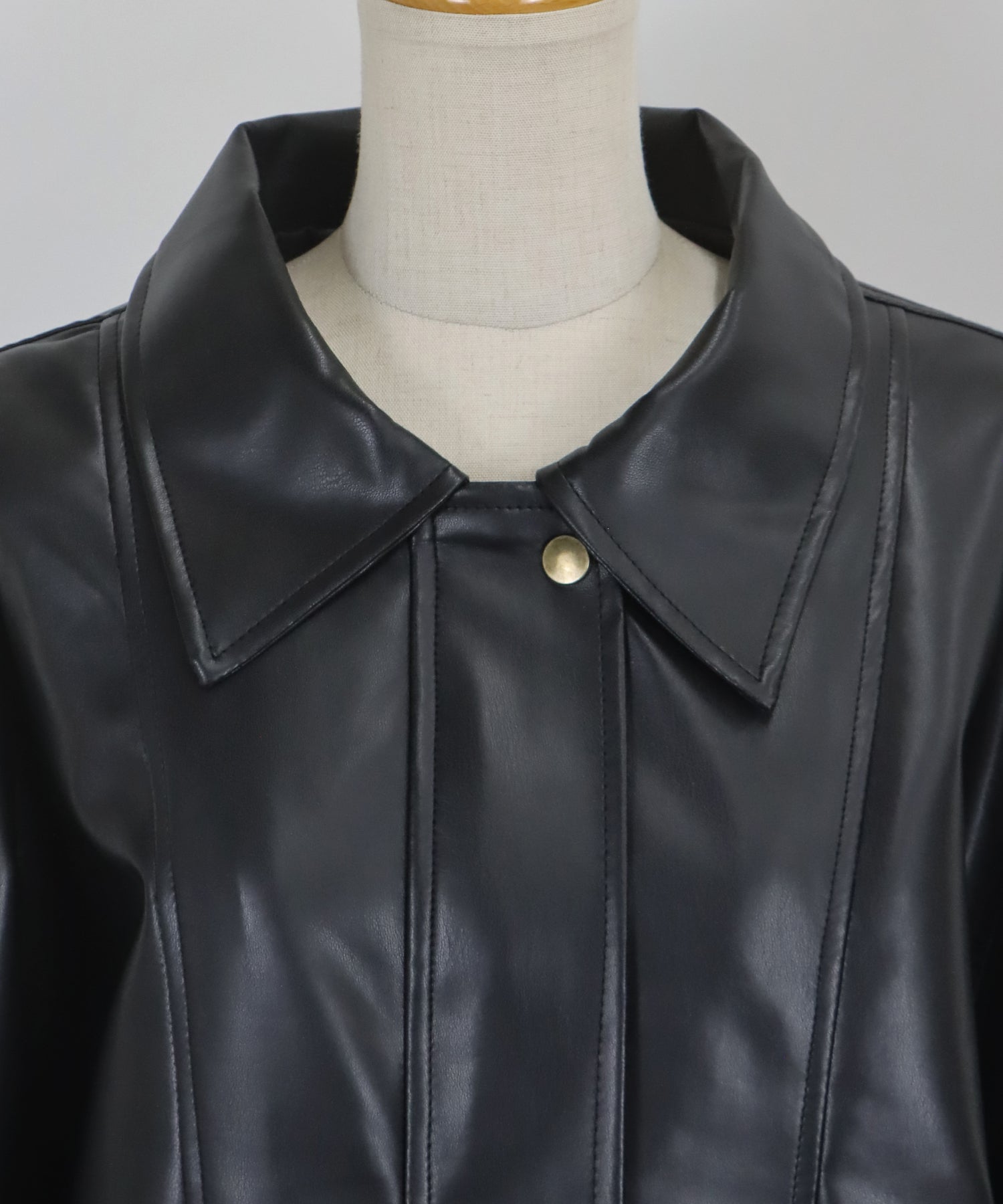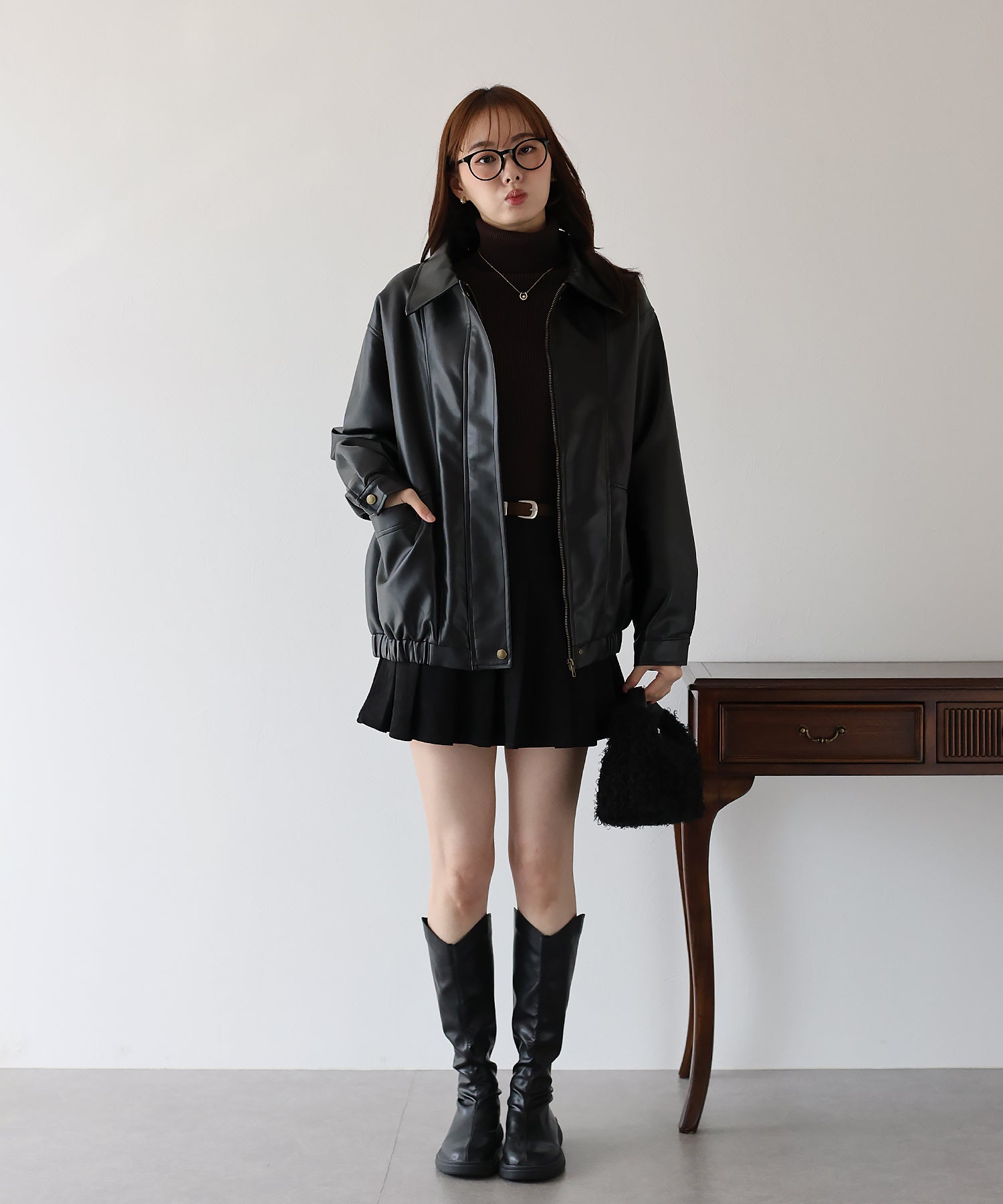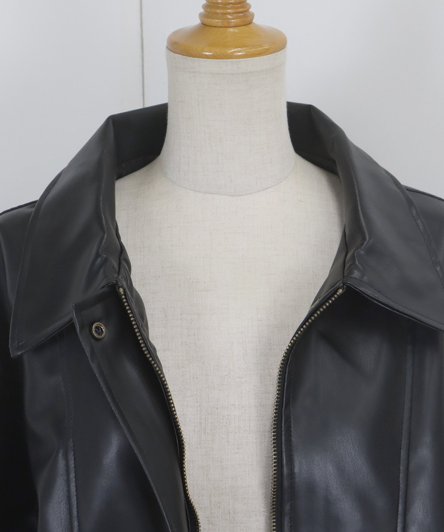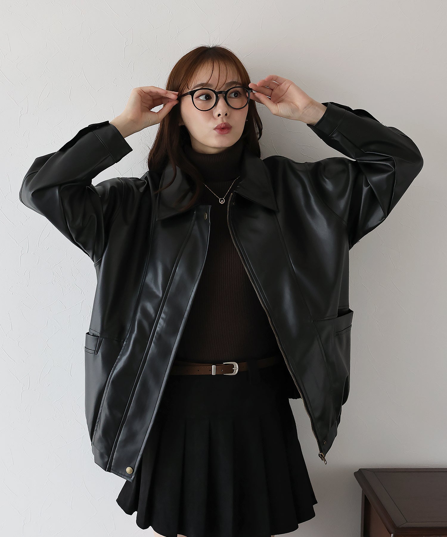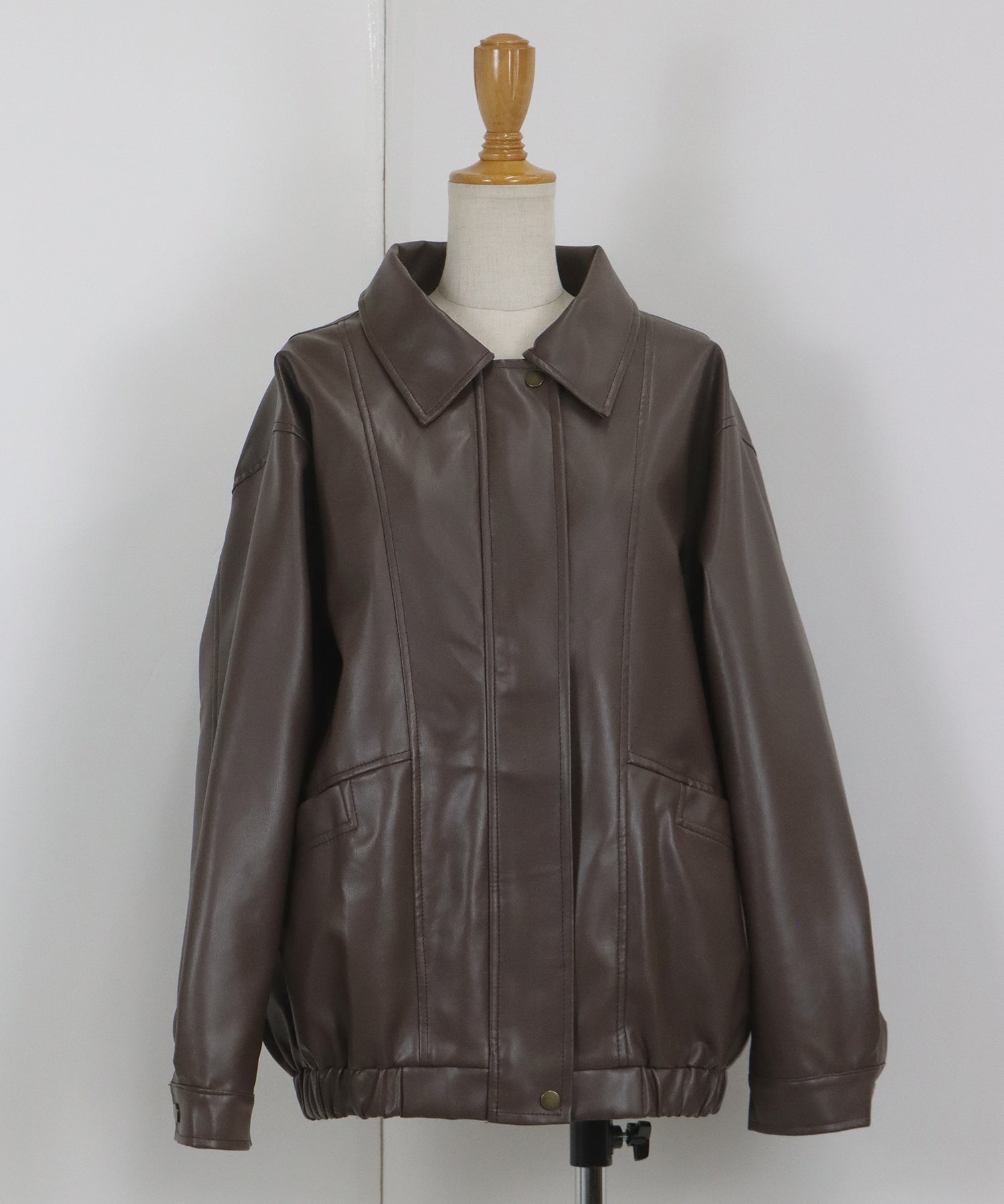 ゆるっとしたシルエットが大人かわいいフェイクレザーブルゾン